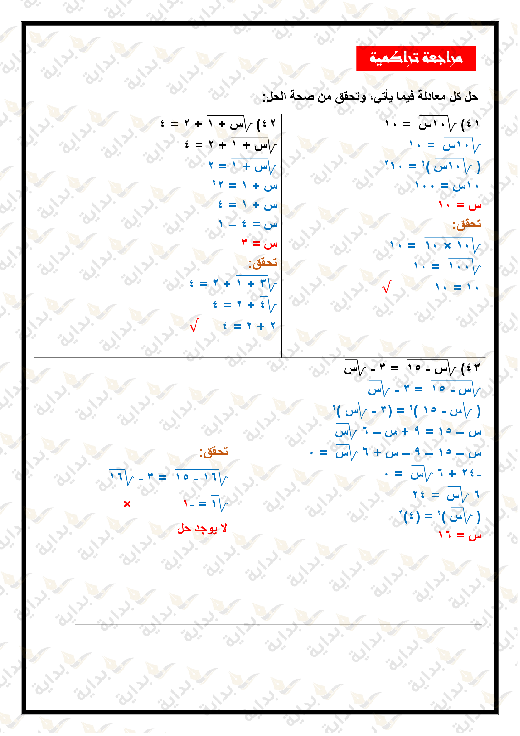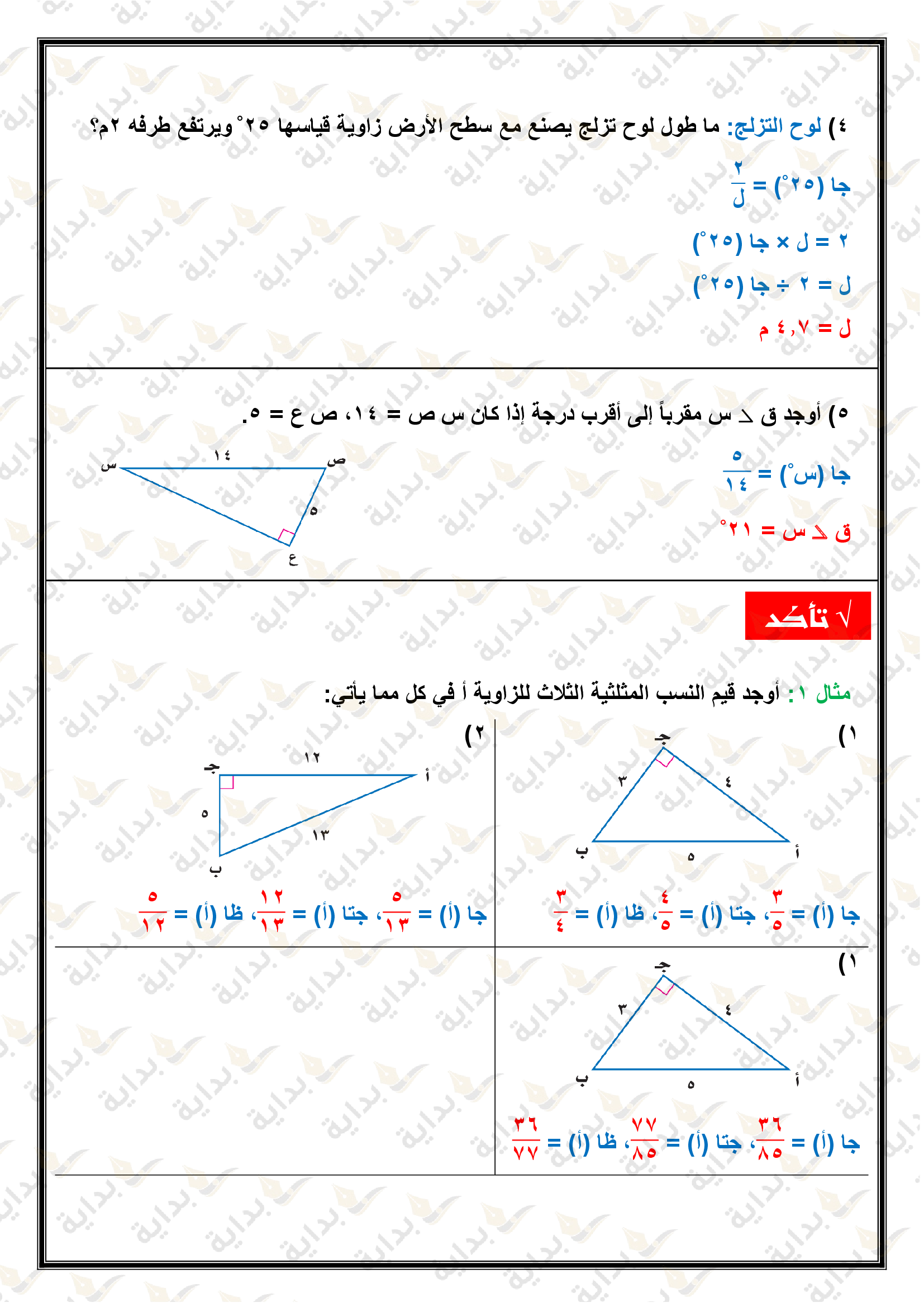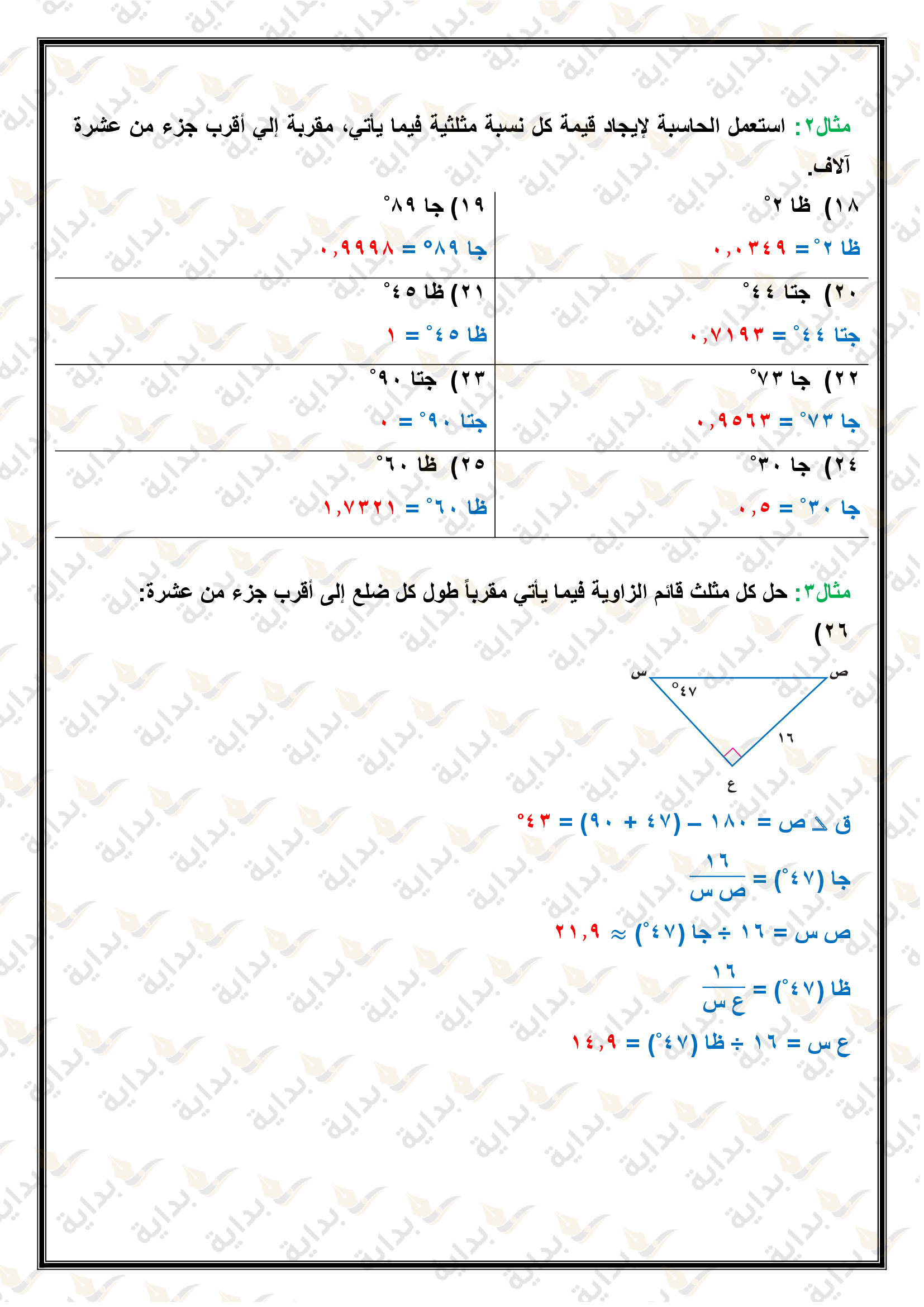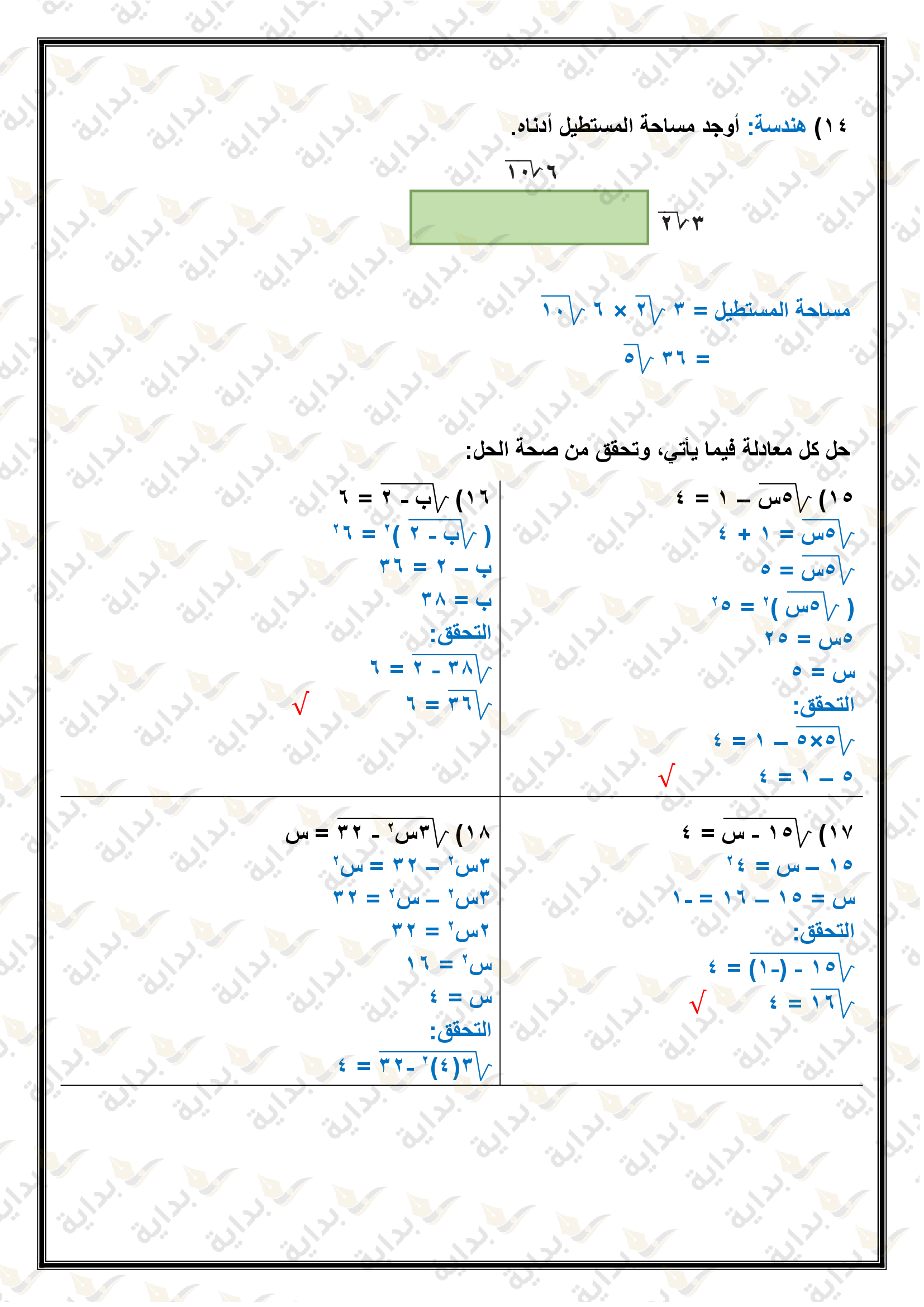 المعادلات الجذرية والمثلثات
