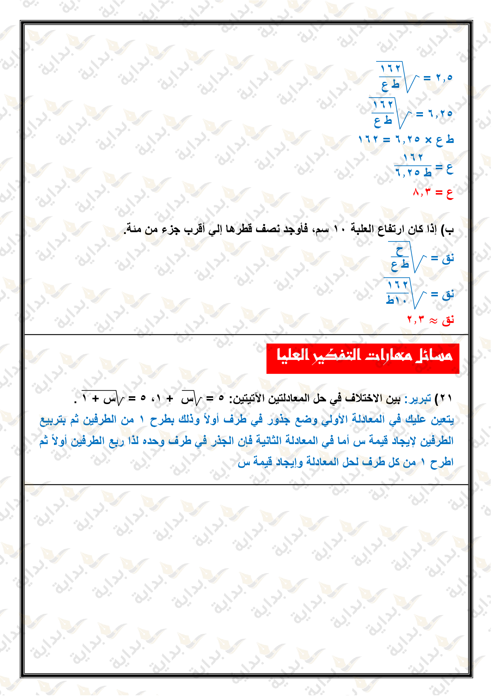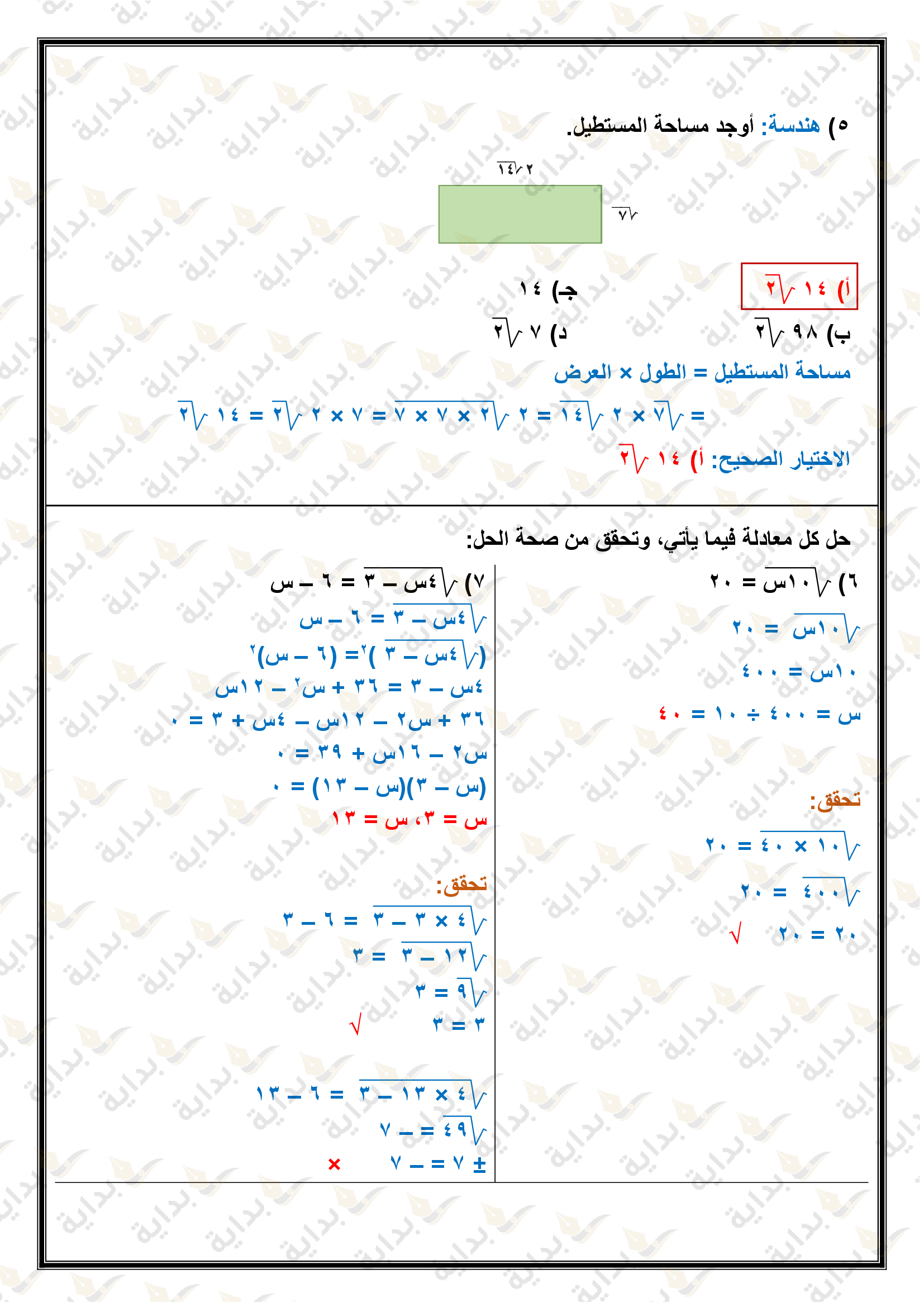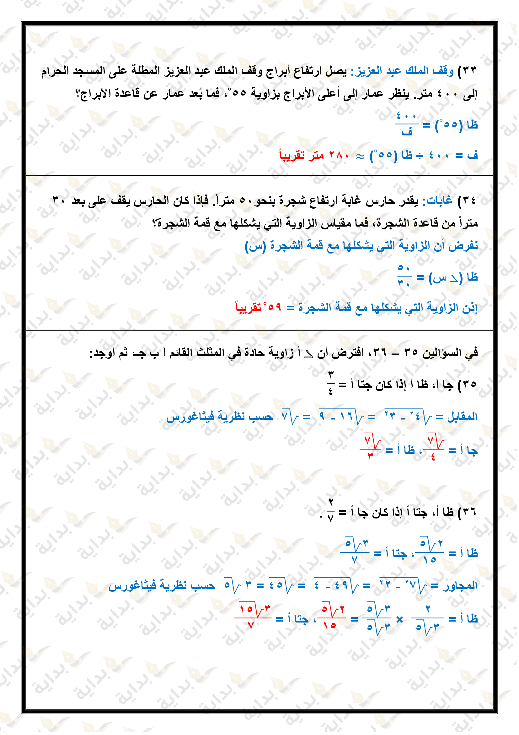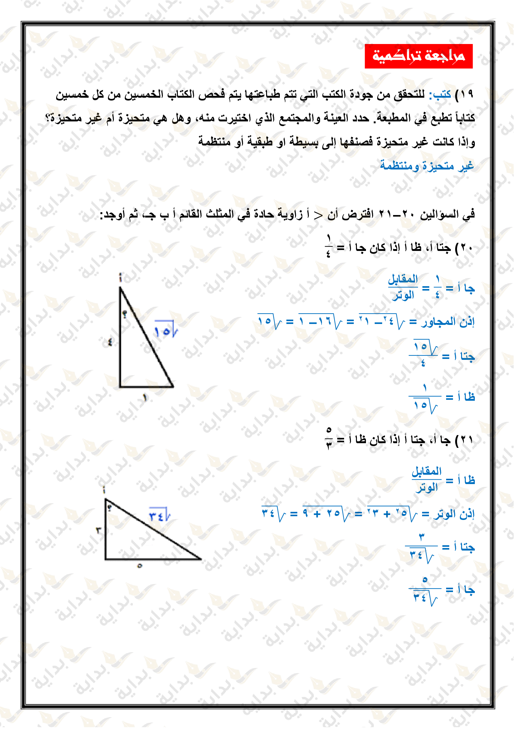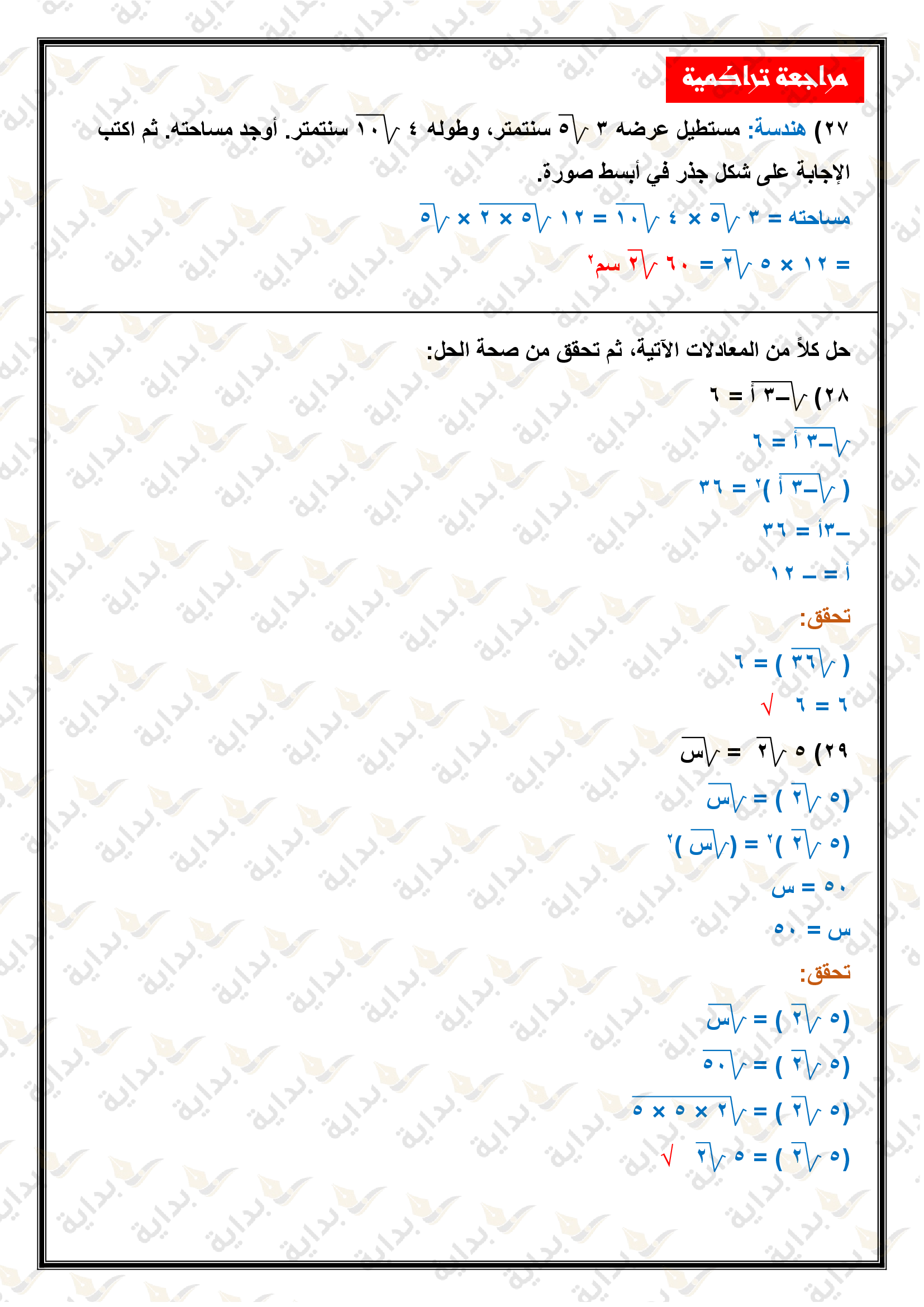 المعادلات الجذرية والمثلثات