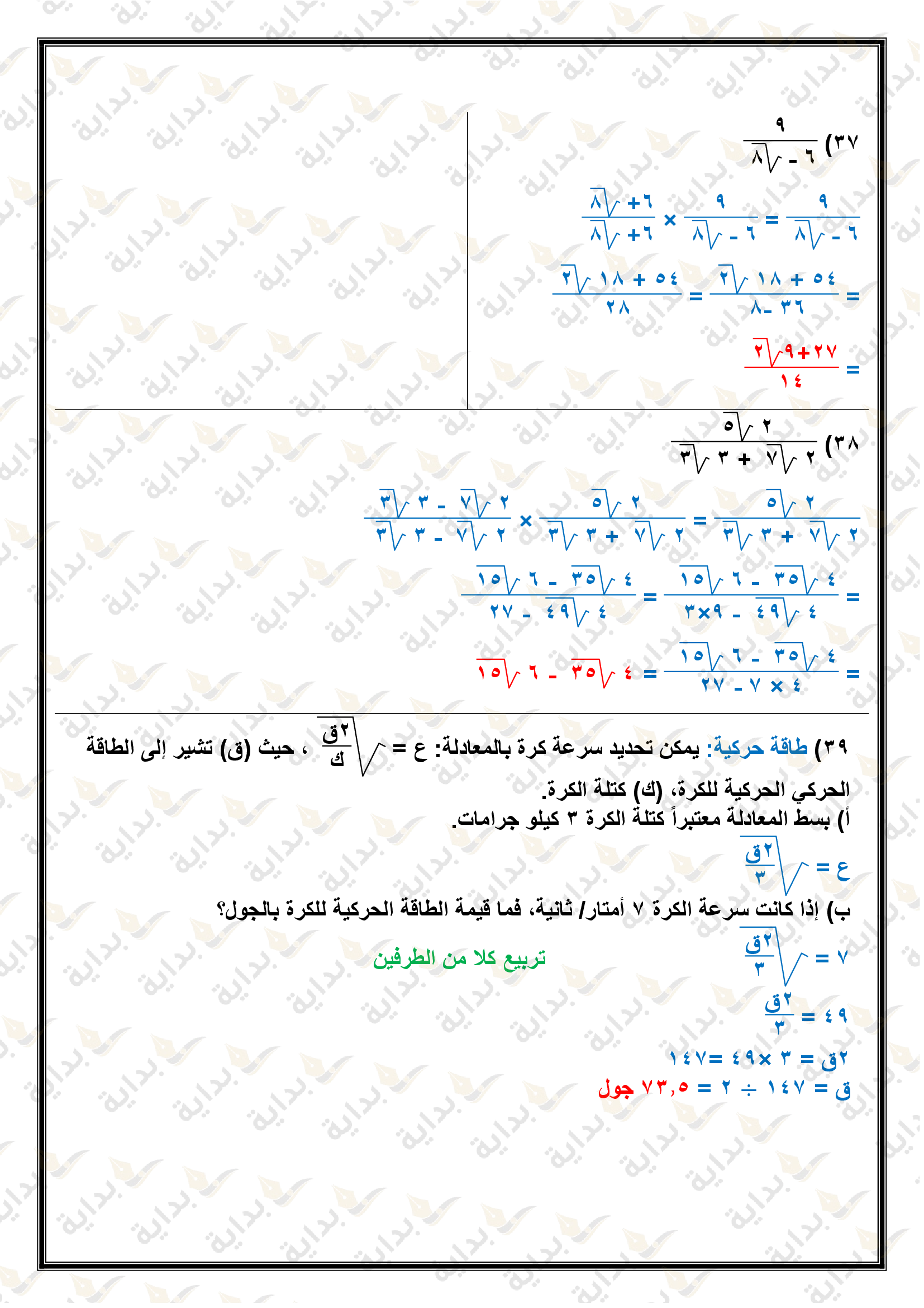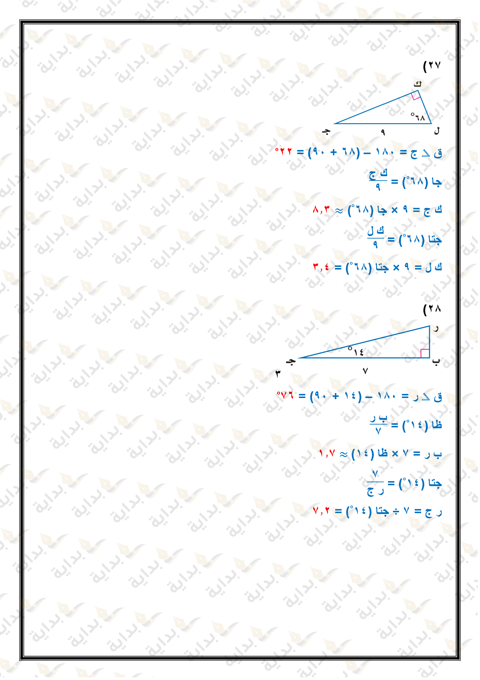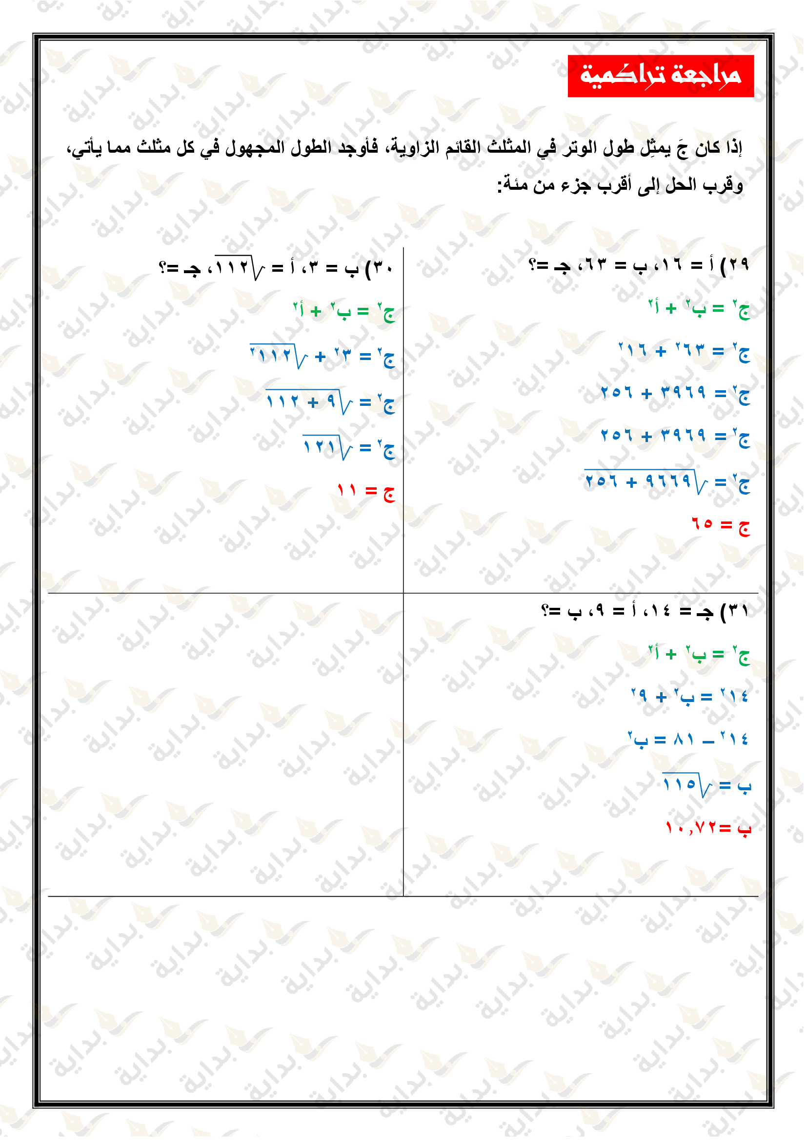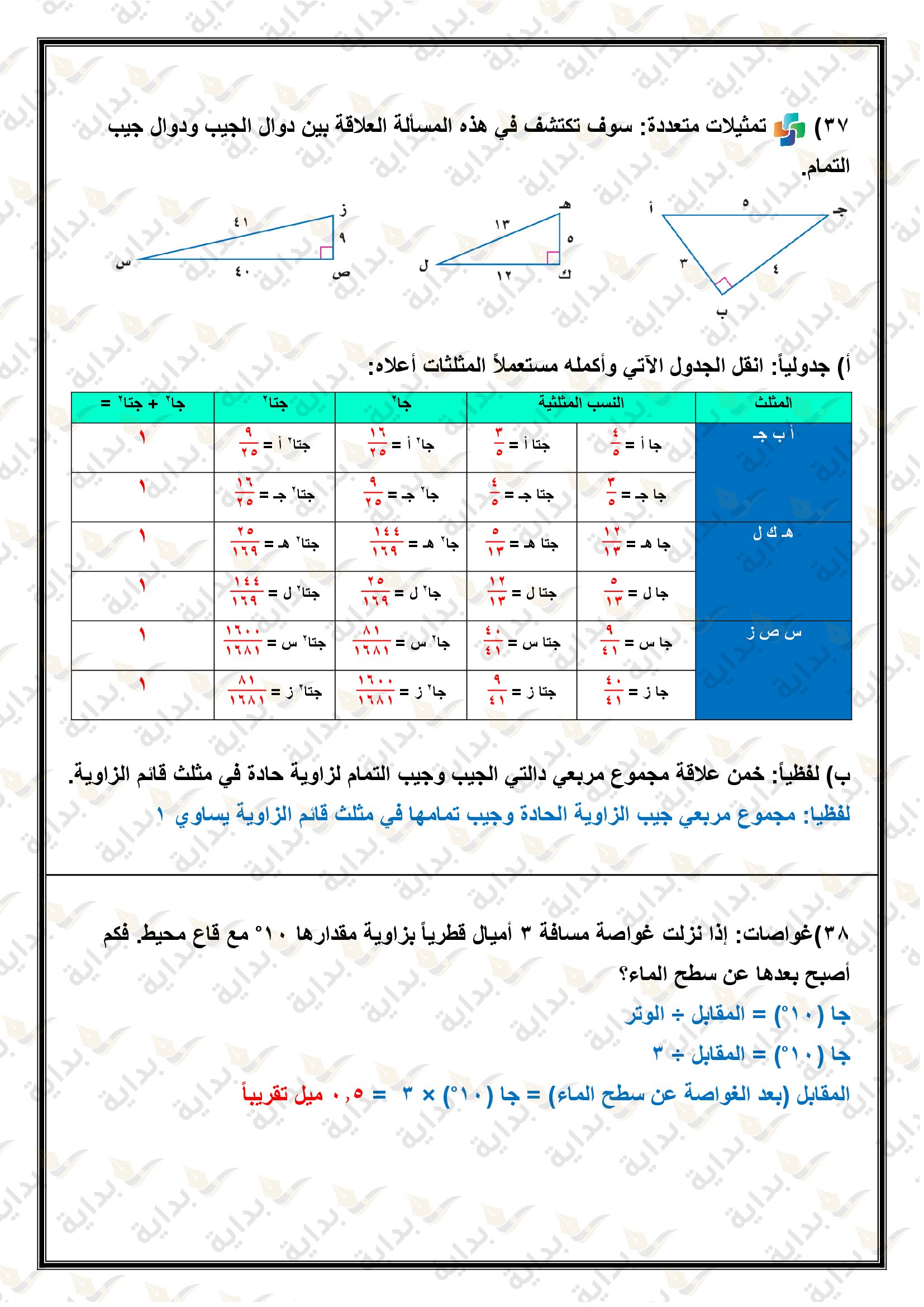 المعادلات الجذرية والمثلثات