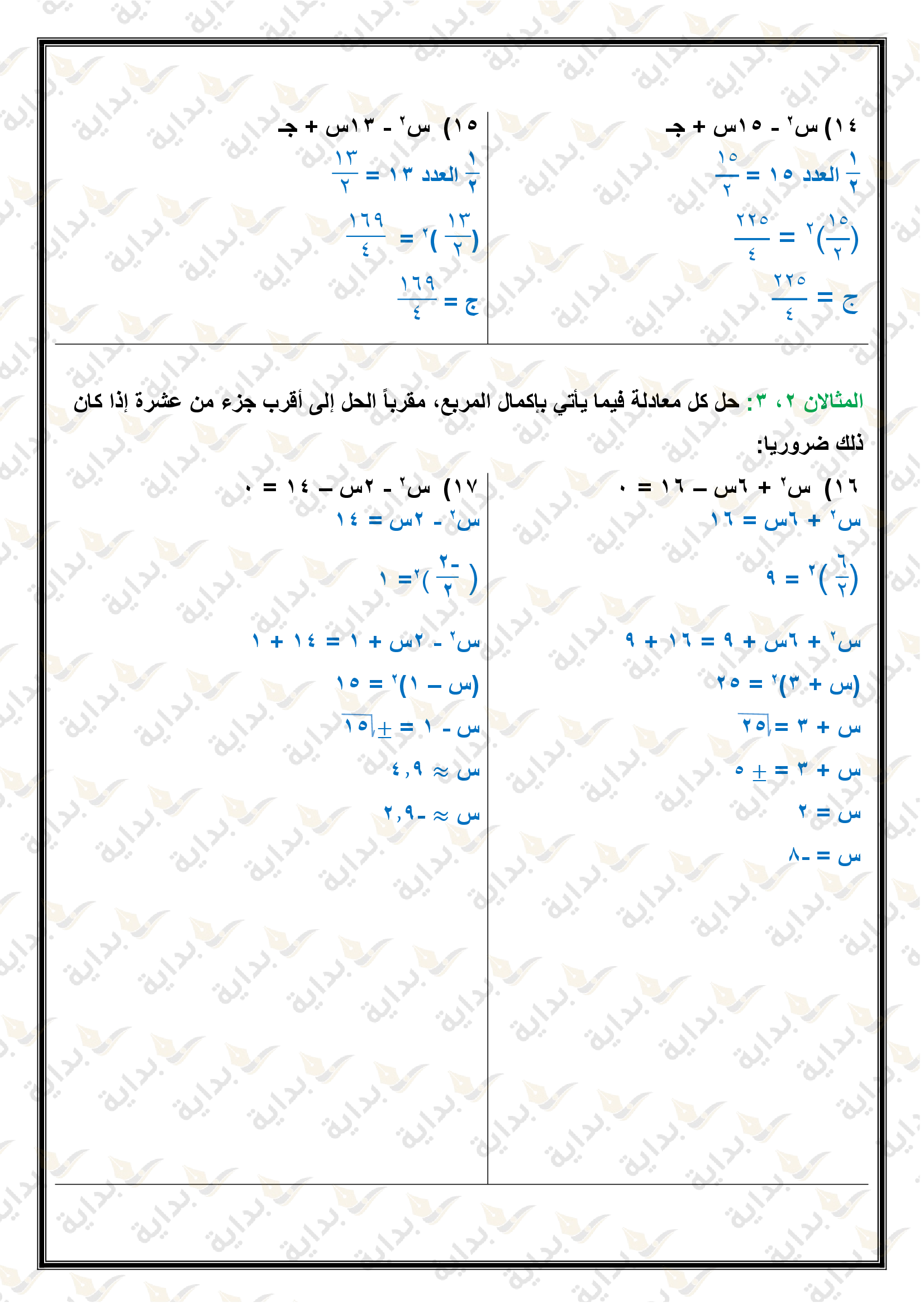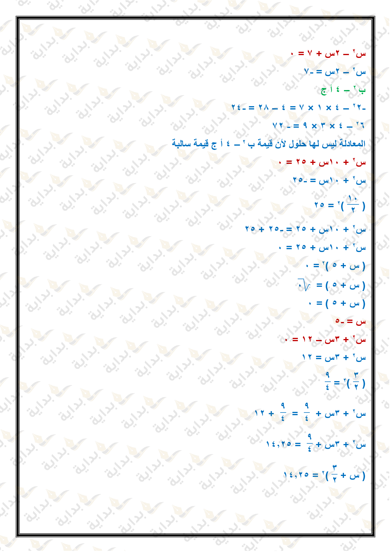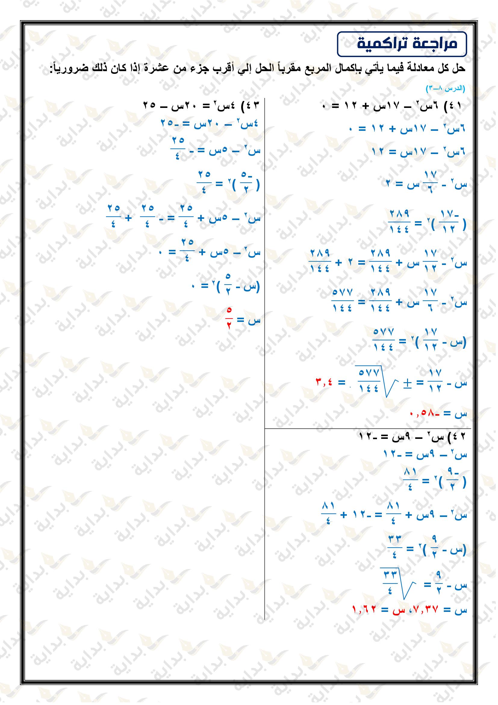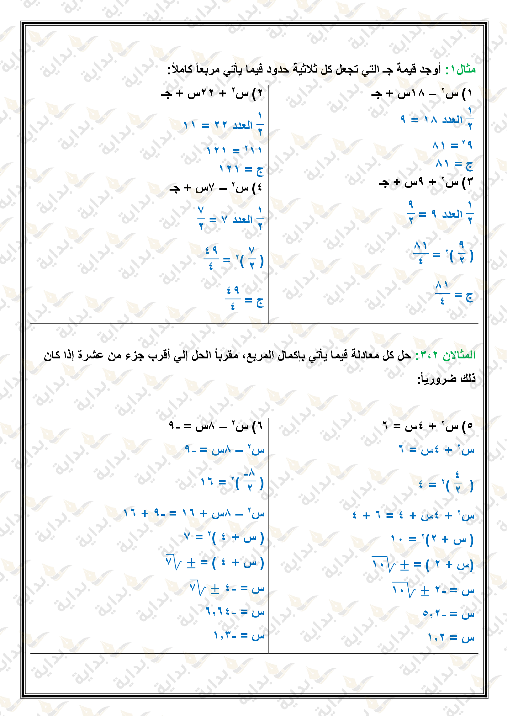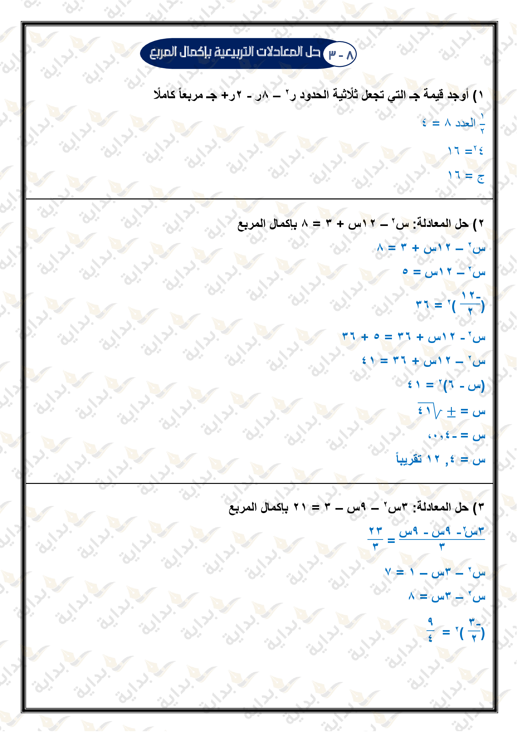 حل المعادلات التربيعية بإكمال المربع