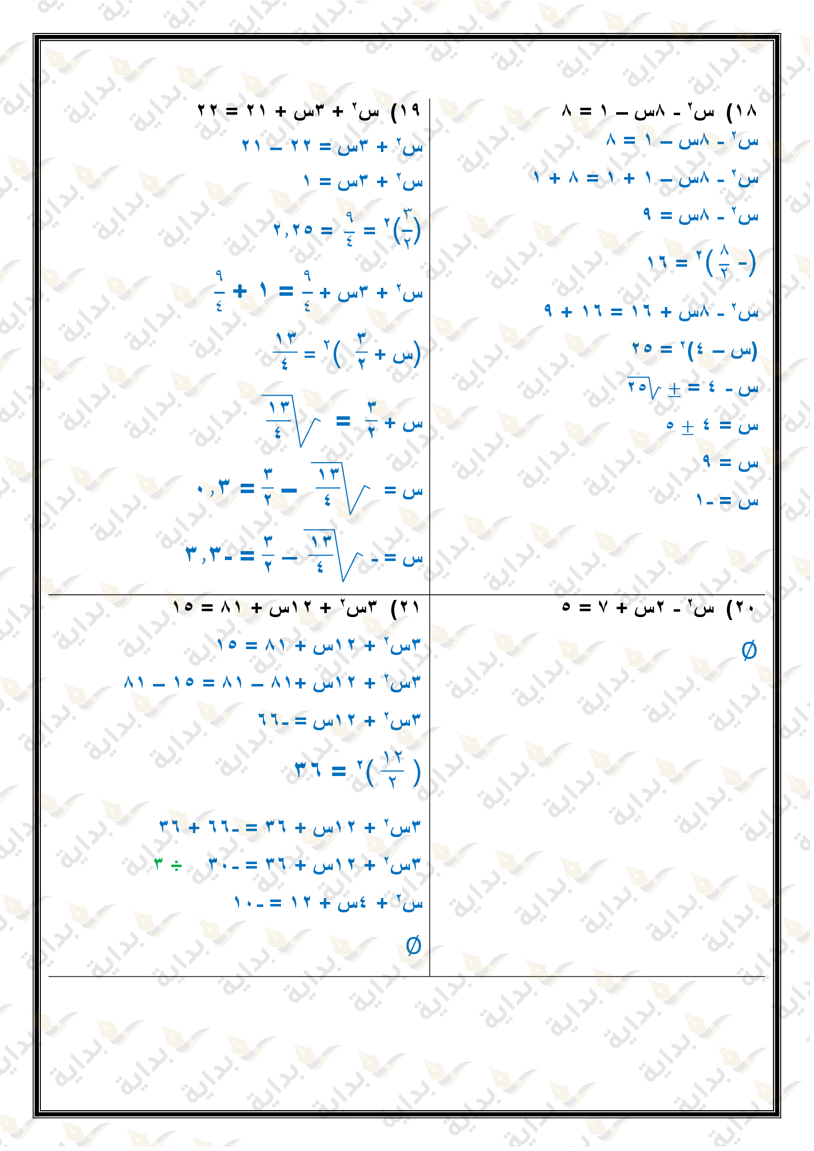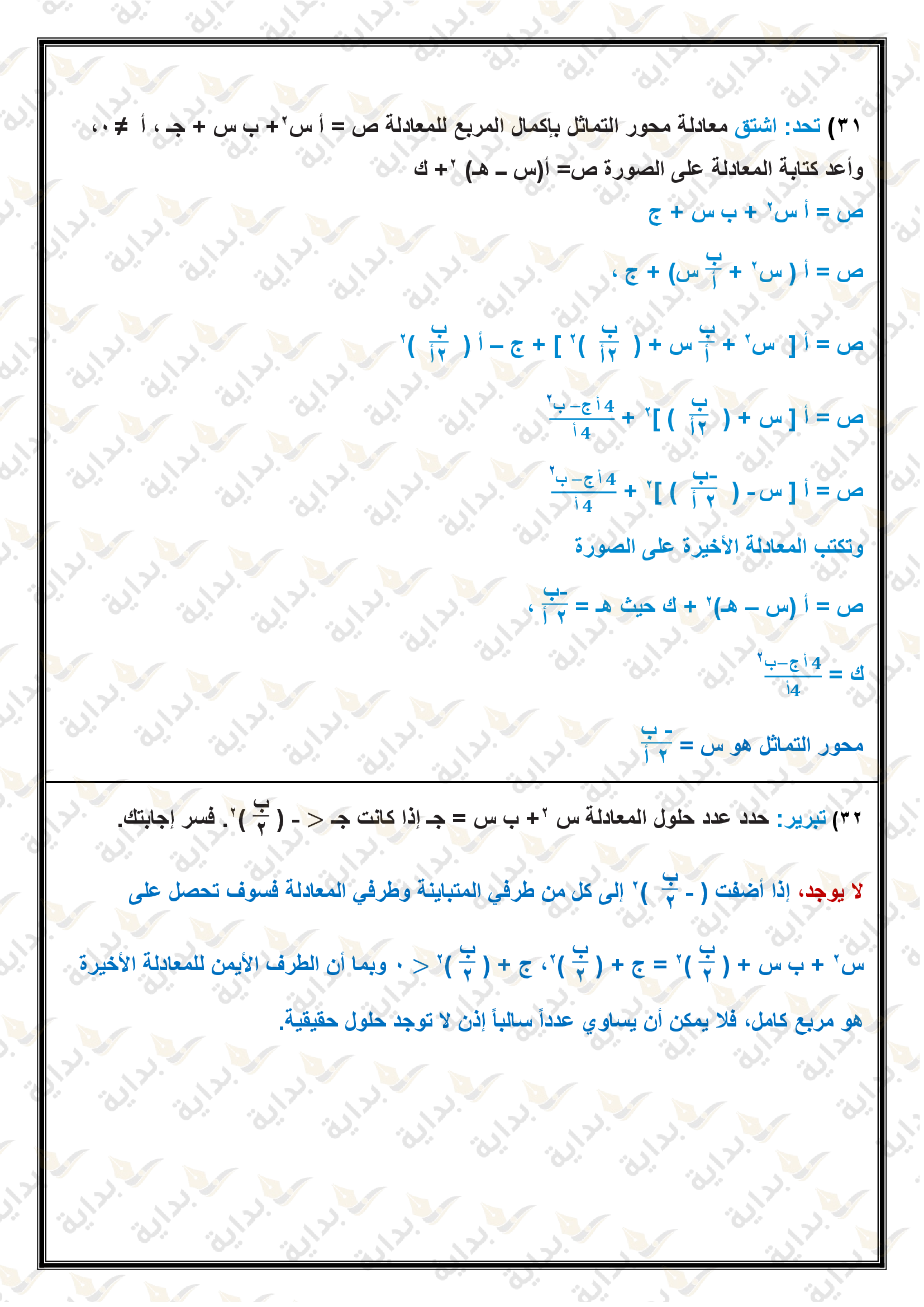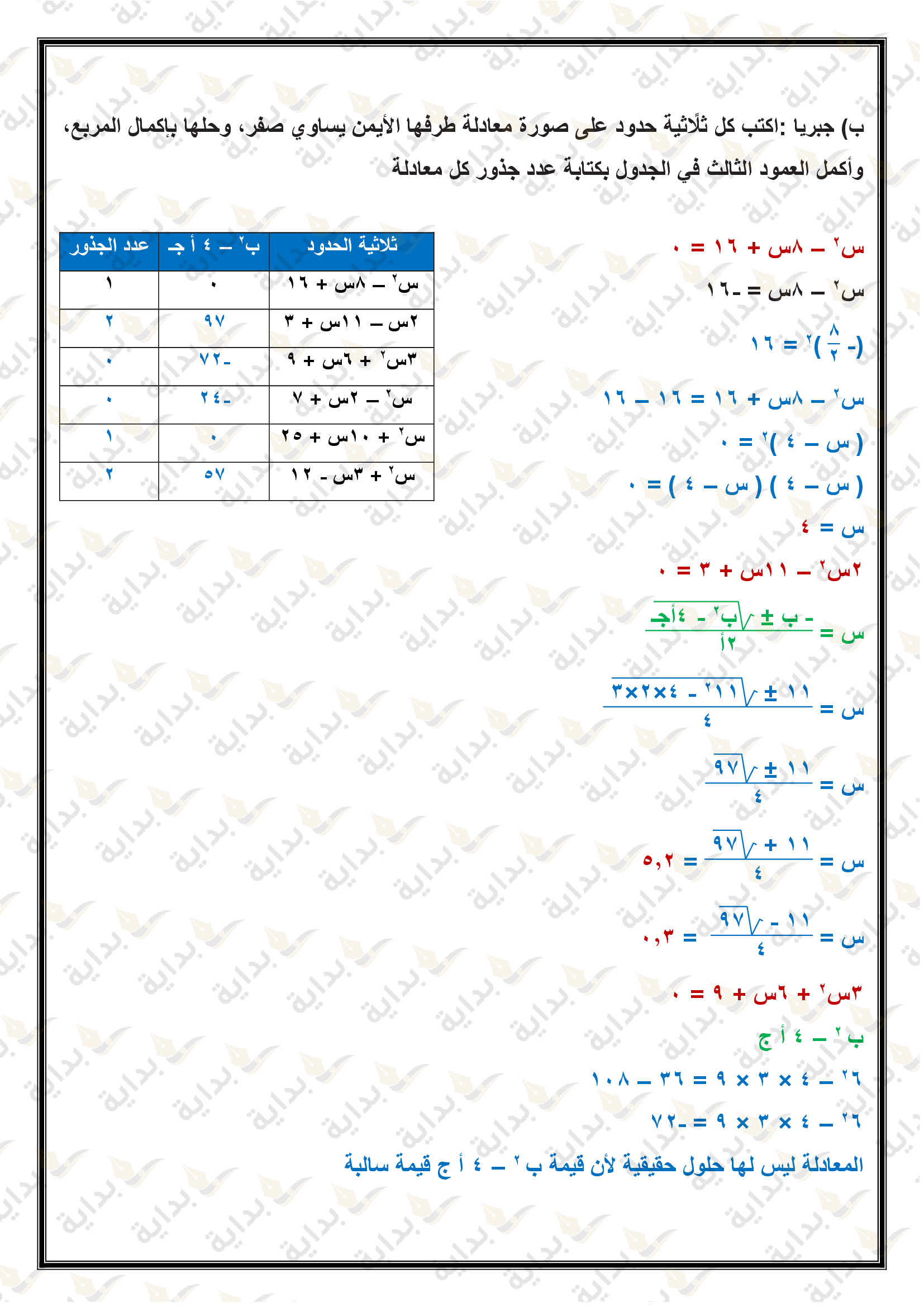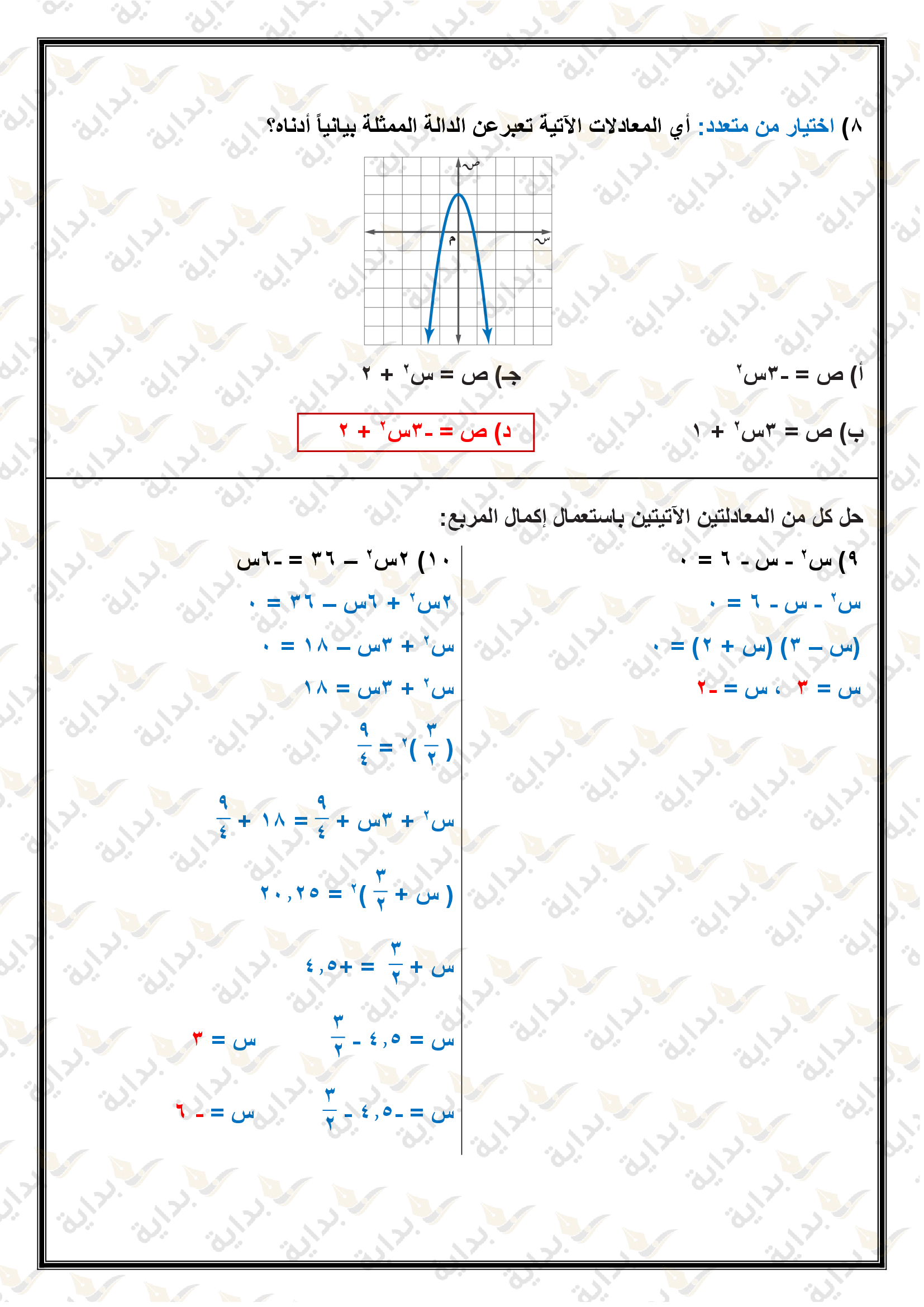حل المعادلات التربيعية بإكمال المربع