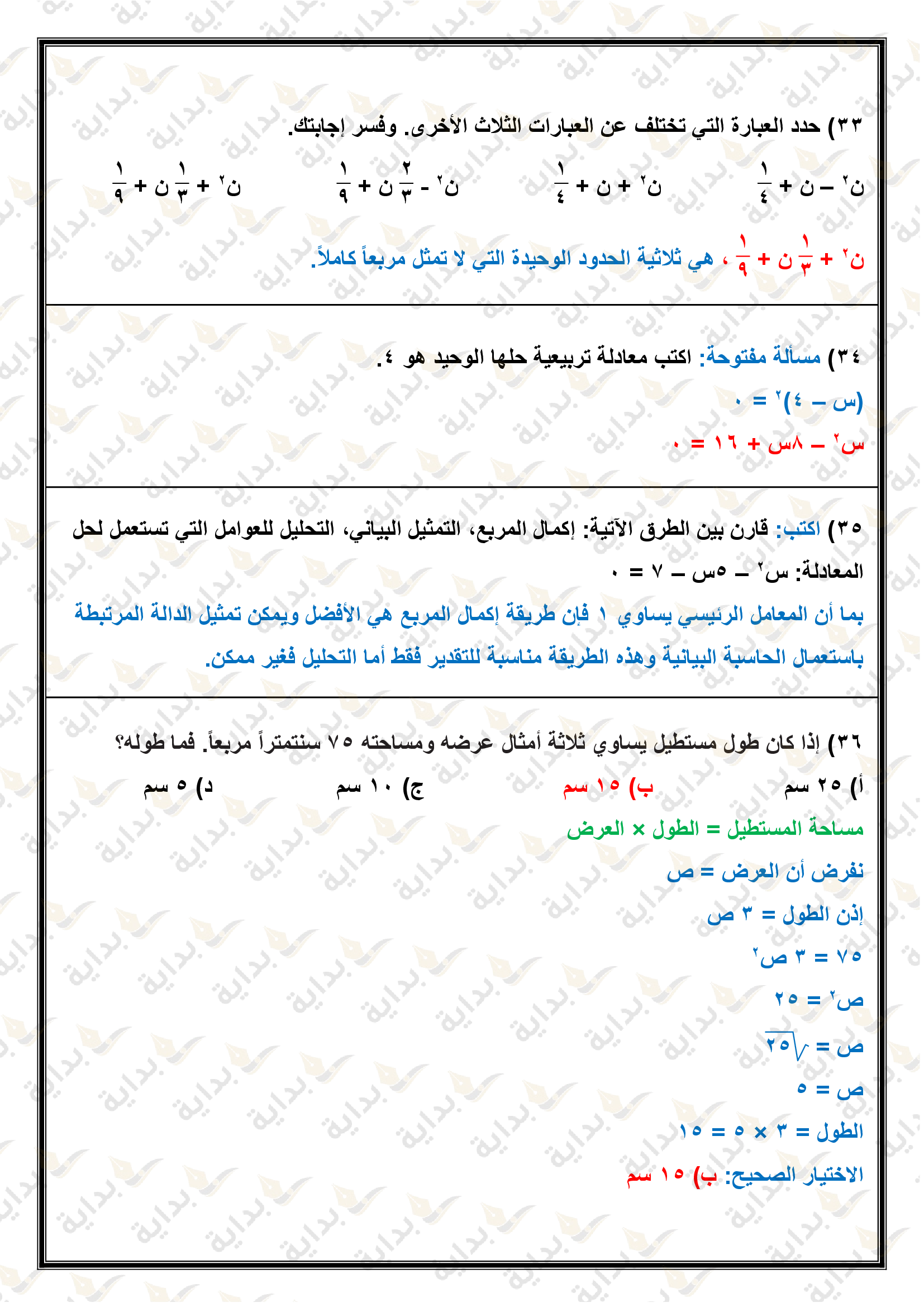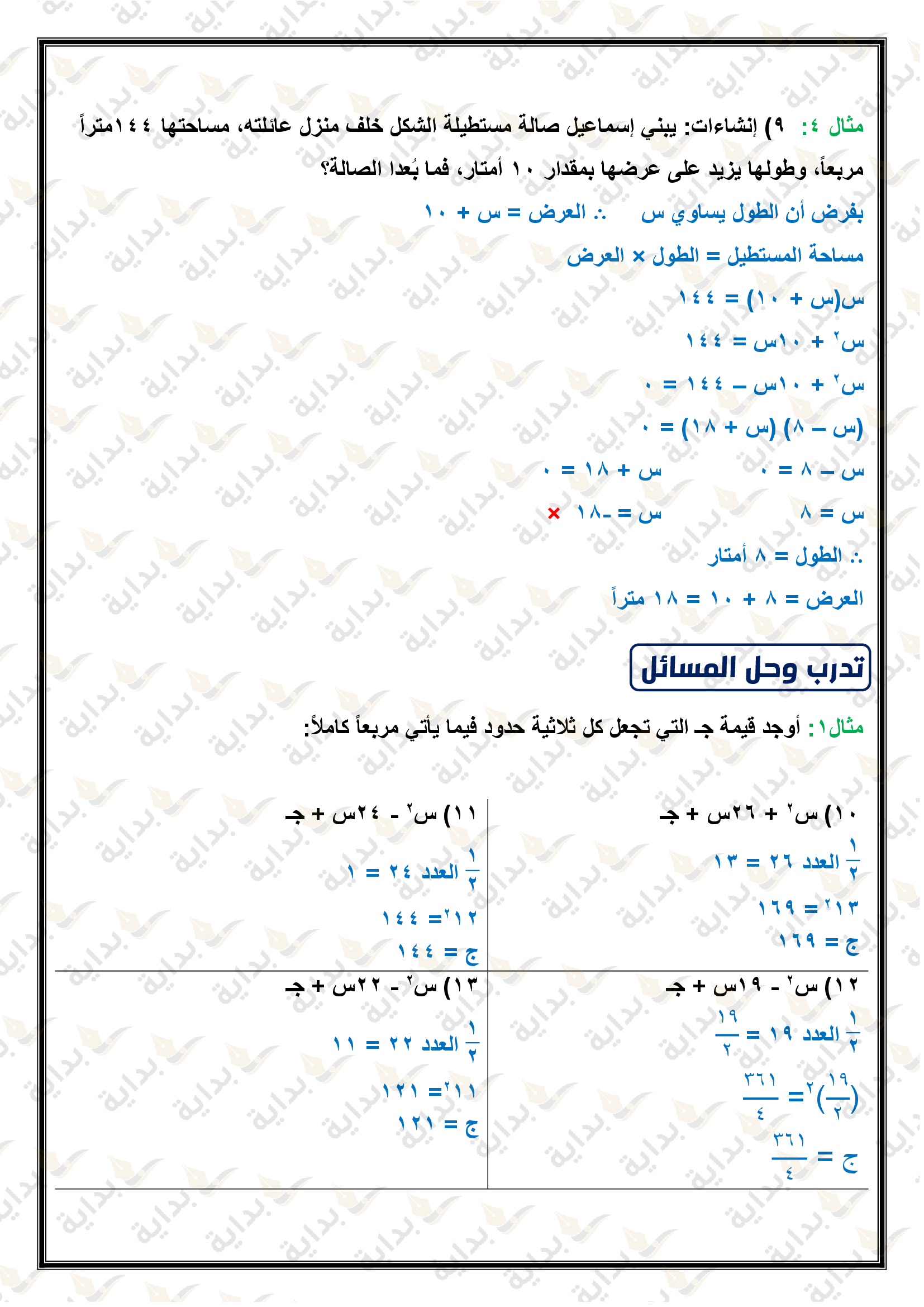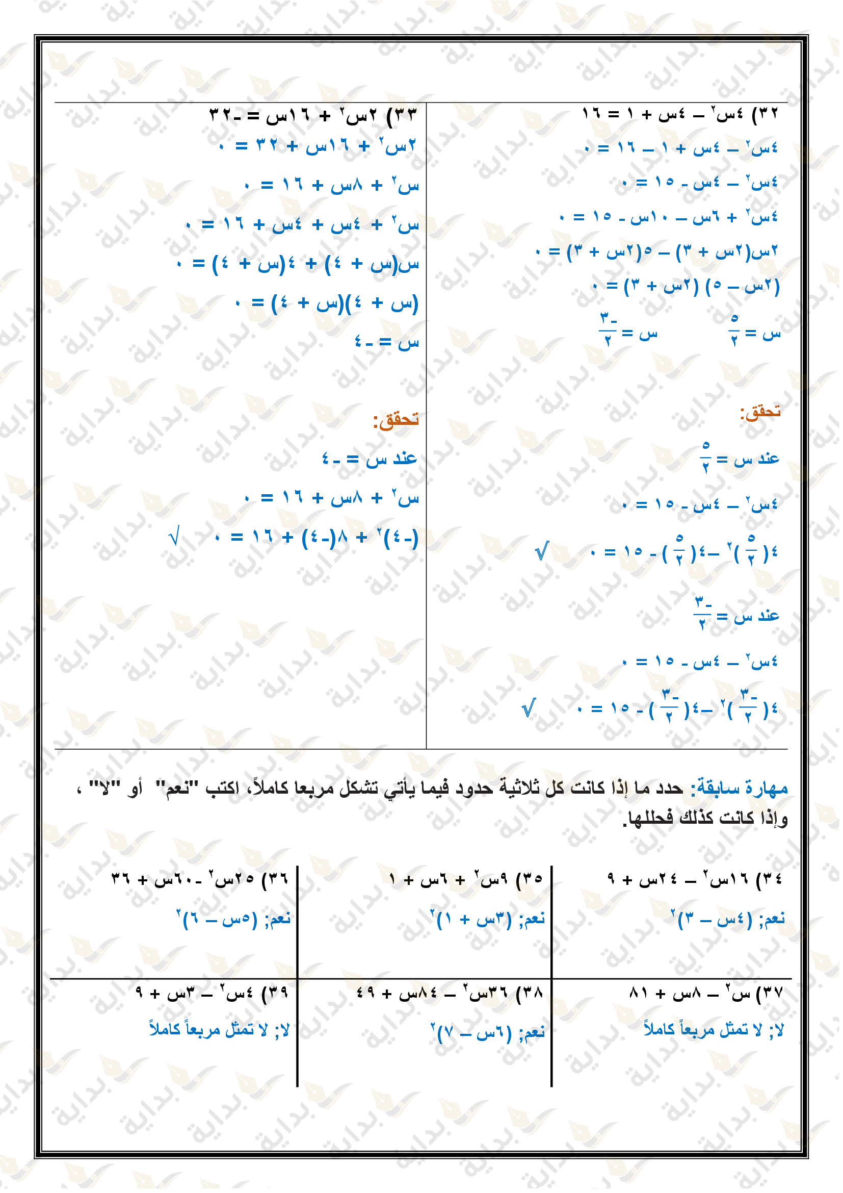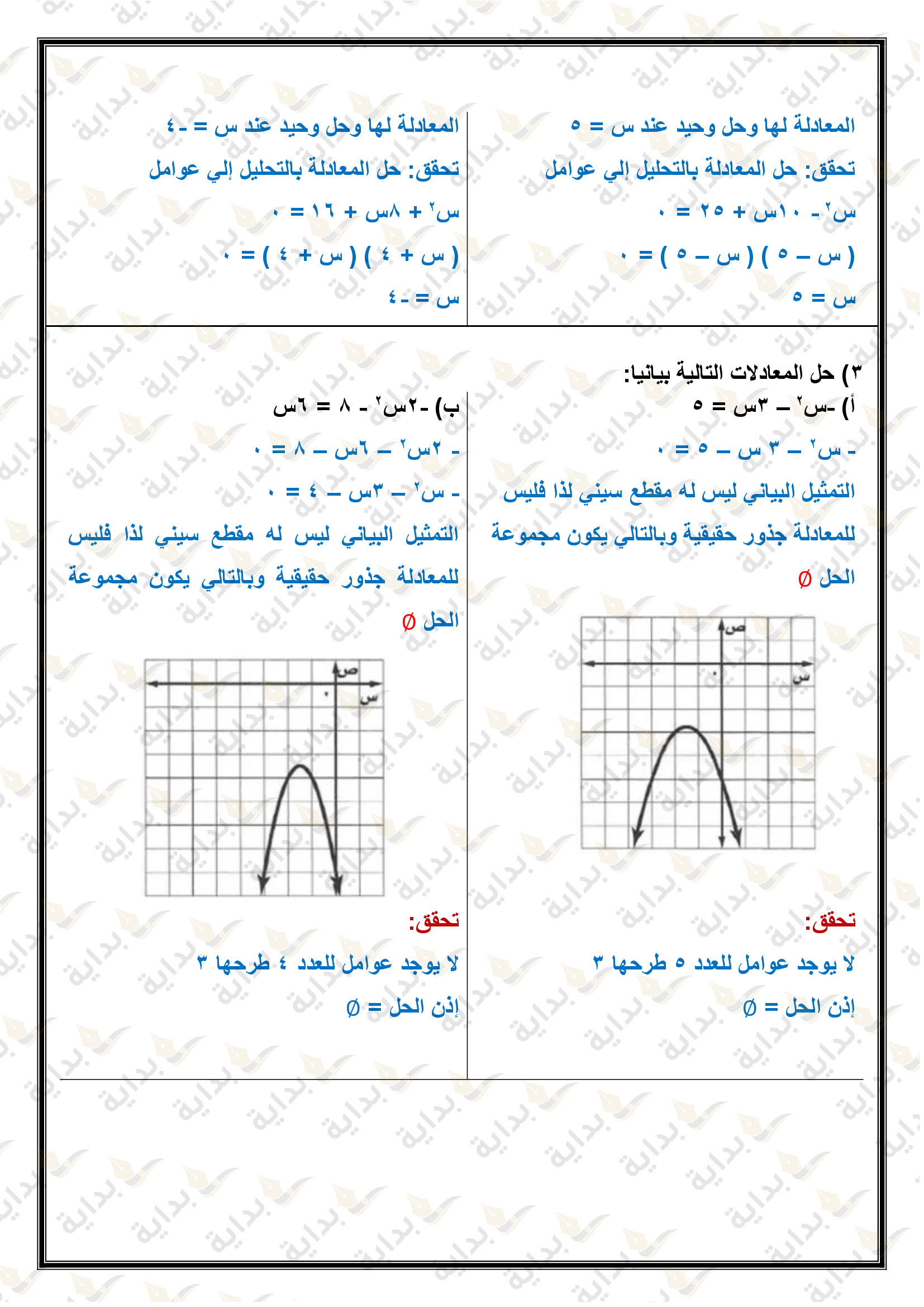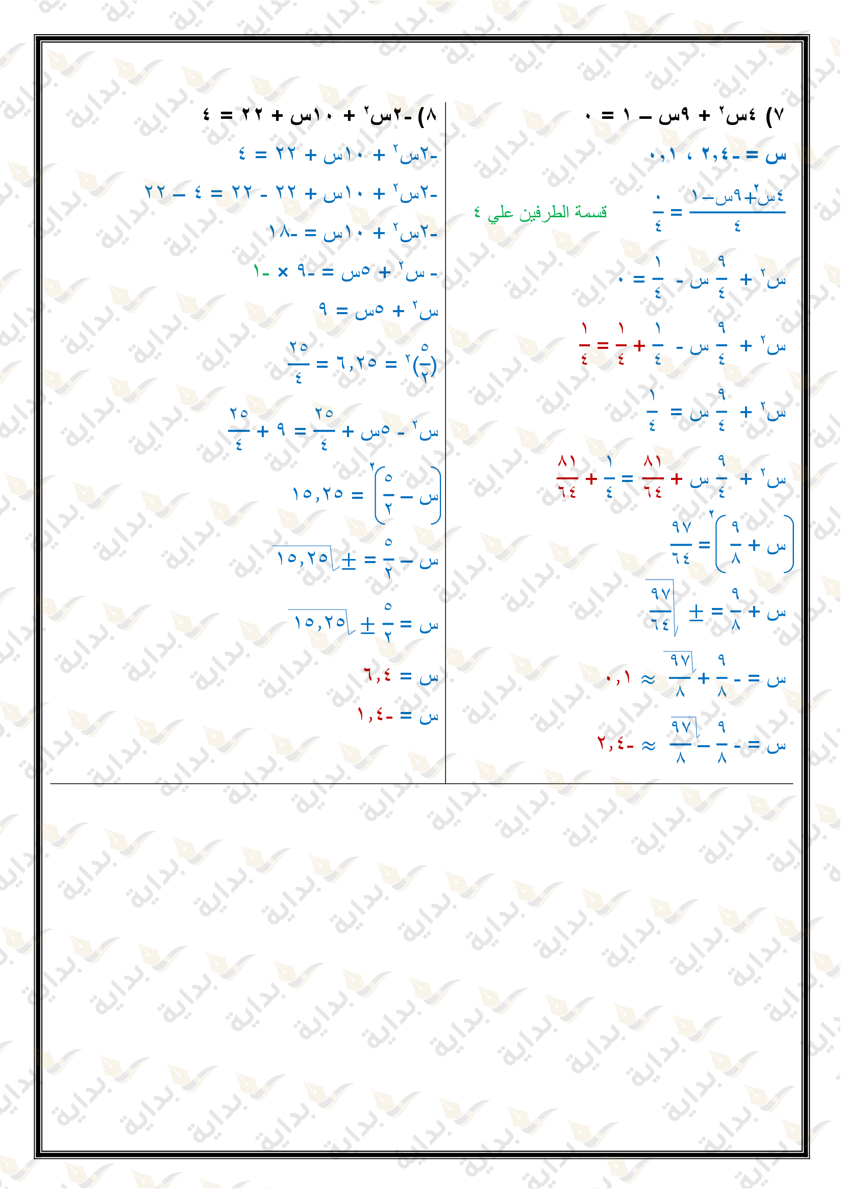 حل المعادلات التربيعية بإكمال المربع