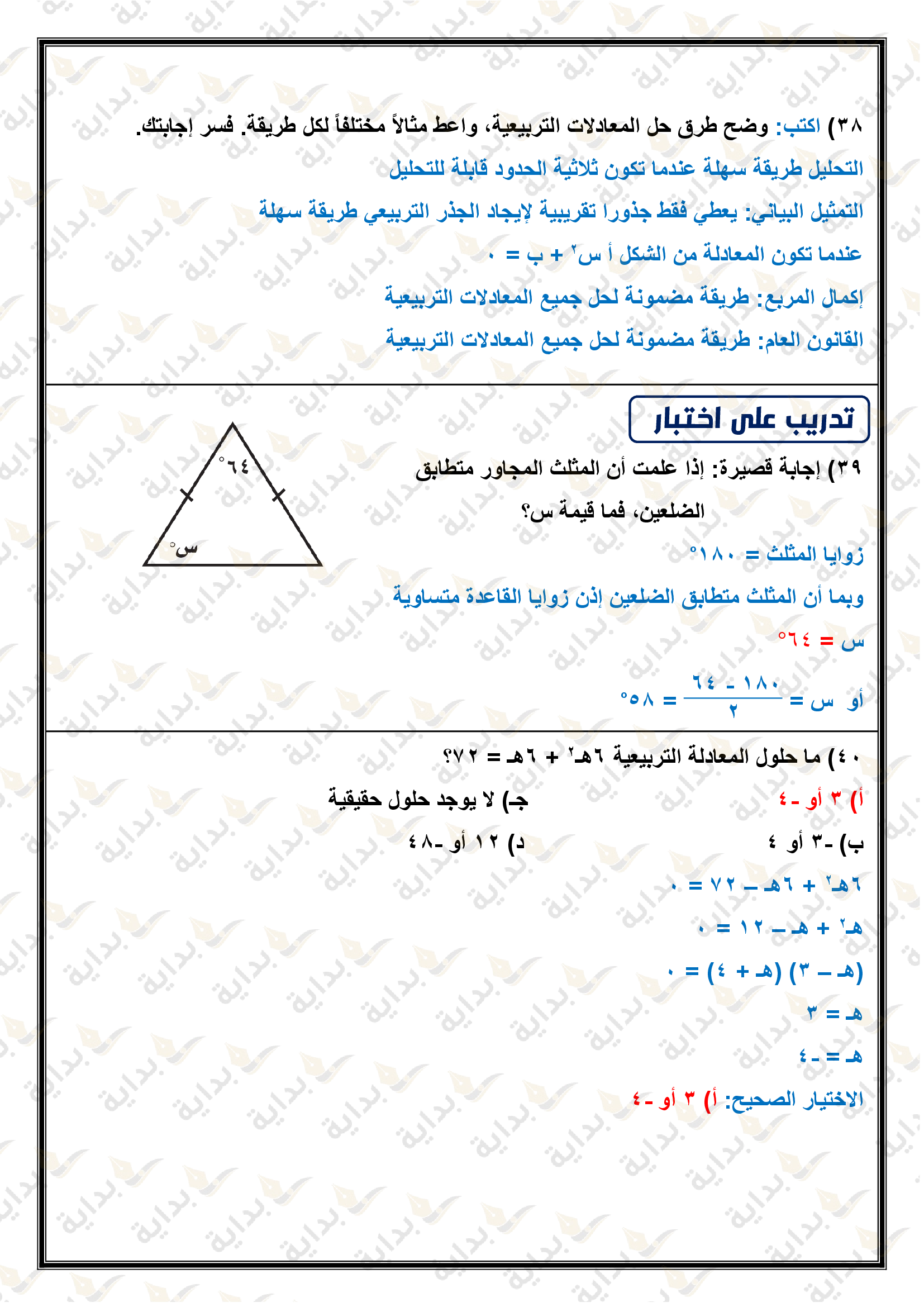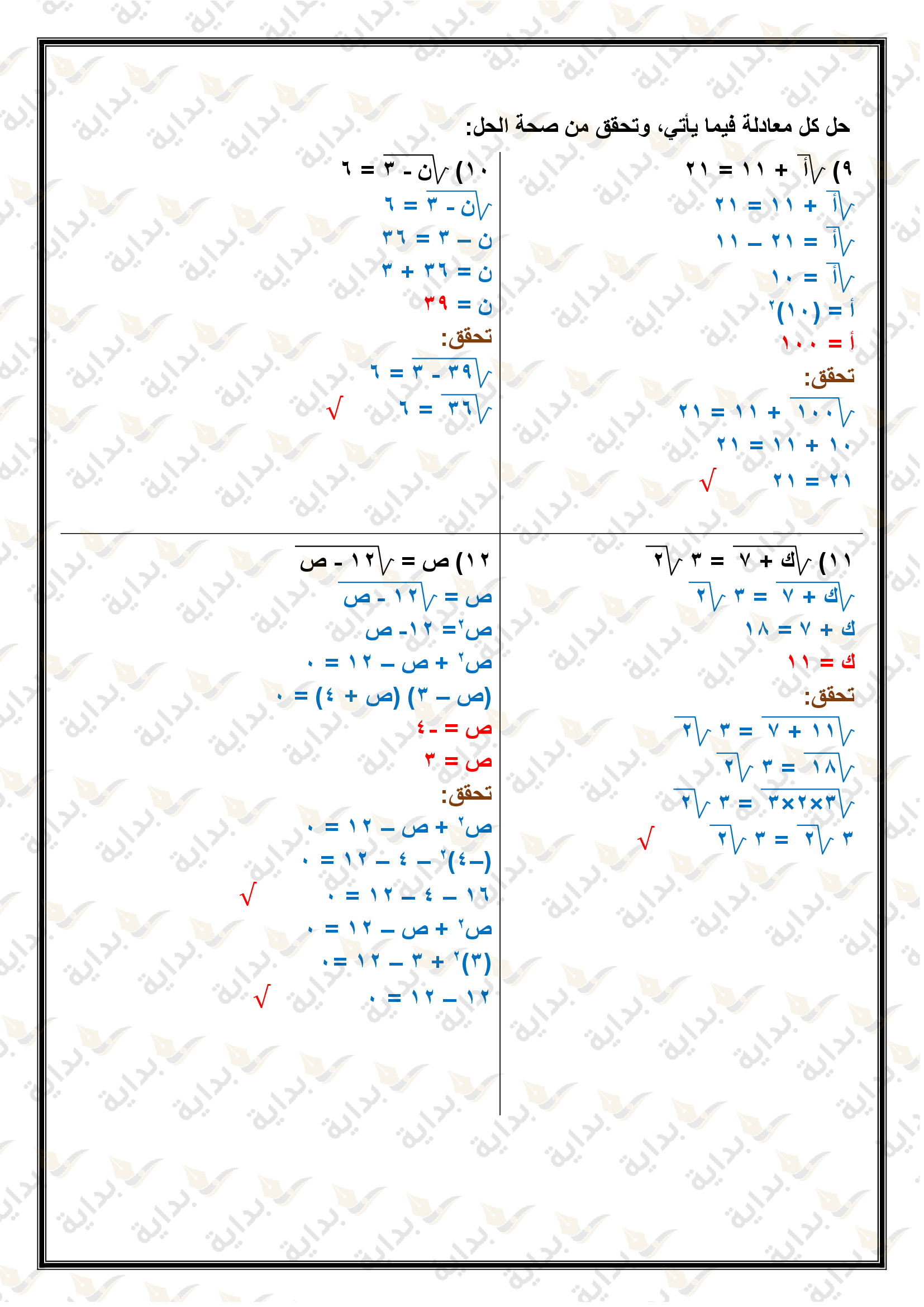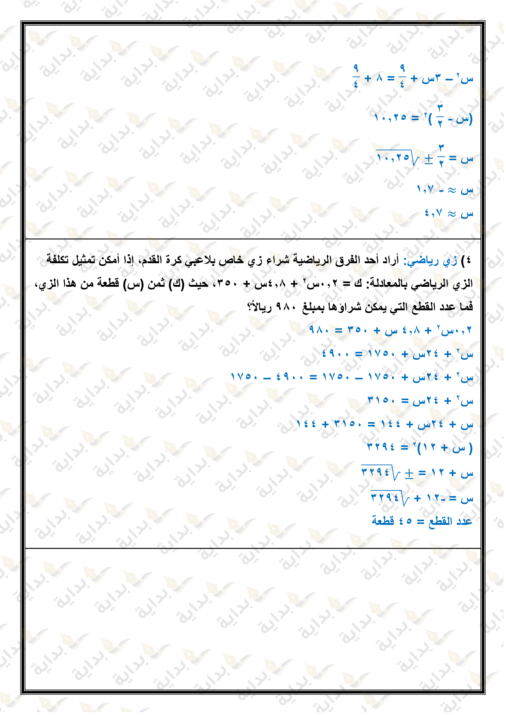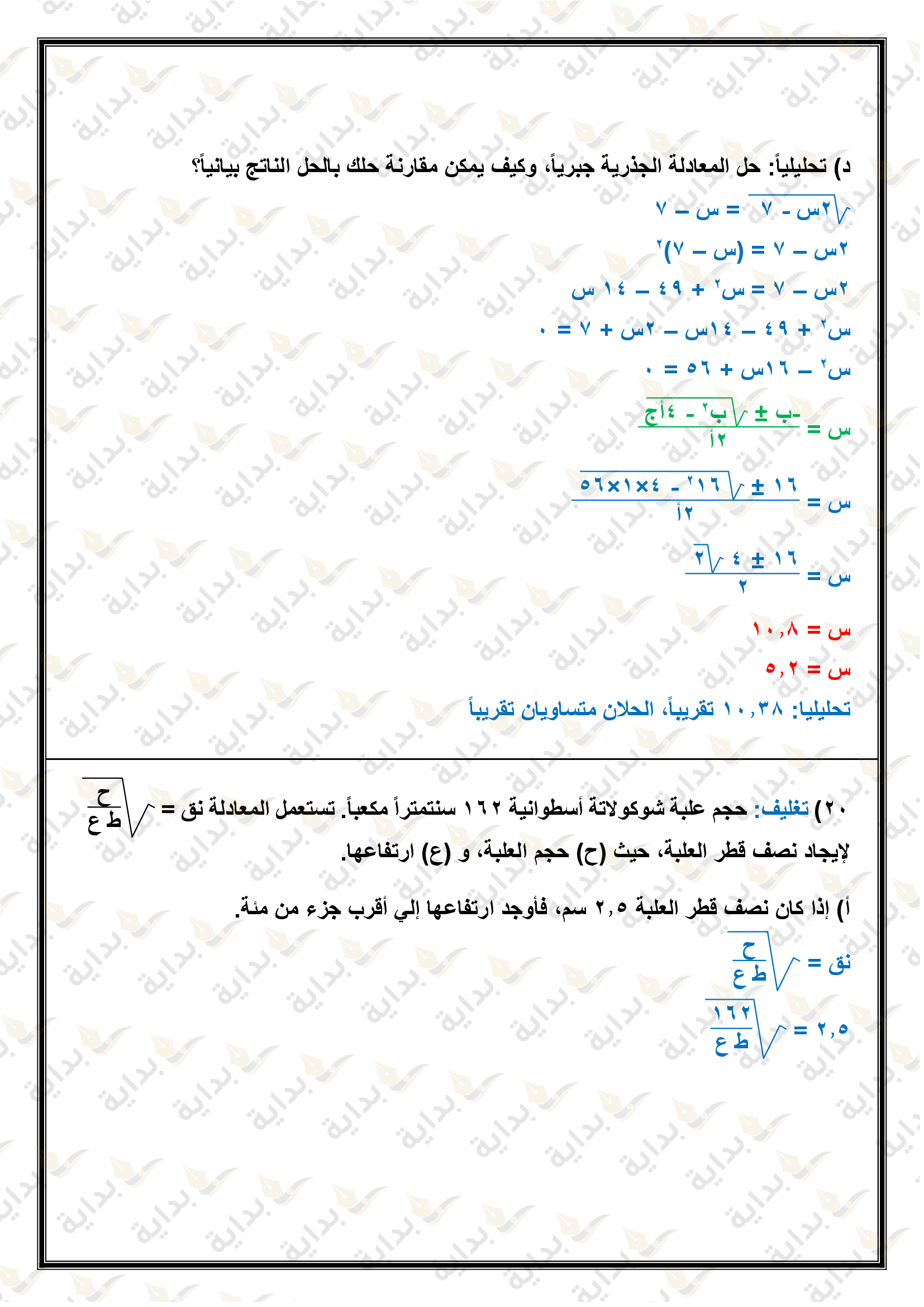 حل المعادلات التربيعية بإكمال المربع