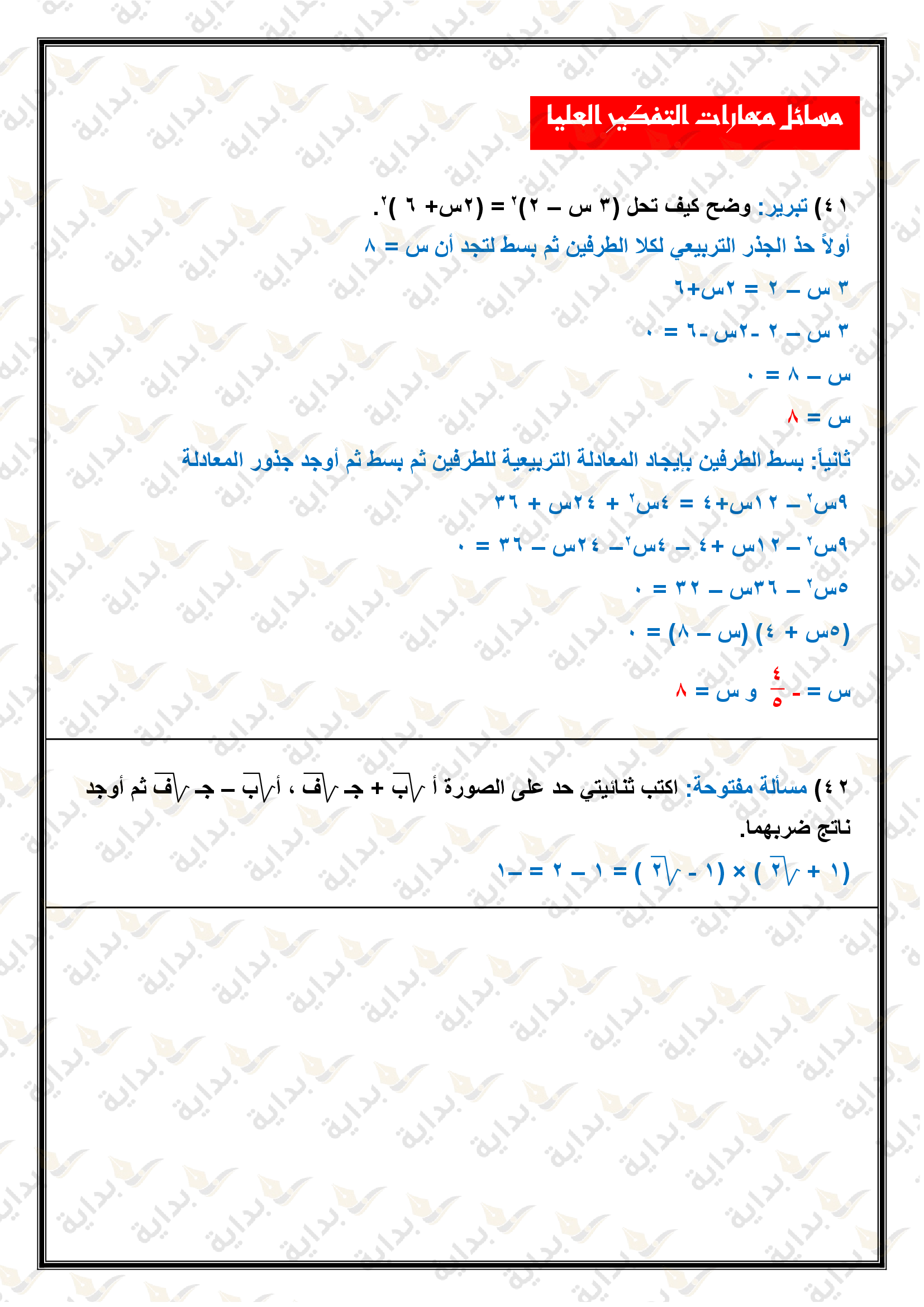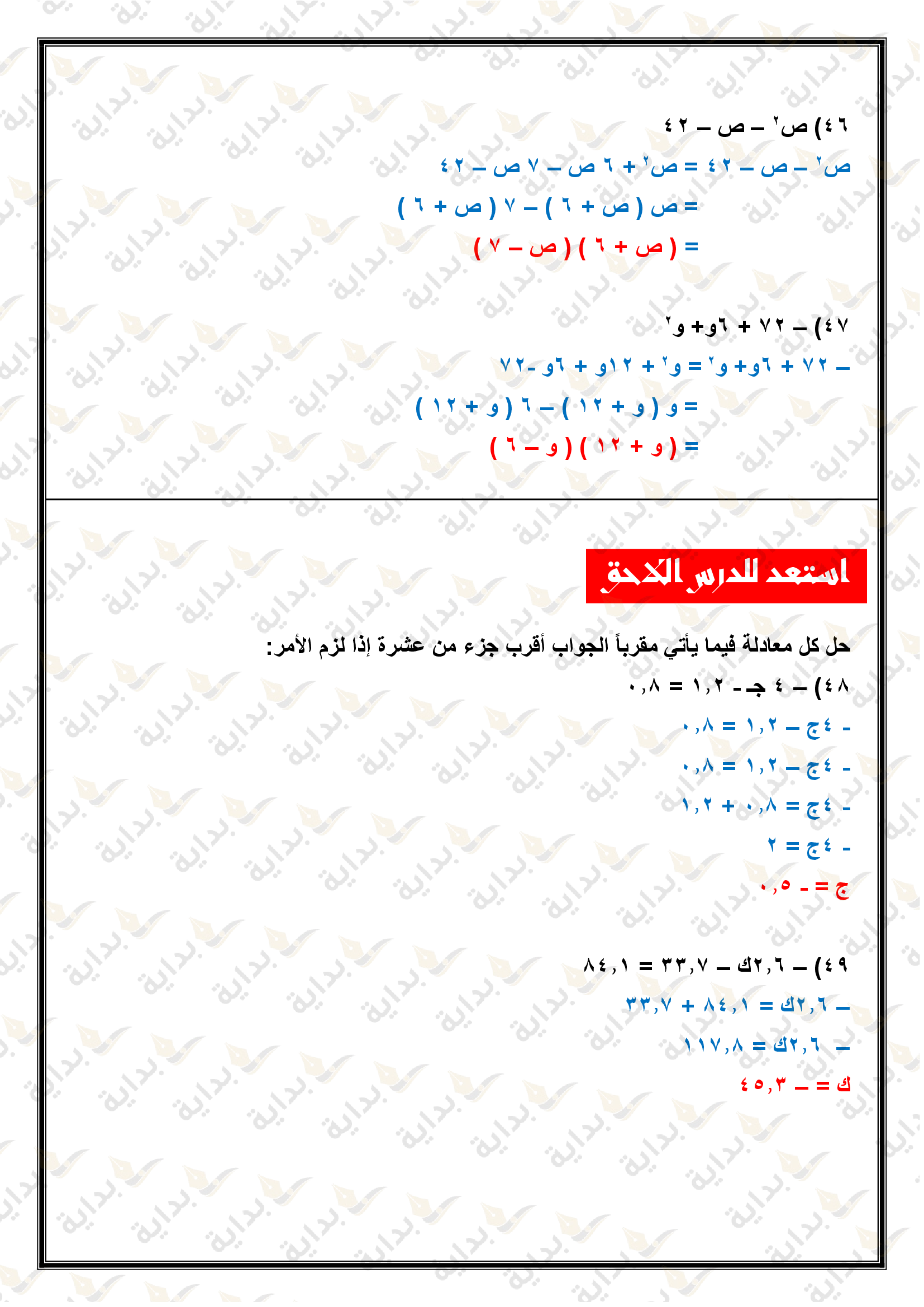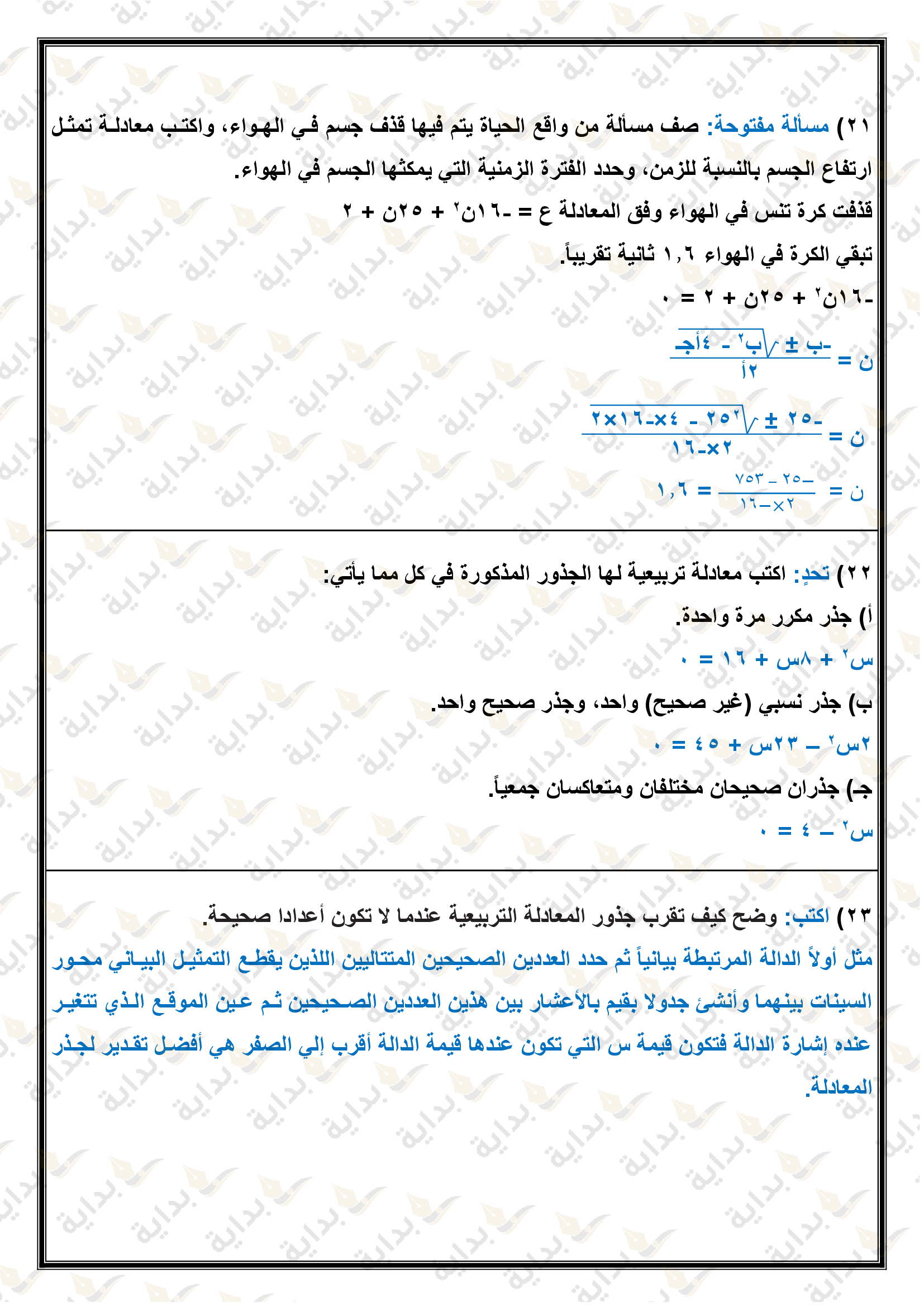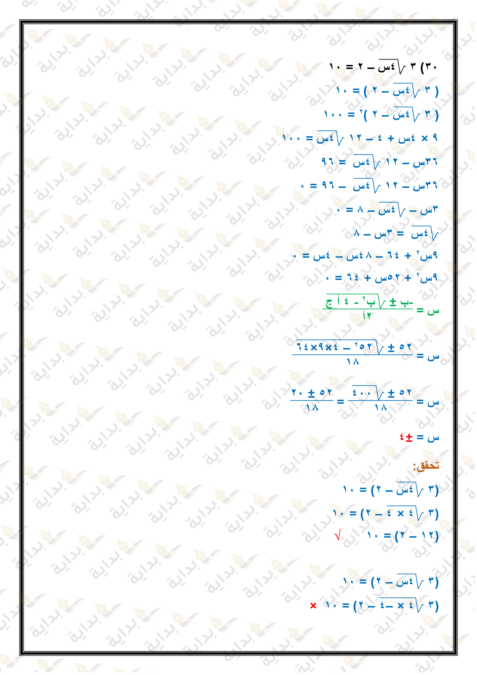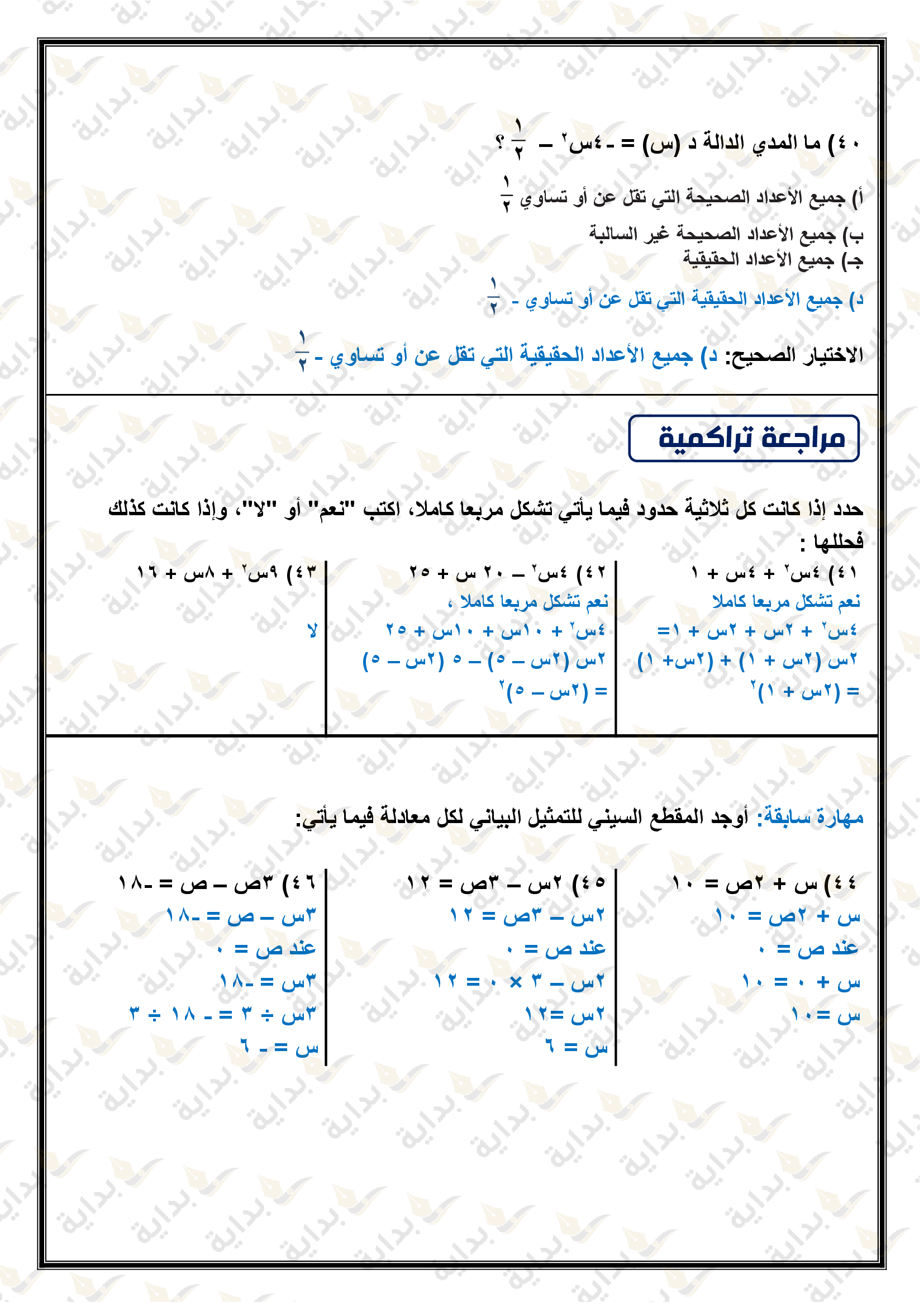 حل المعادلات التربيعية بإكمال المربع