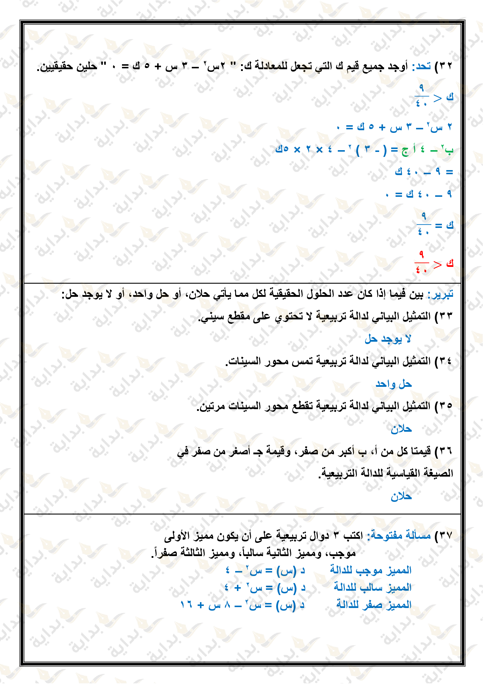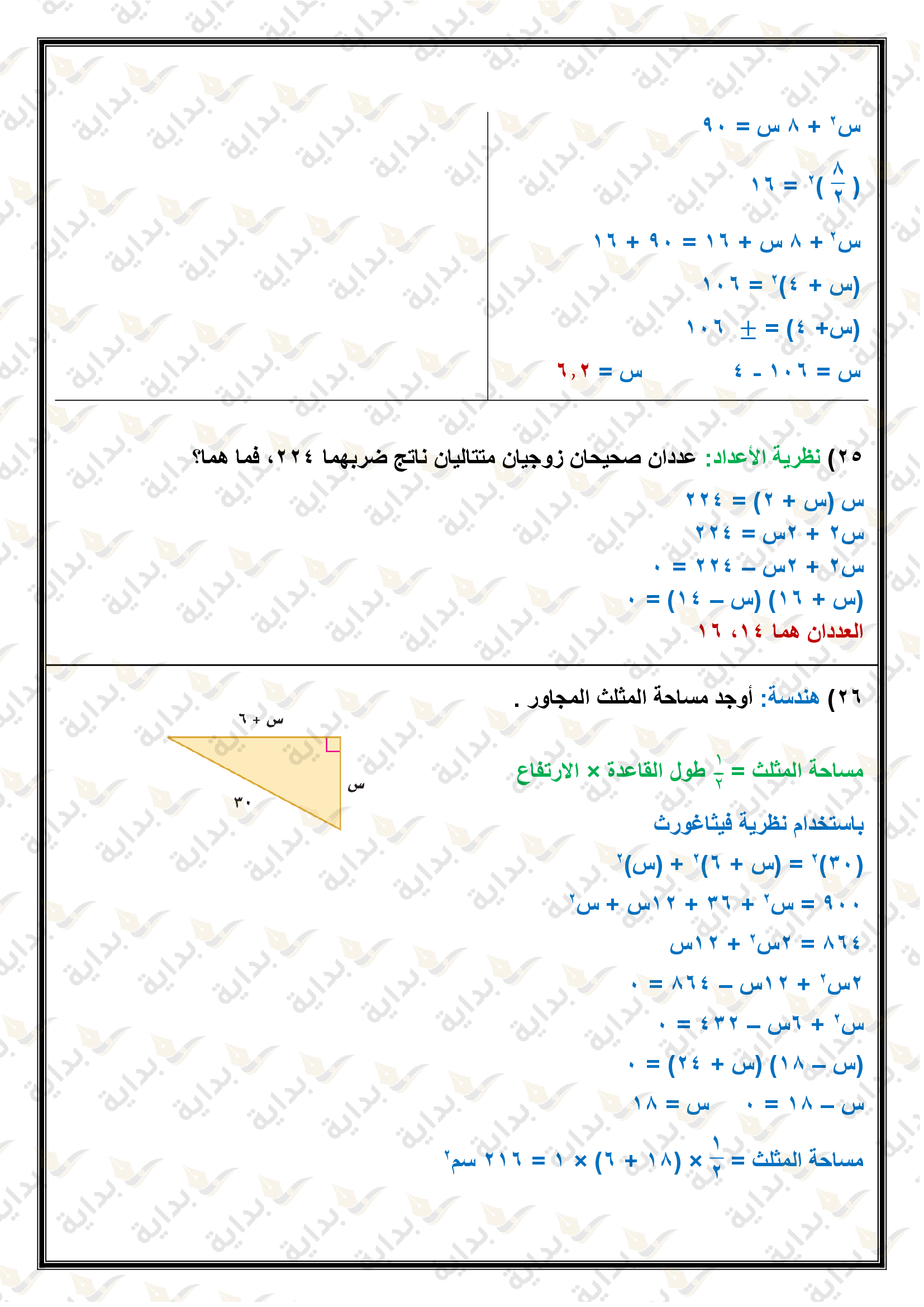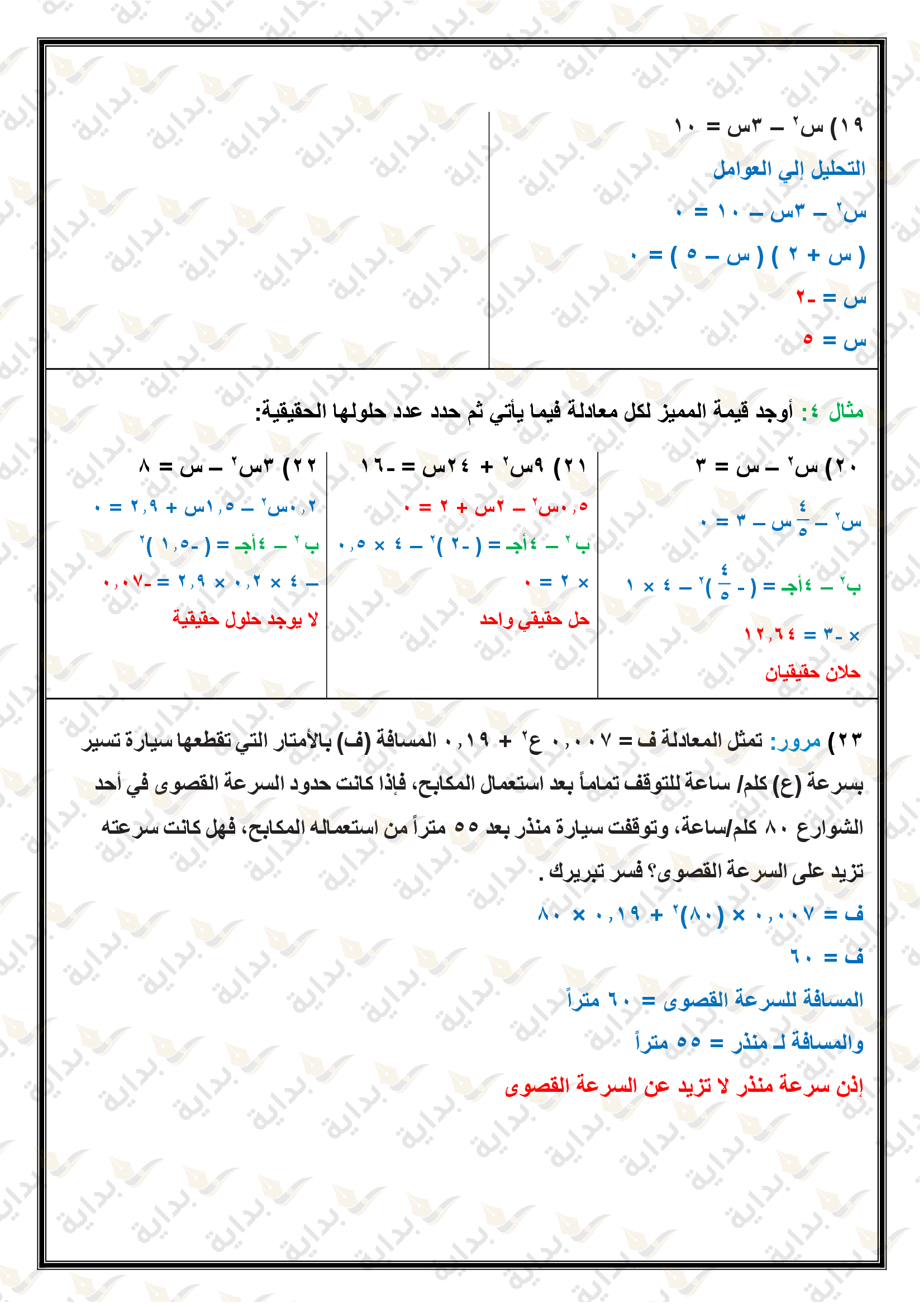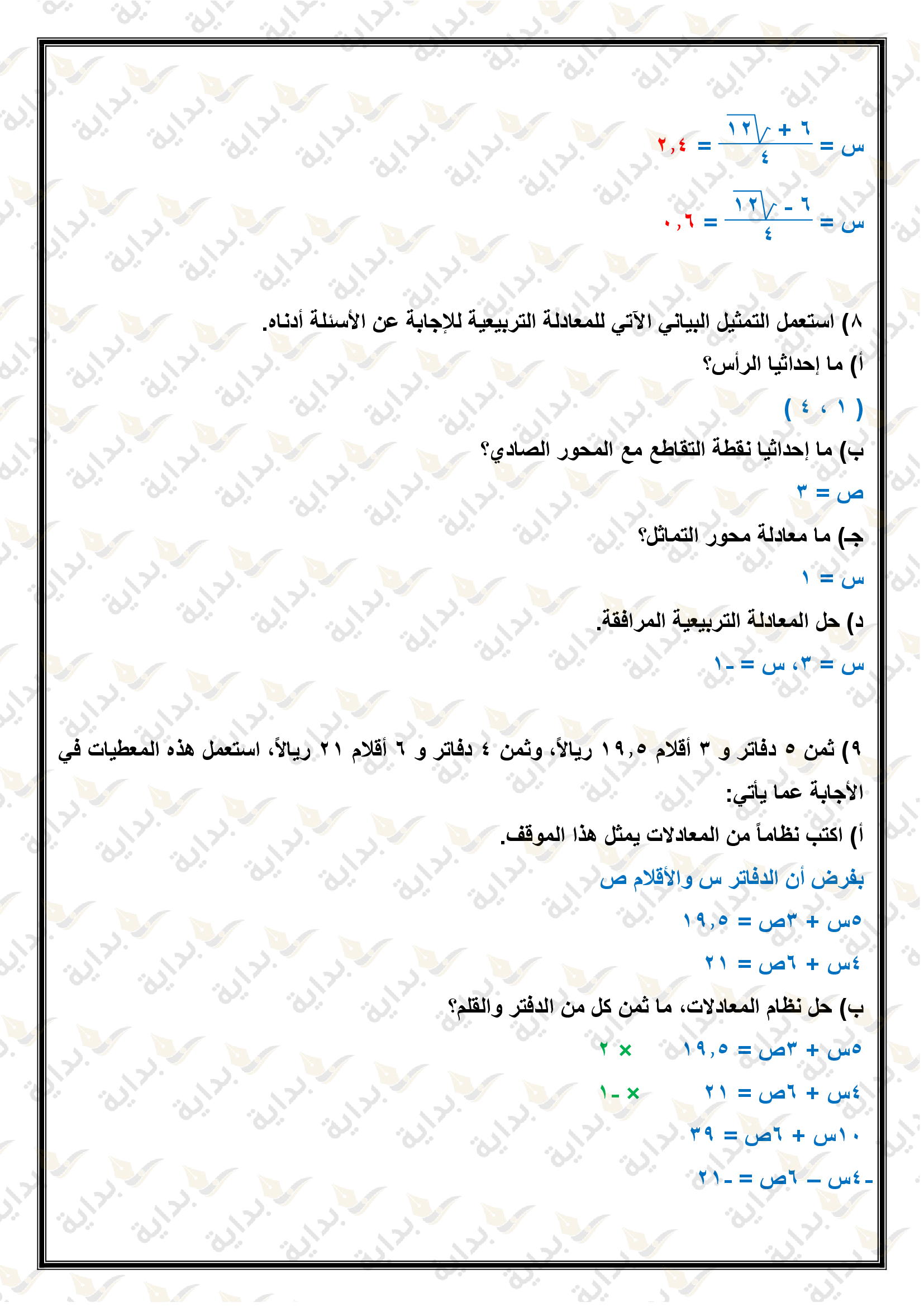 حل المعادلات التربيعية بإكمال المربع
