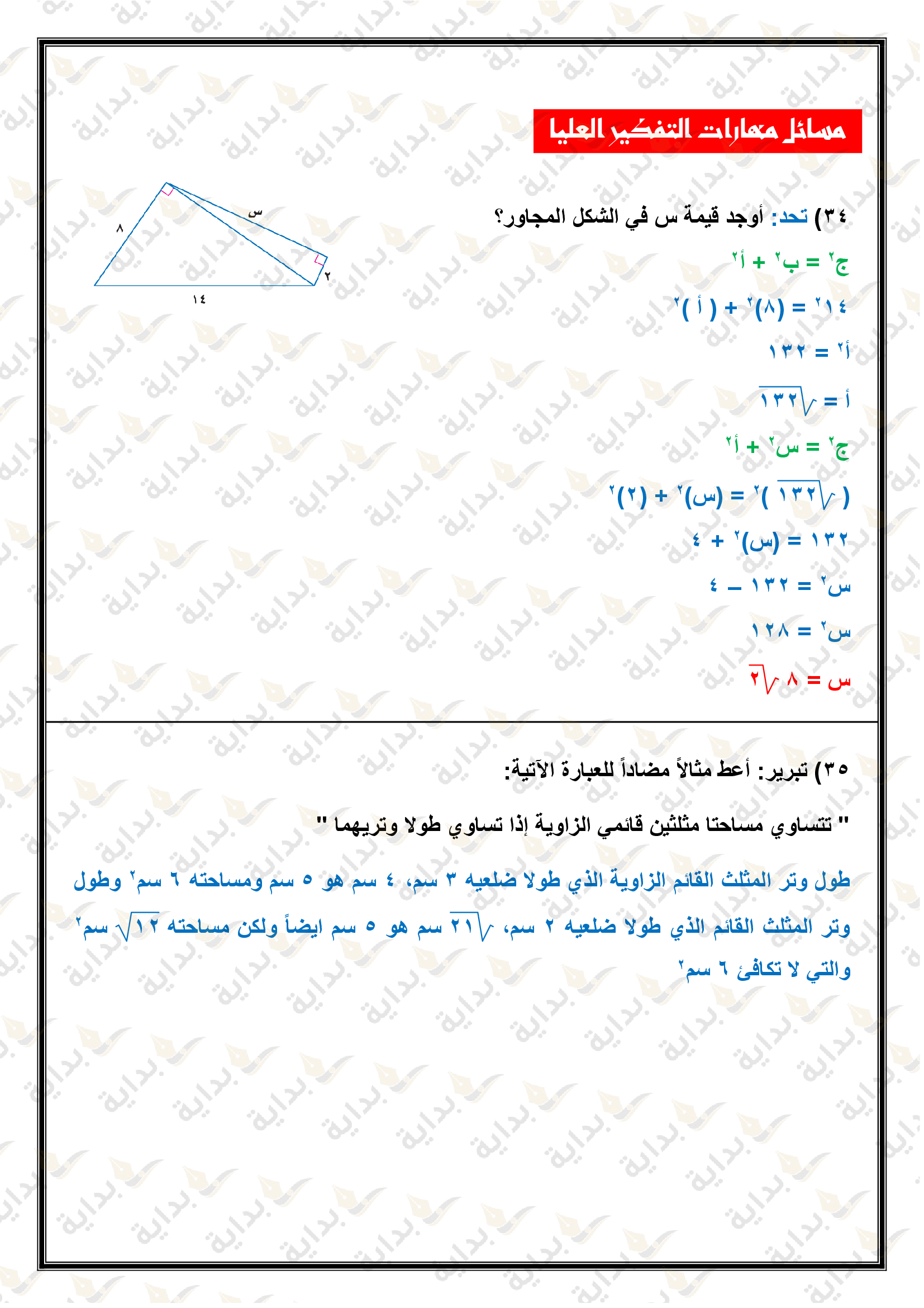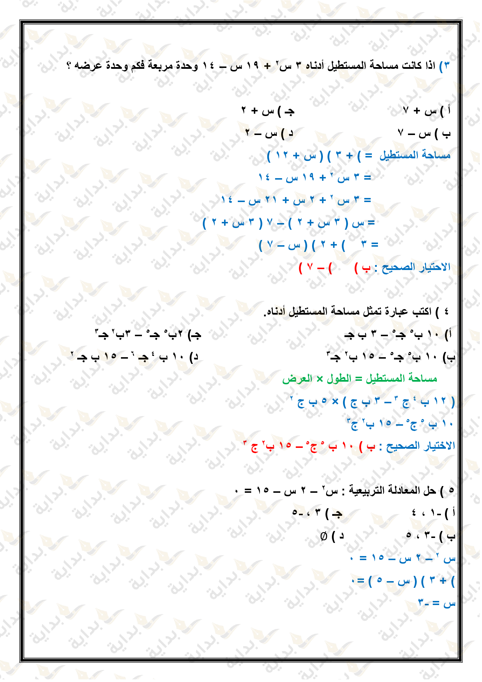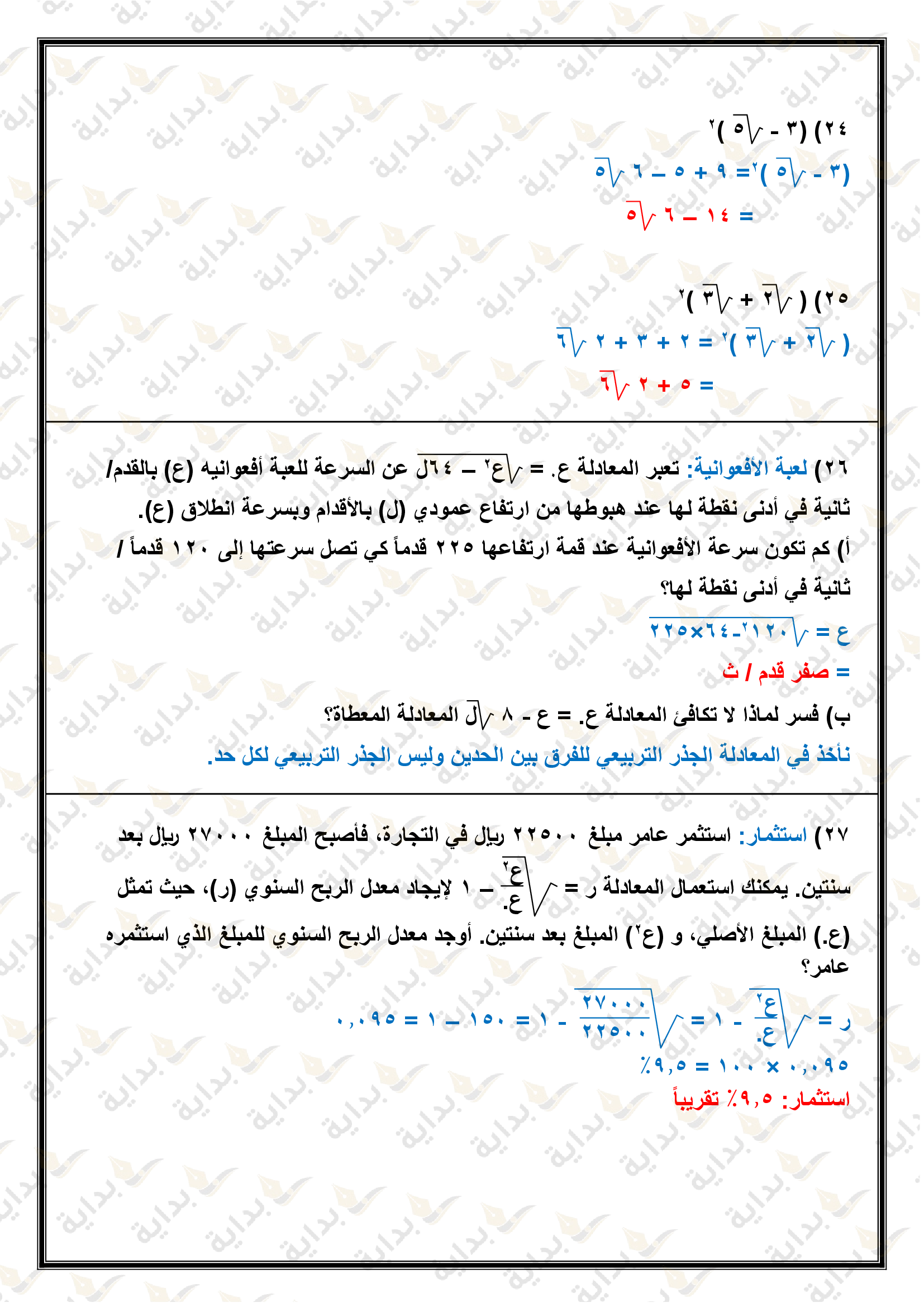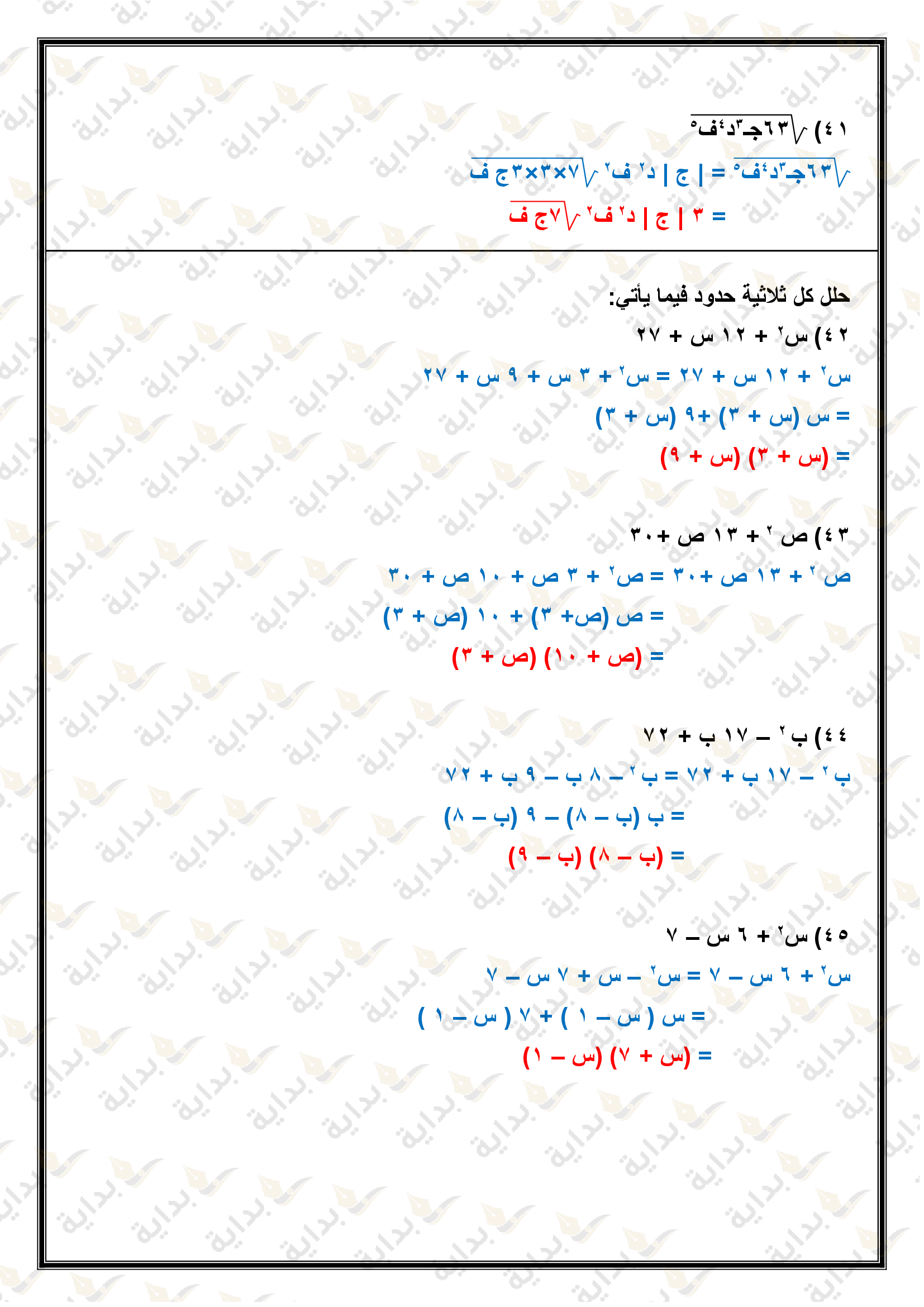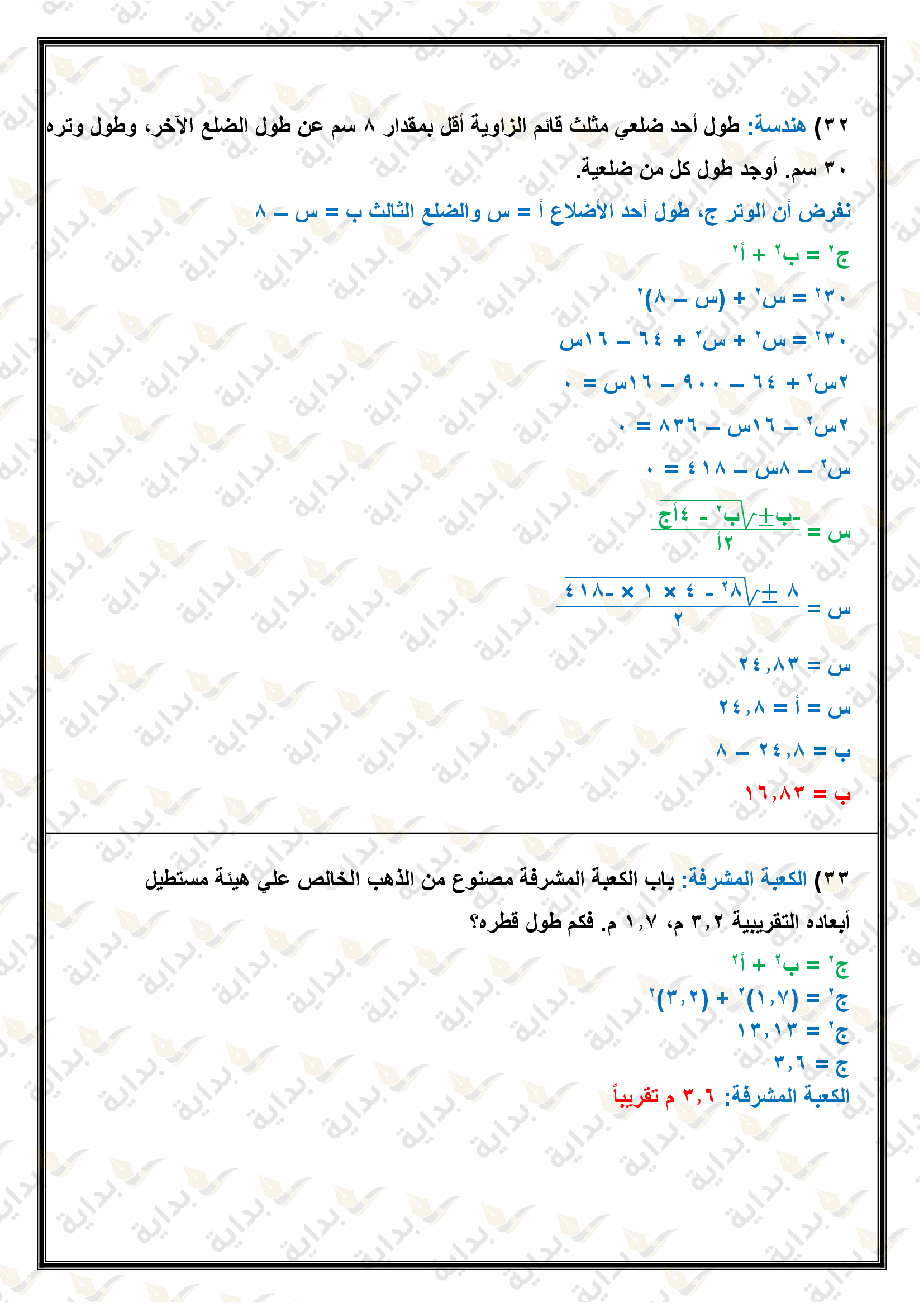 حل المعادلات التربيعية بإكمال المربع