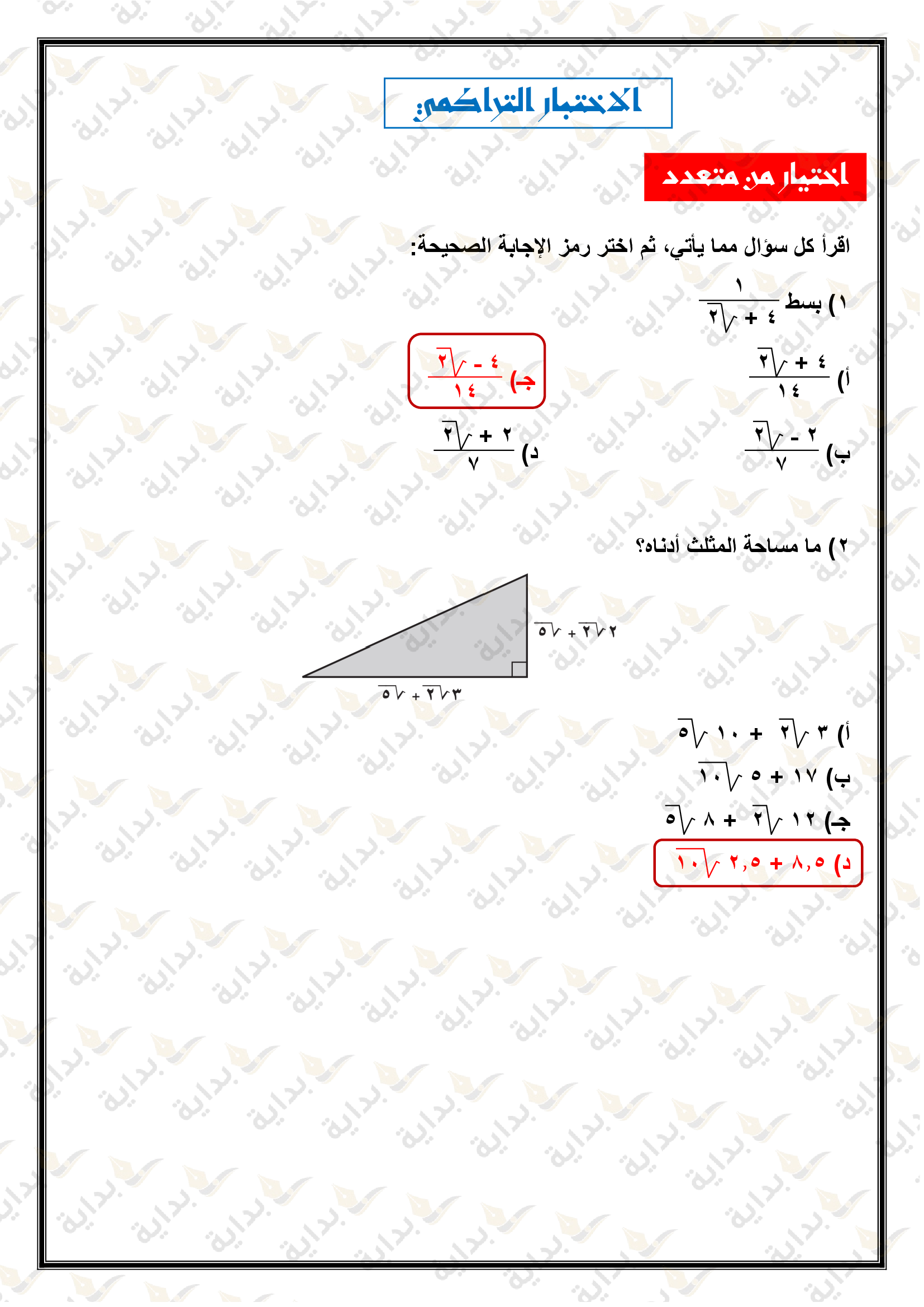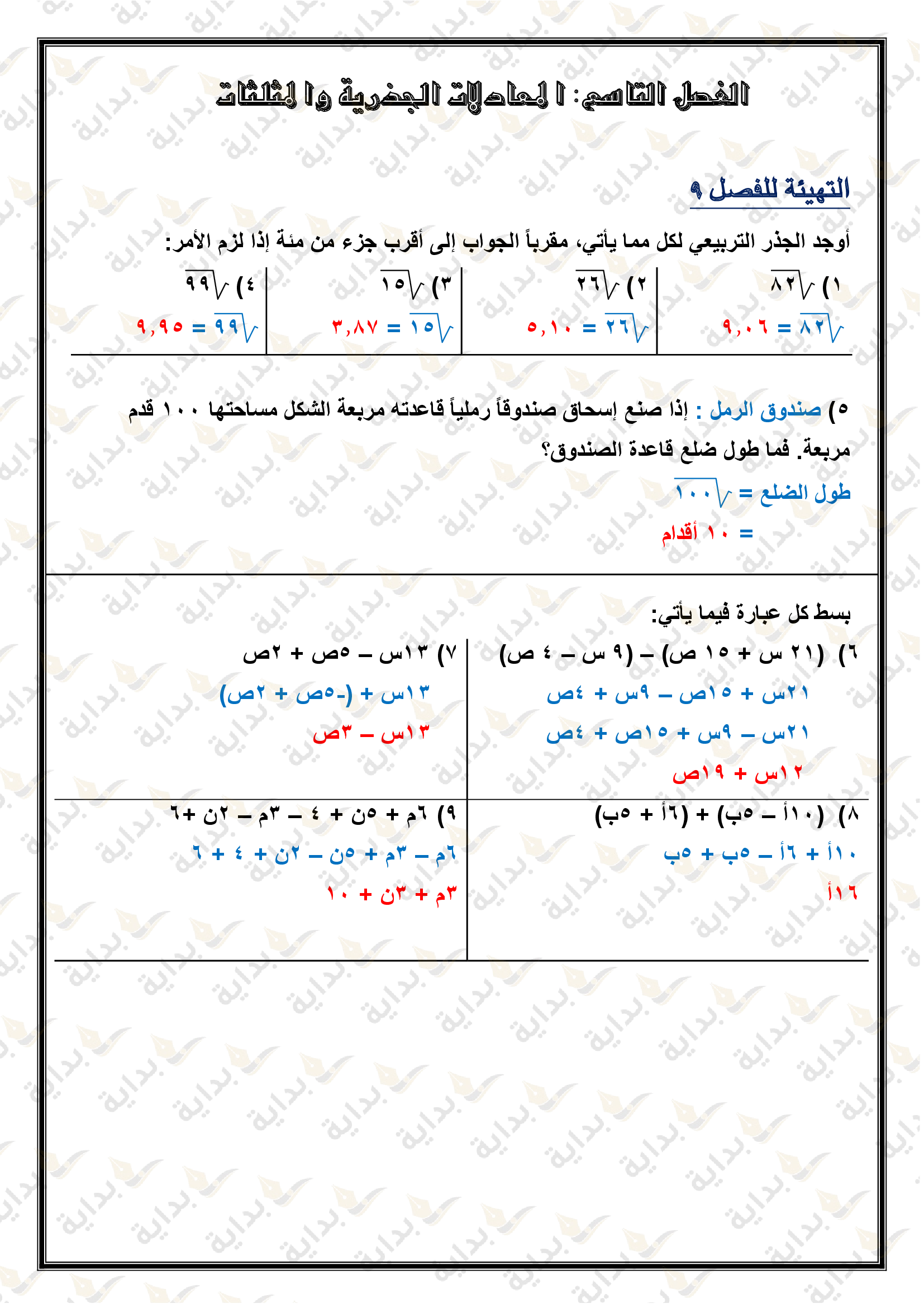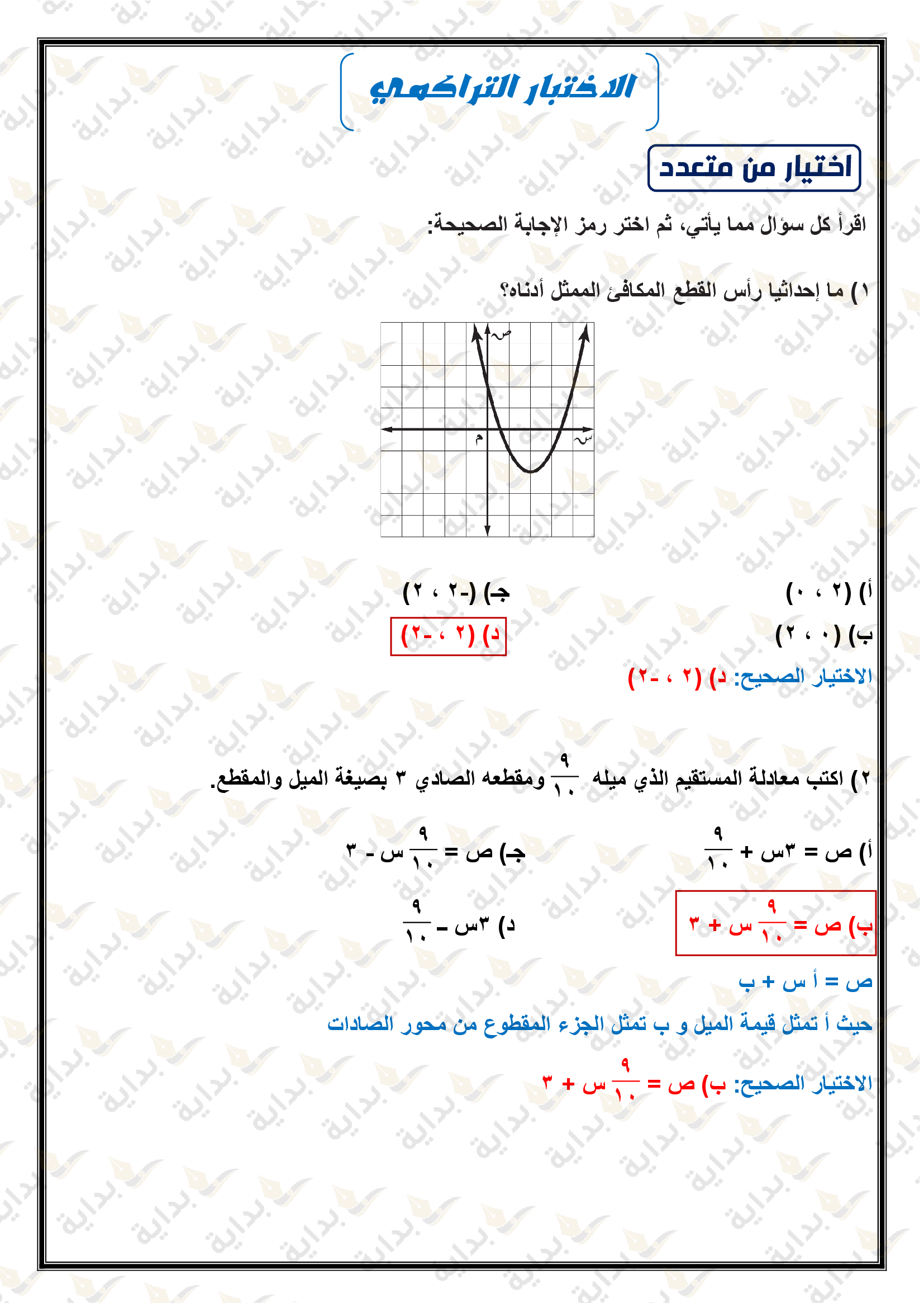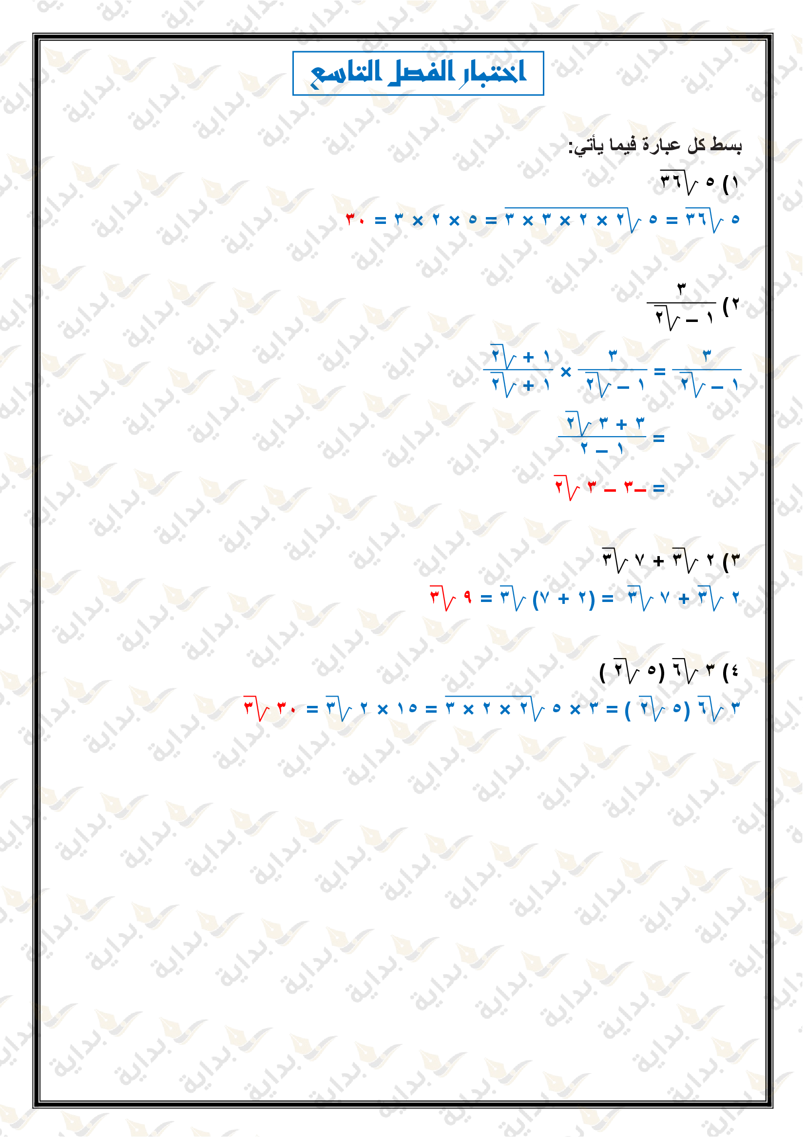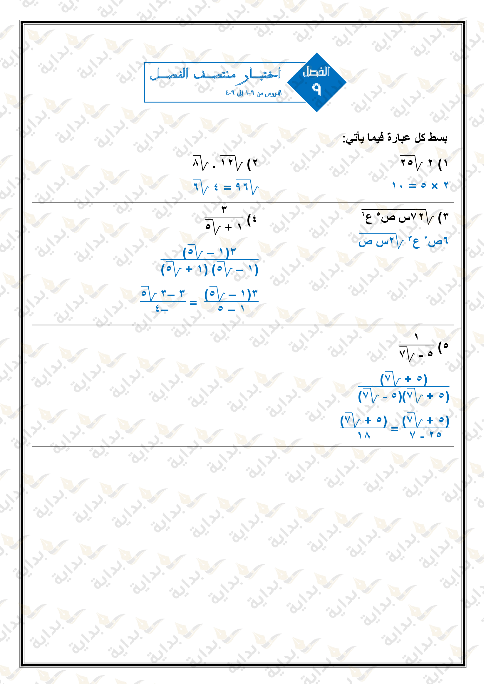 اختبار الفصل التاسع