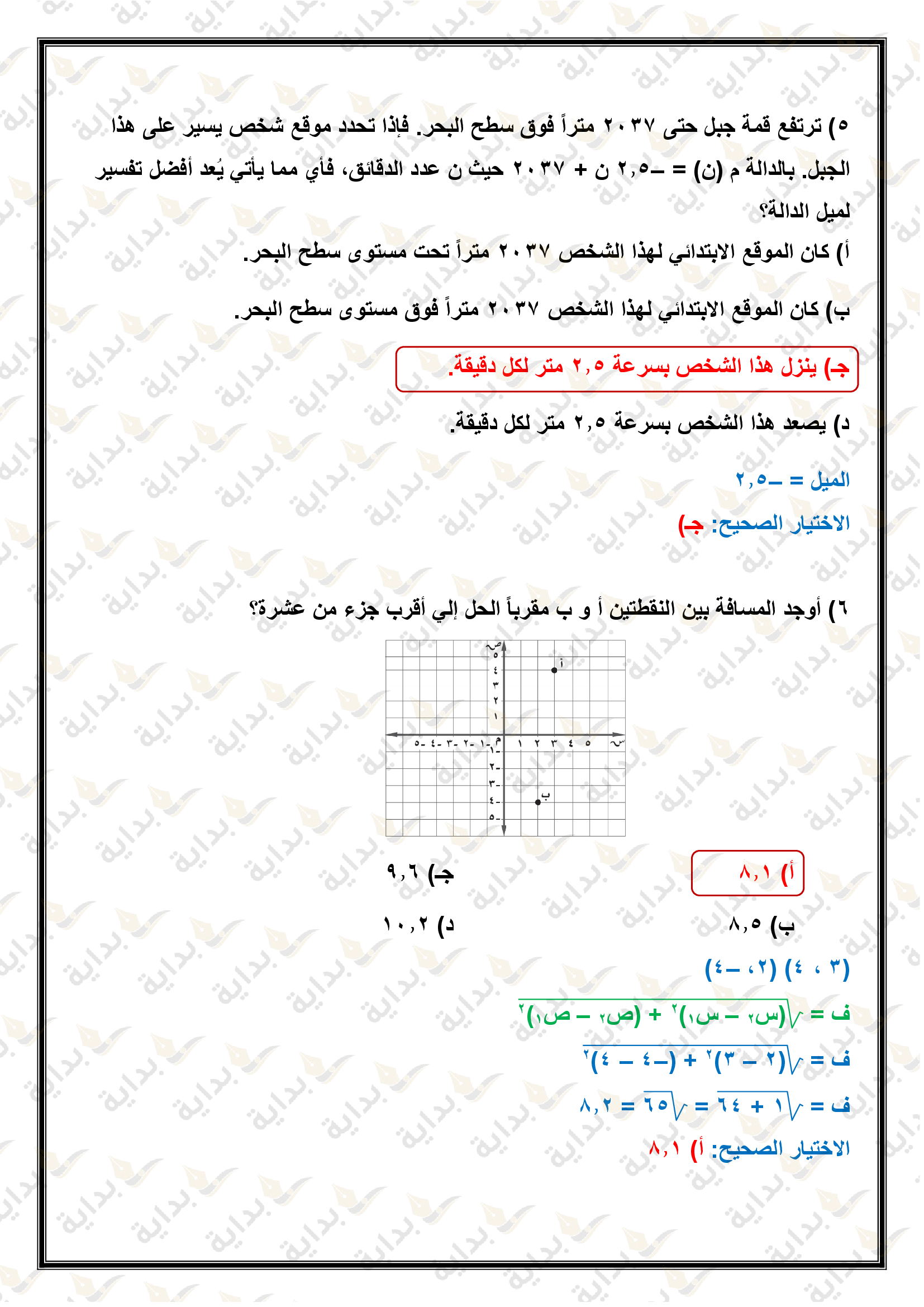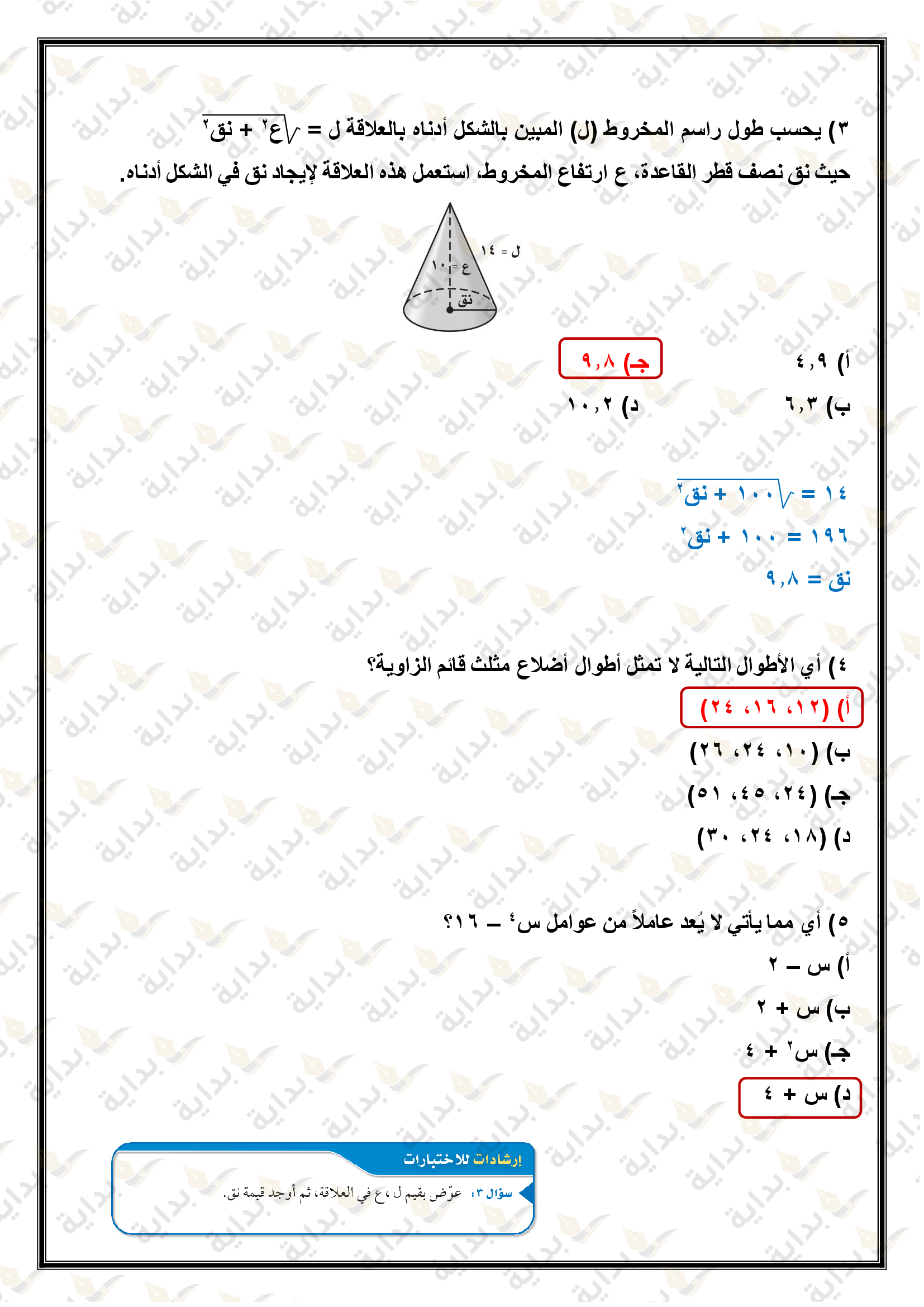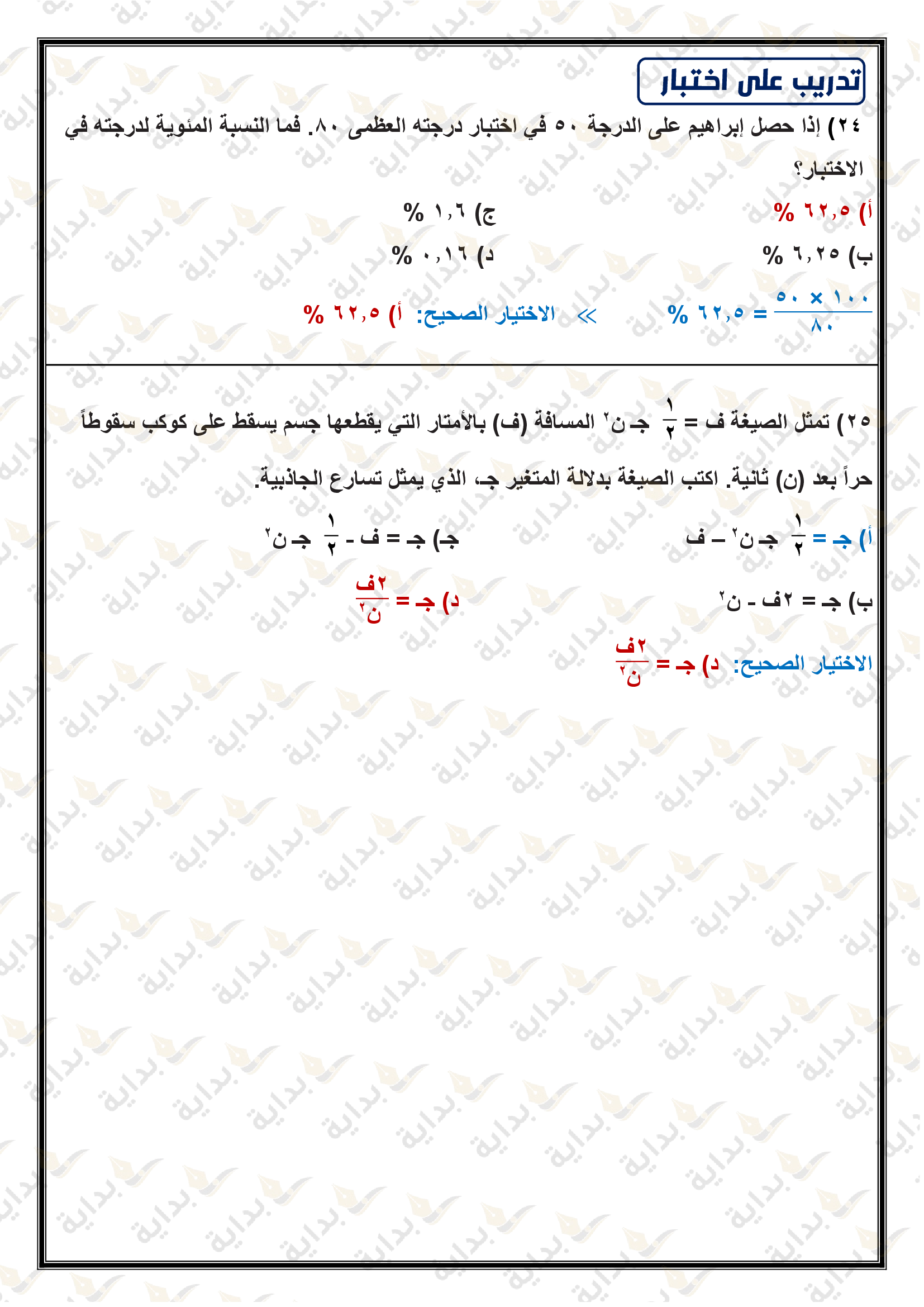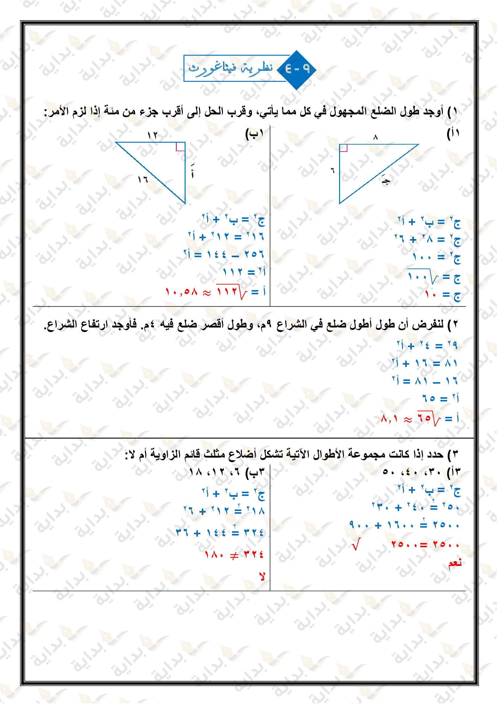 اختبار الفصل التاسع