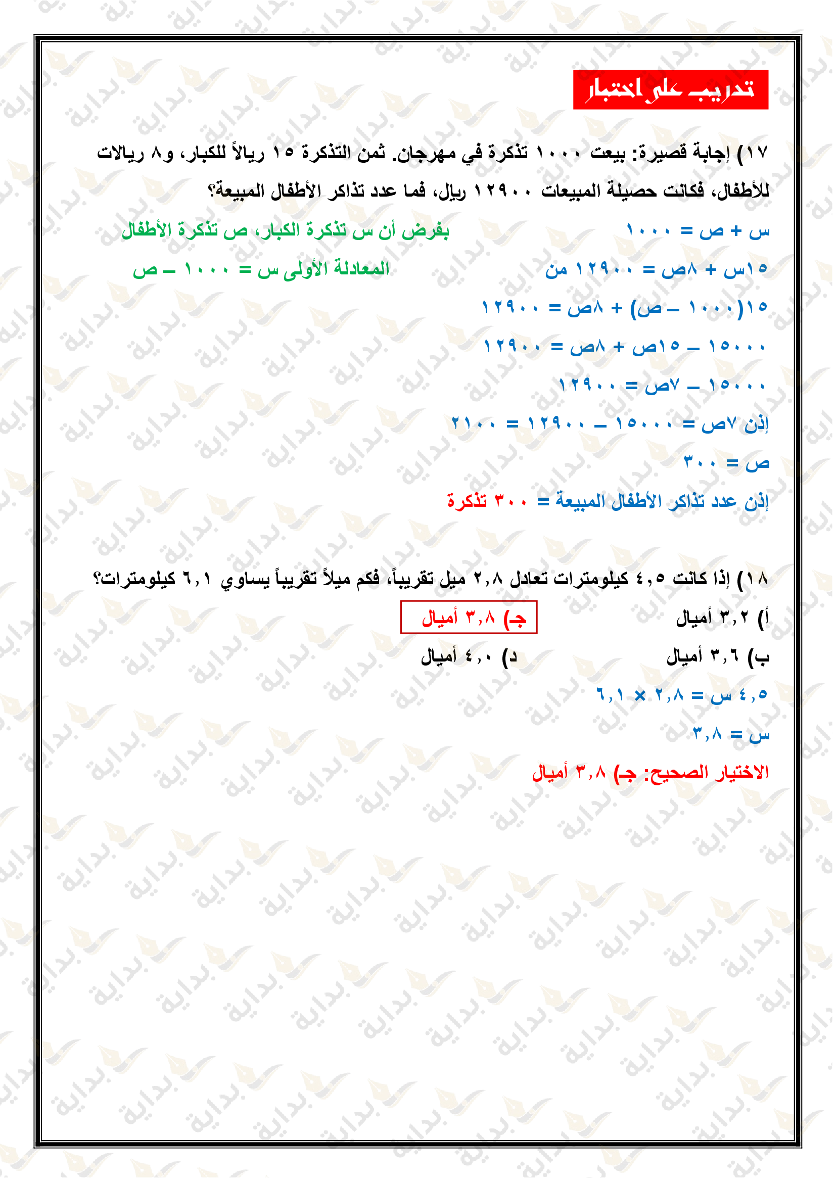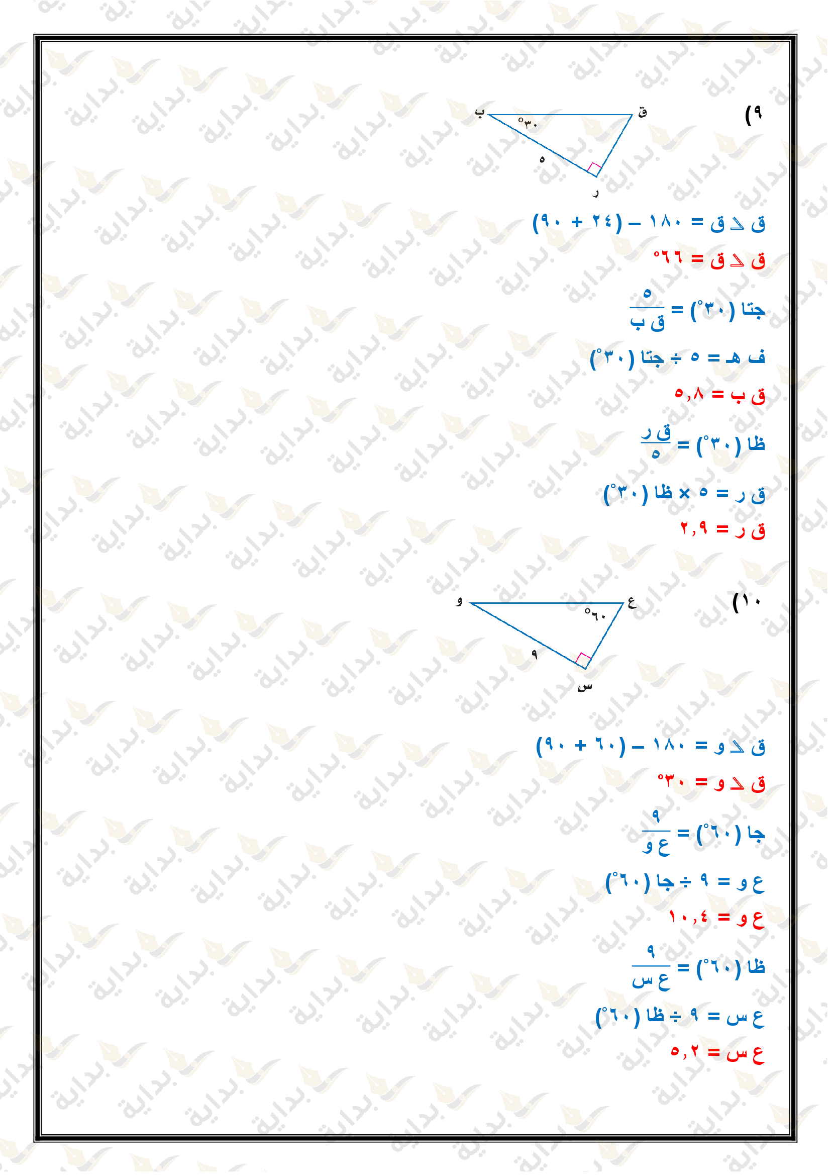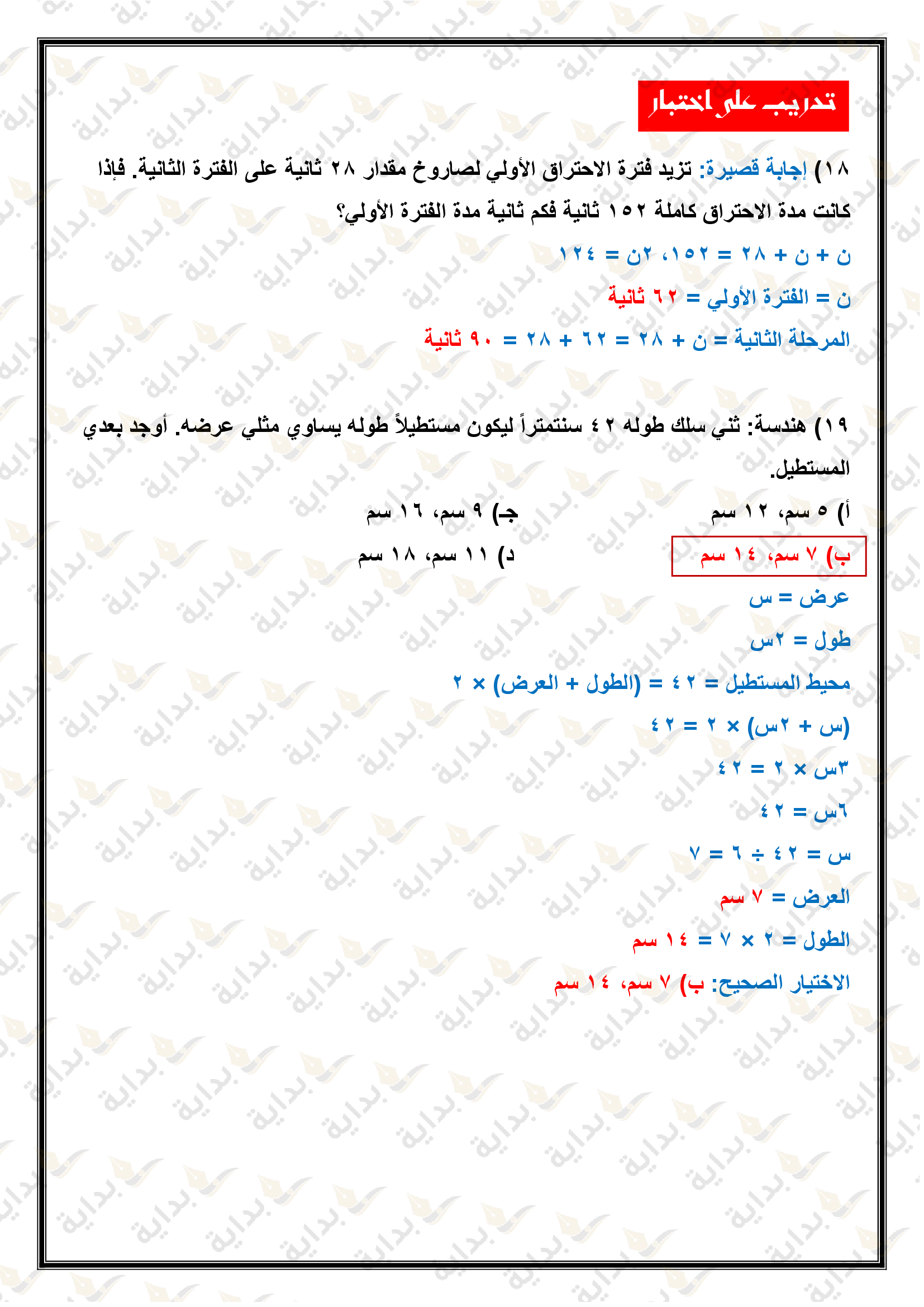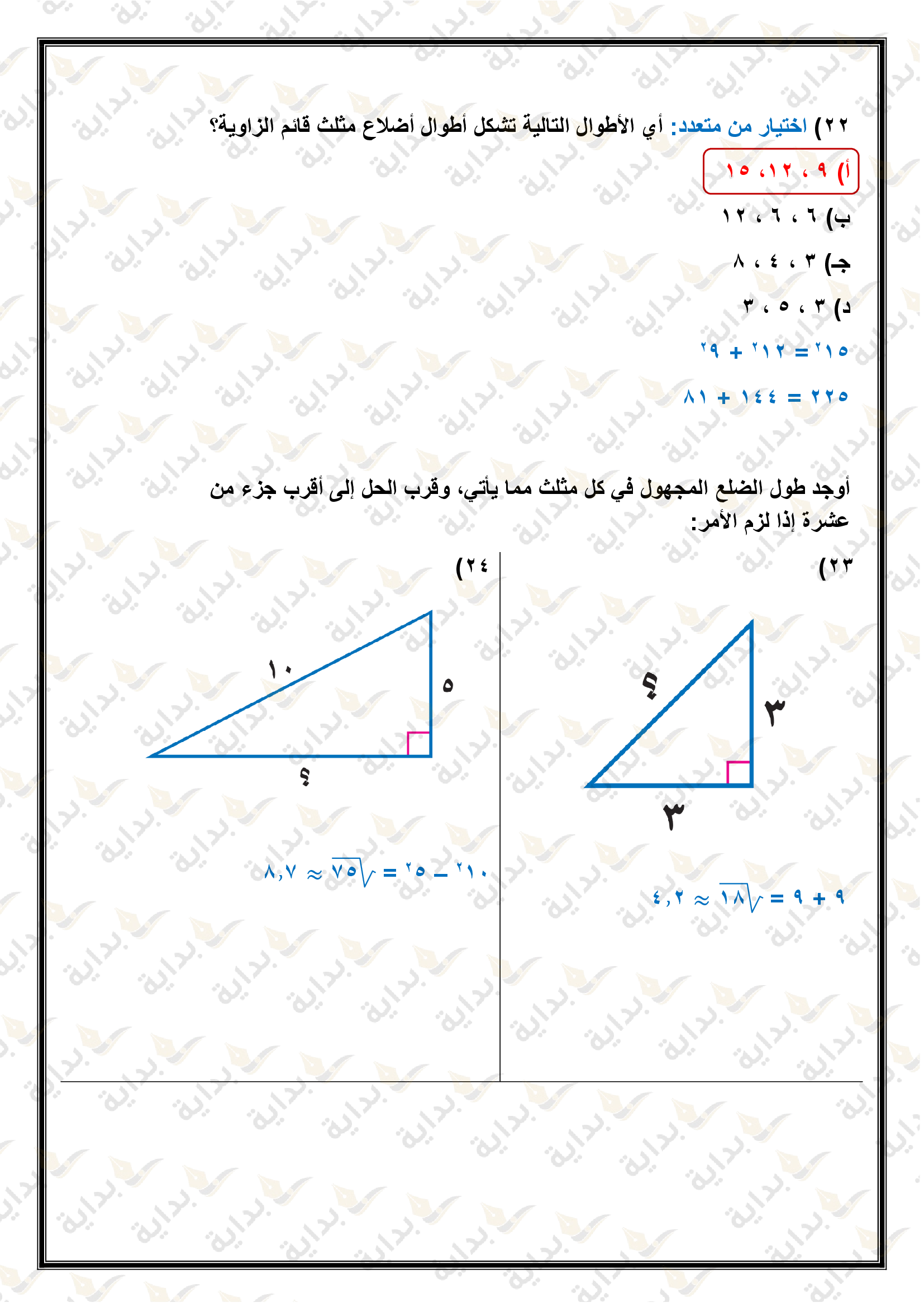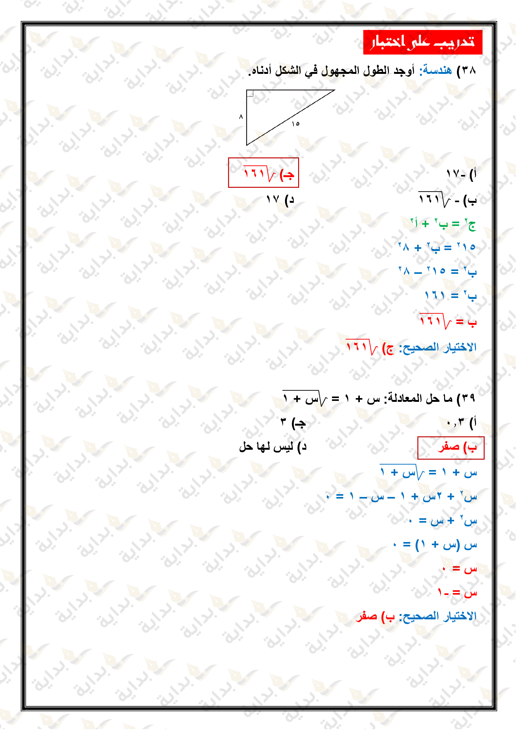 اختبار الفصل التاسع