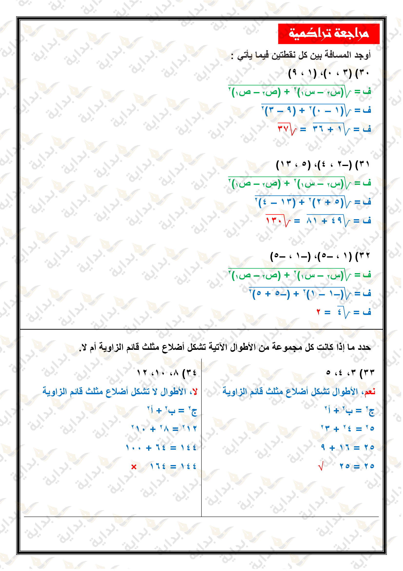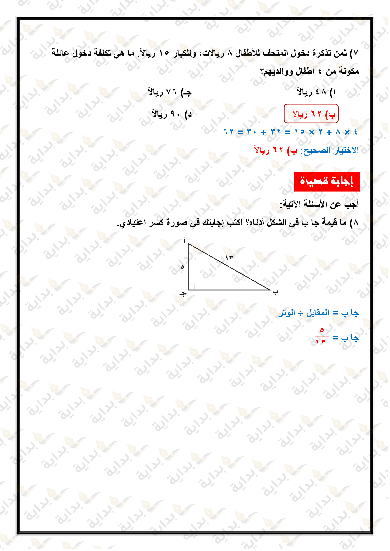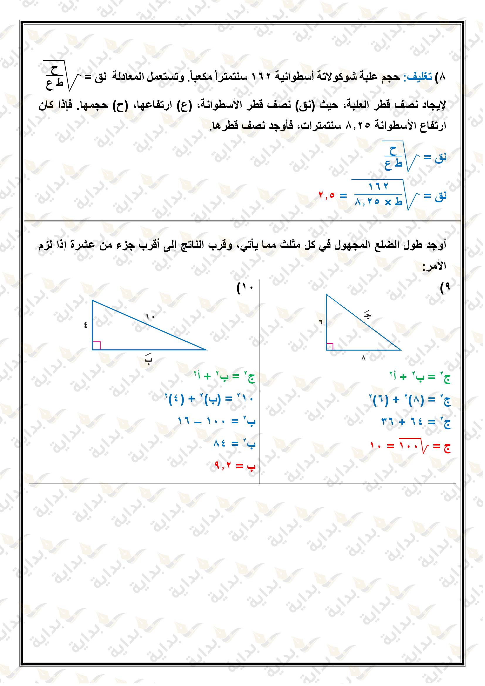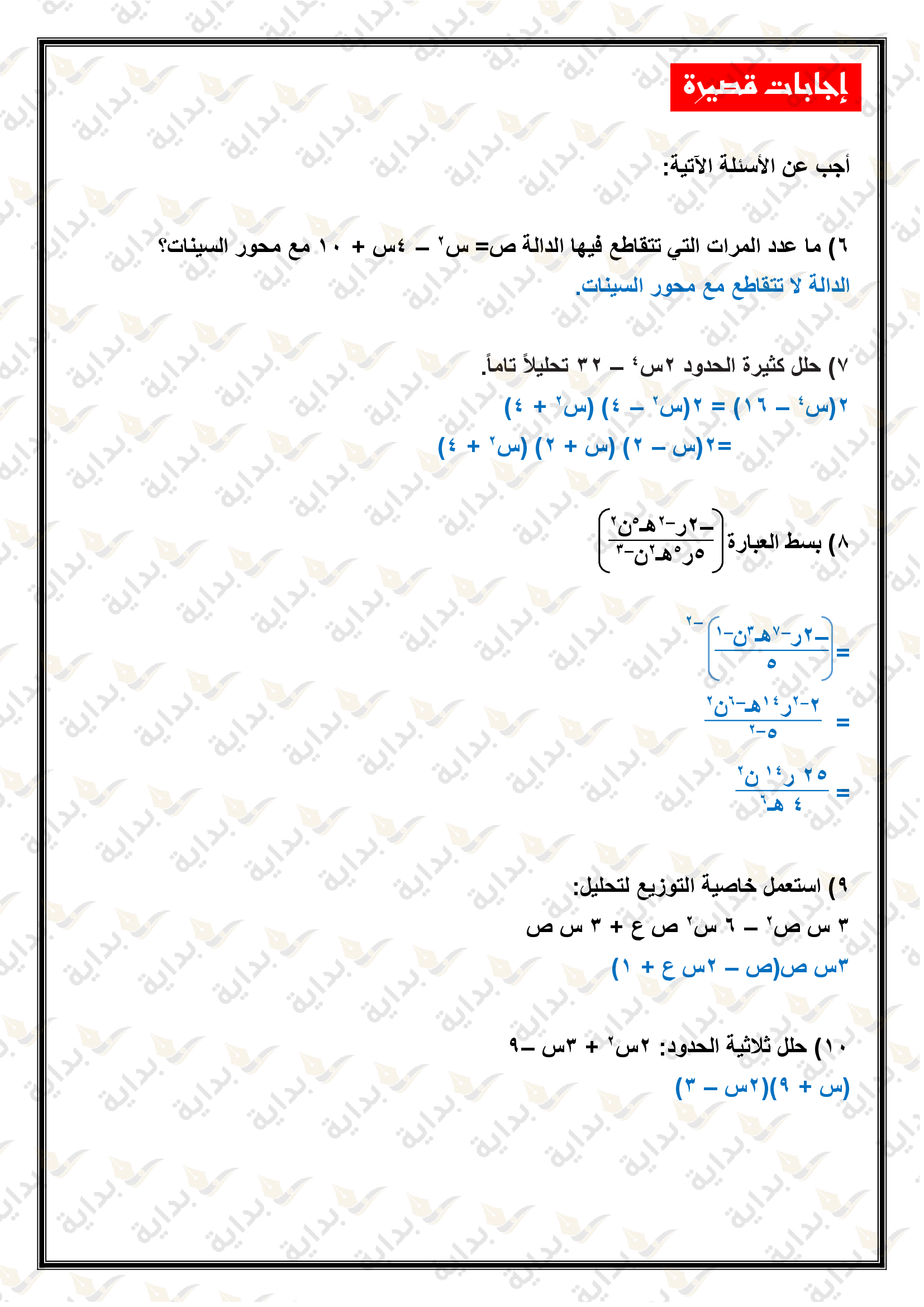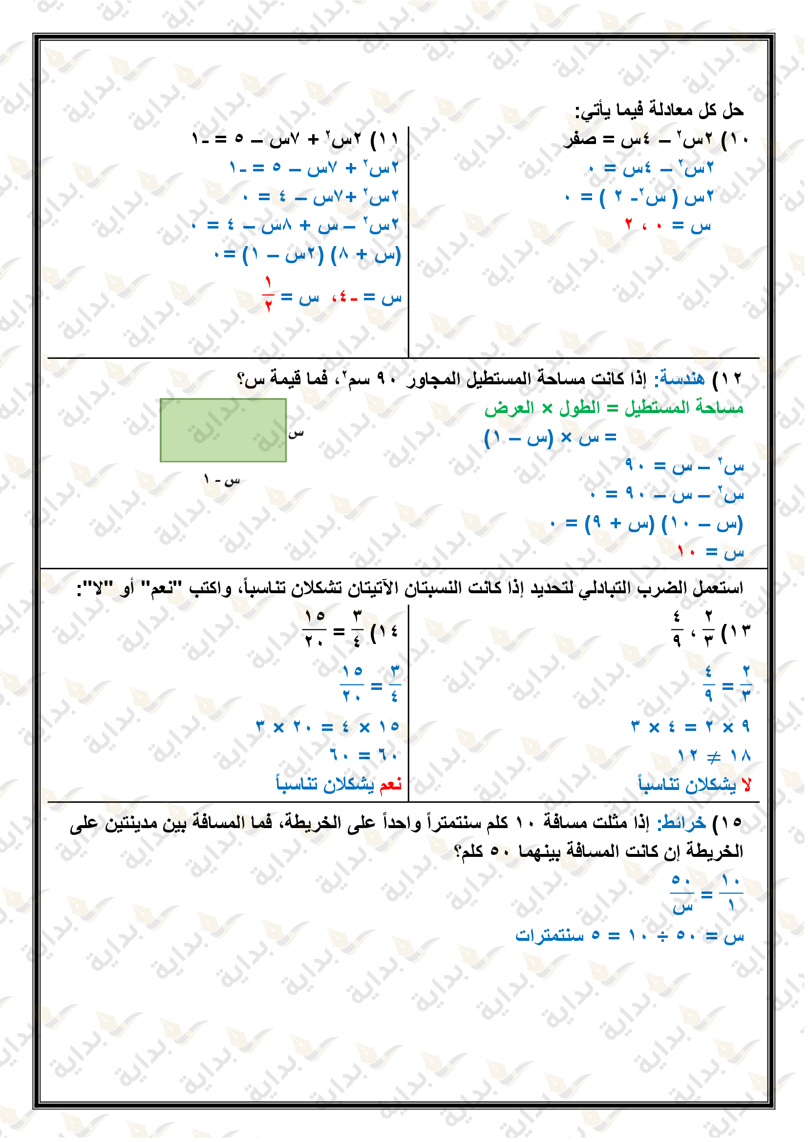 اختبار الفصل التاسع