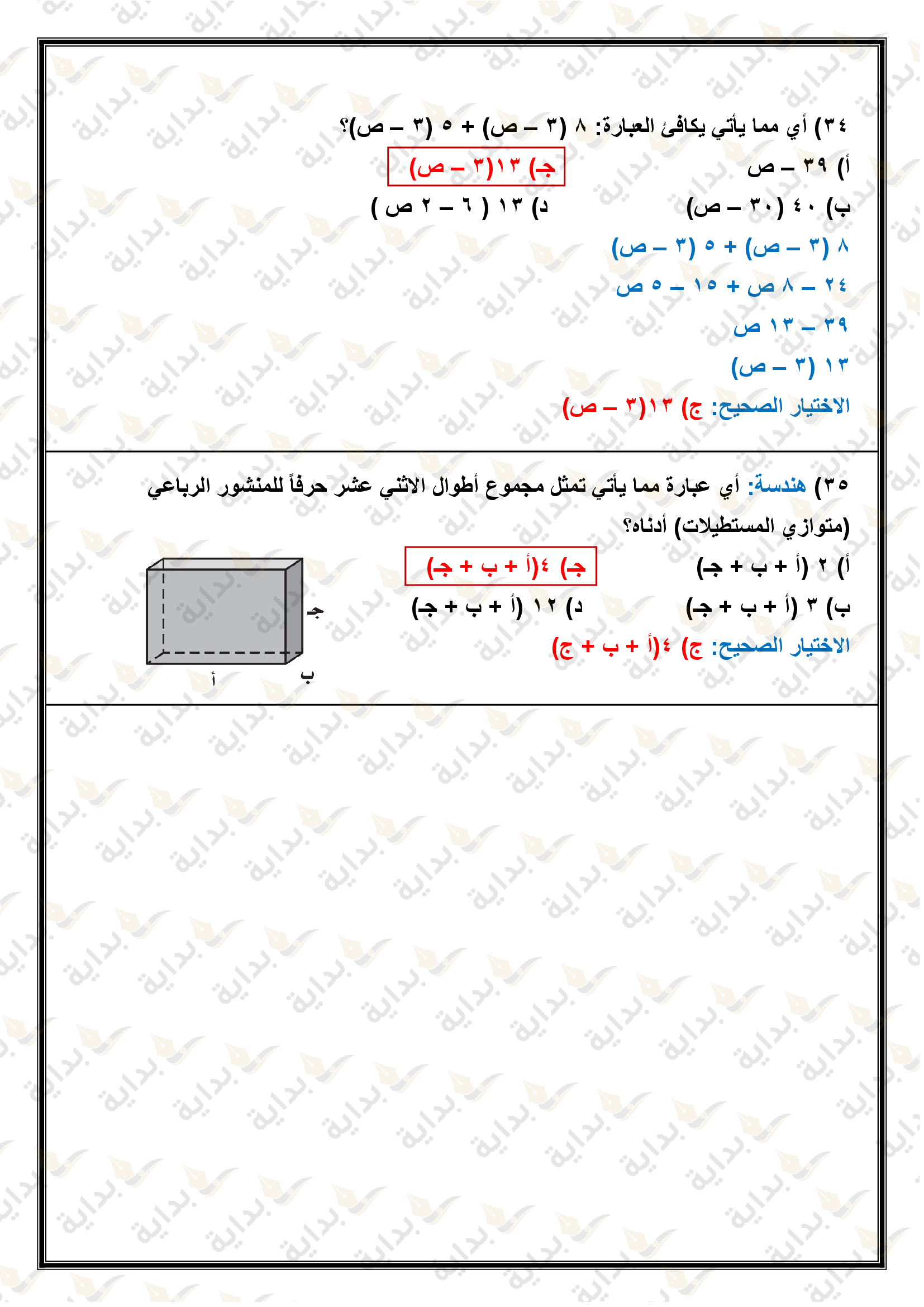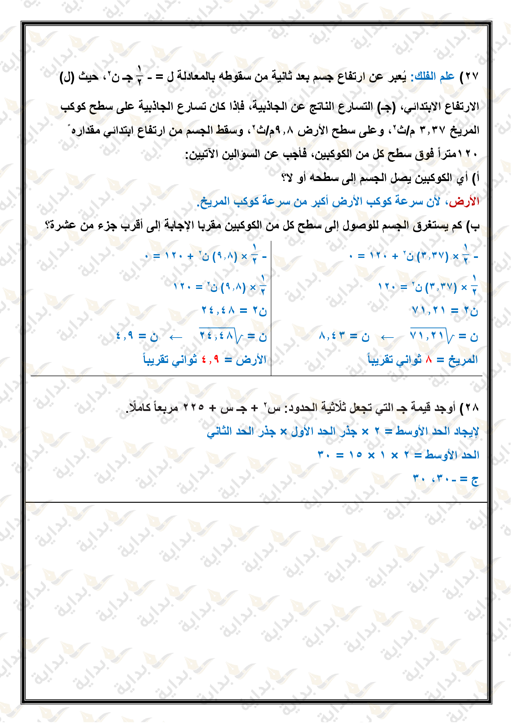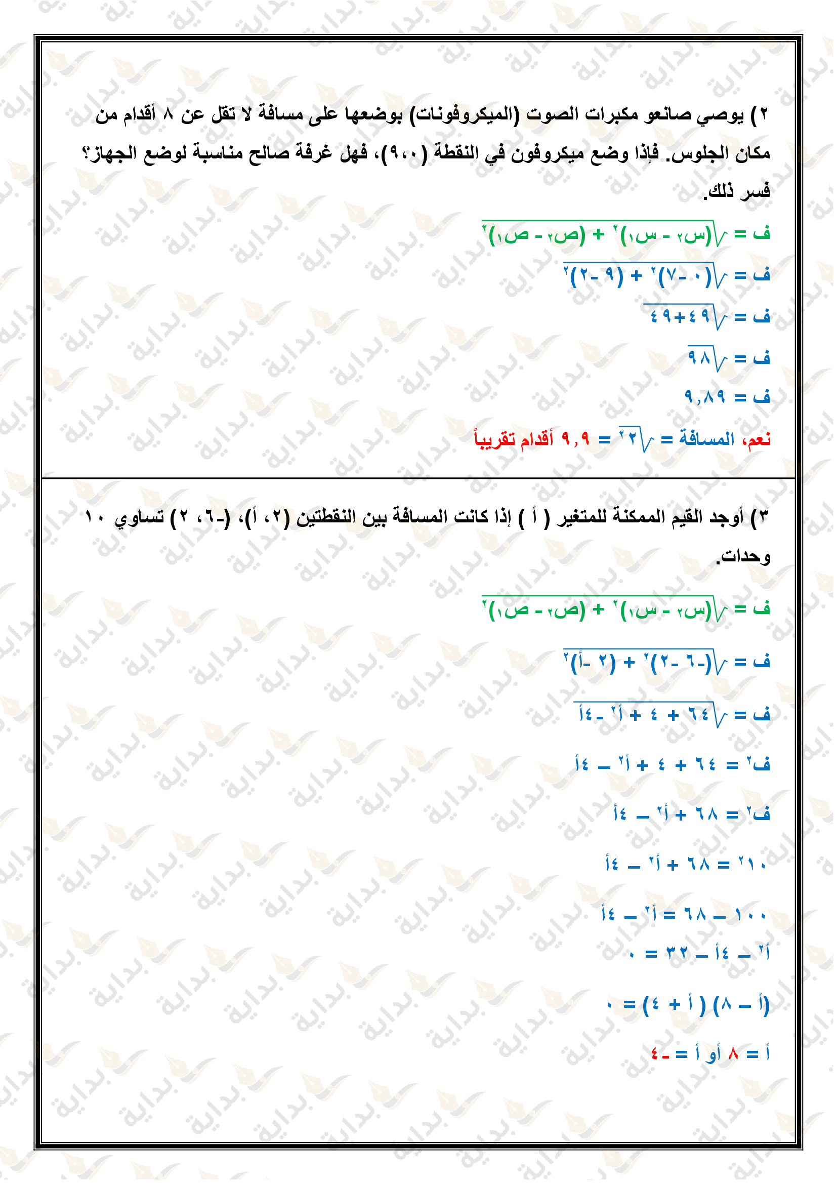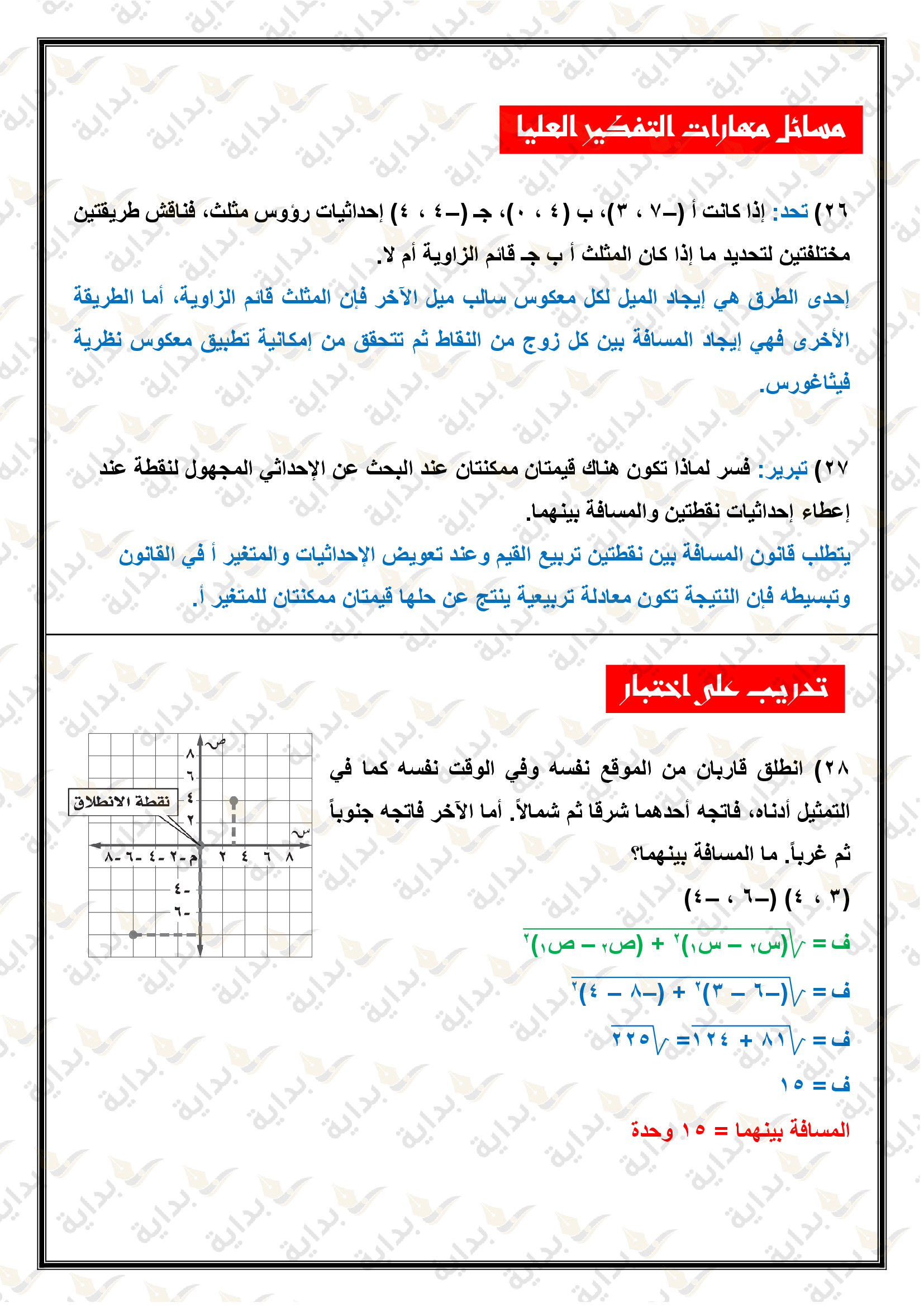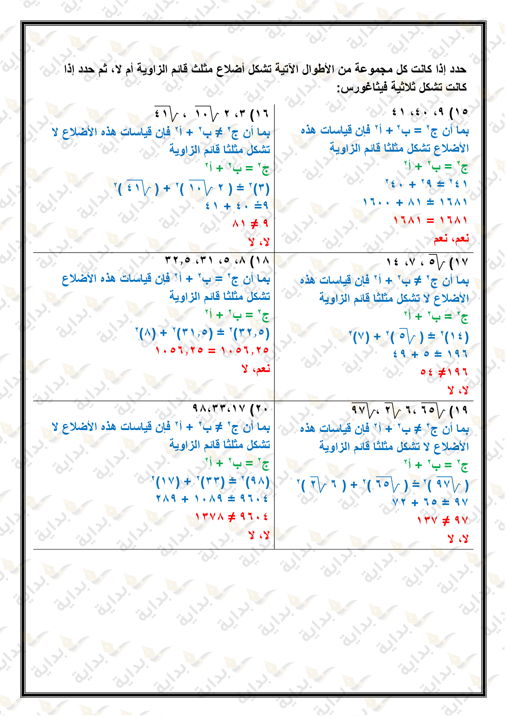 اختبار الفصل التاسع