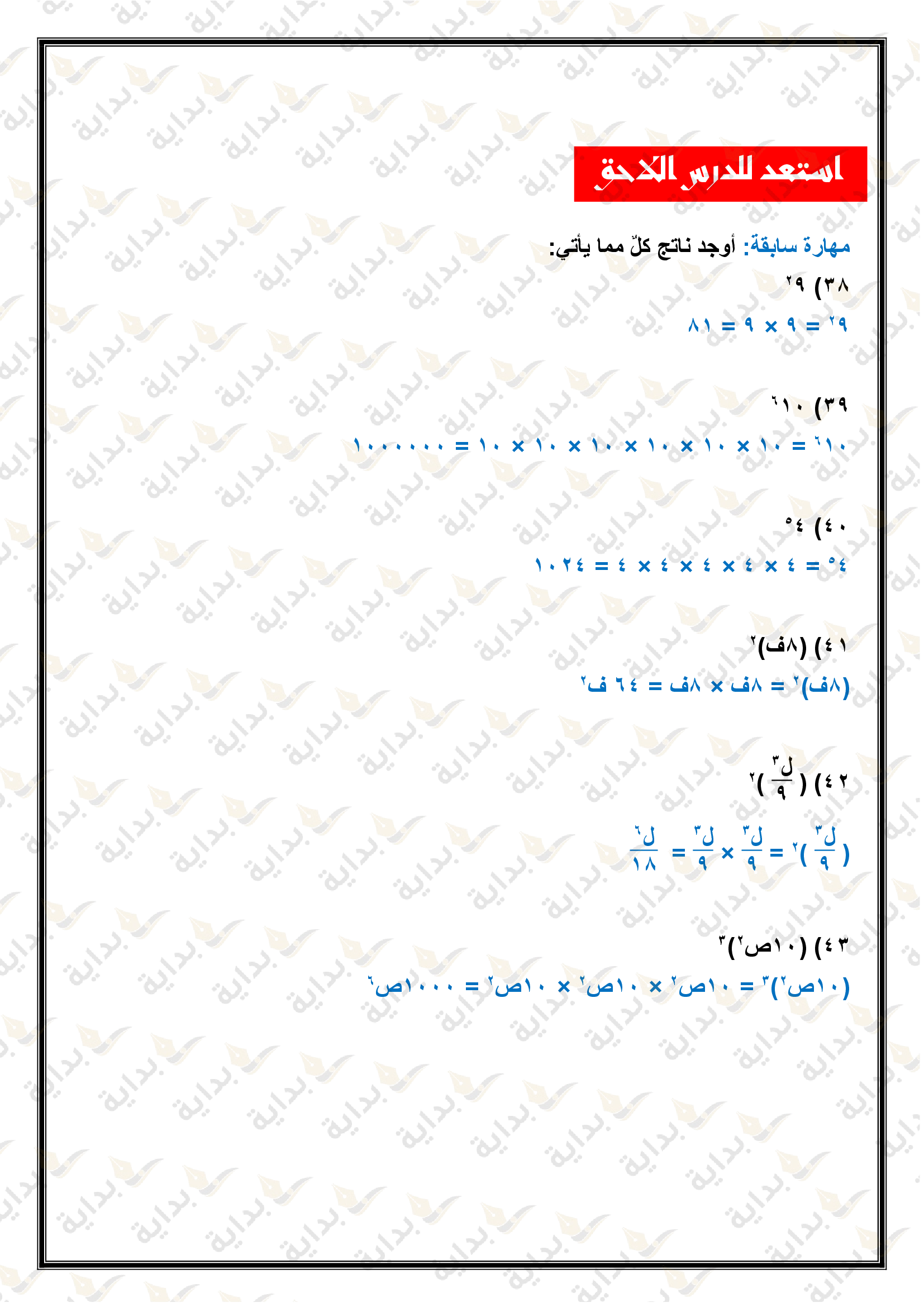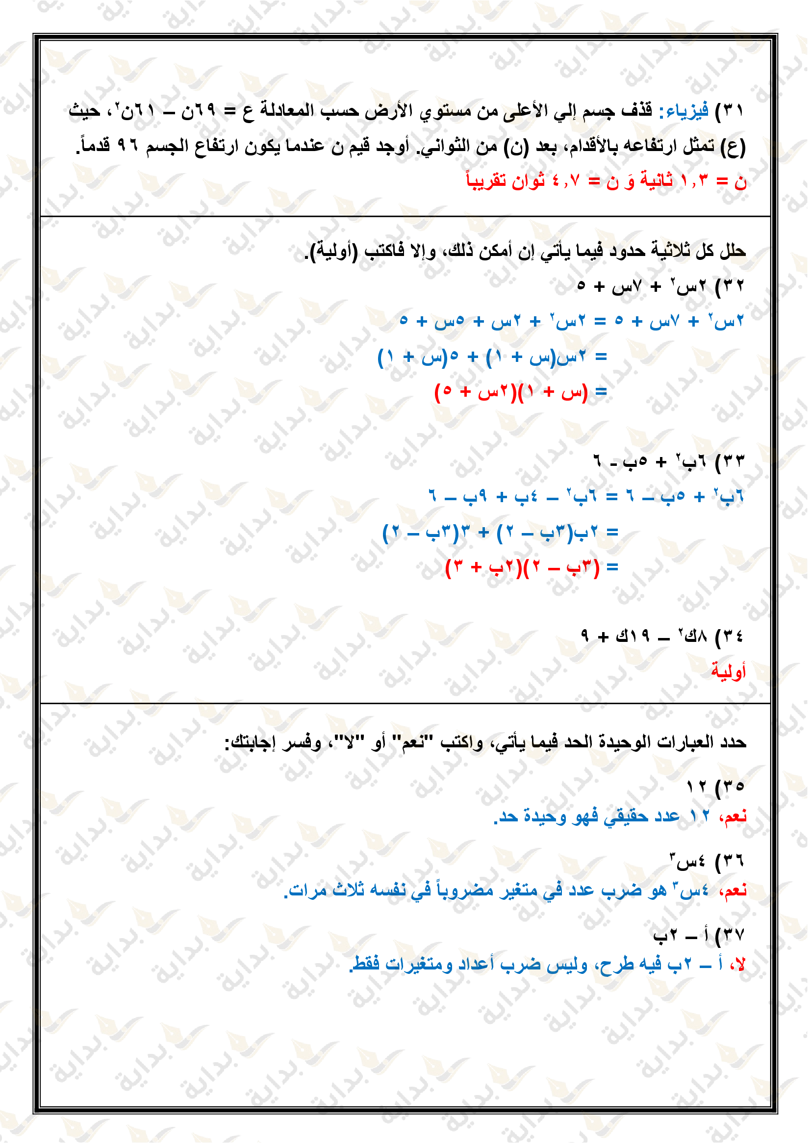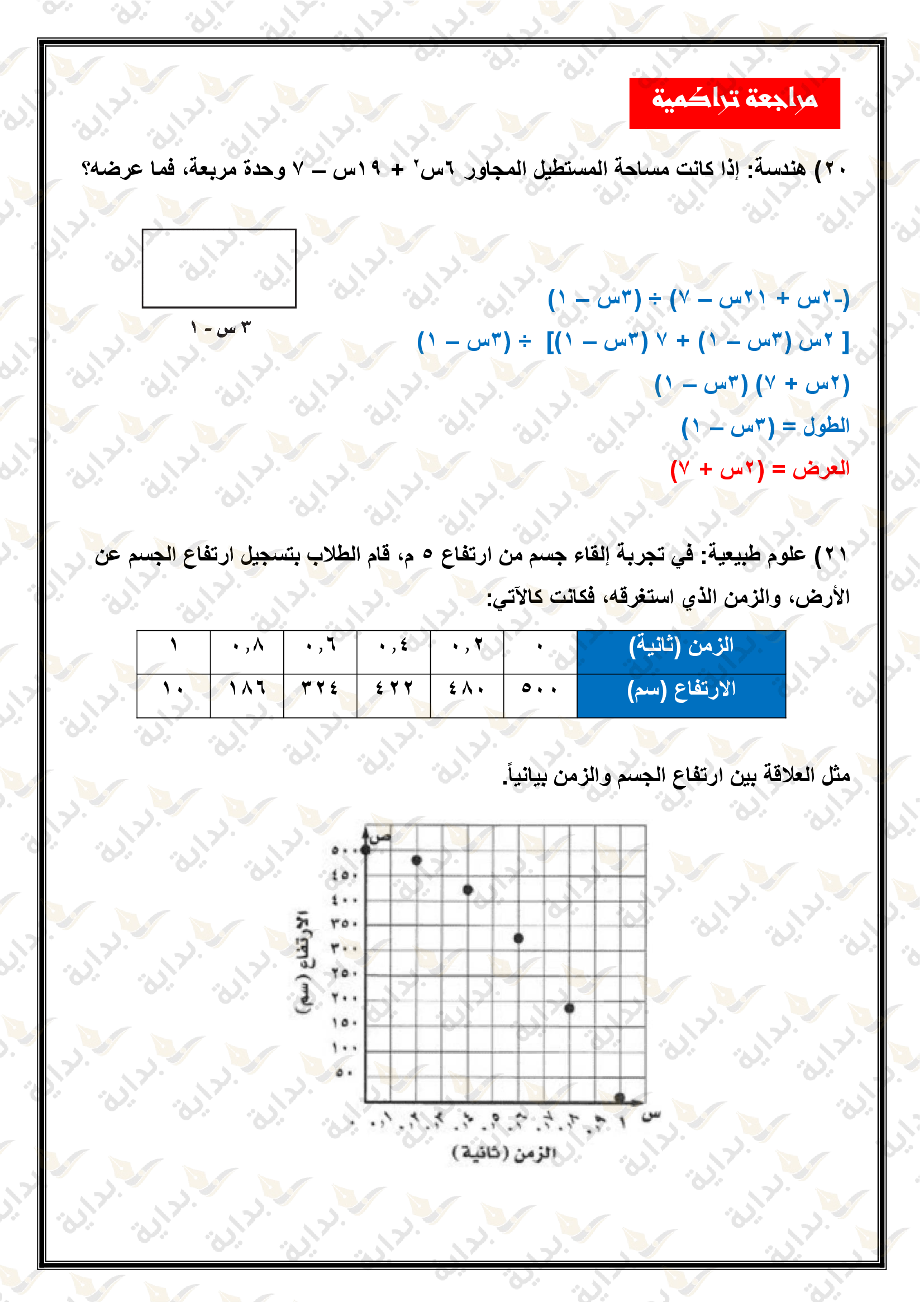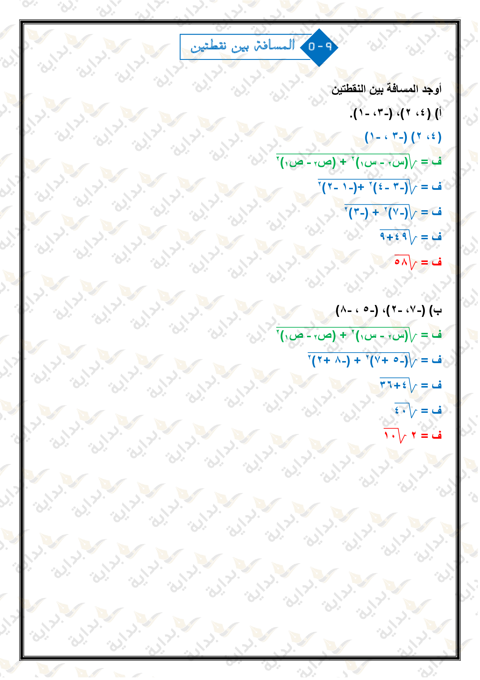 اختبار الفصل التاسع