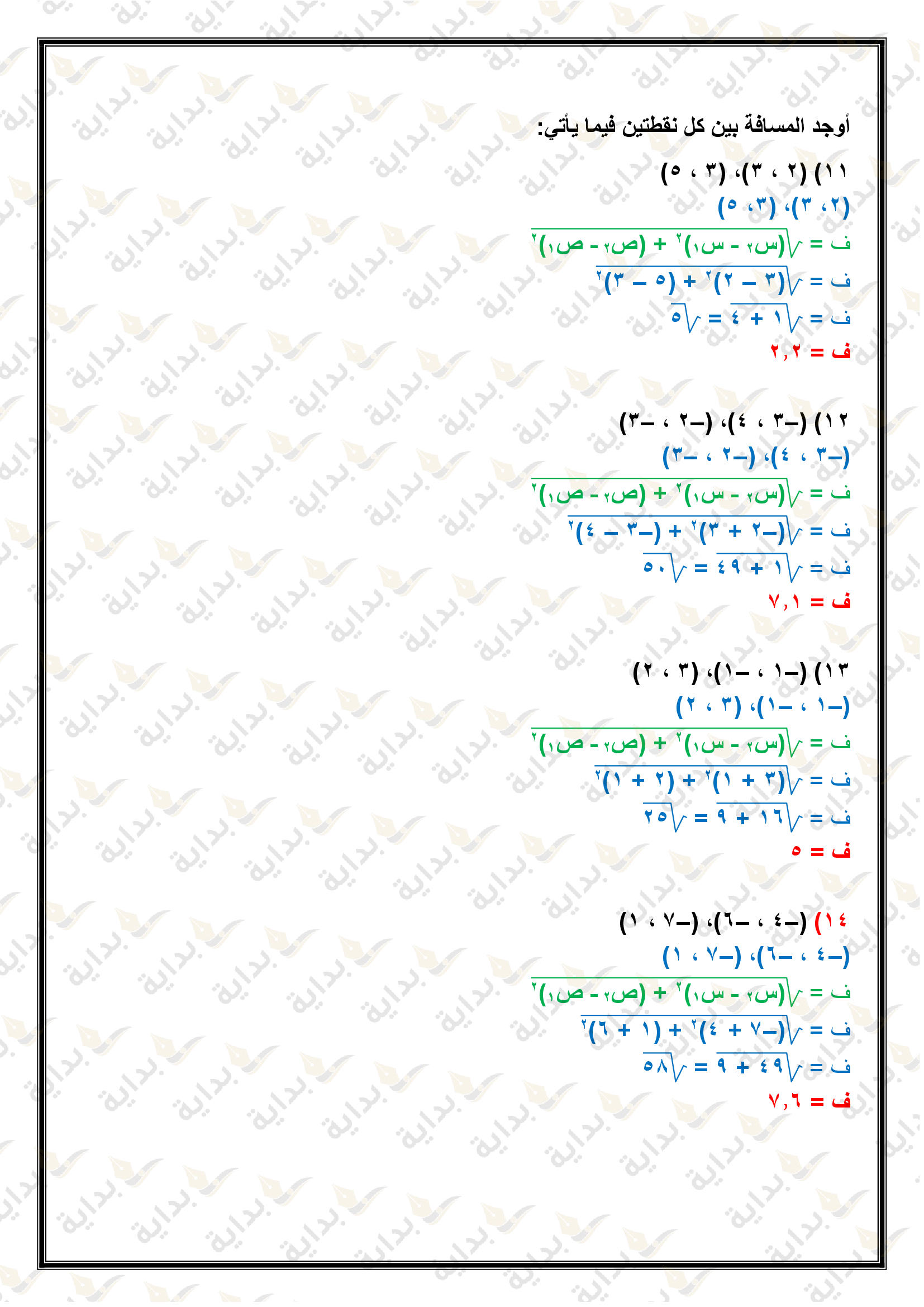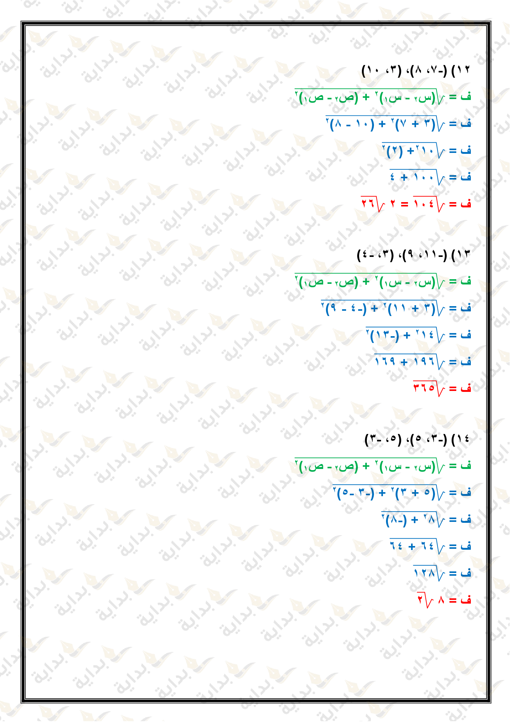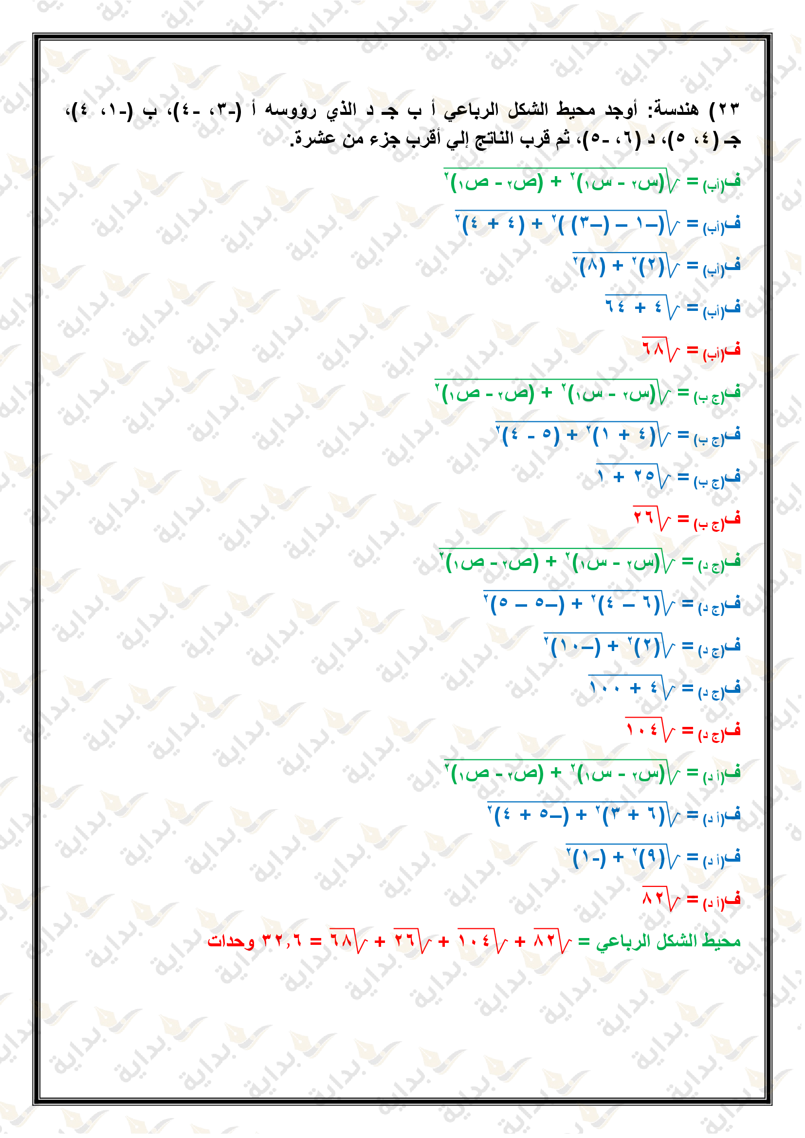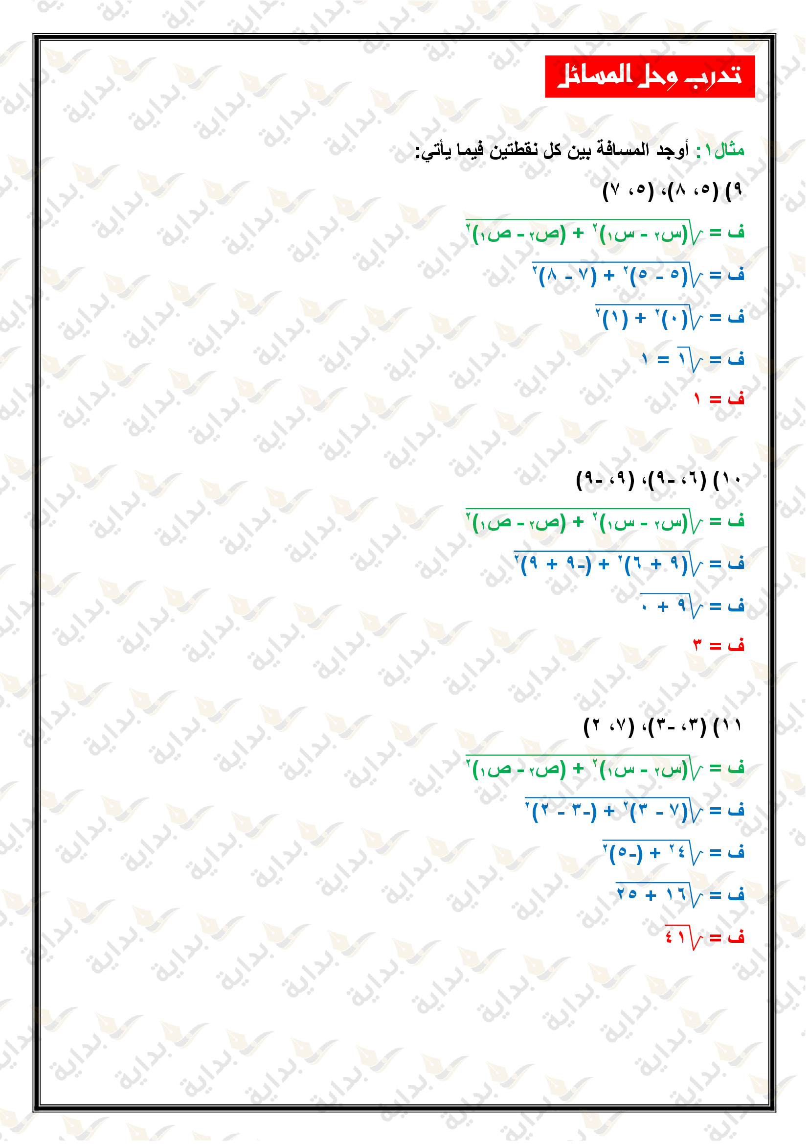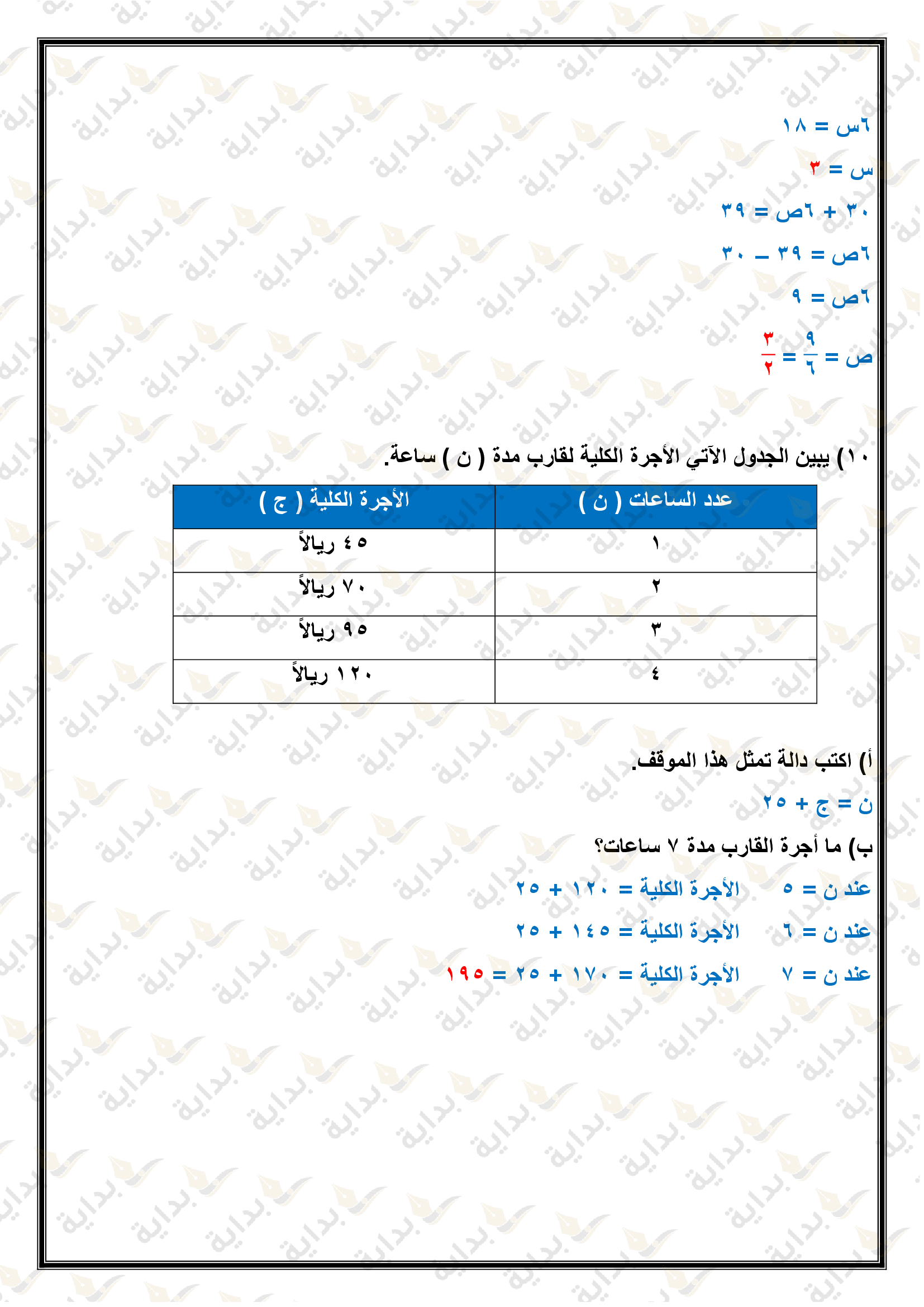 اختبار الفصل التاسع