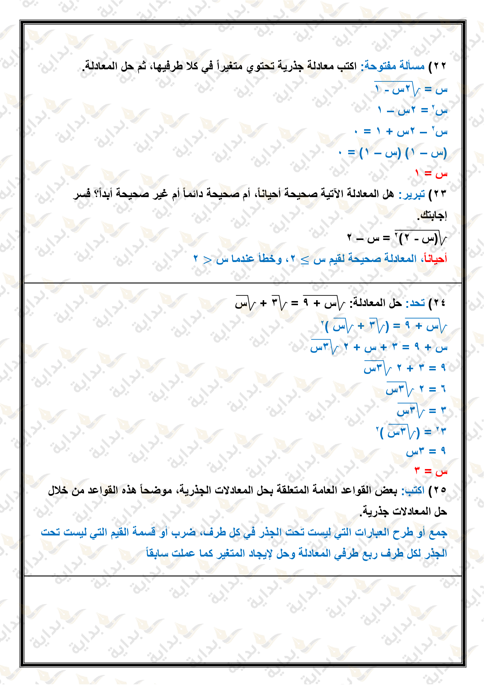 المعادلات الجذرية