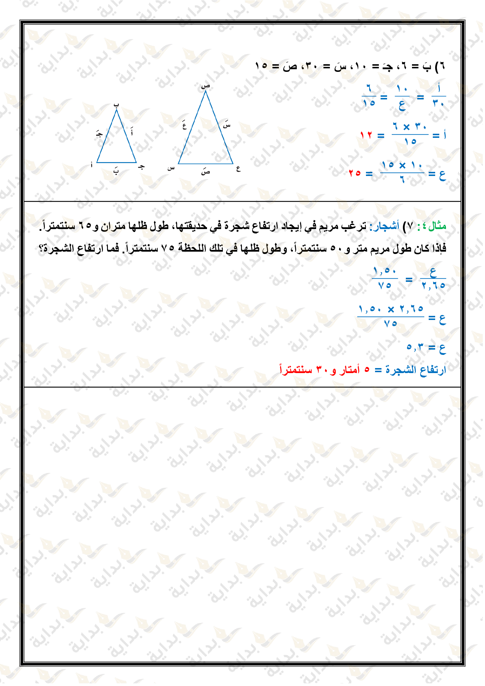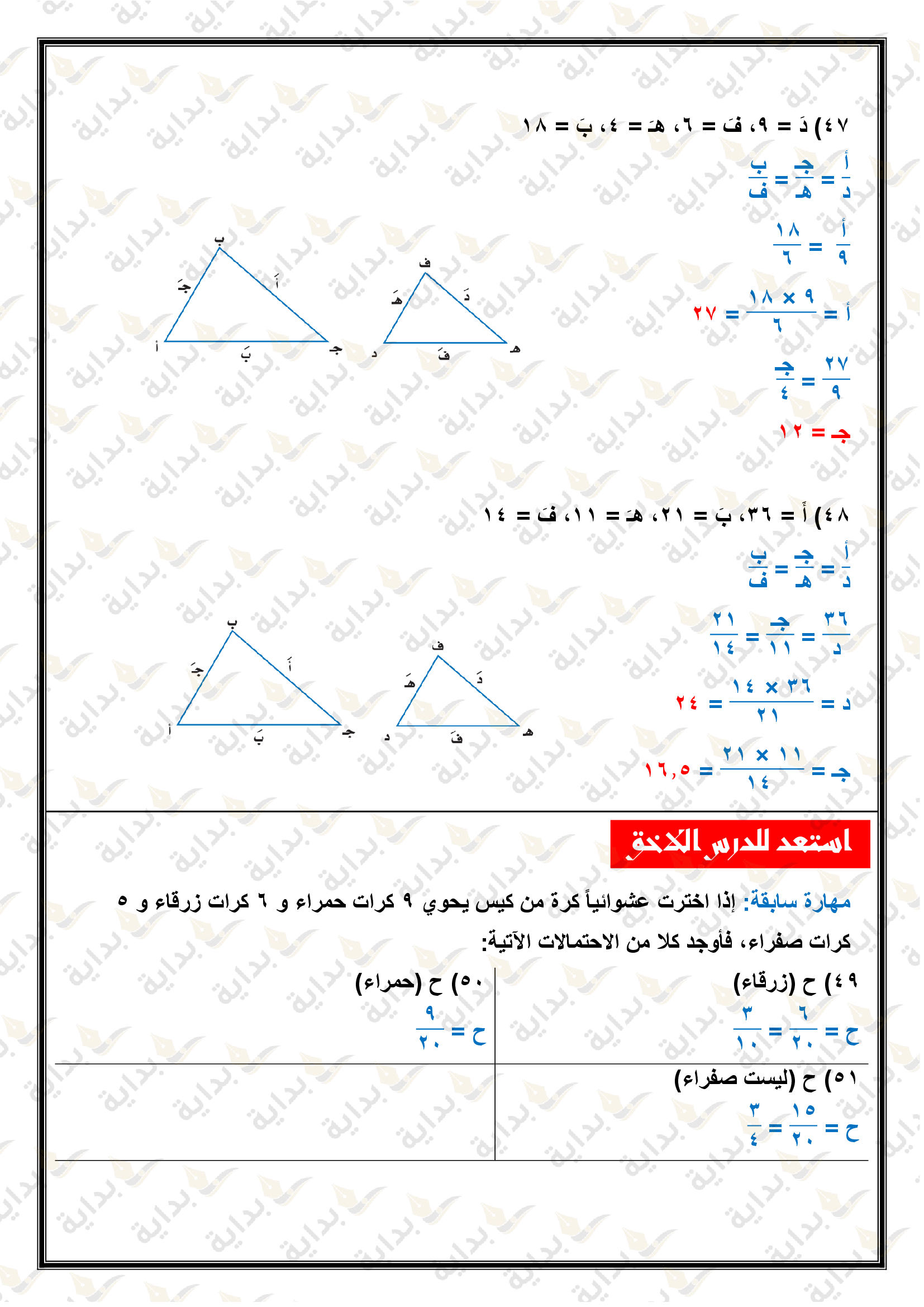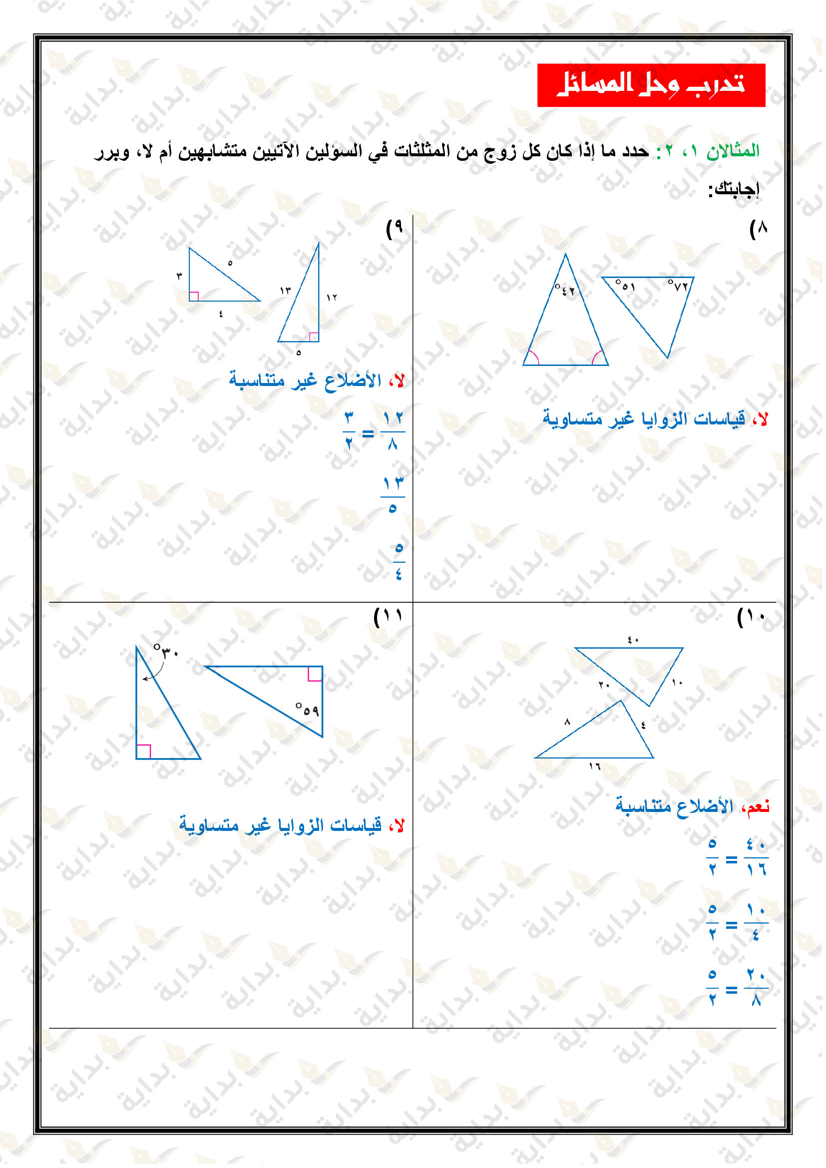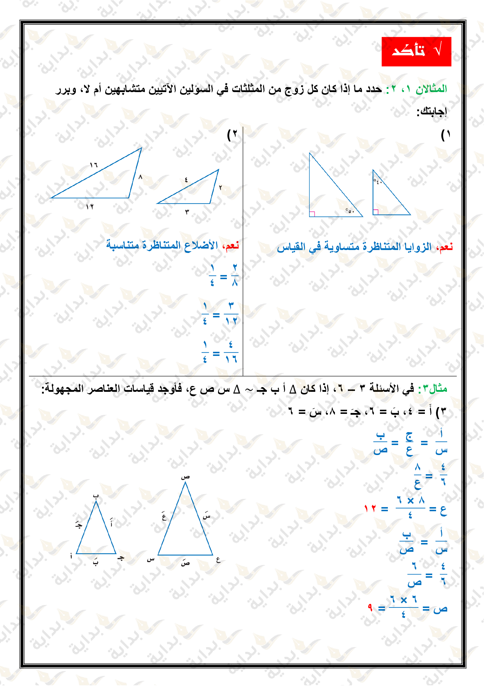 المثلثات المتشابهة