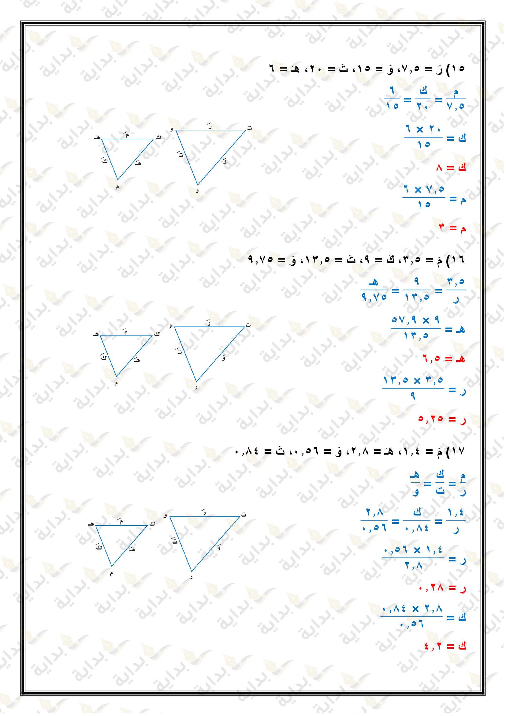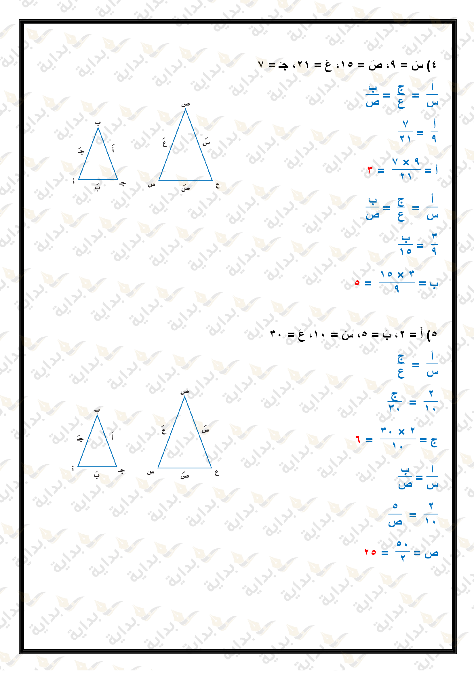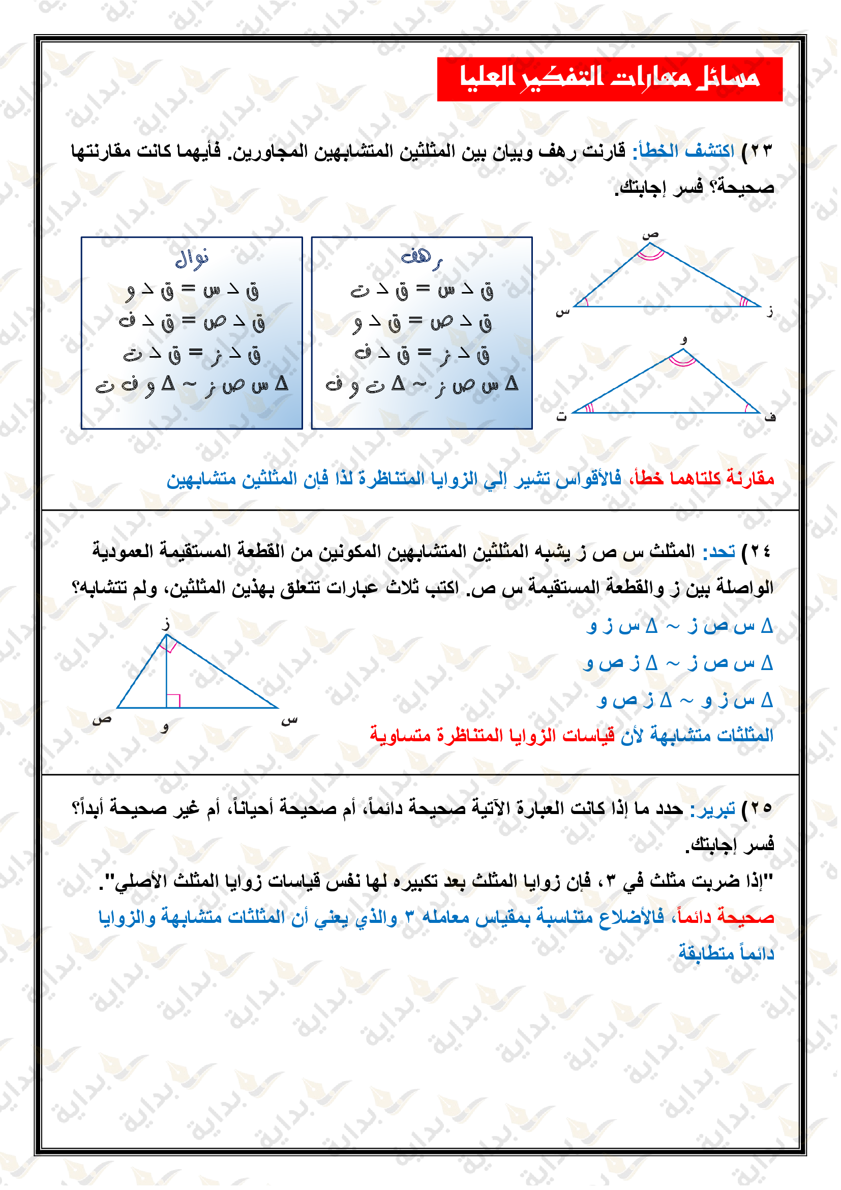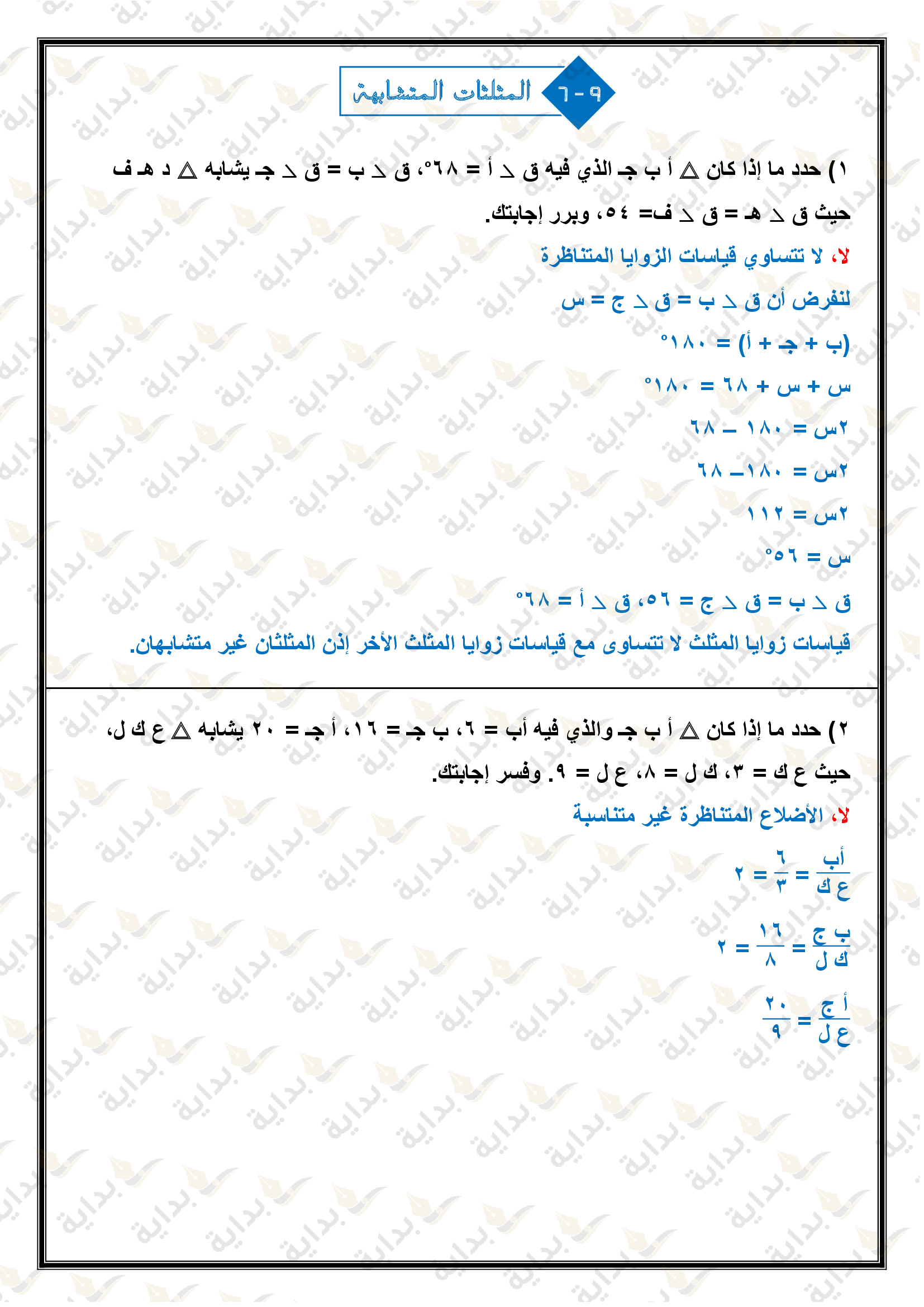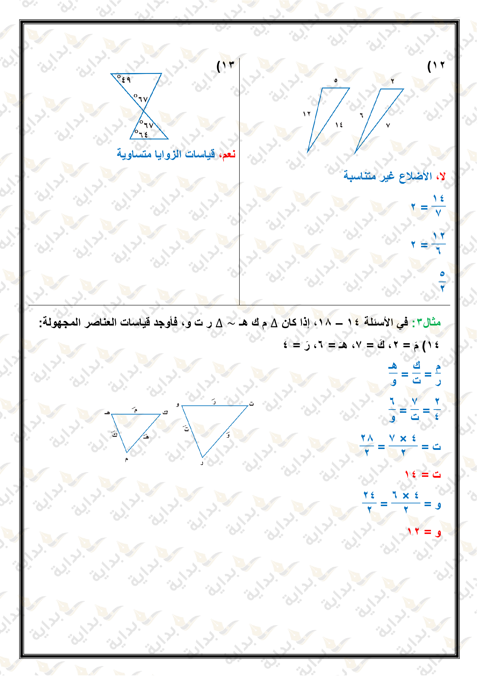 المثلثات المتشابهة