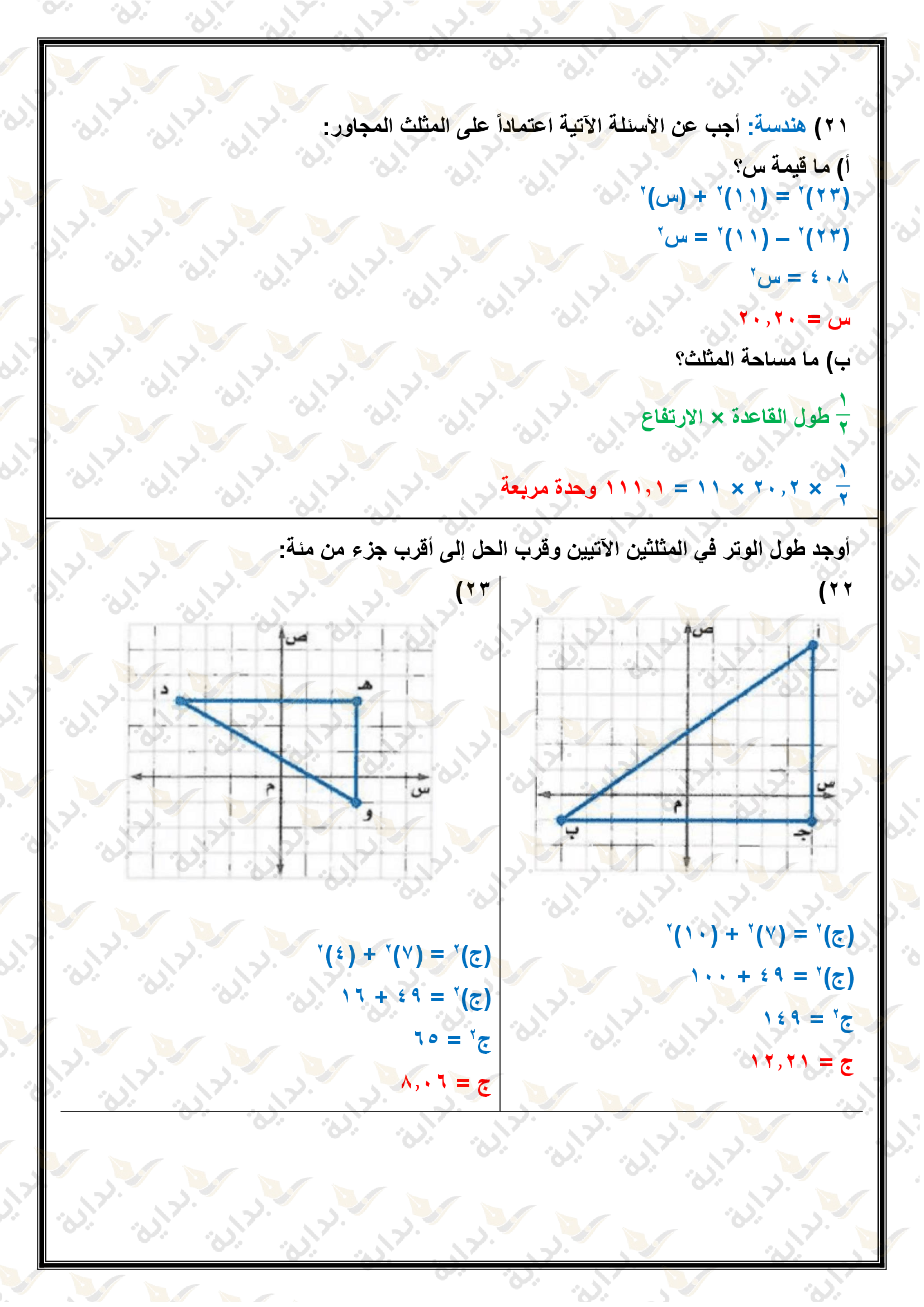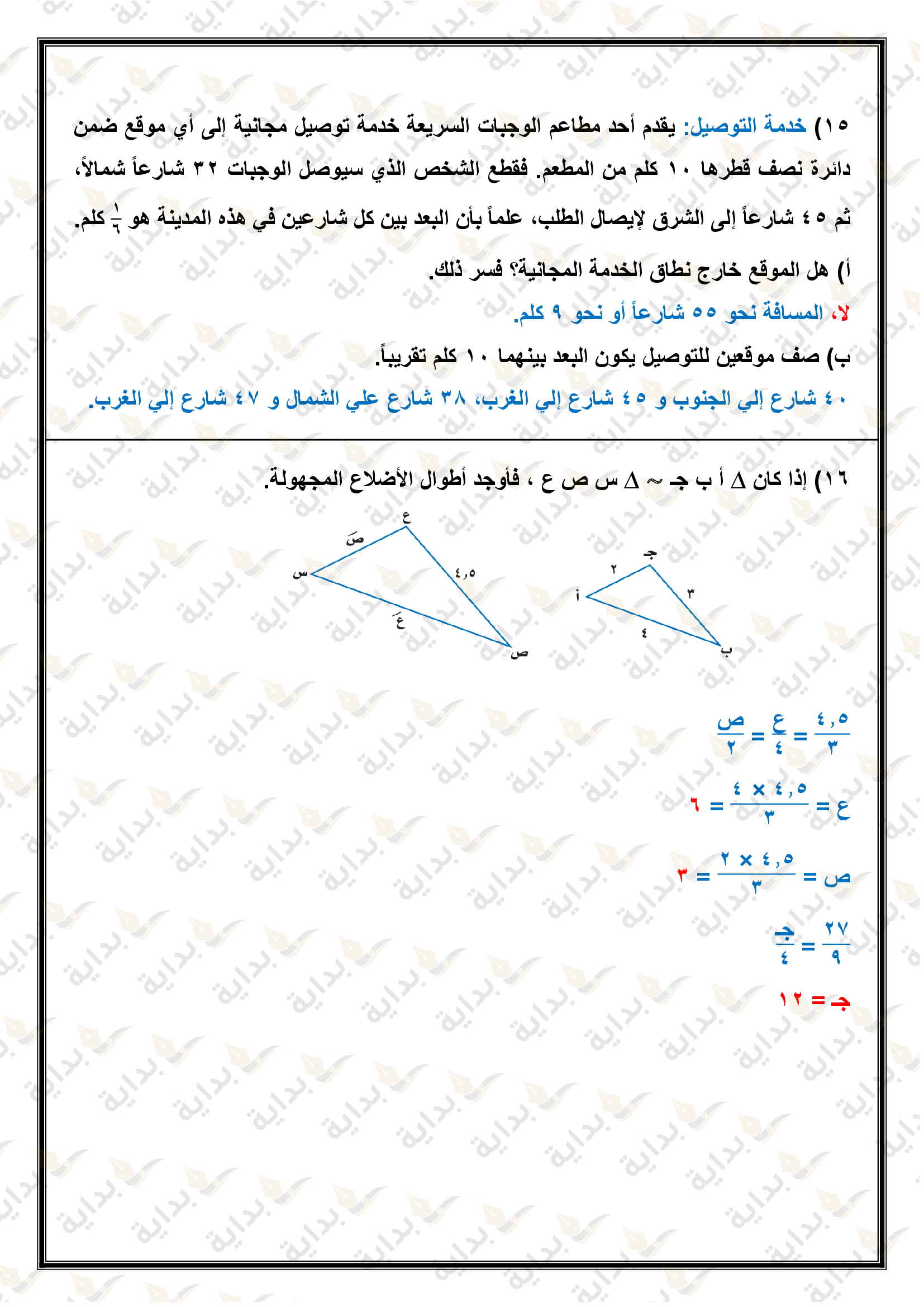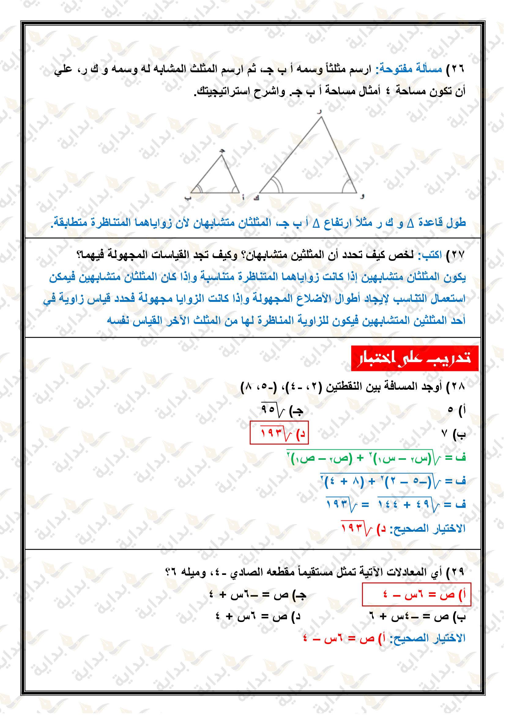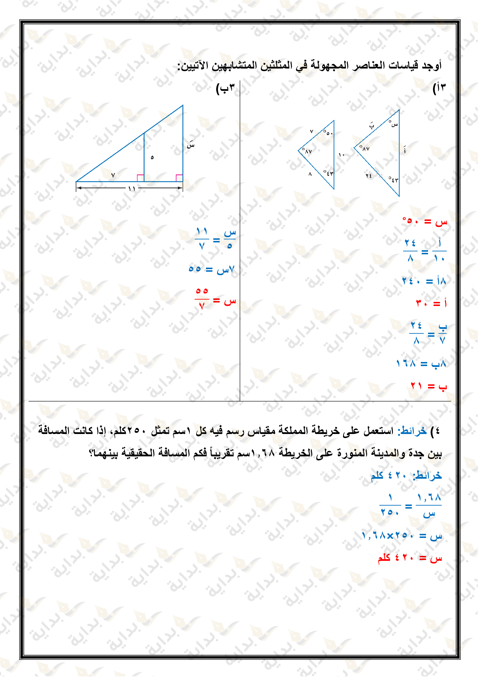 المثلثات المتشابهة