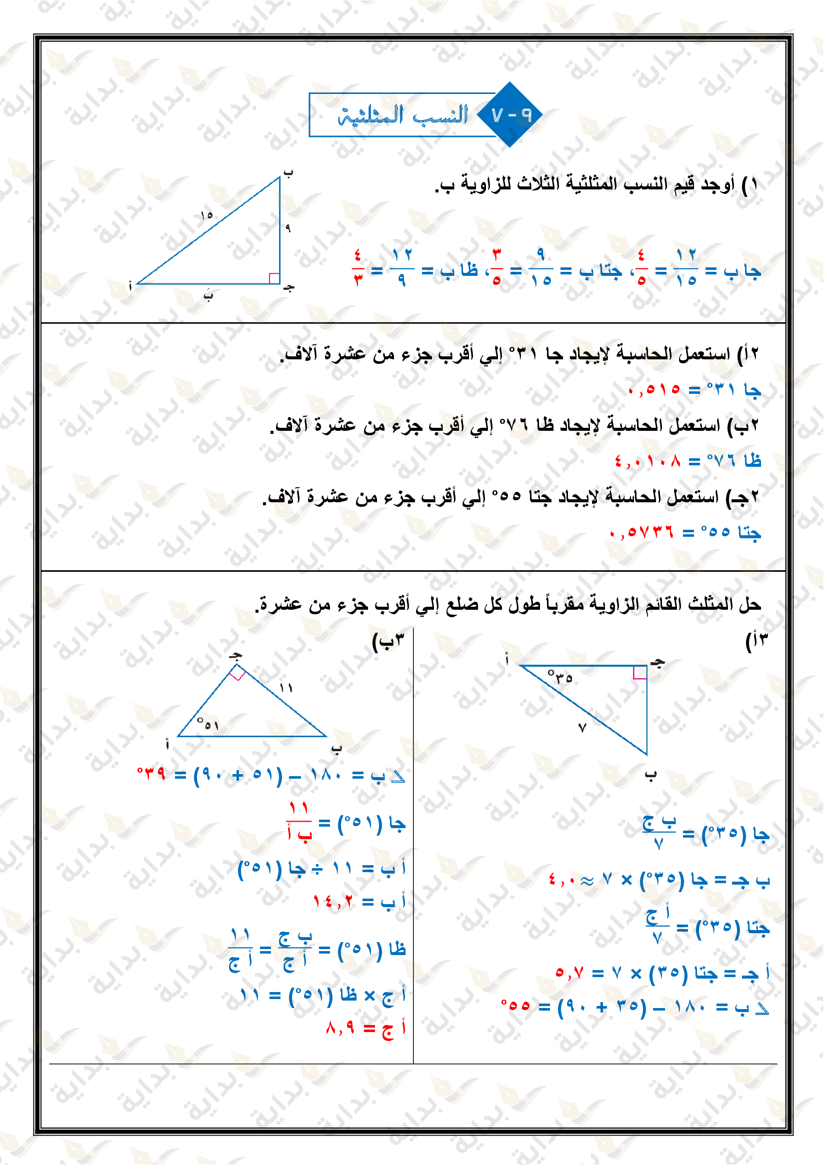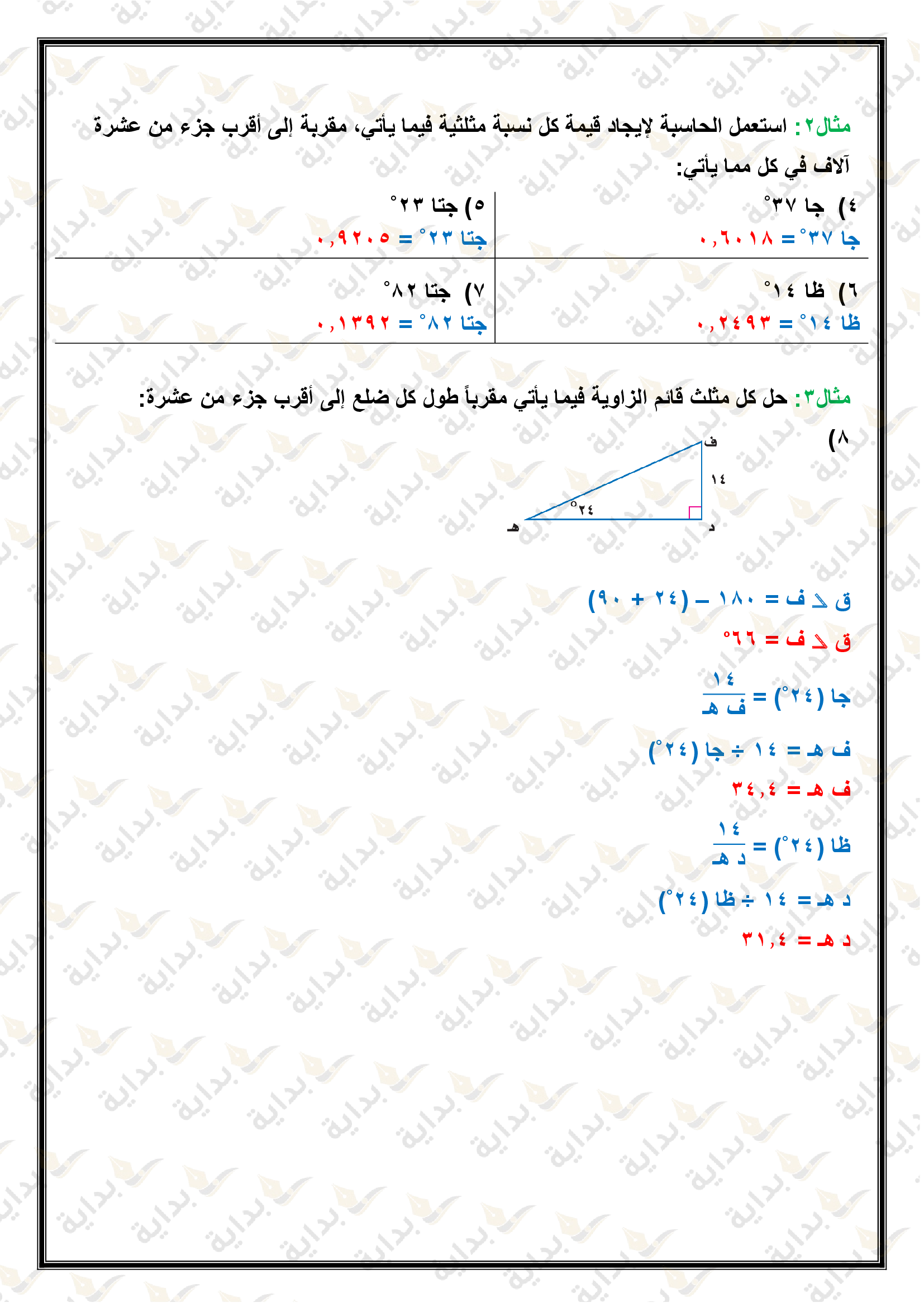 استقصاء النسب المثلثية