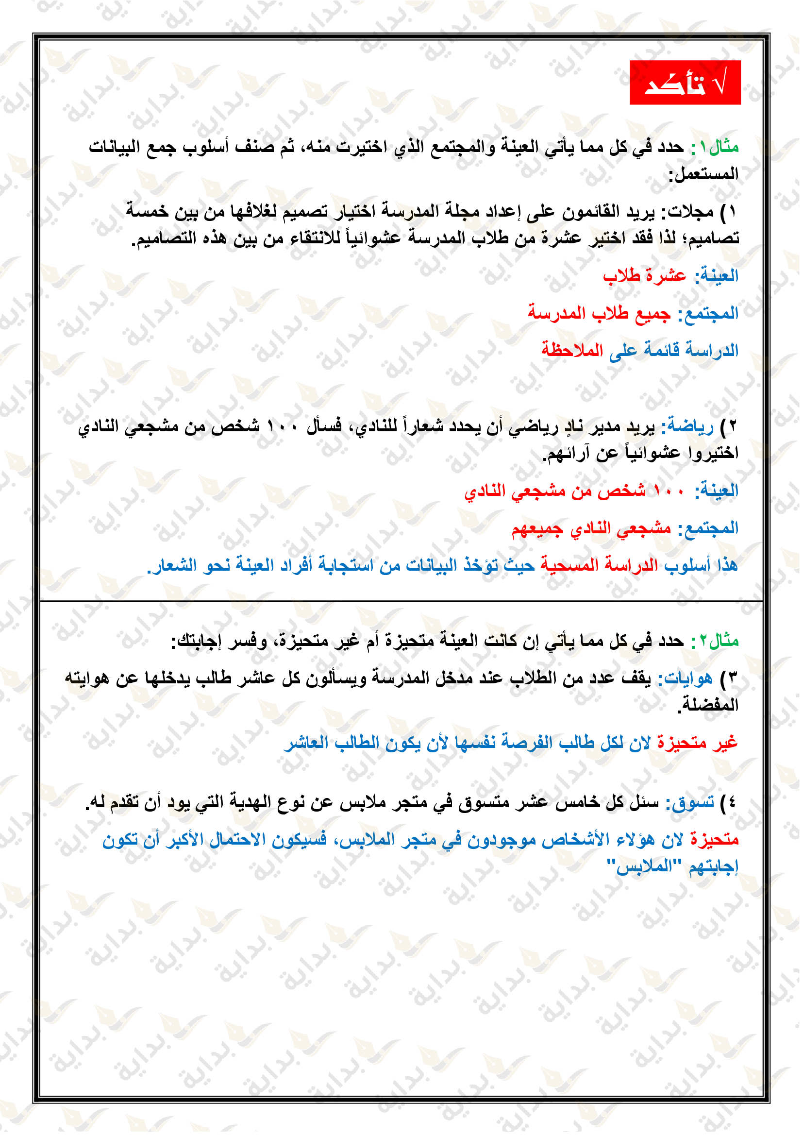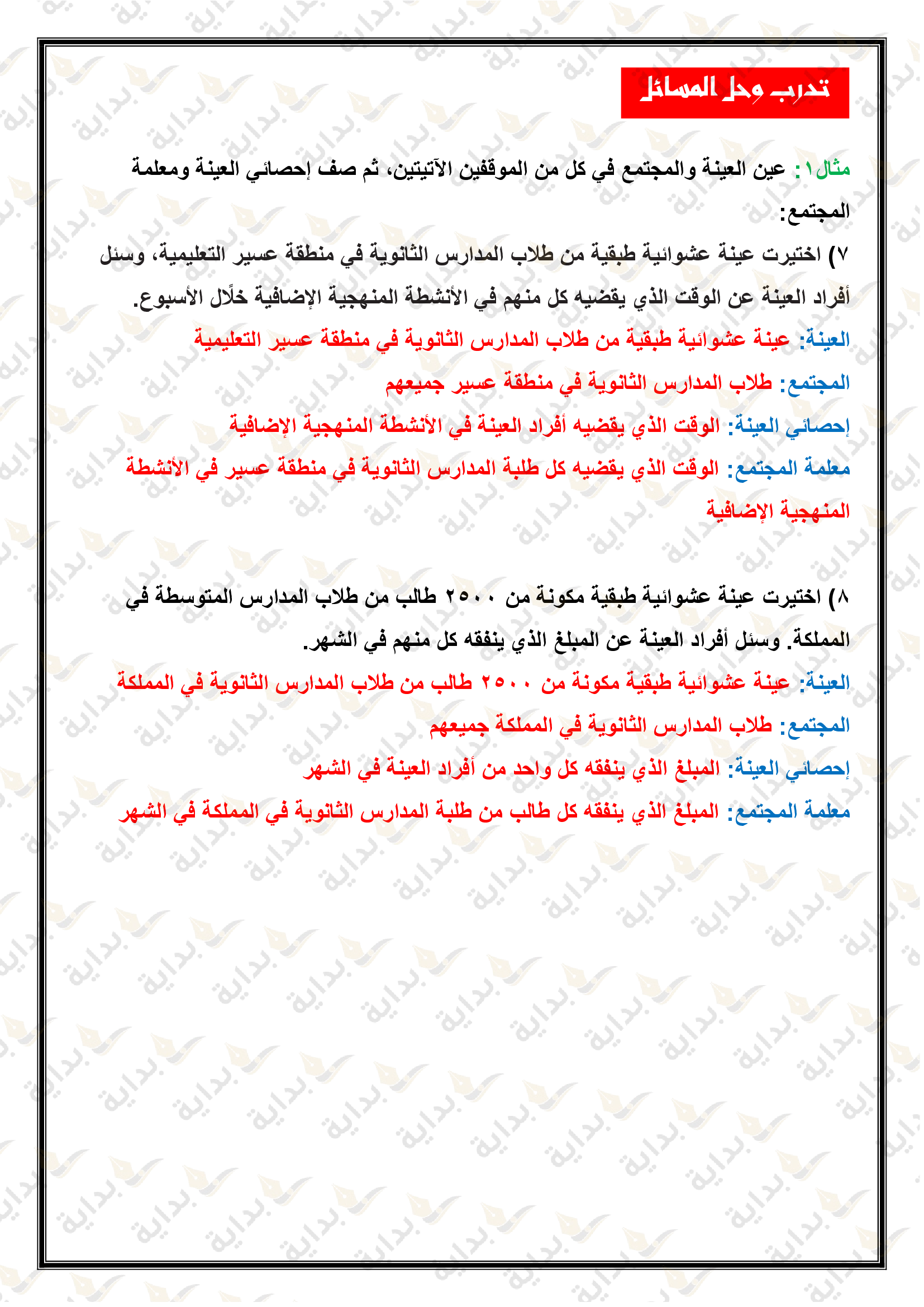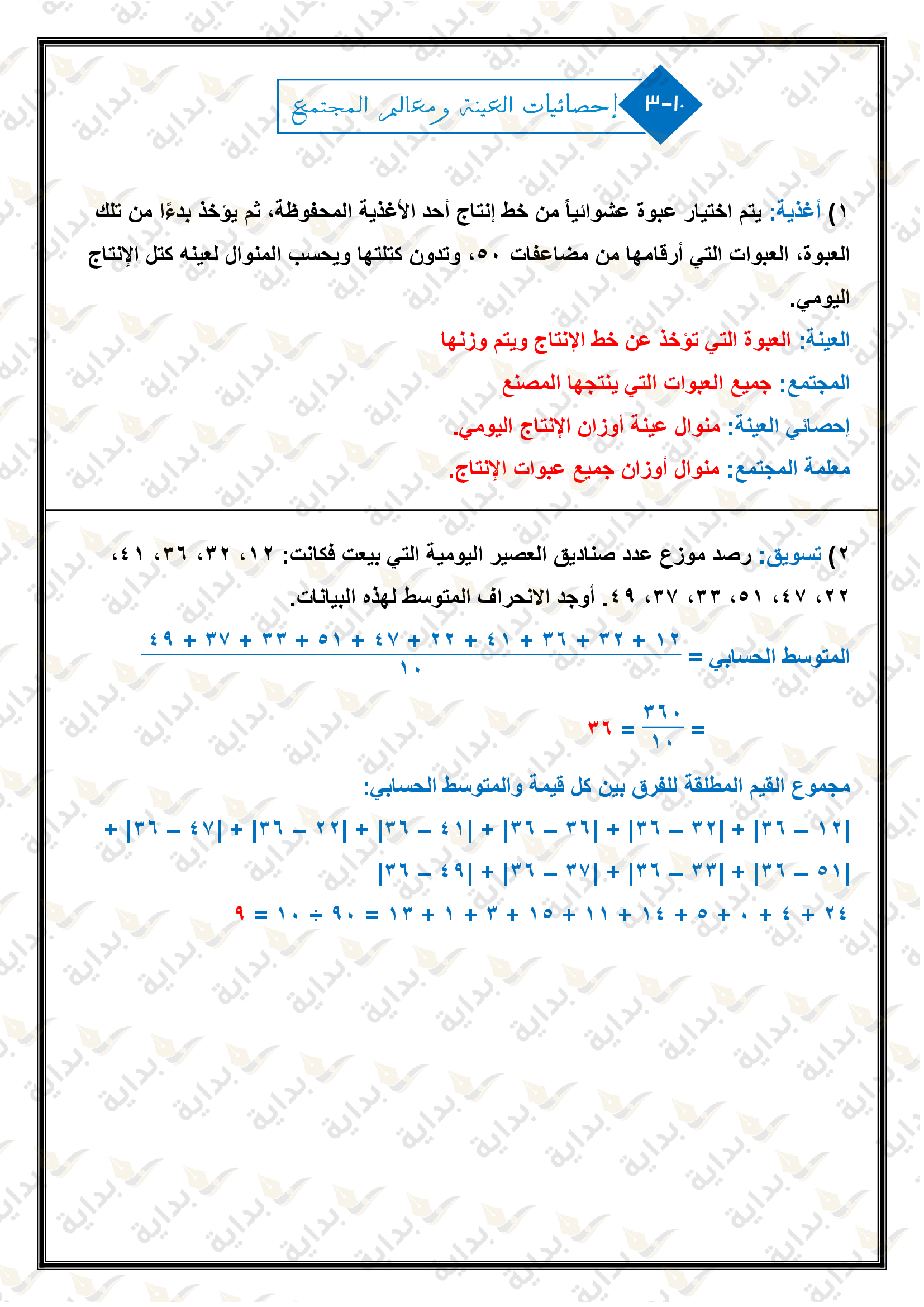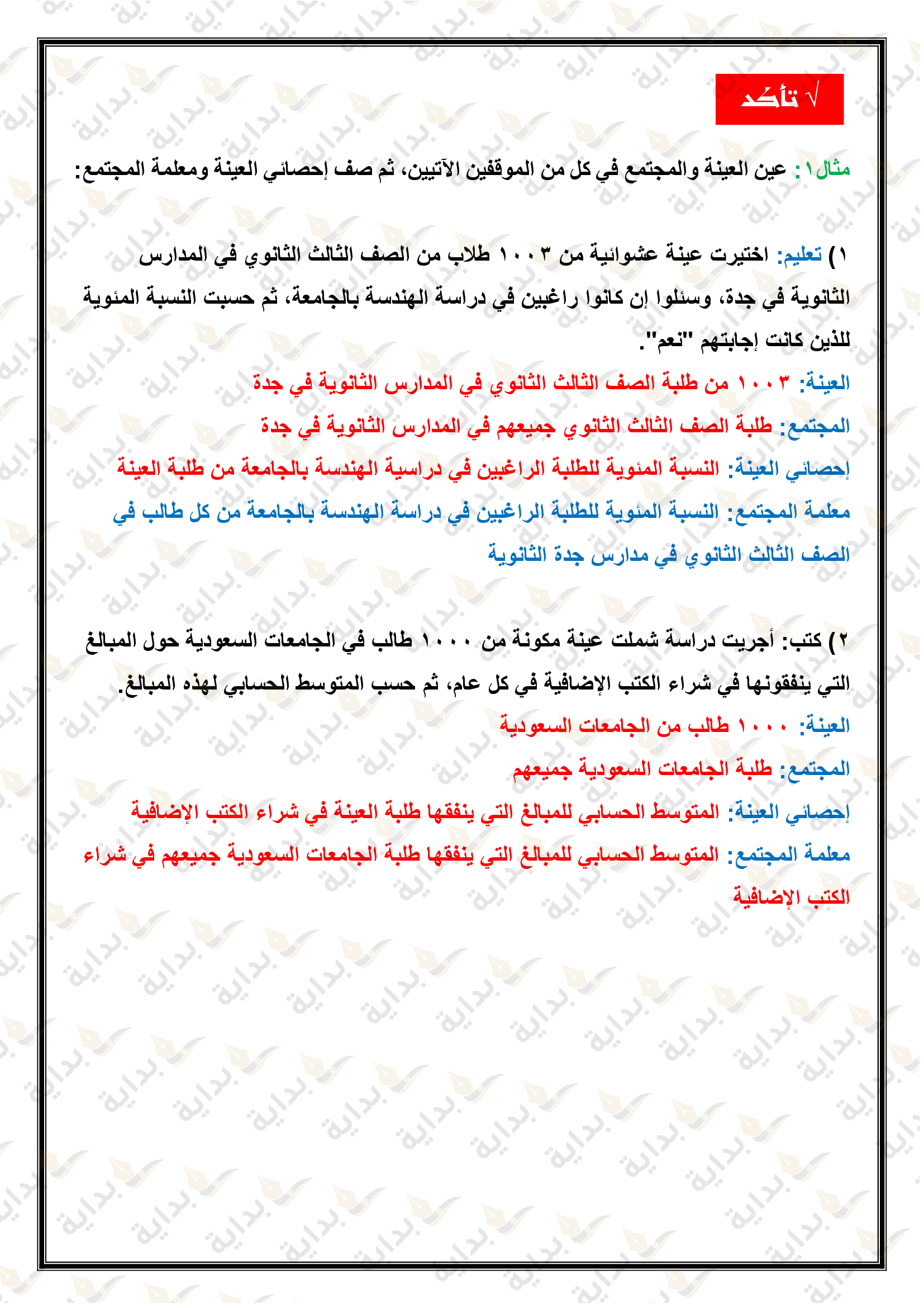 إحصائيات العينة ومعالم المجتمع