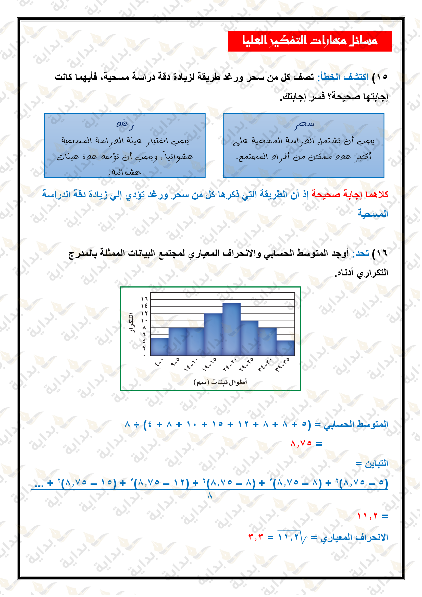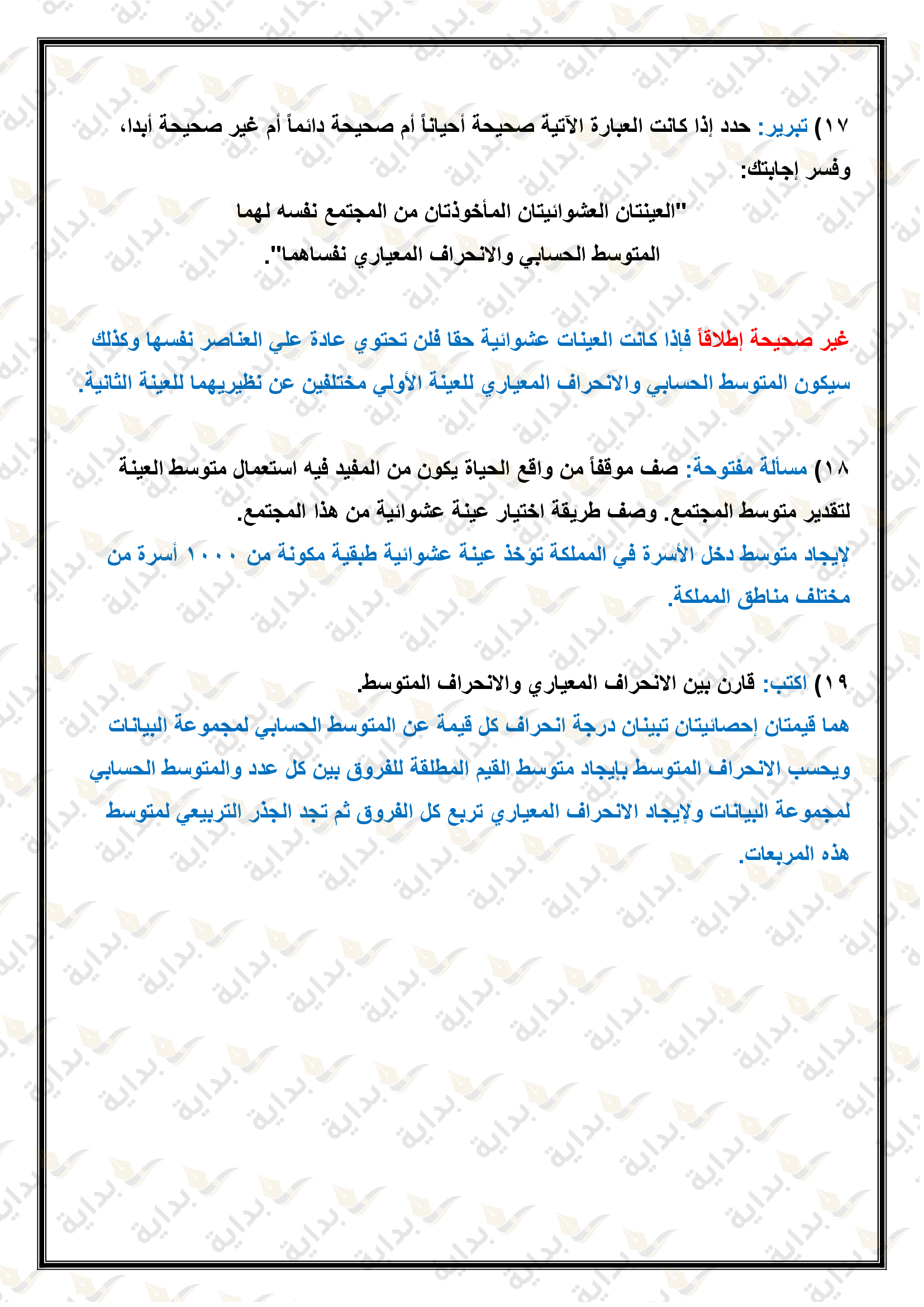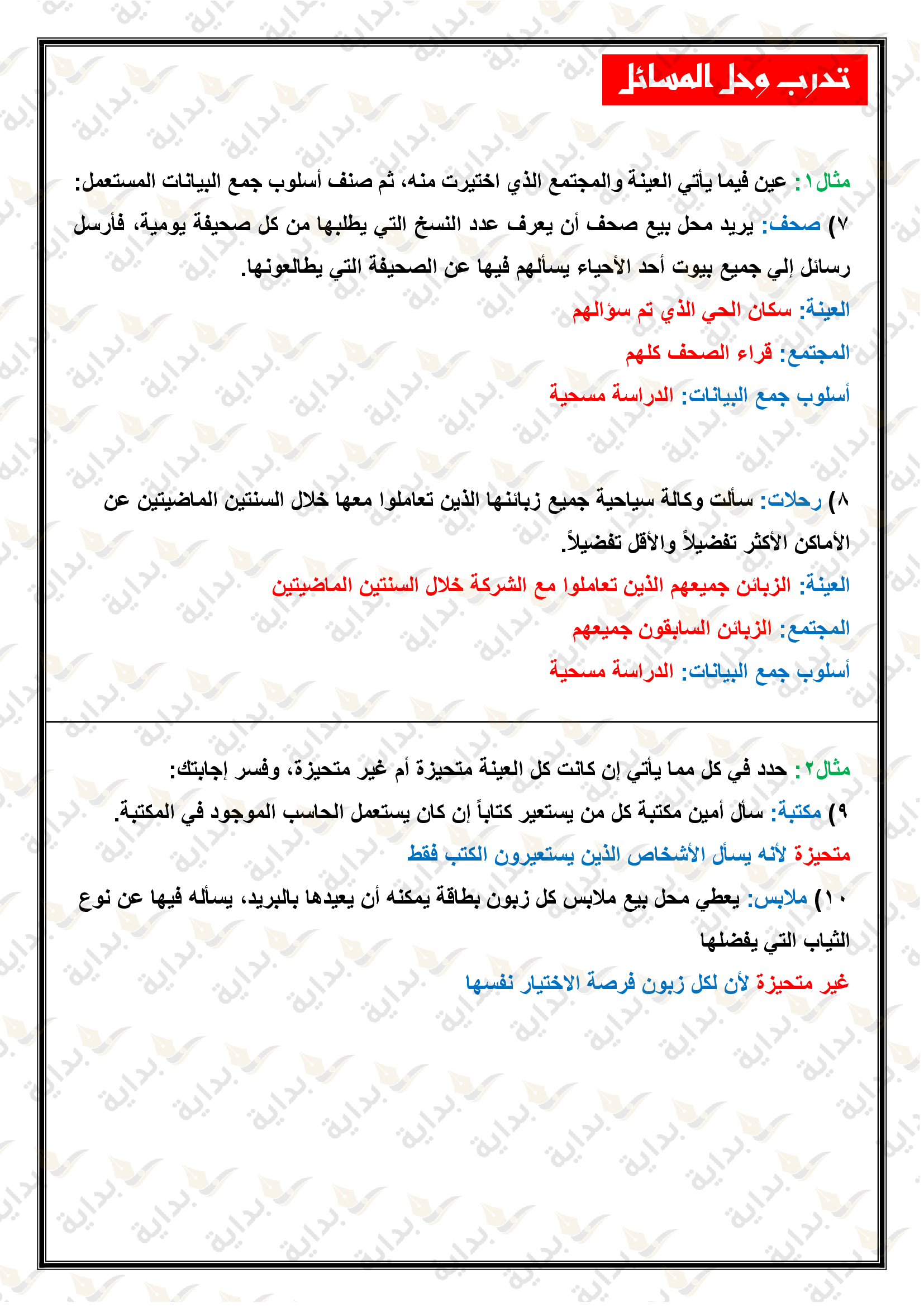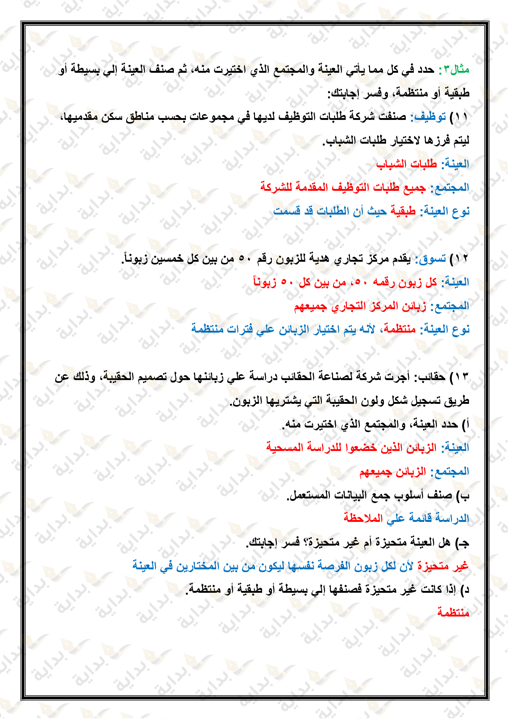إحصائيات العينة ومعالم المجتمع