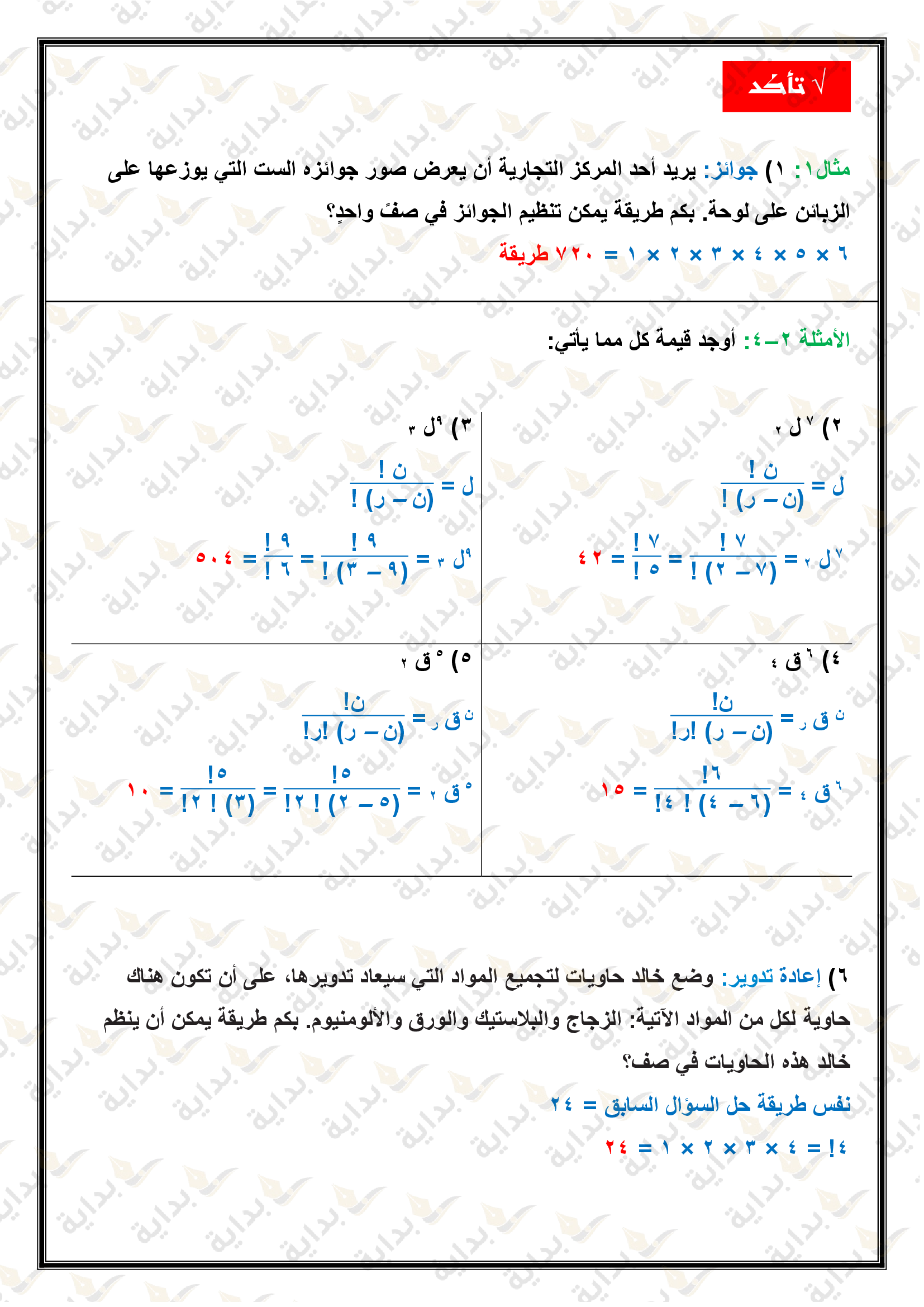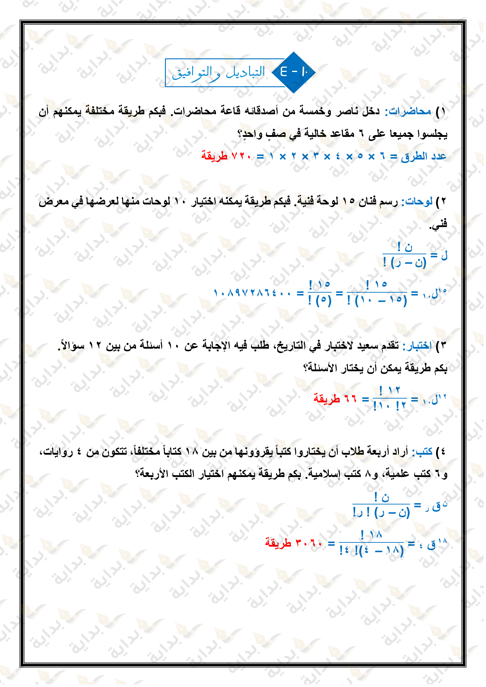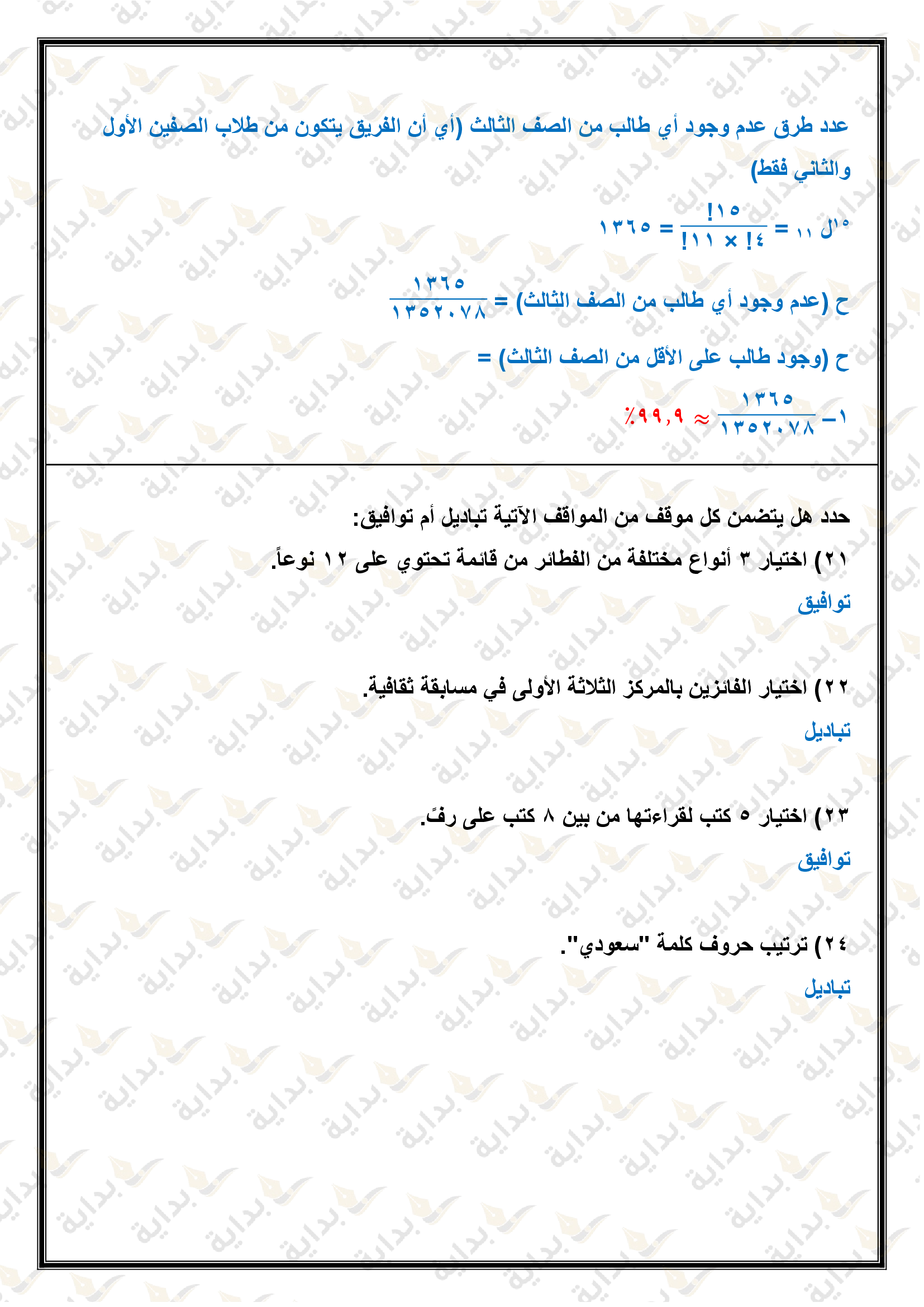 التباديل والتوافيق