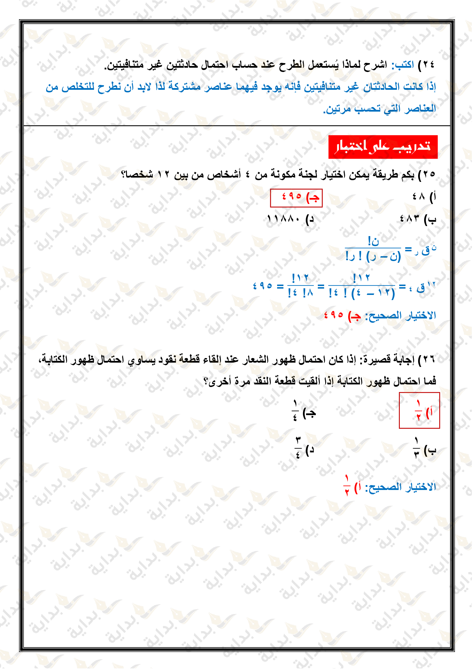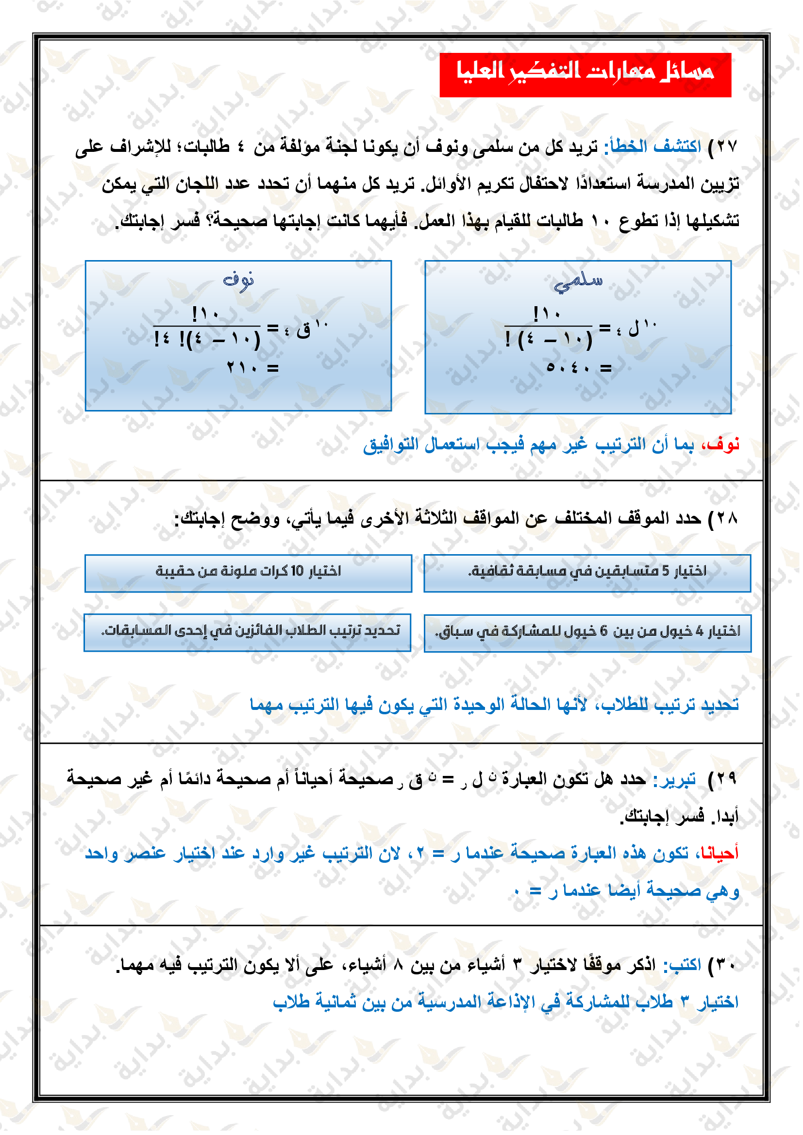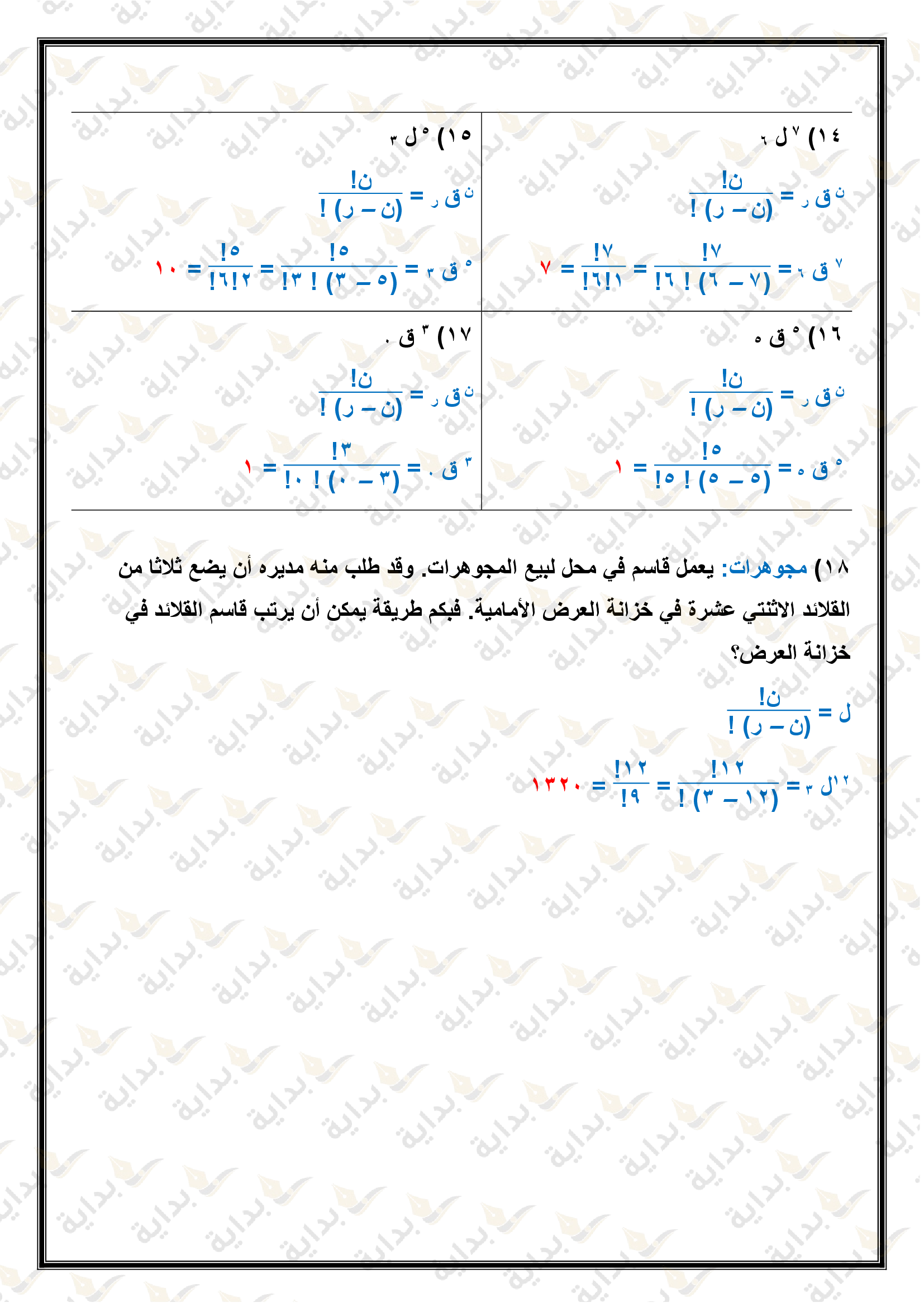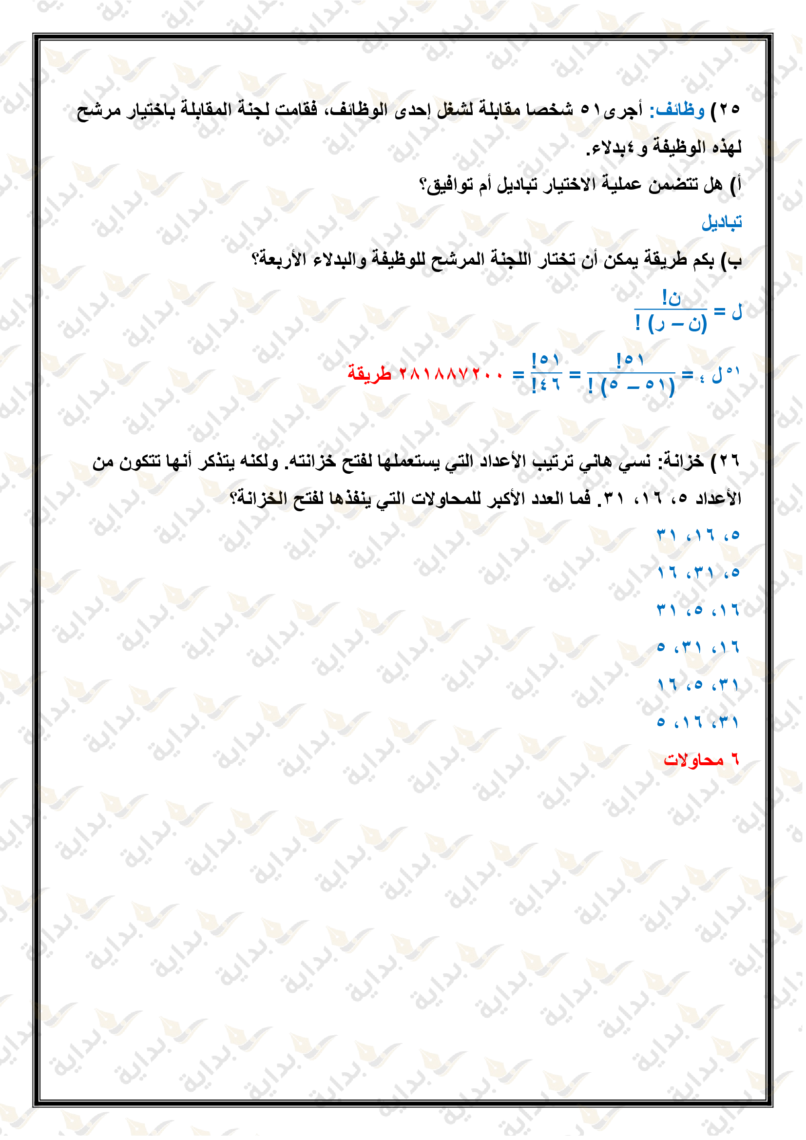 التباديل والتوافيق