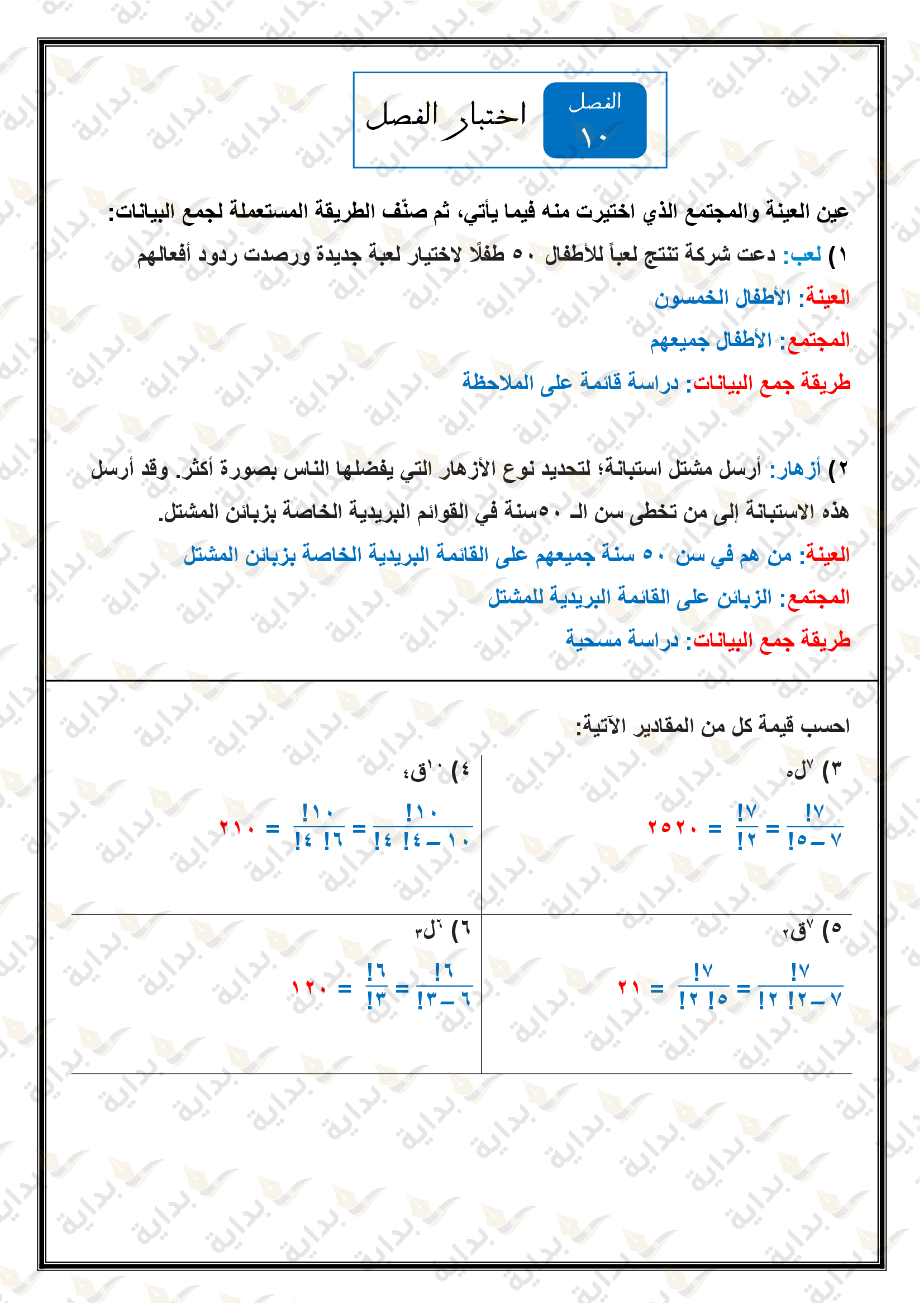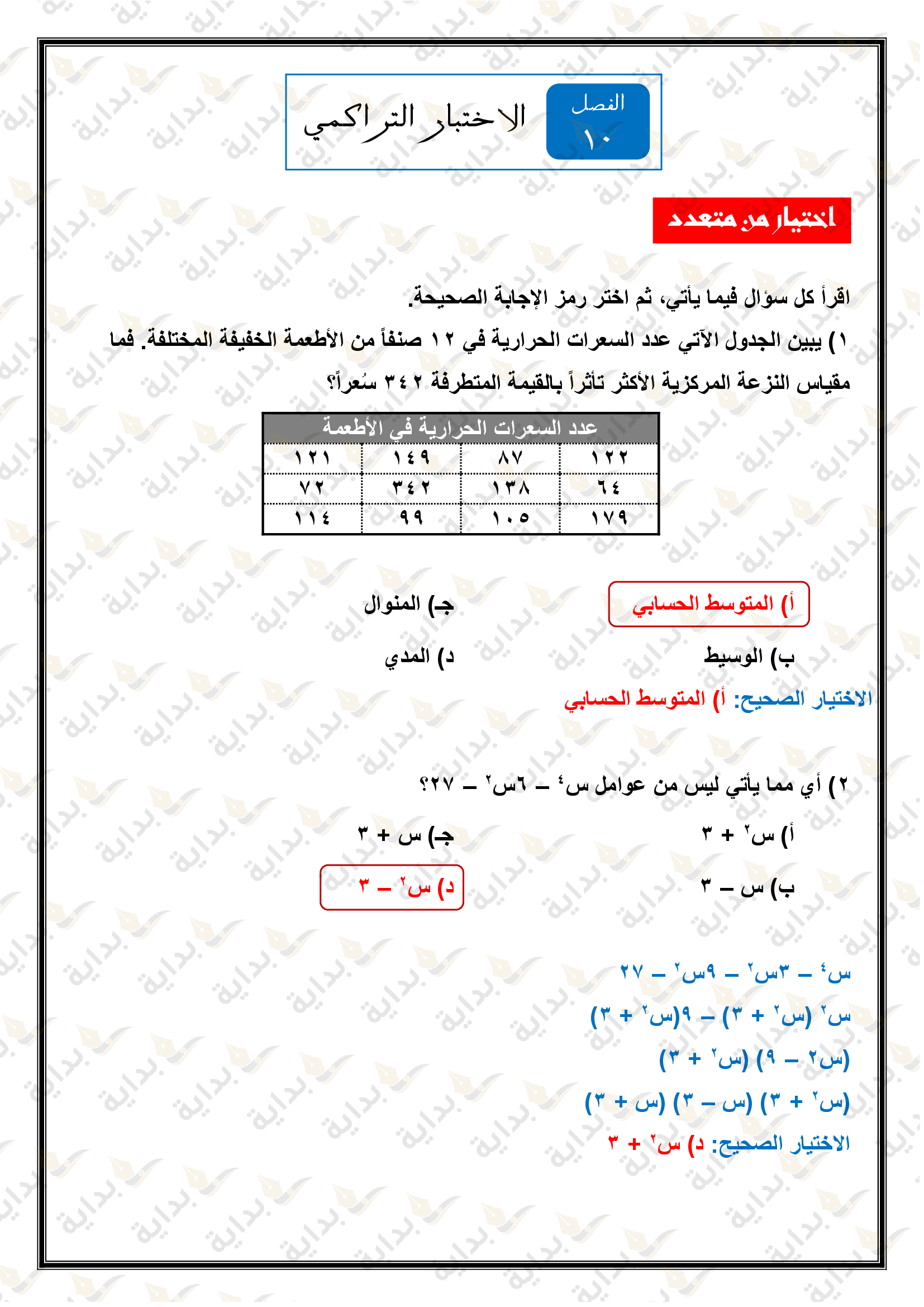 اختبار الفصل 10