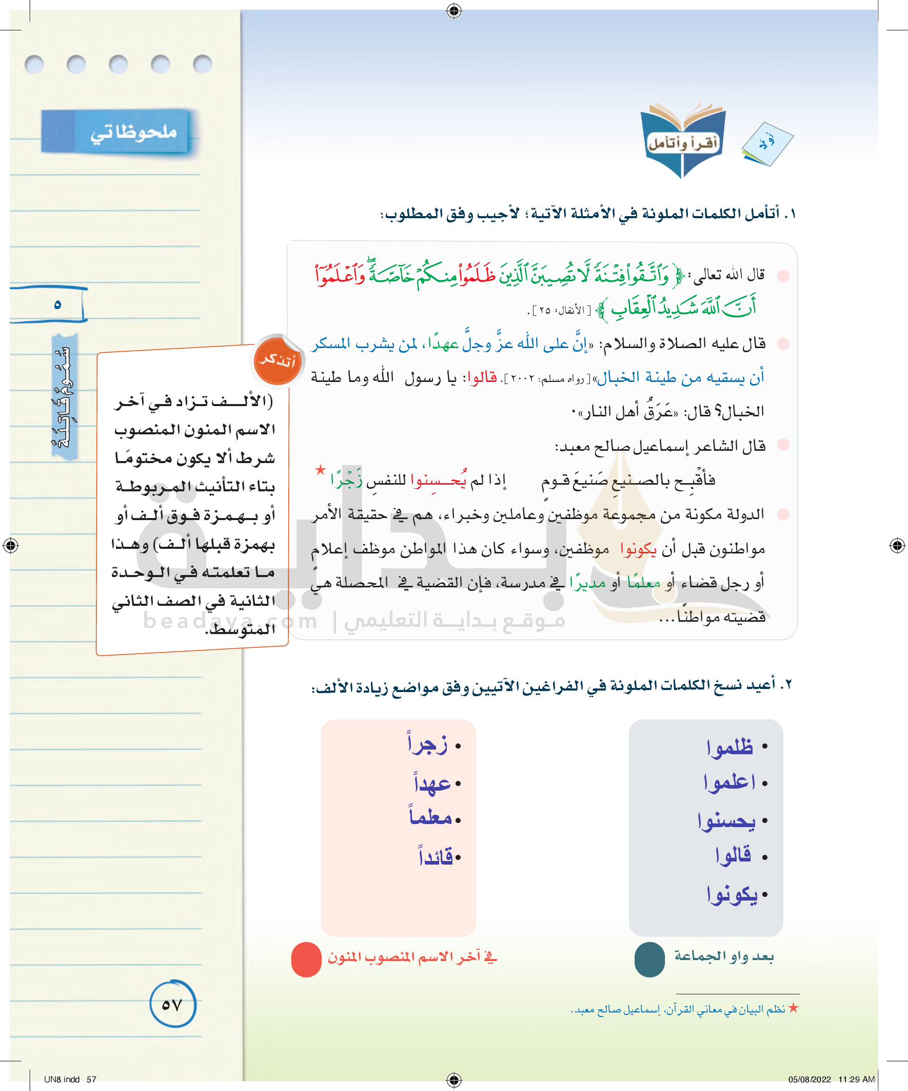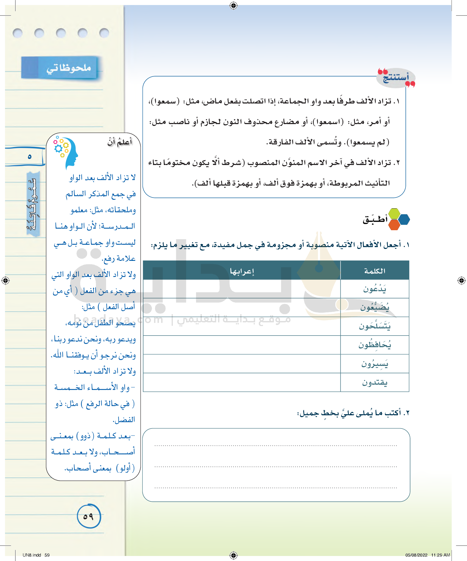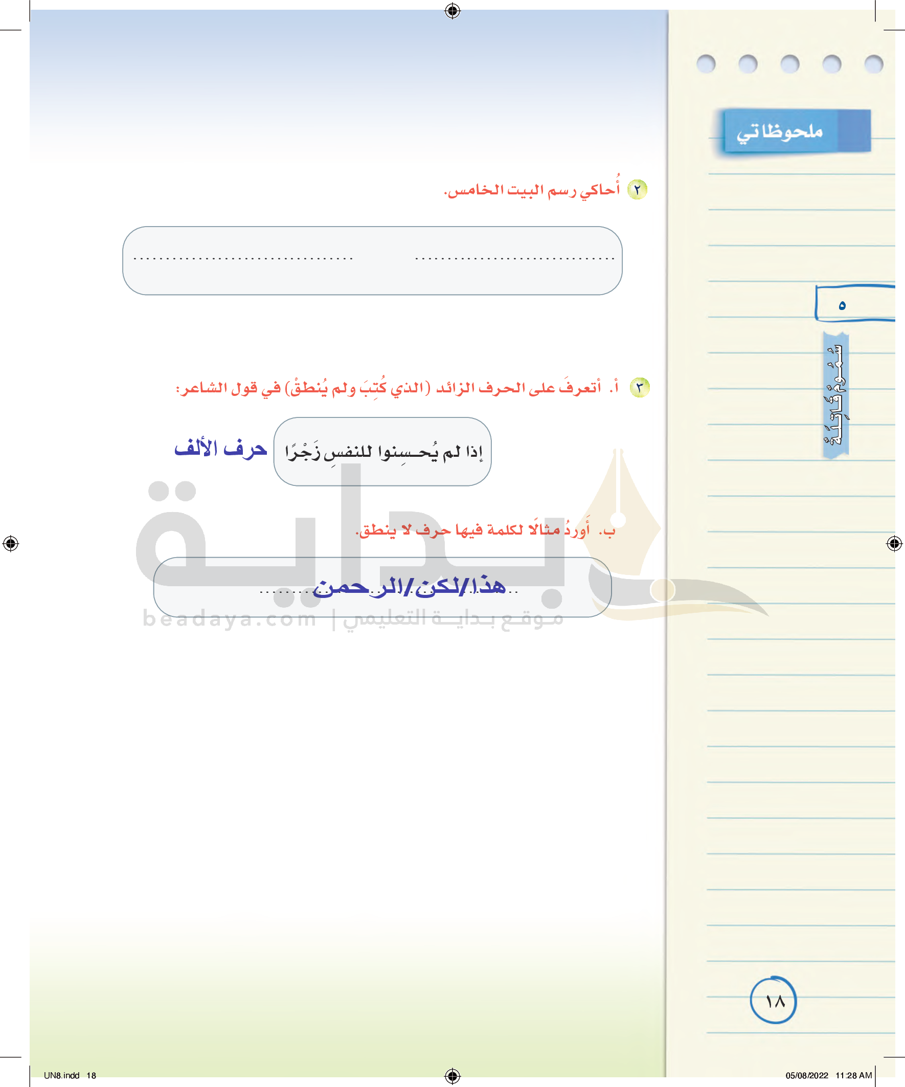 رسم بعض الكلمات المزيد بعض حروفها كالألف والواو