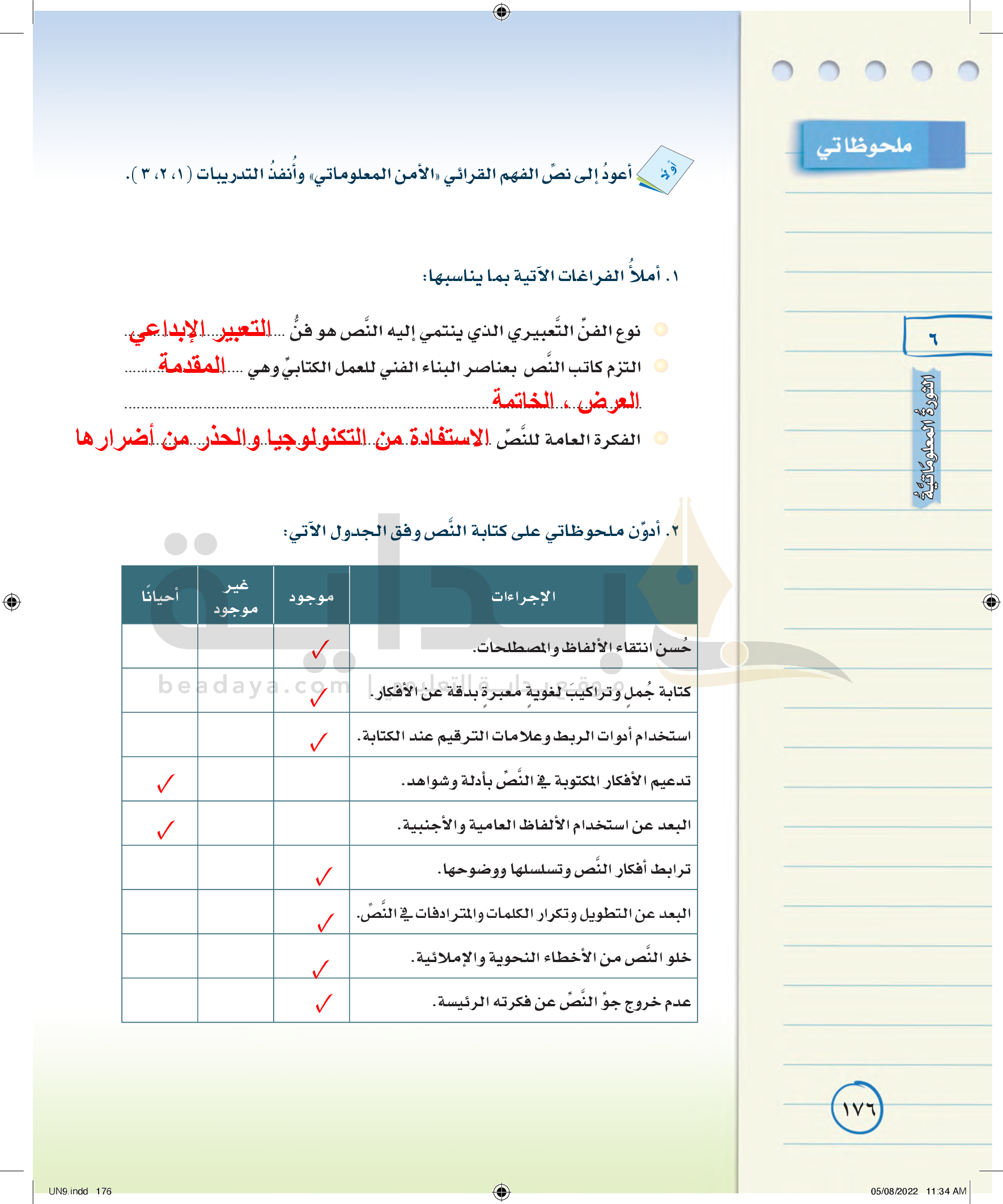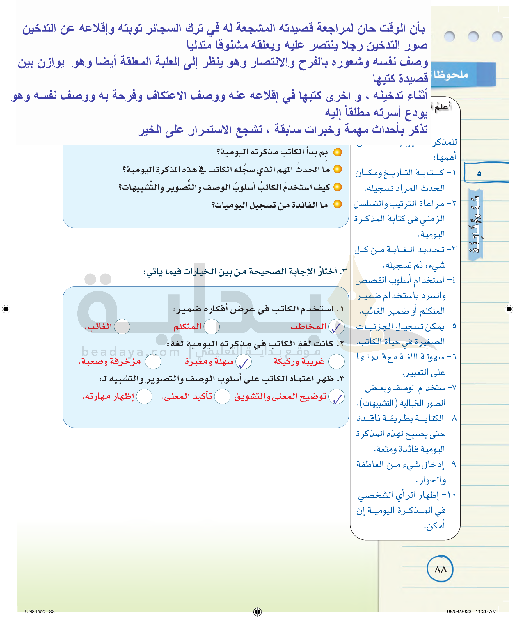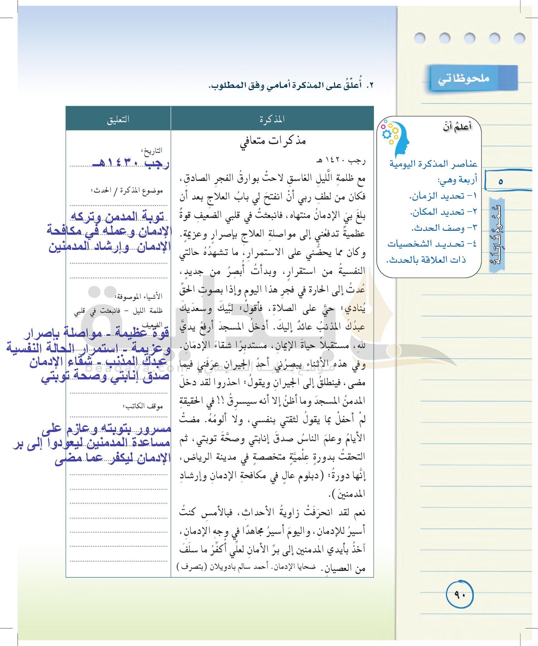 عناصر الفن الكتابي (كتابة مذكرات يومية)