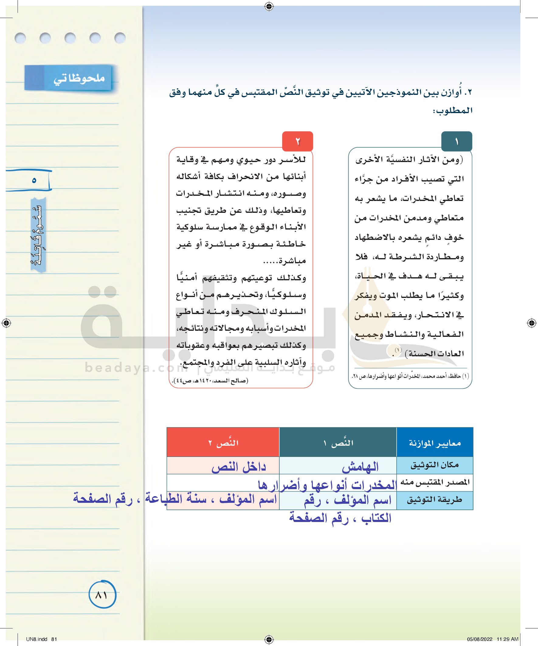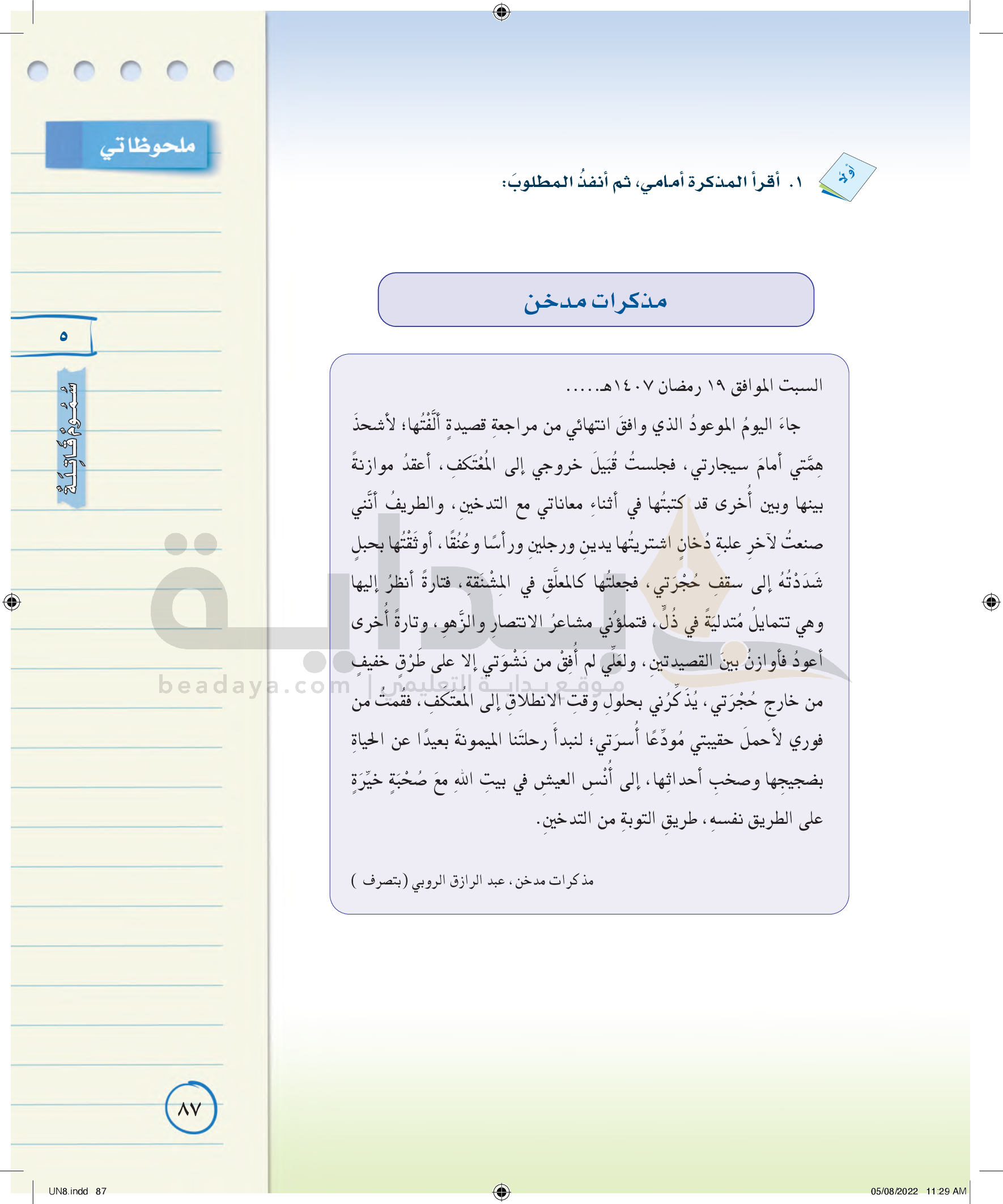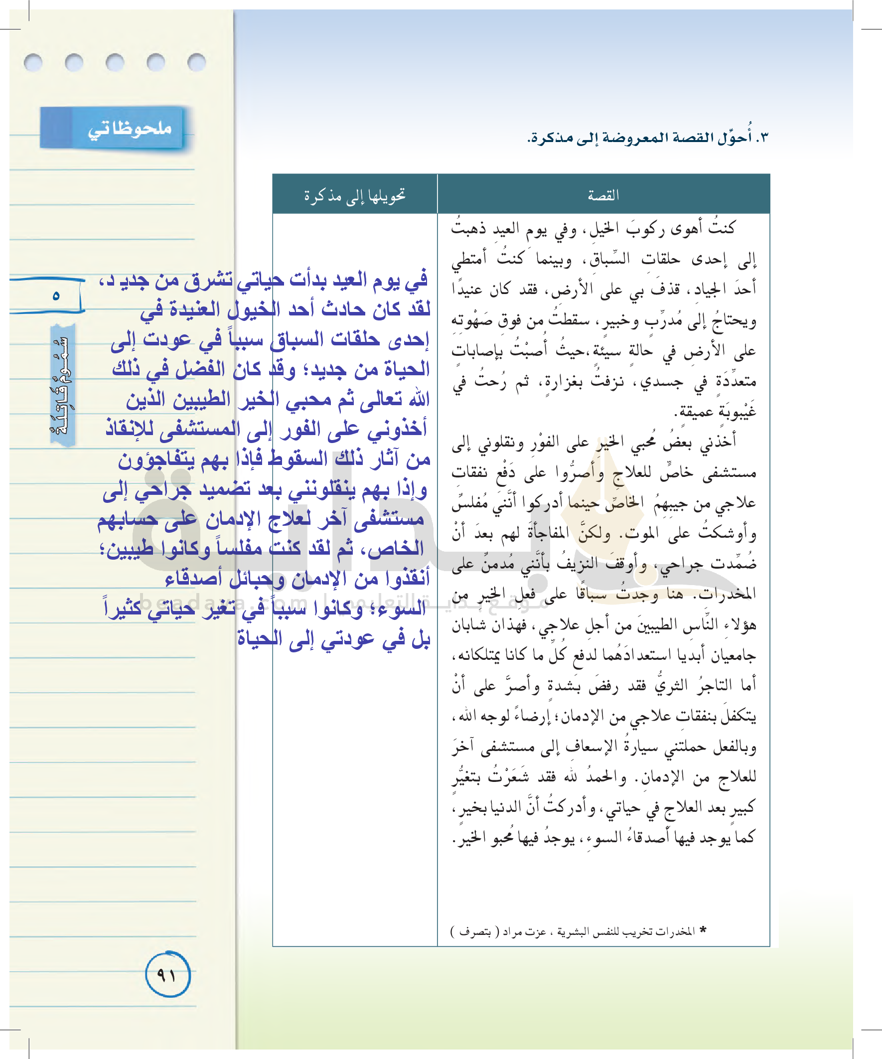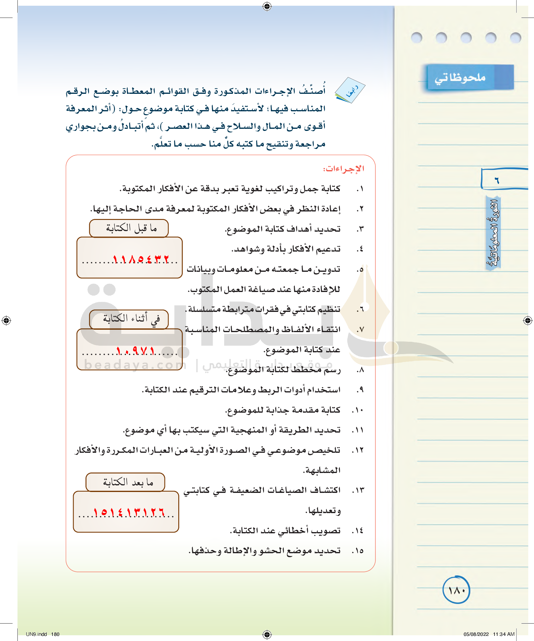 عناصر الفن الكتابي (كتابة مذكرات يومية)