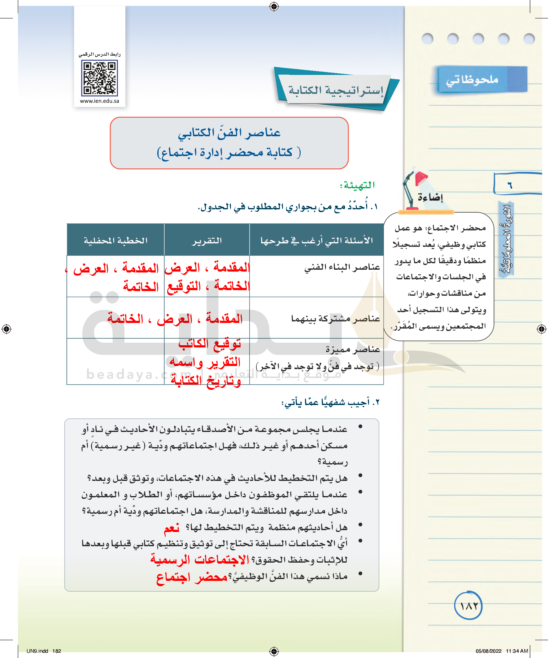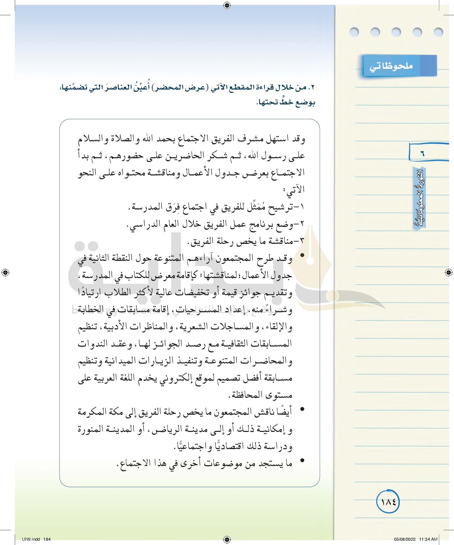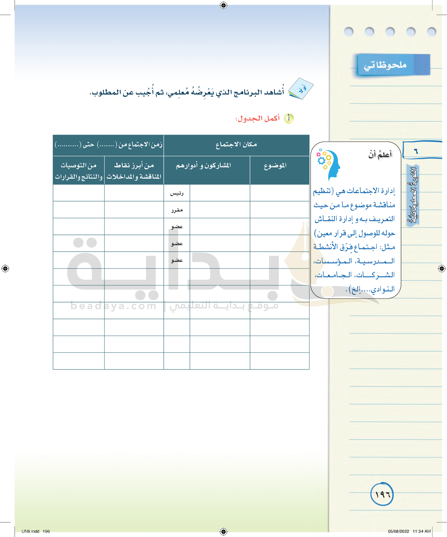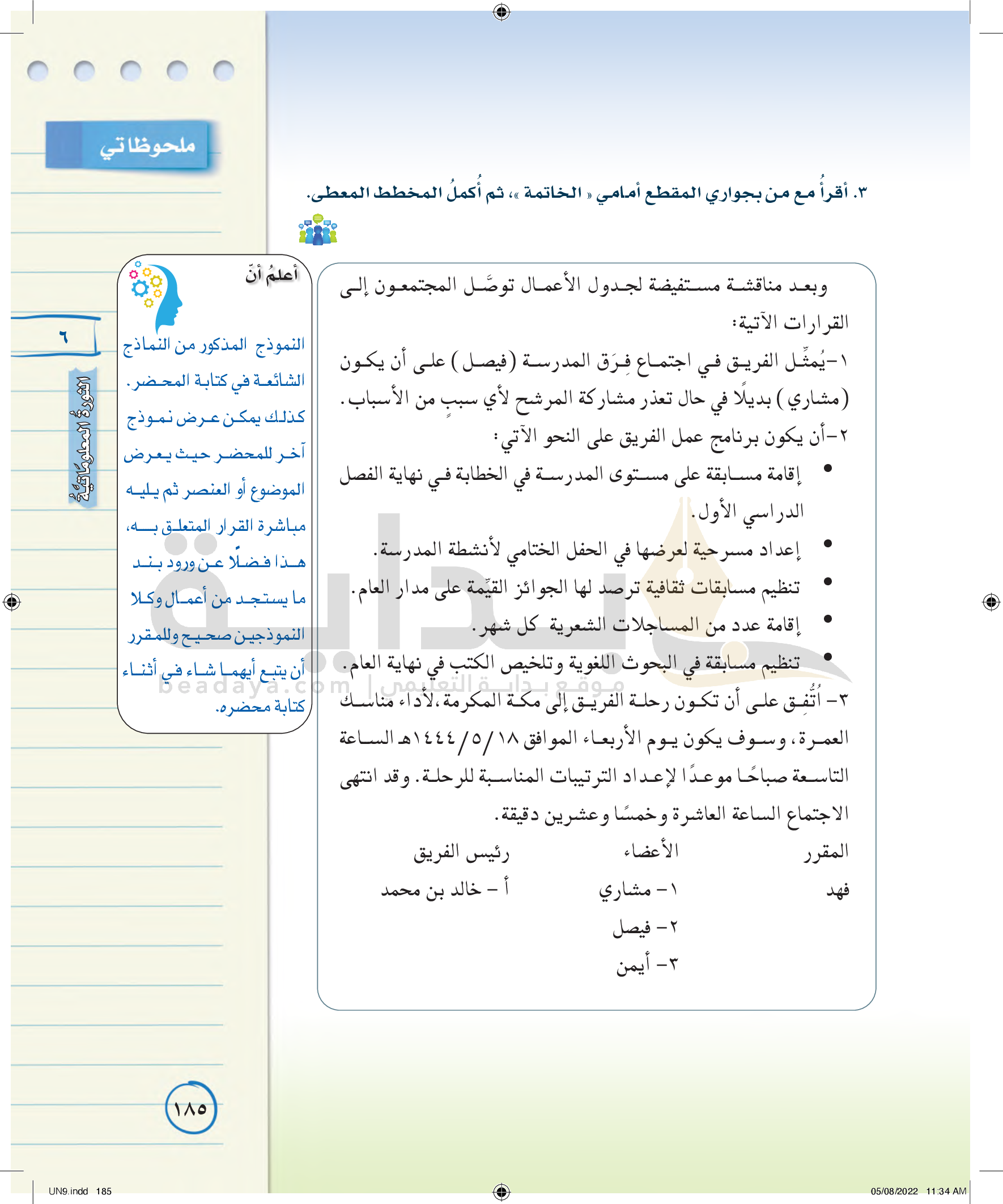 كتابة محضر إدارة اجتماع