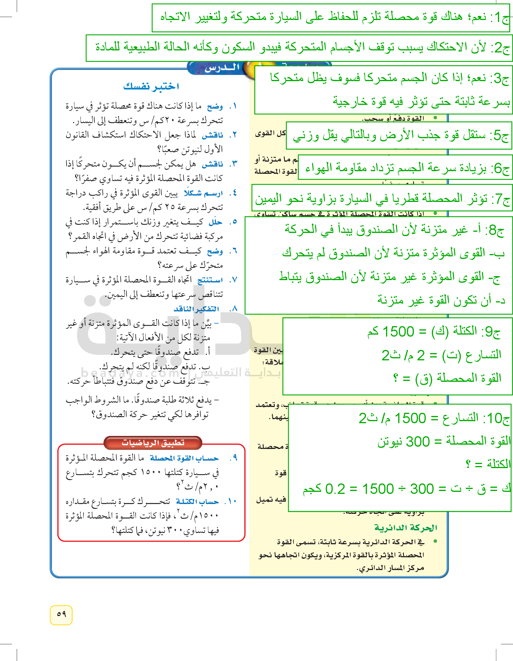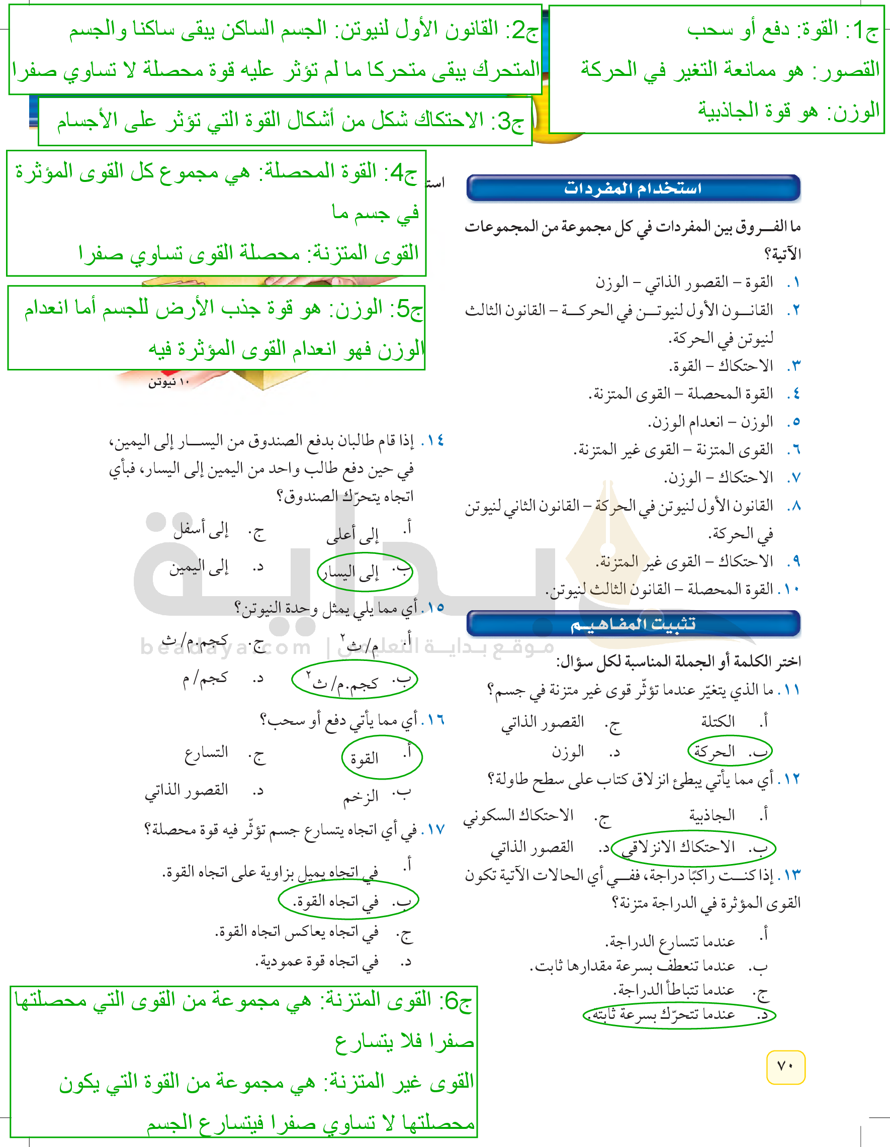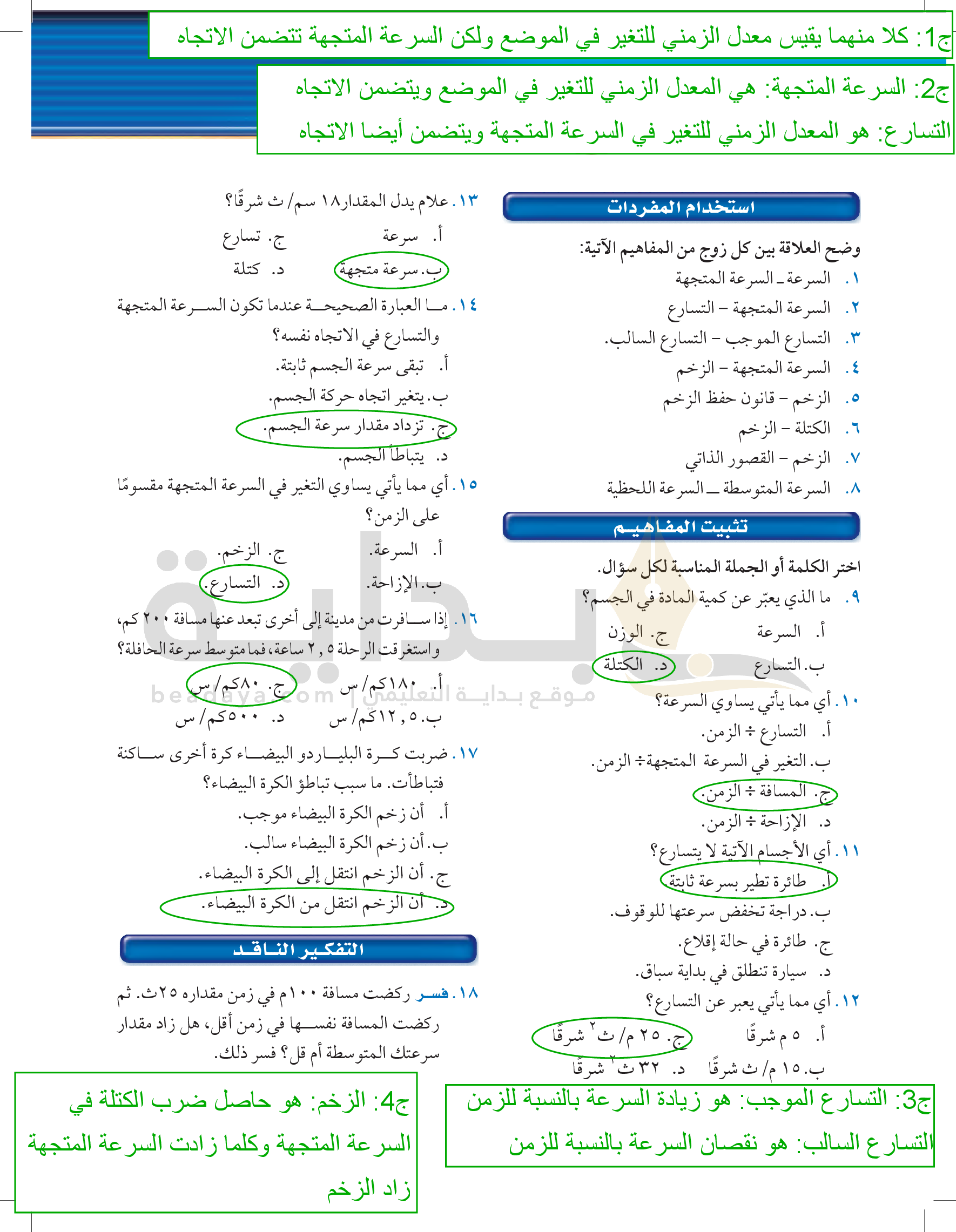 مراجعة الفصل التاسع