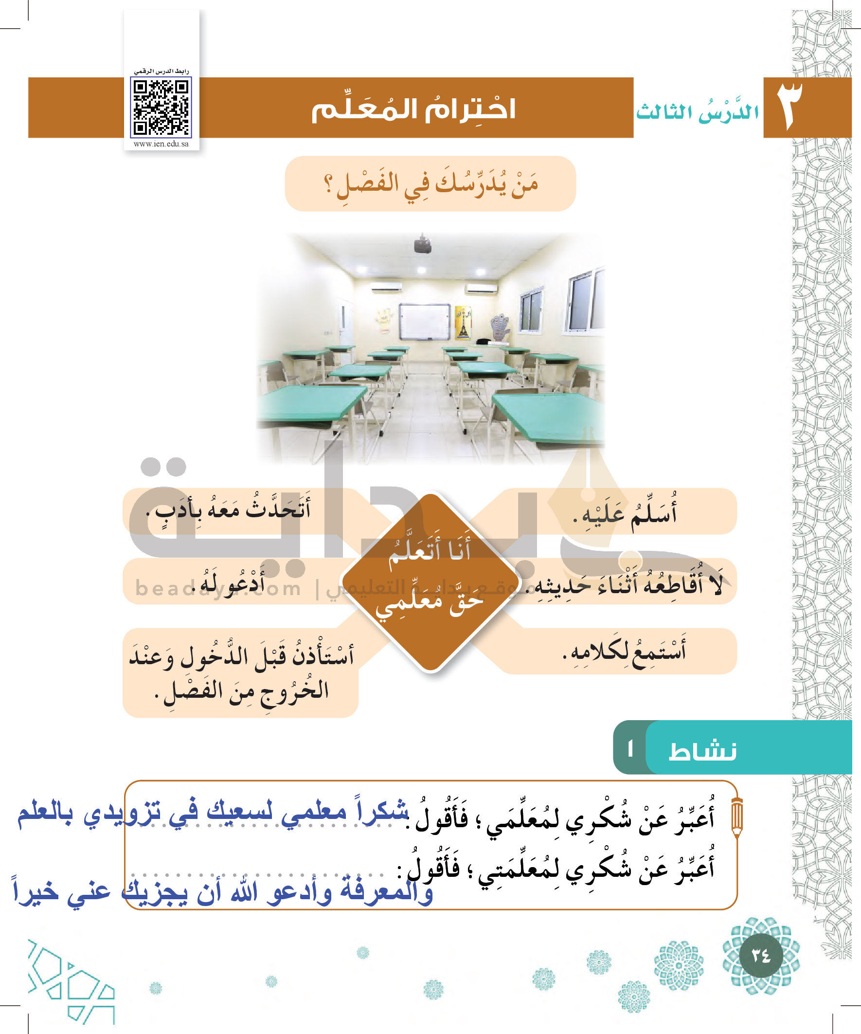 الفقه - احترام المعلم