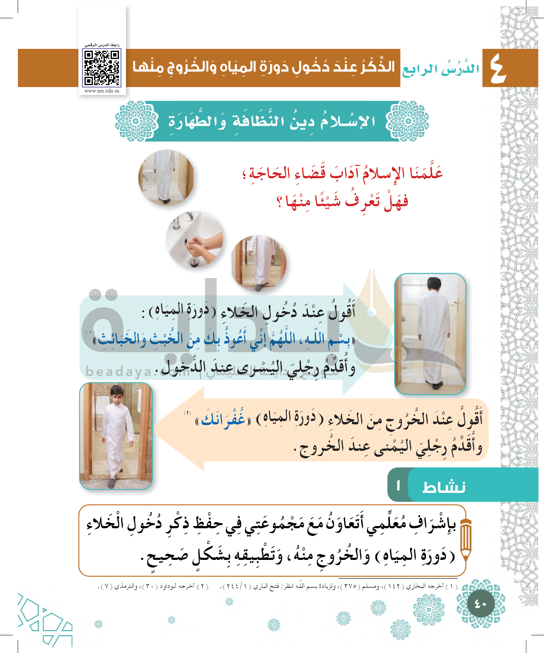 الفقه - الذكر عند دخول دورة المياه والخروج منها