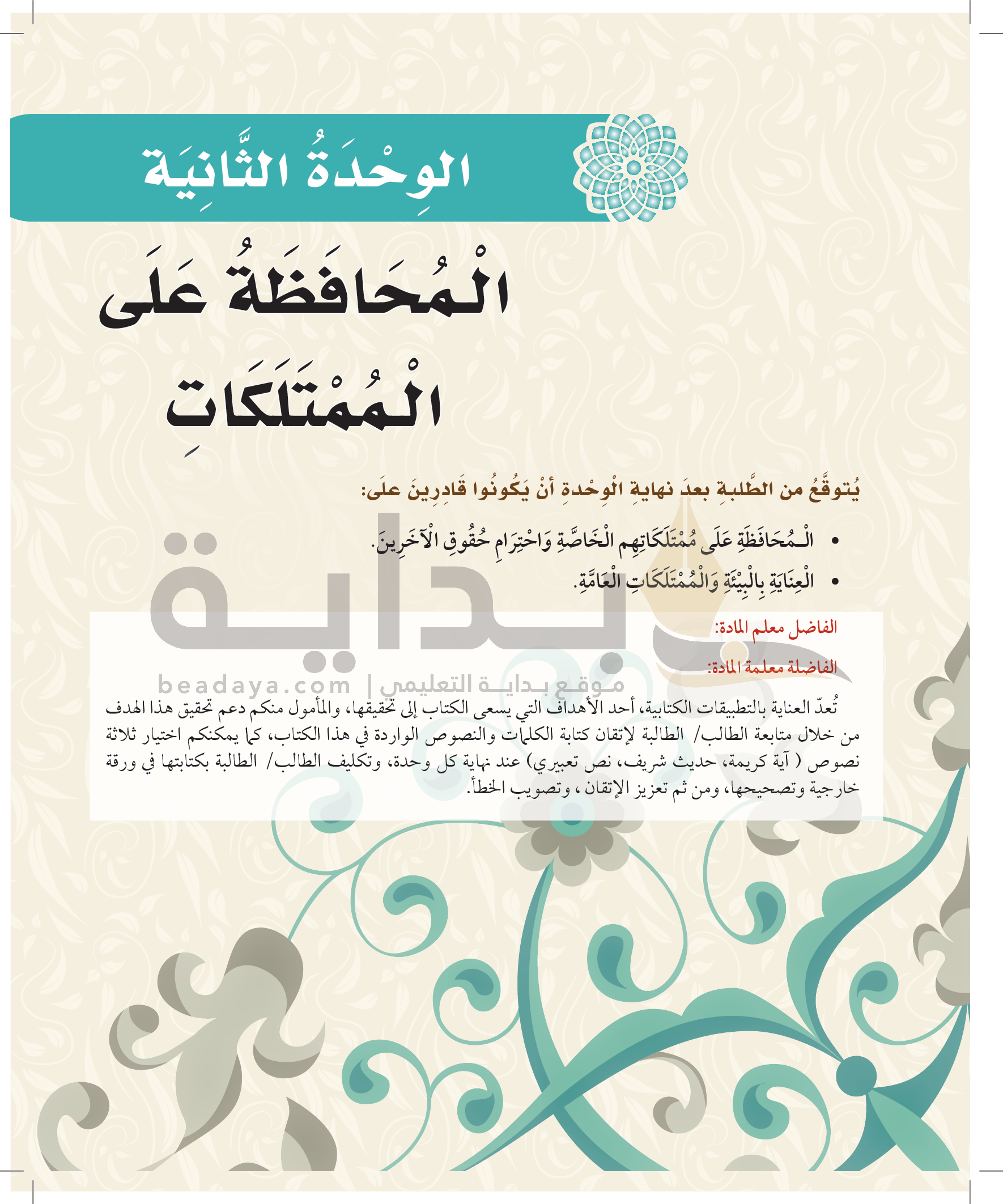 الفقه - المحافظة على الممتلكات الخاصة وحقوق الآخرين