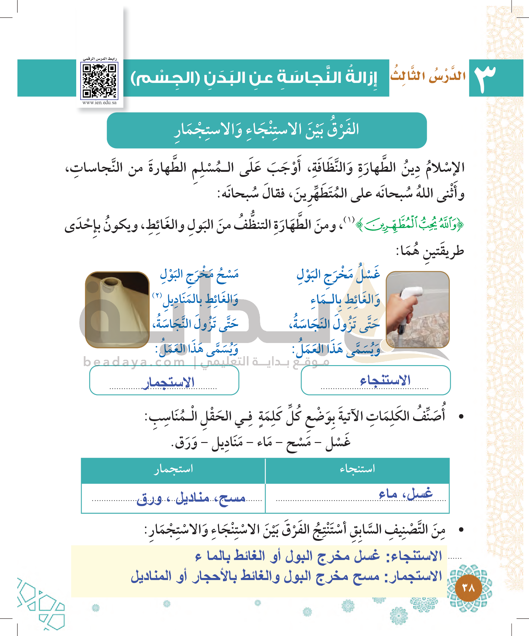 الفقه - إزالة النجاسة عن البدن (الجسم)