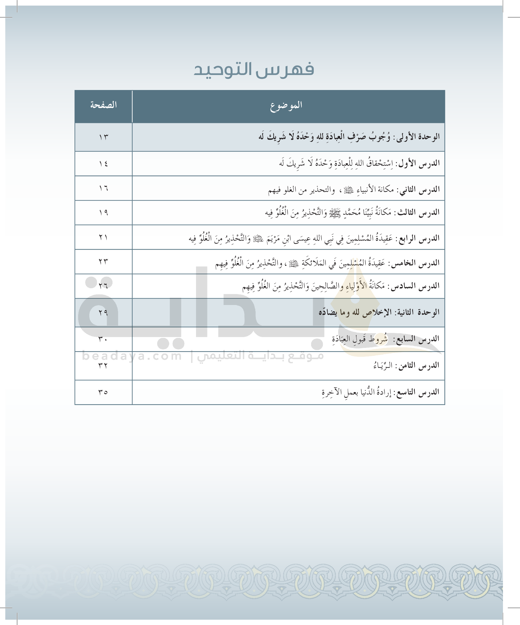 التوحيد - الوحدة الأولى: وجوب صرف العبادة لله وحده لا شريك له