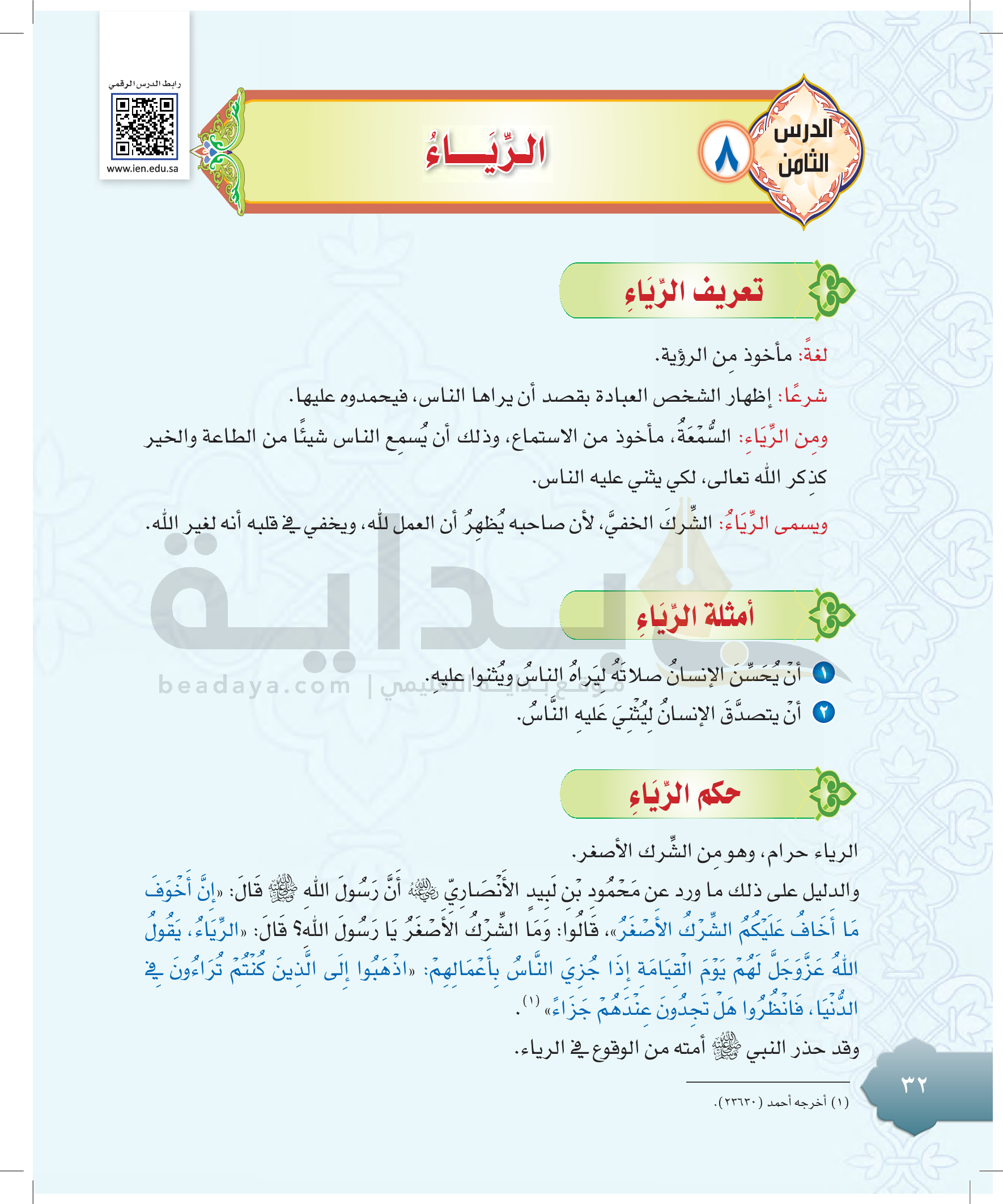 الحديث - الوحدة الأولى: الإيمان والعلم