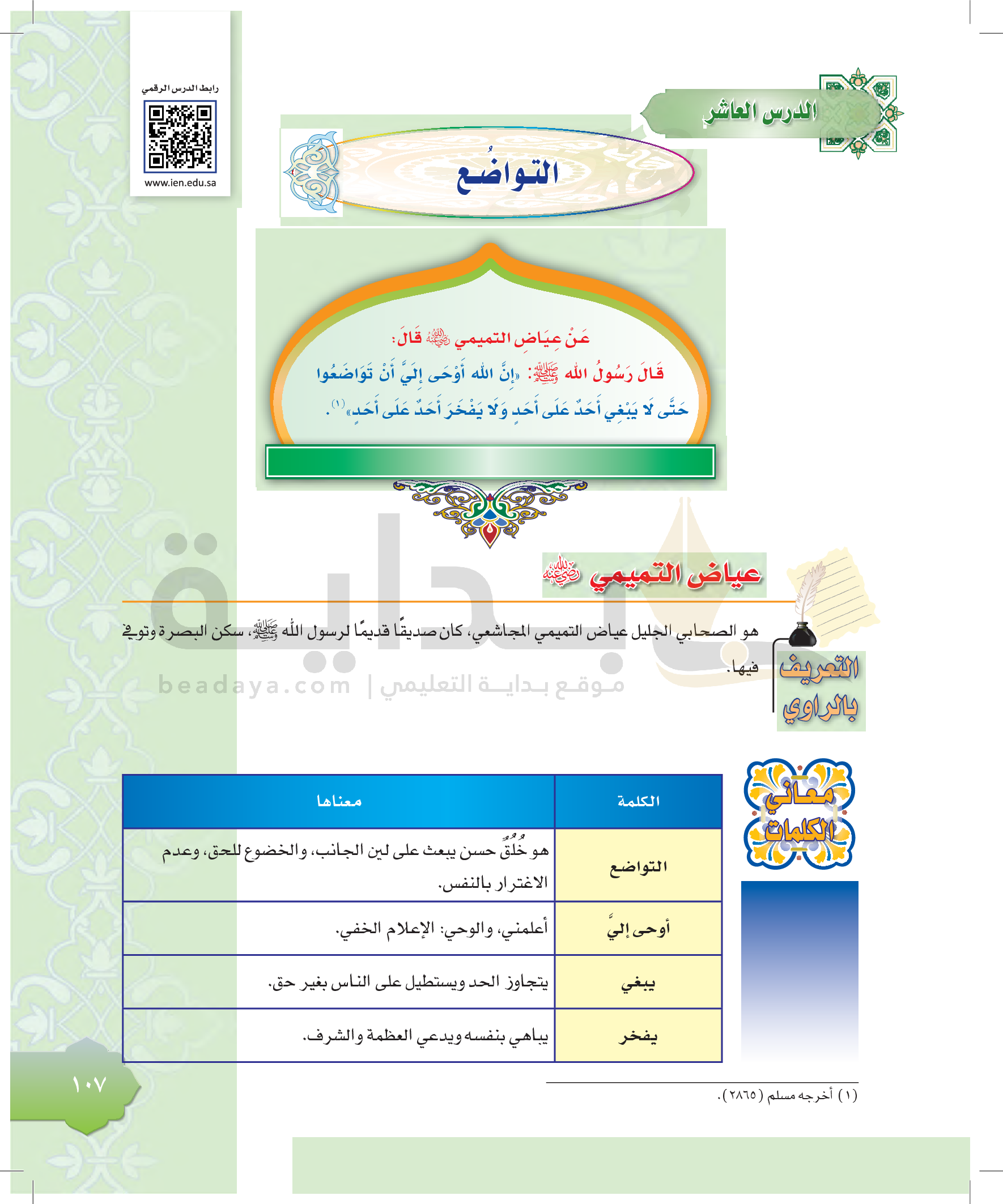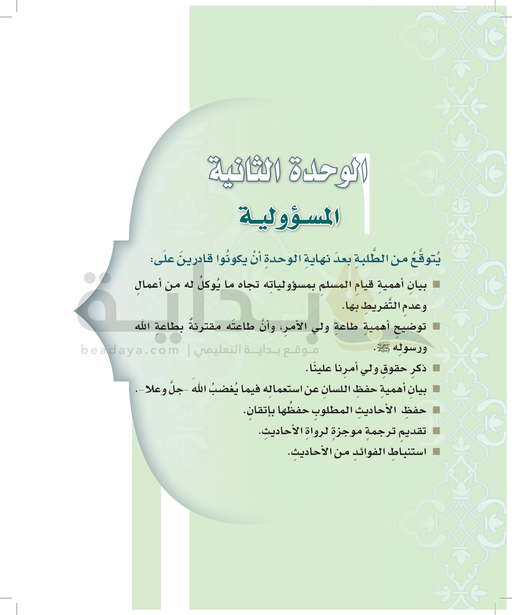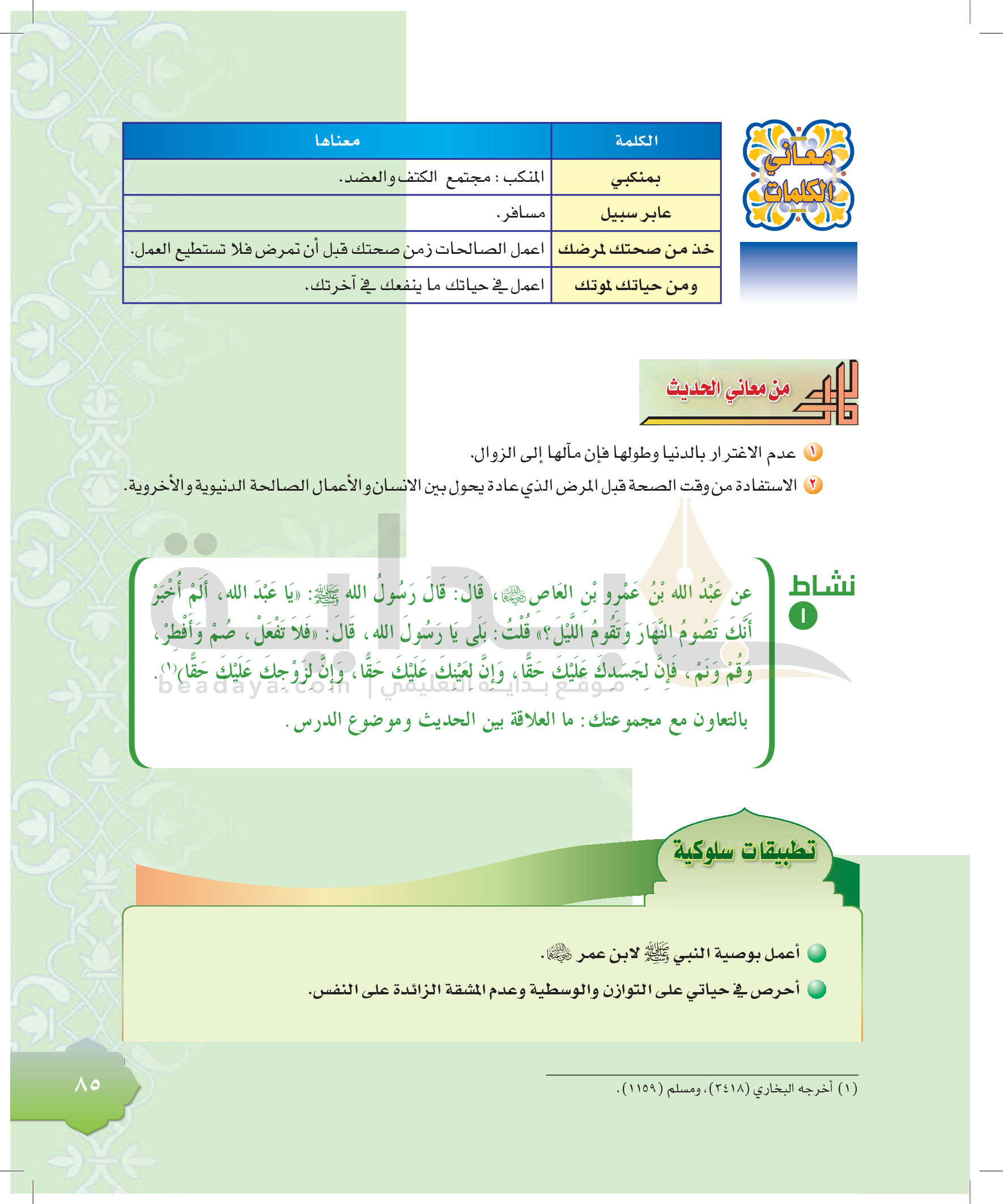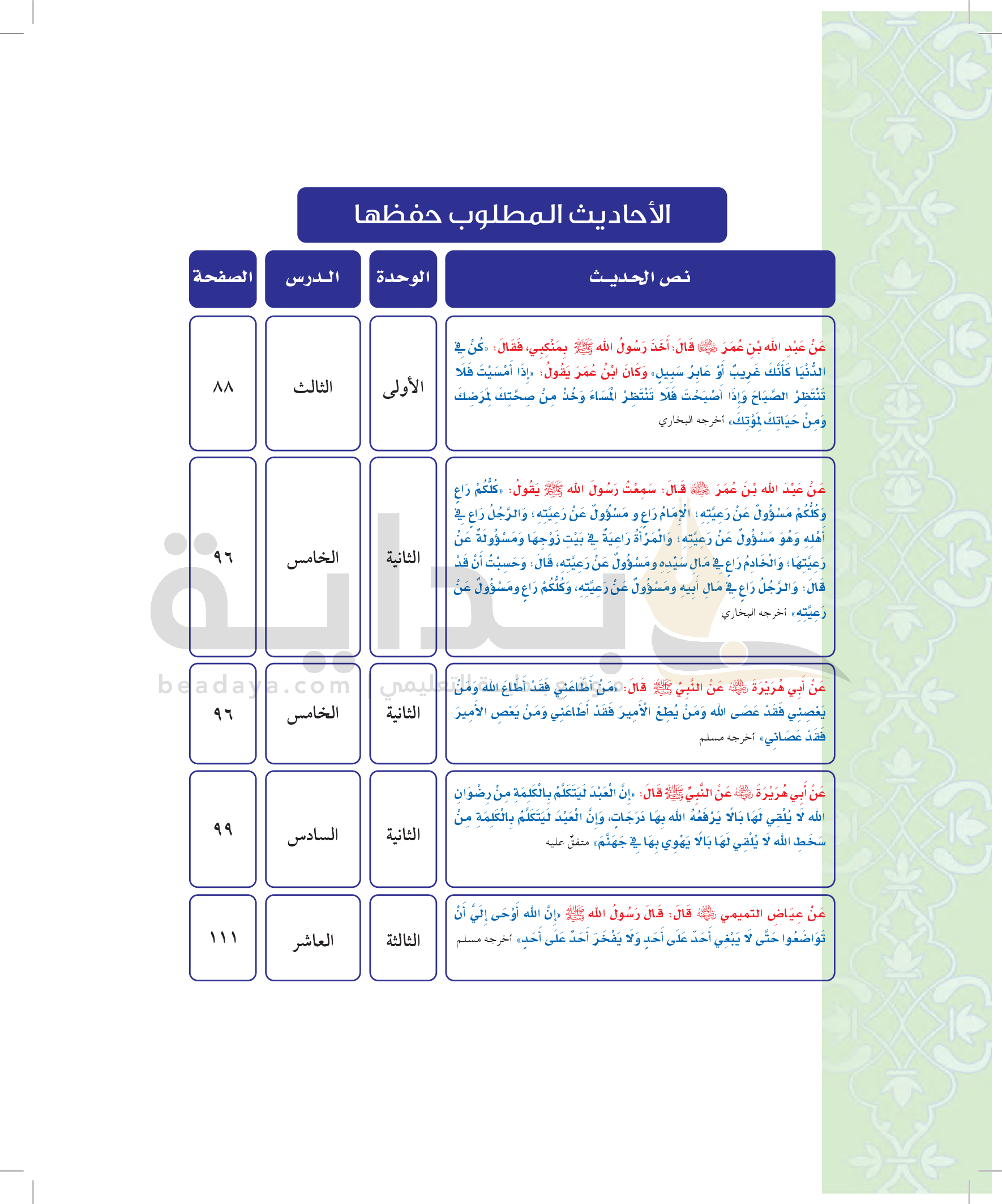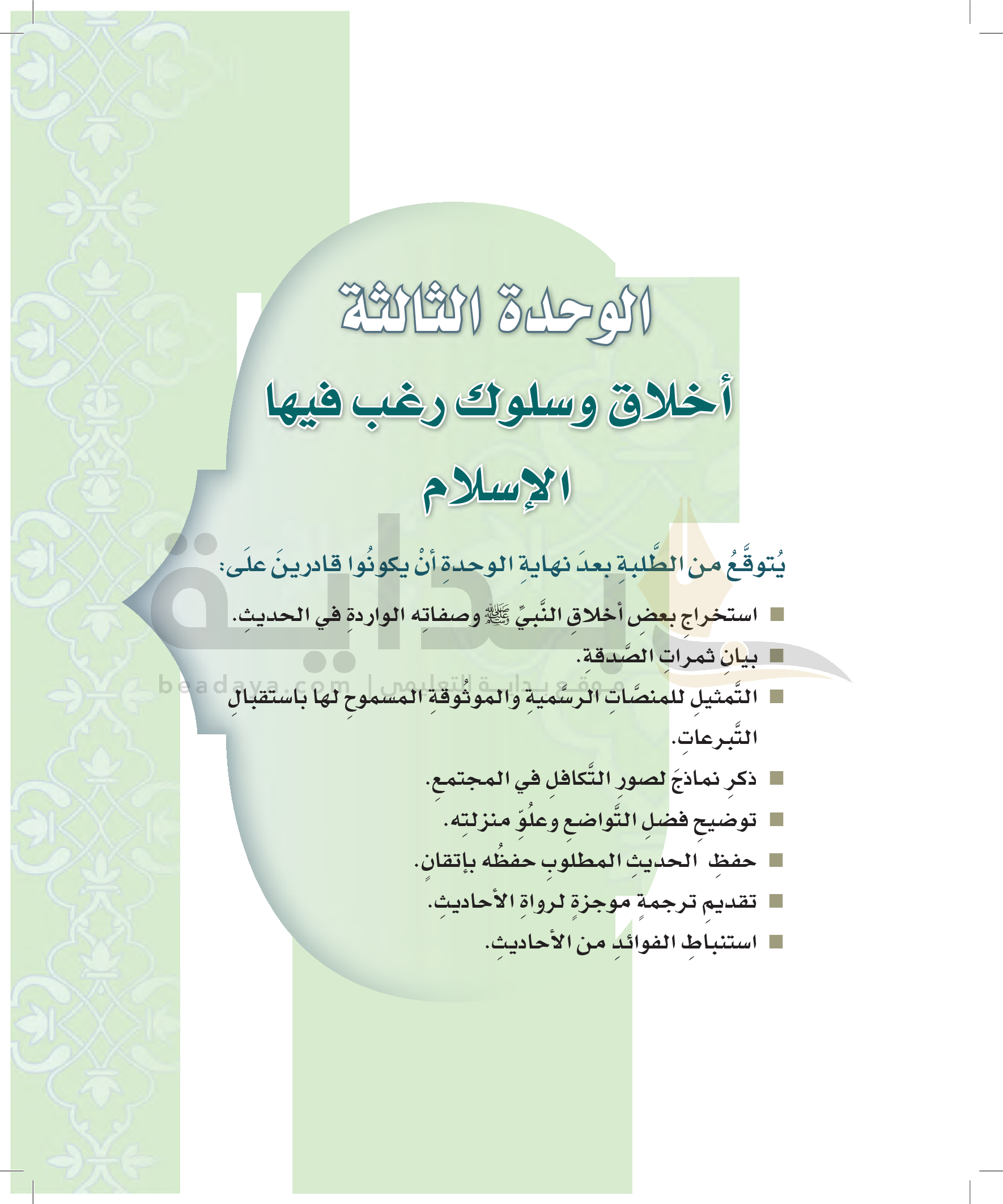 الحديث - الوحدة الثالثة: أخلاق وسلوك رغب فيها الإسلام