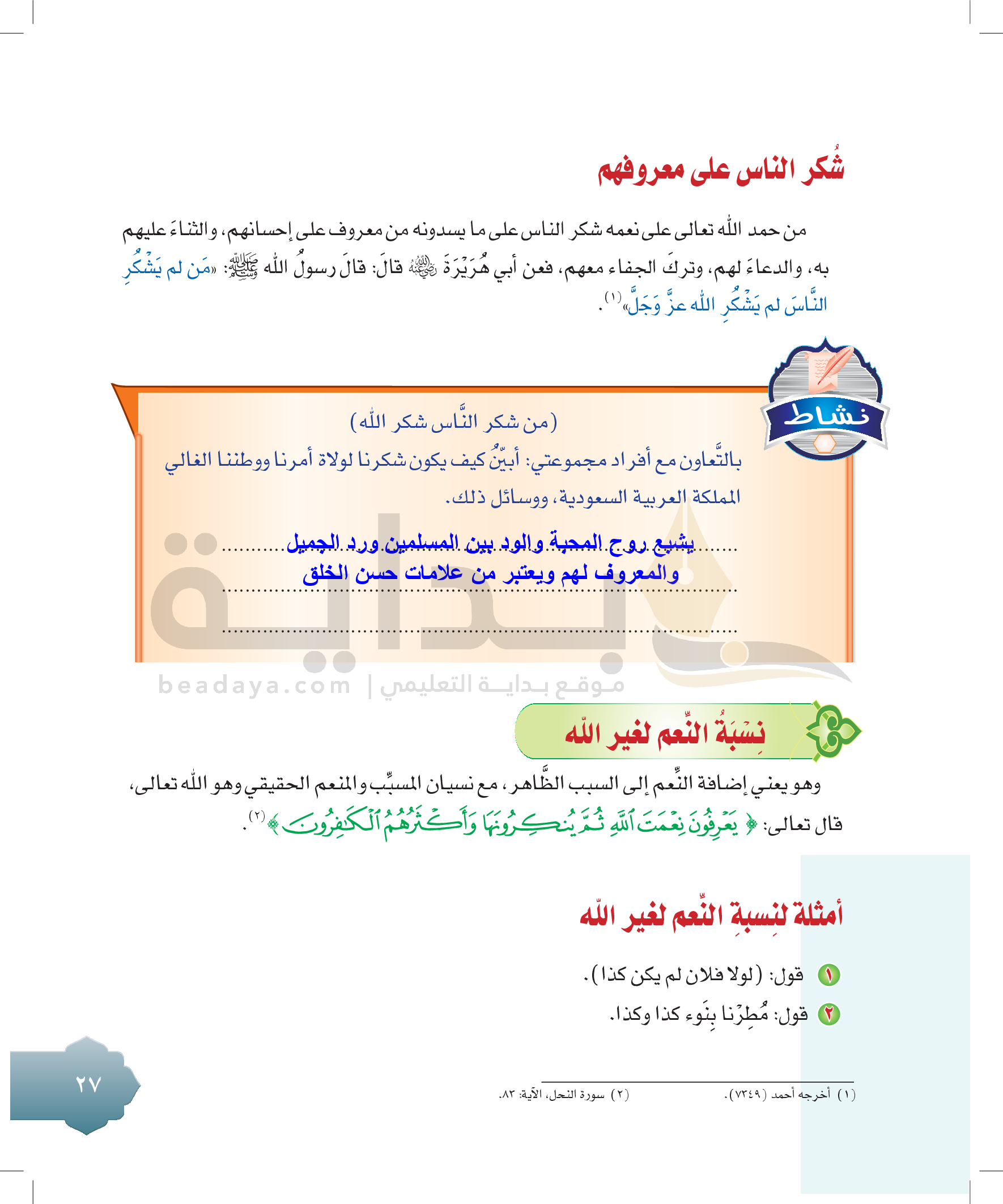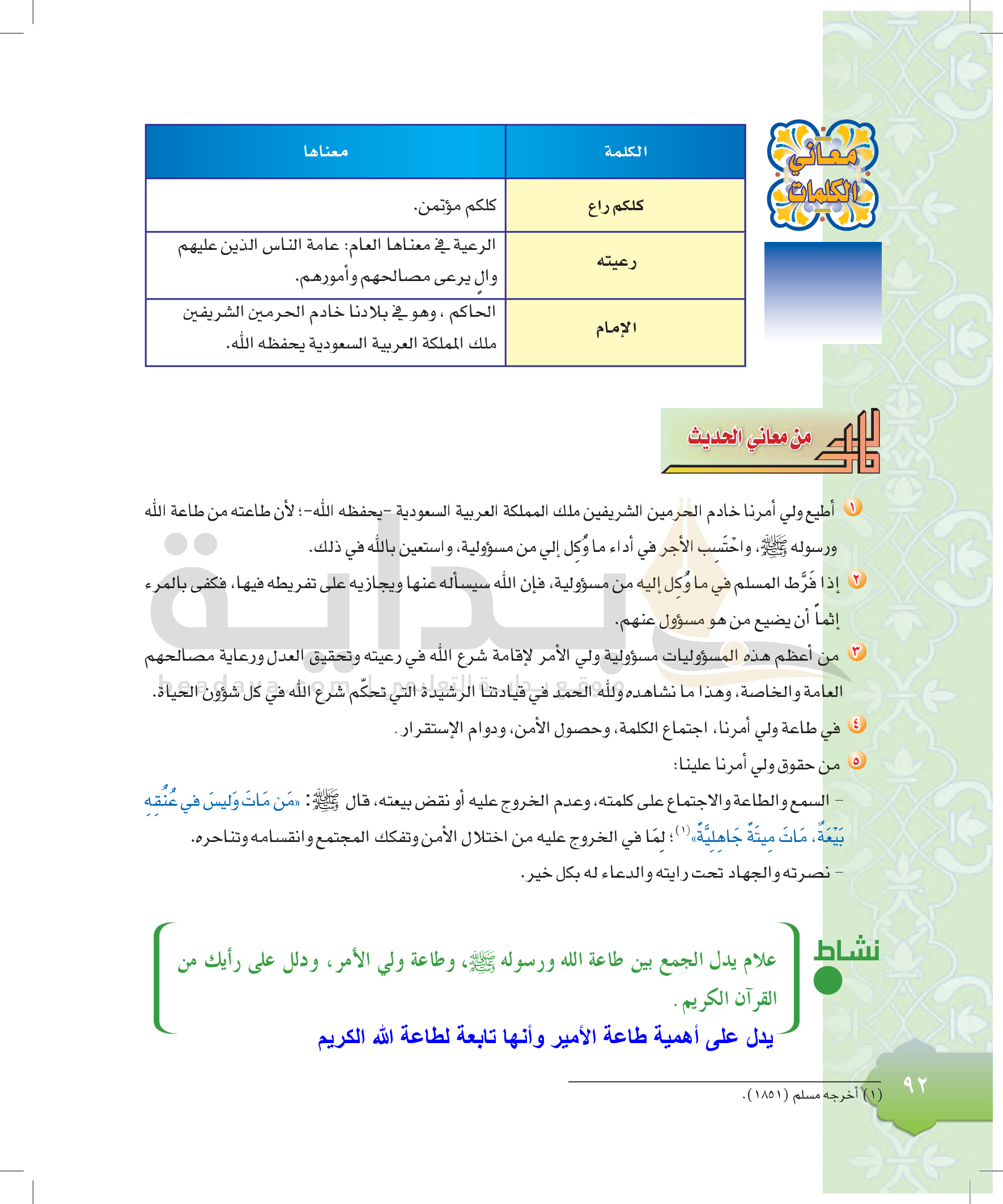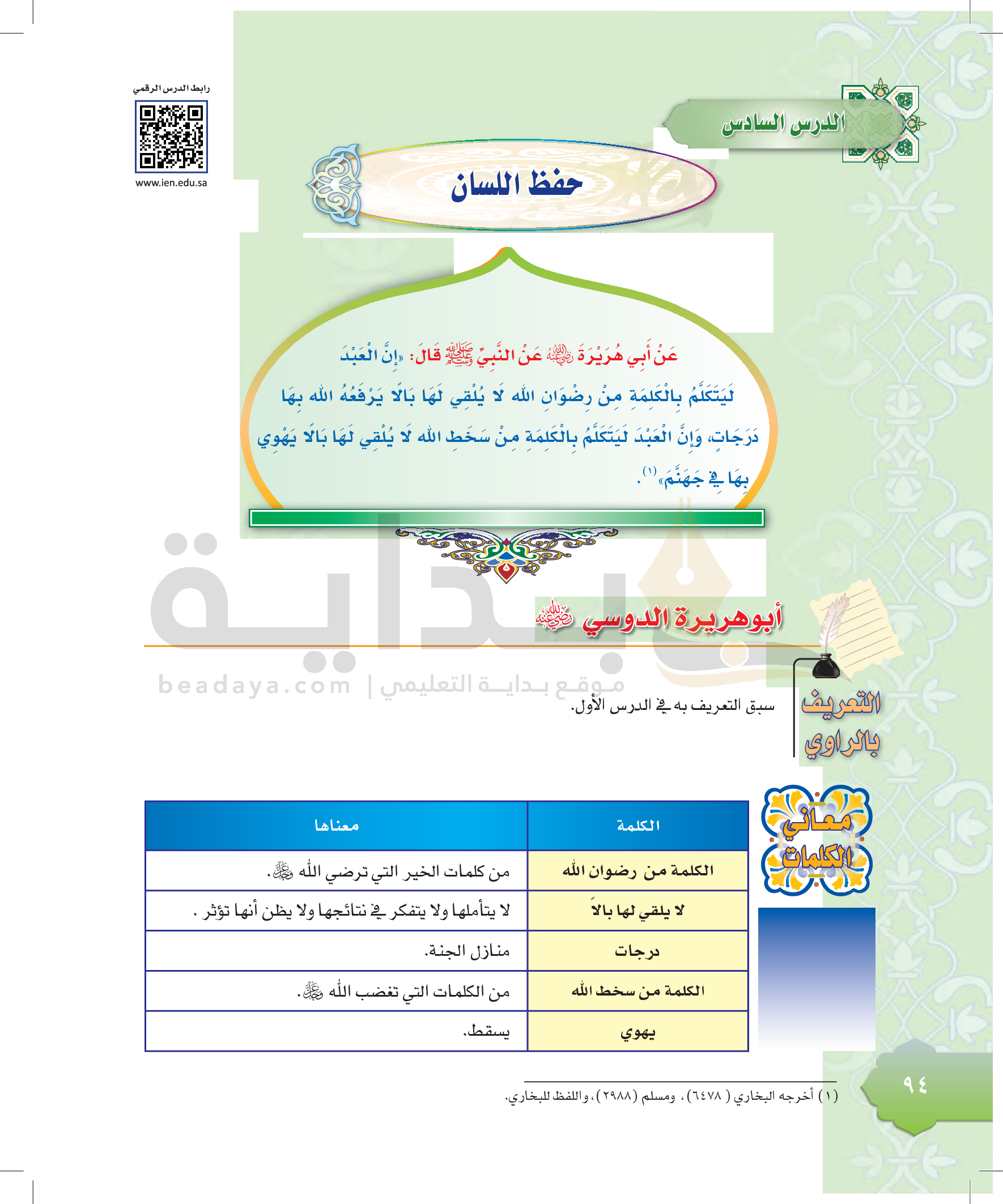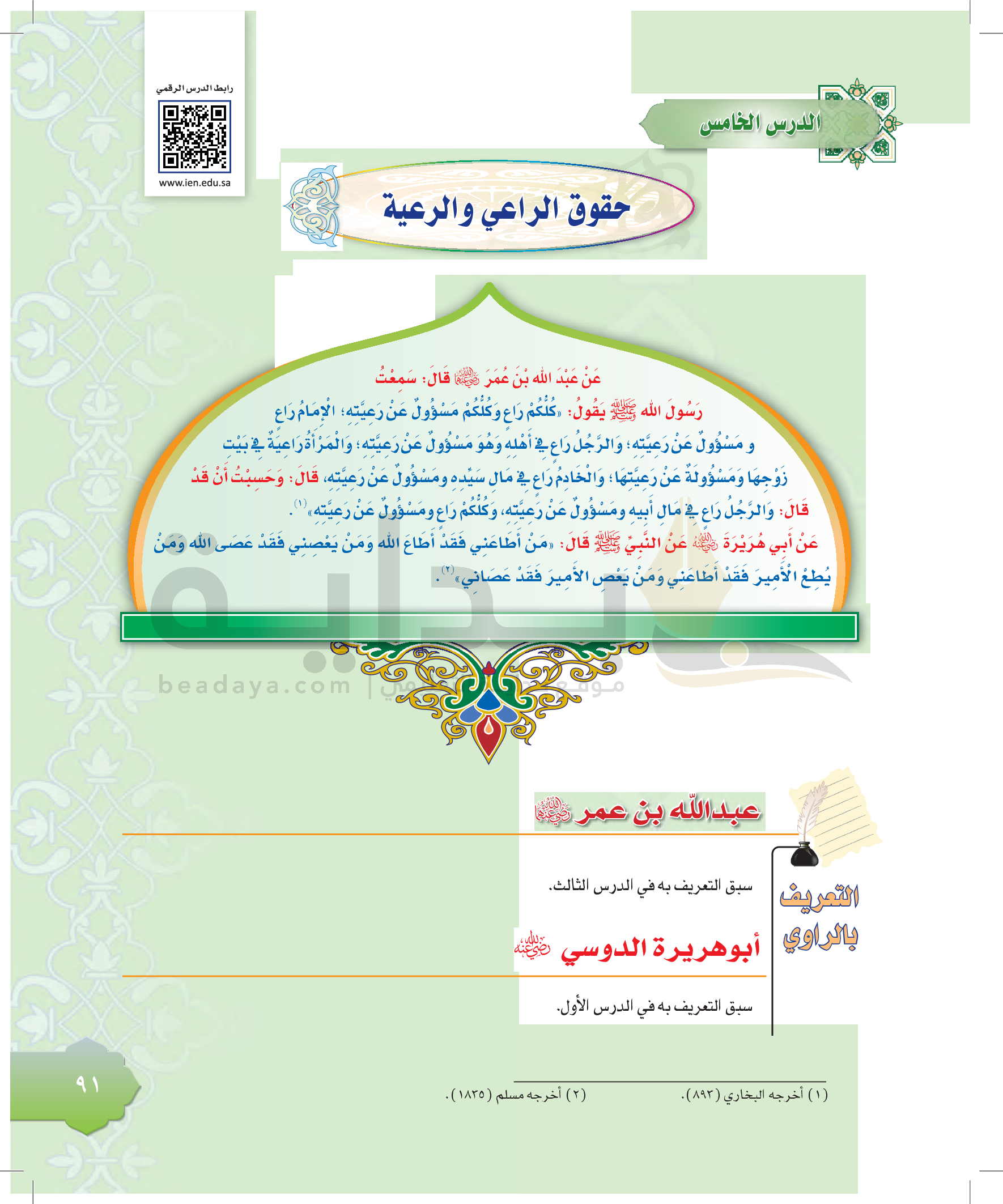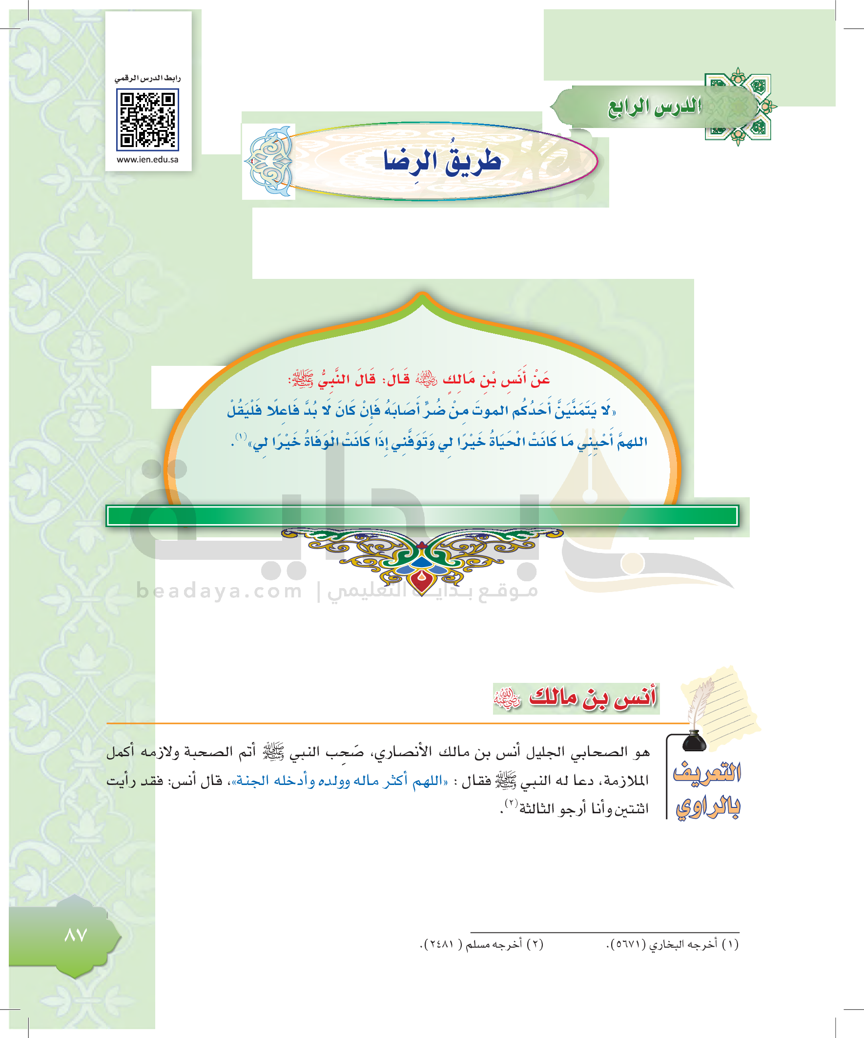 الحديث - الوحدة الثالثة: أخلاق وسلوك رغب فيها الإسلام