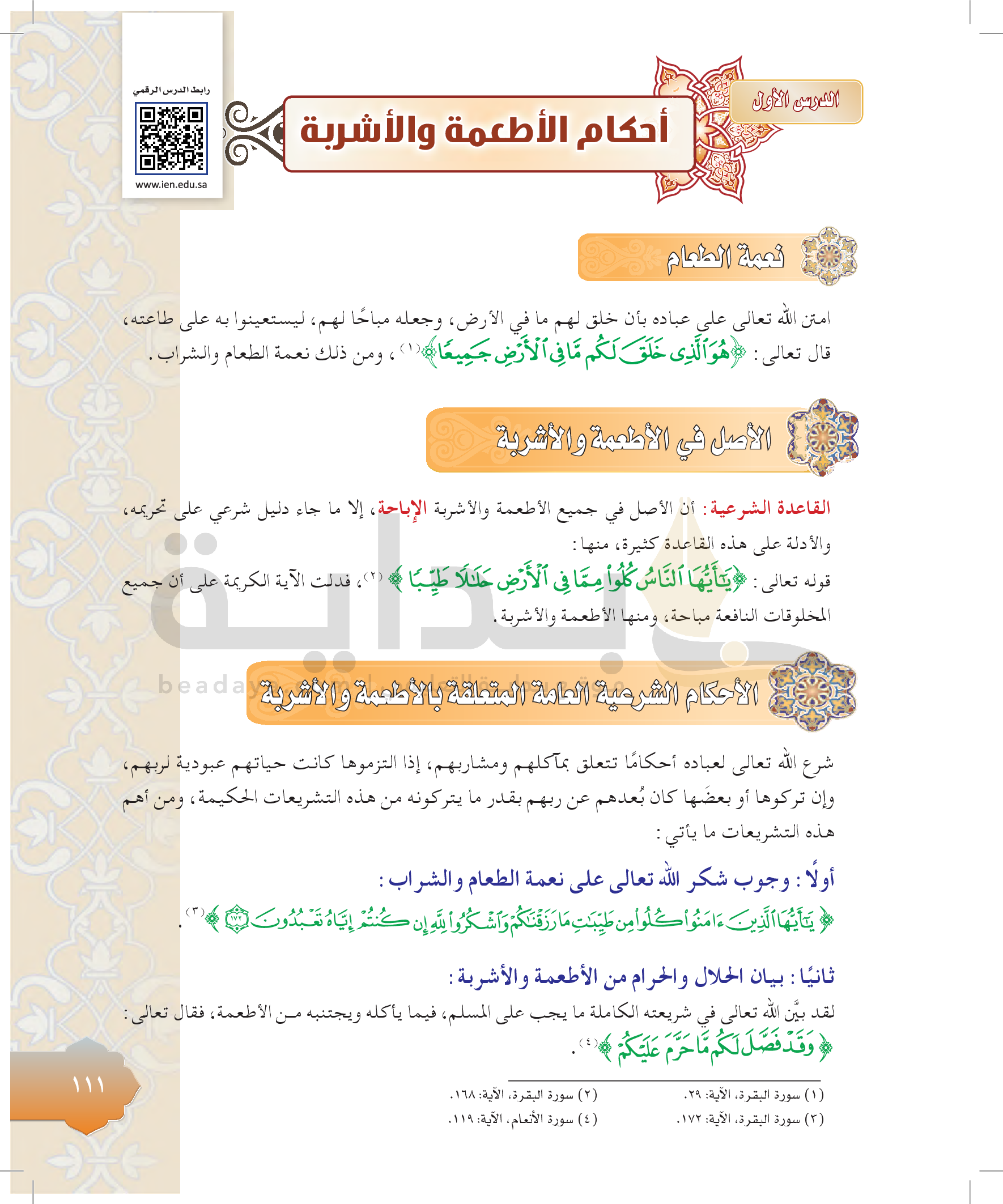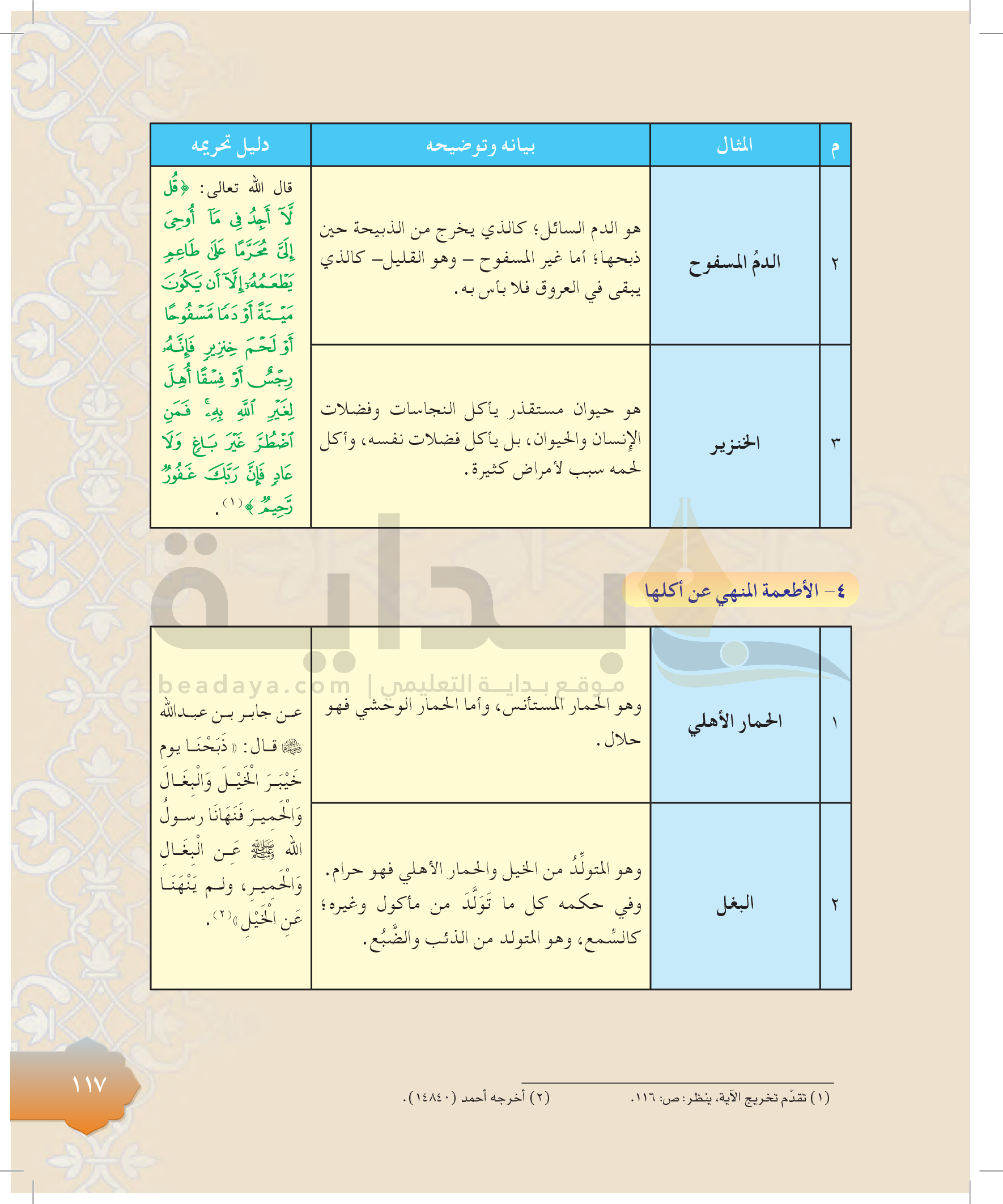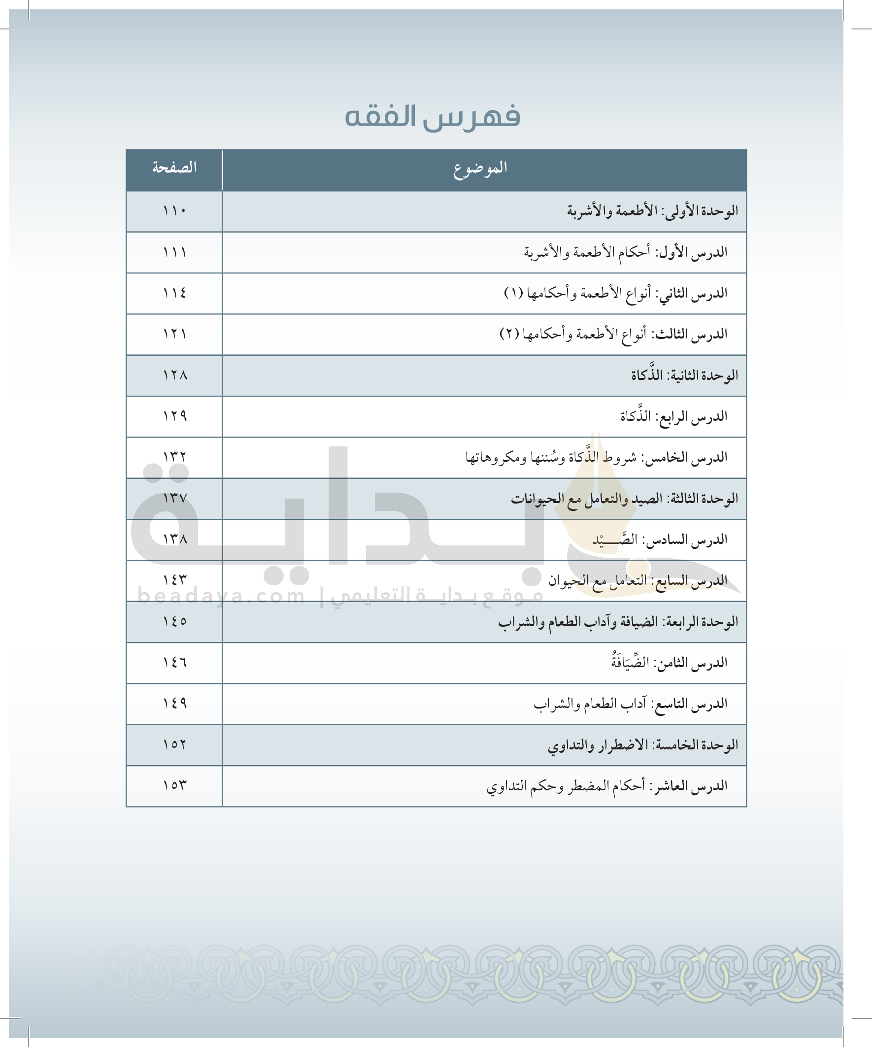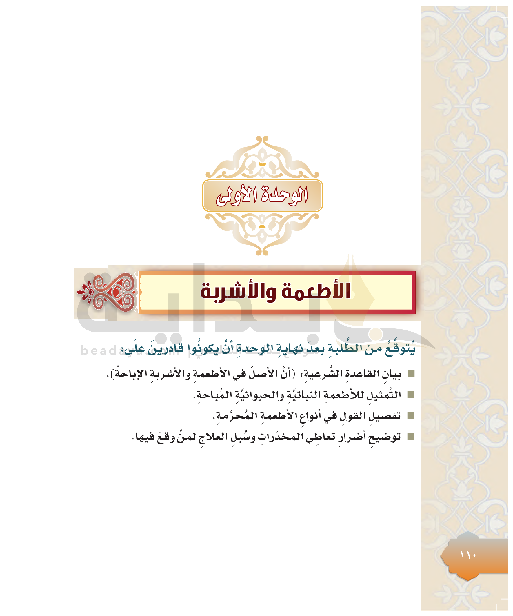 الفقه - الوحدة الأولى: الأطعمة والأشربة