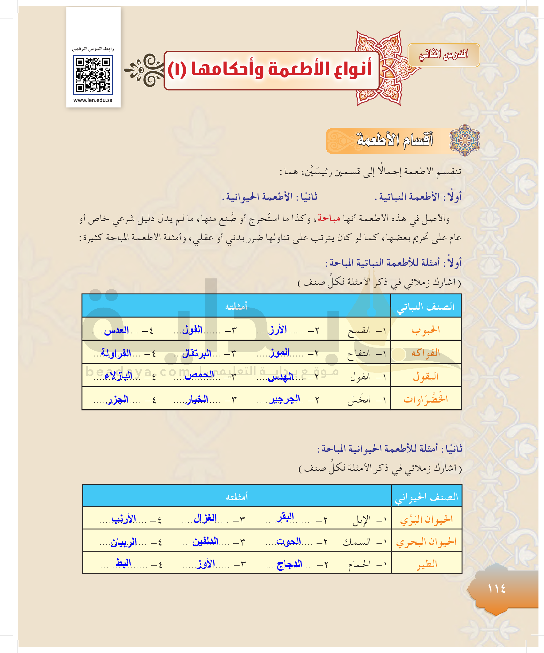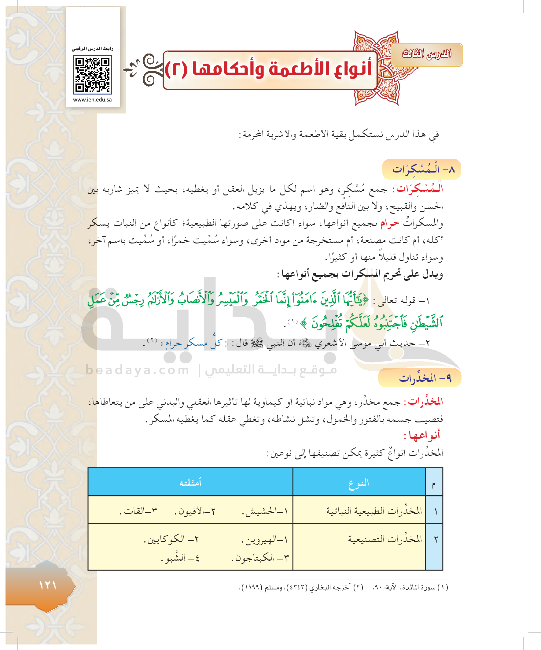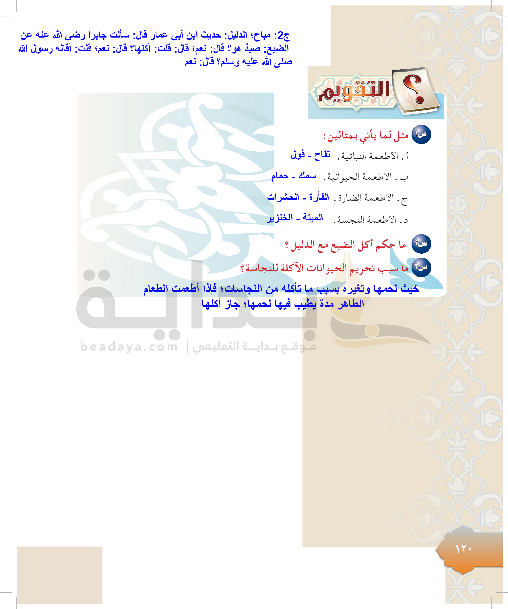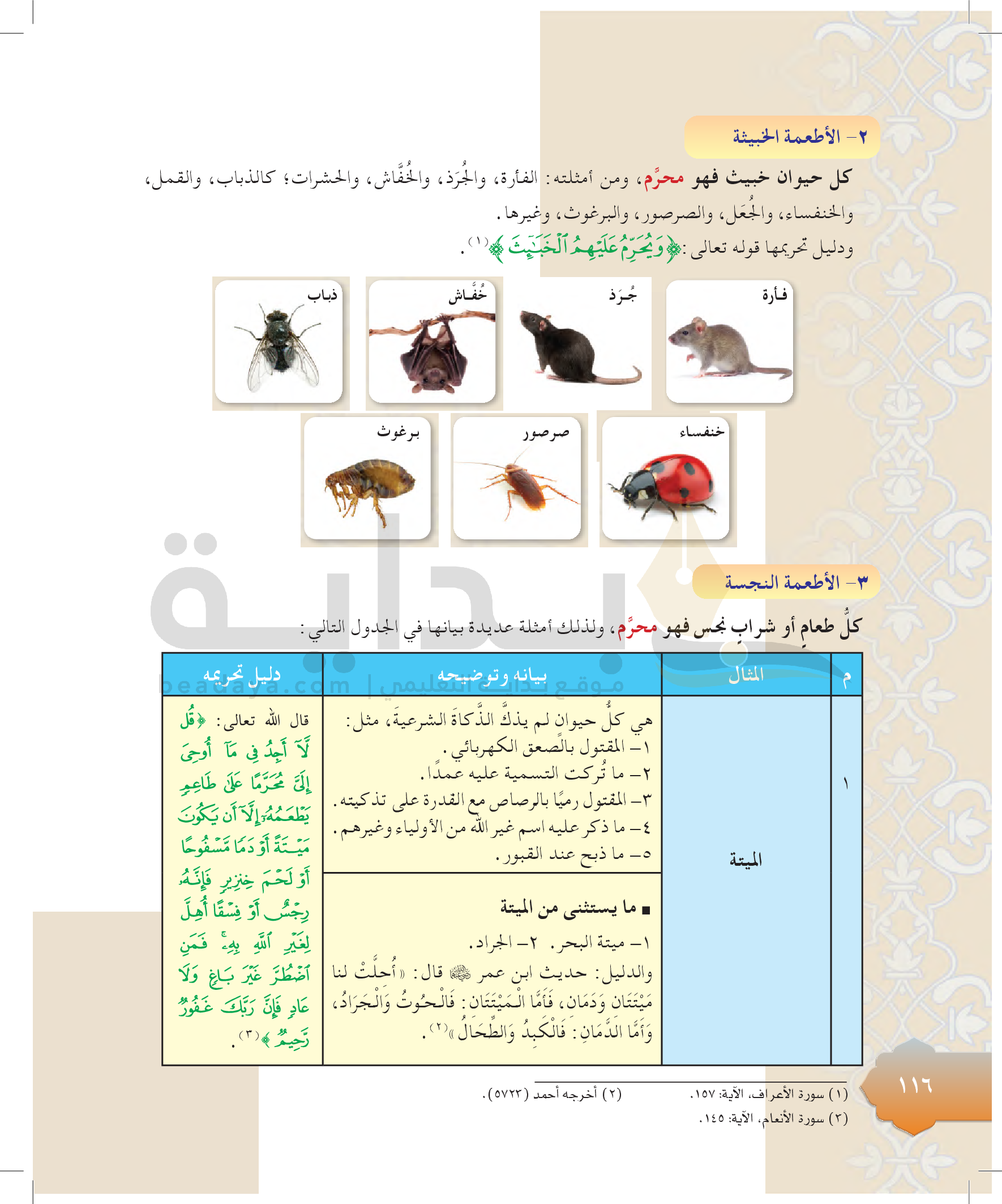 الفقه - الوحدة الأولى: الأطعمة والأشربة