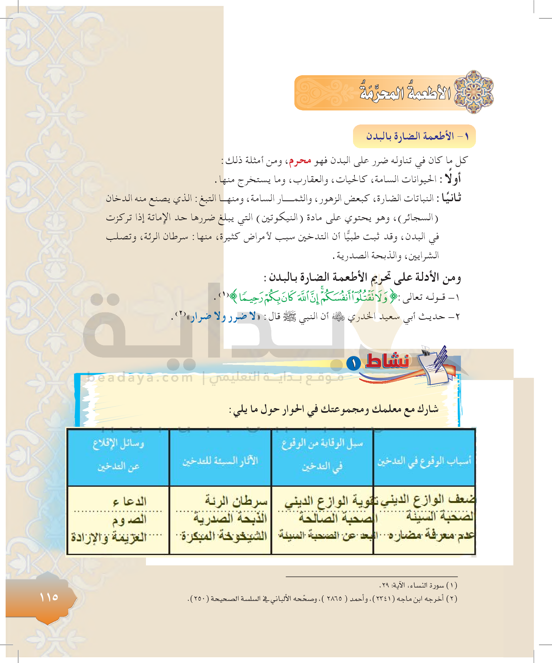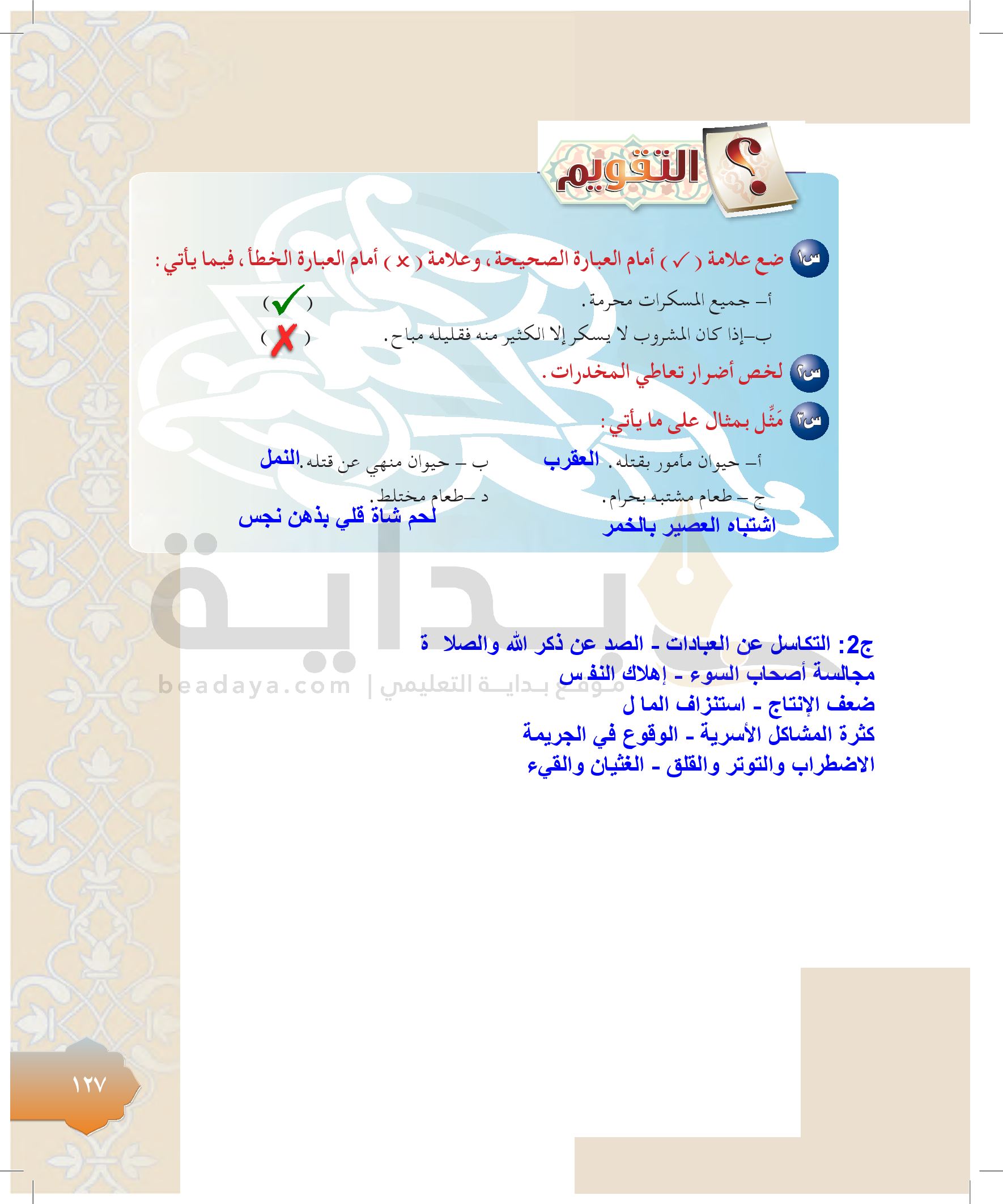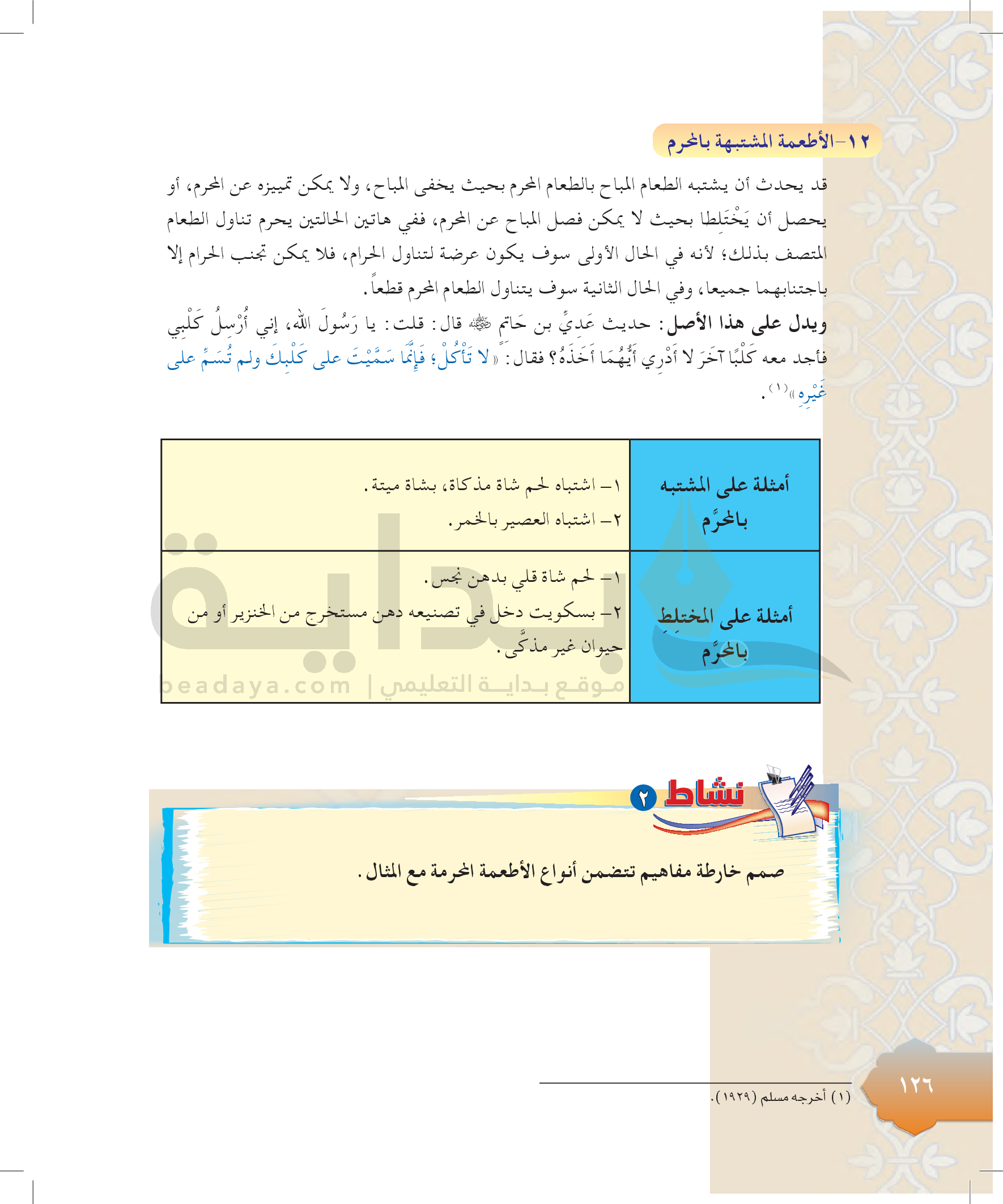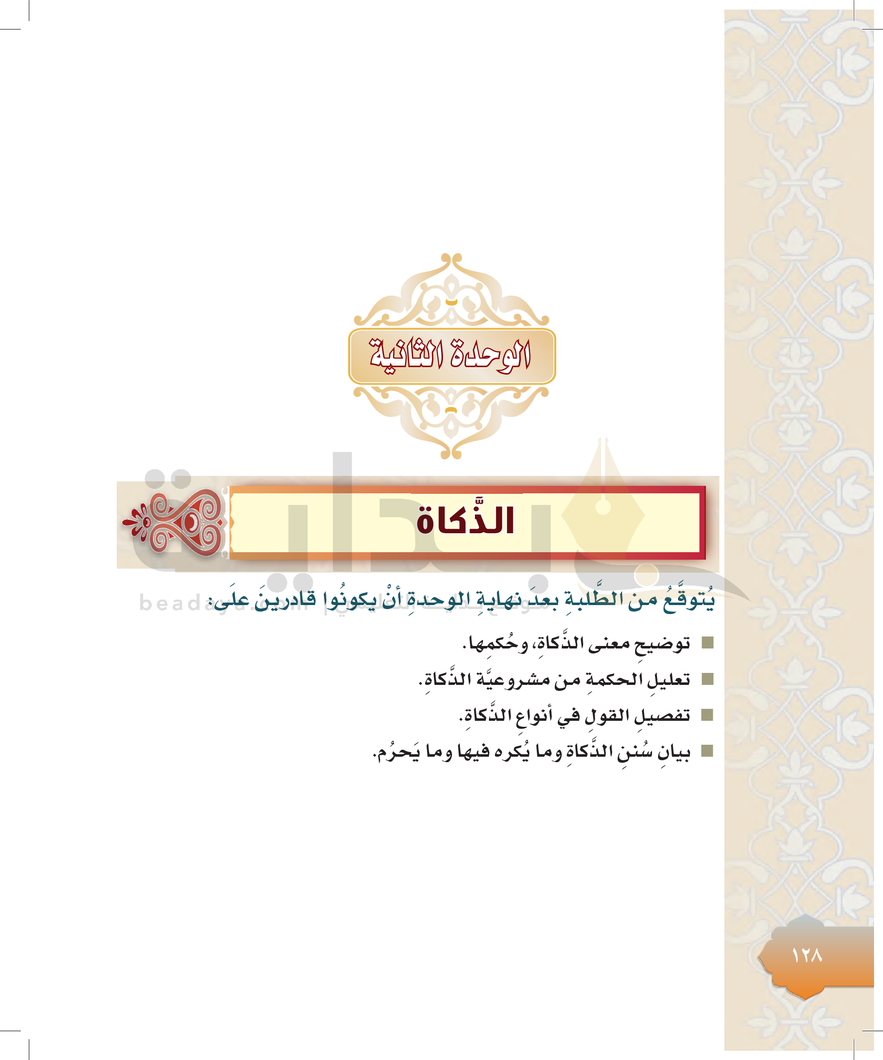 الفقه - الوحدة الأولى: الأطعمة والأشربة