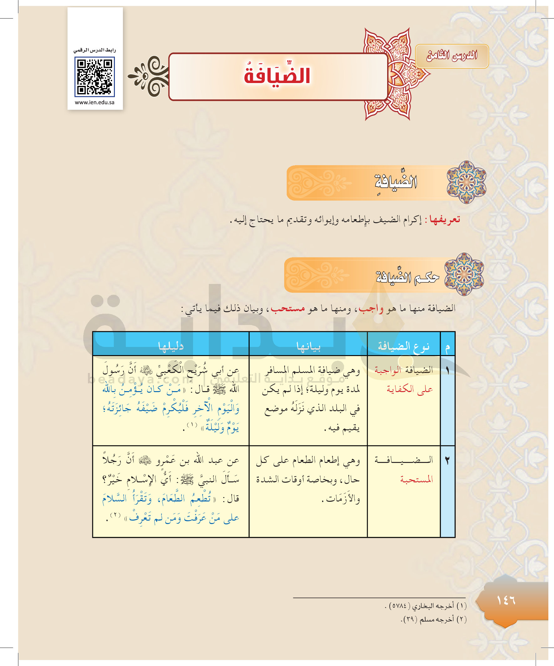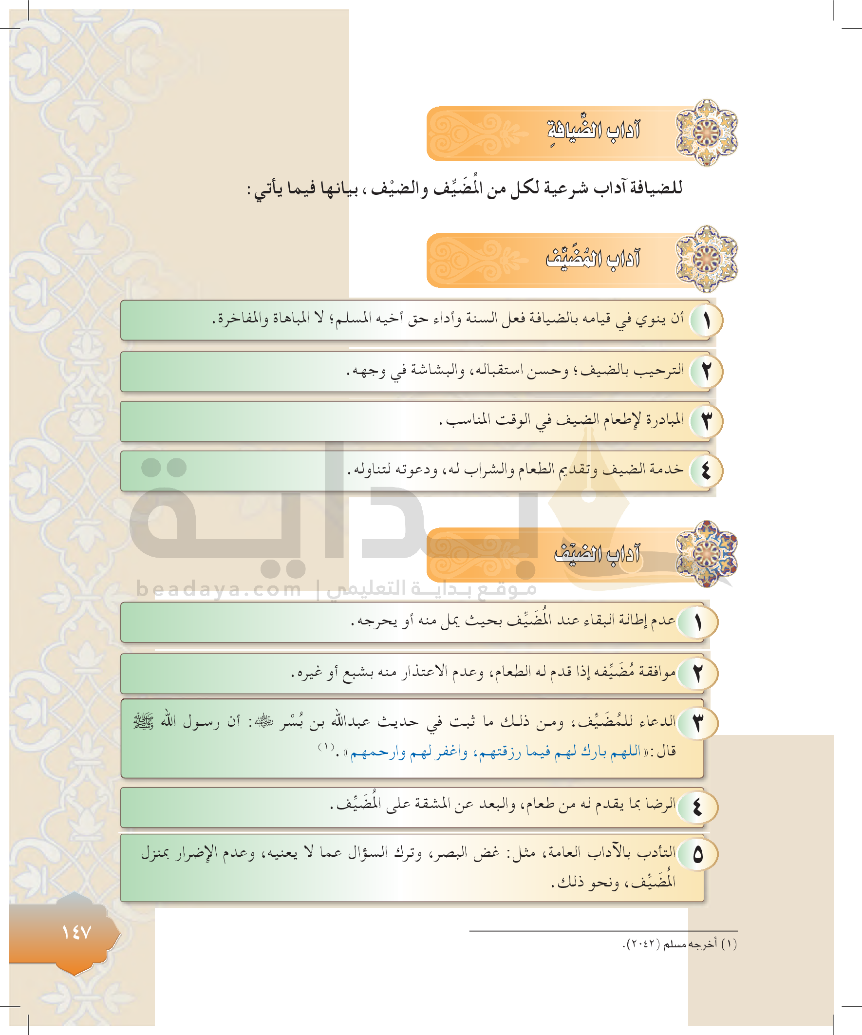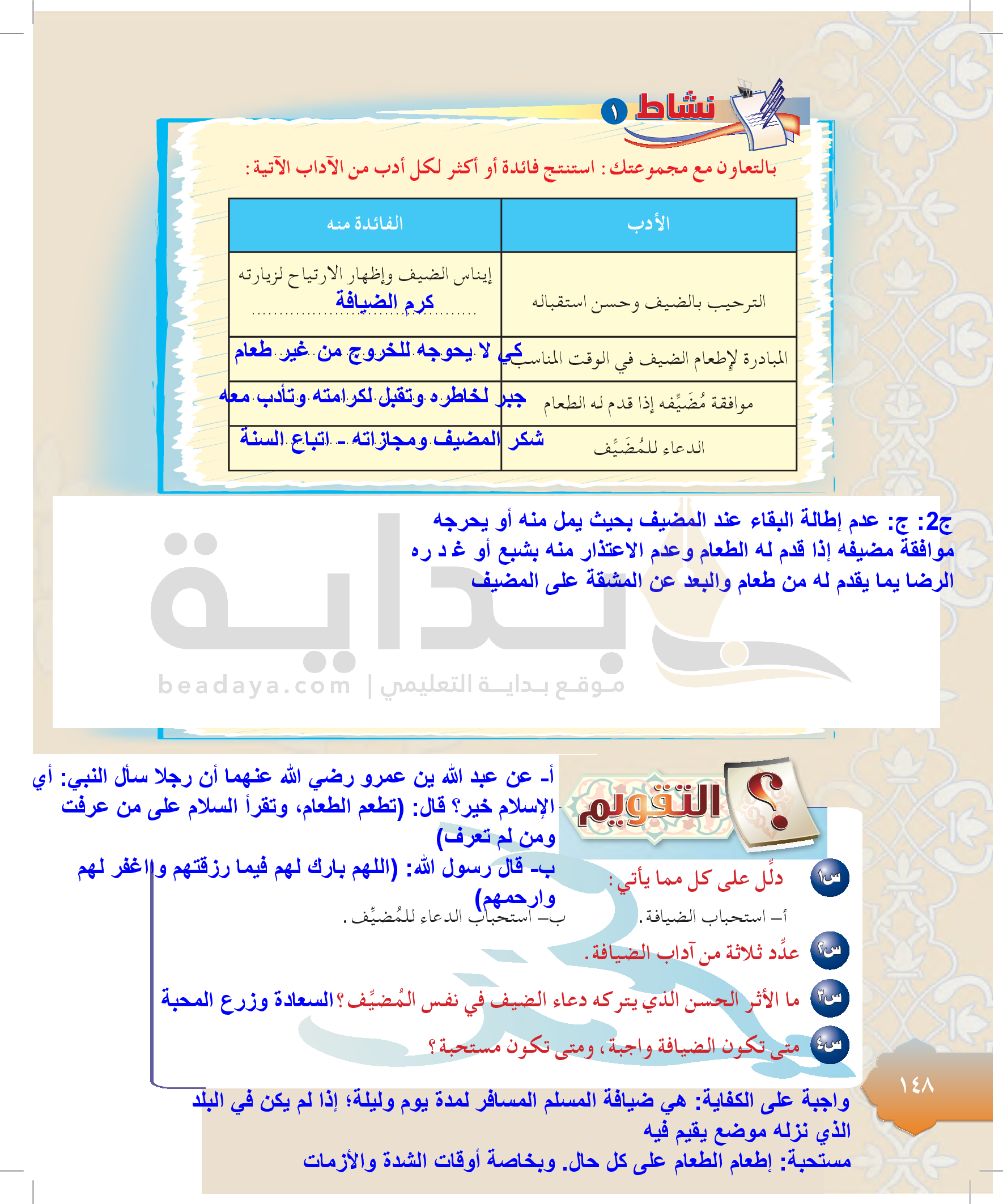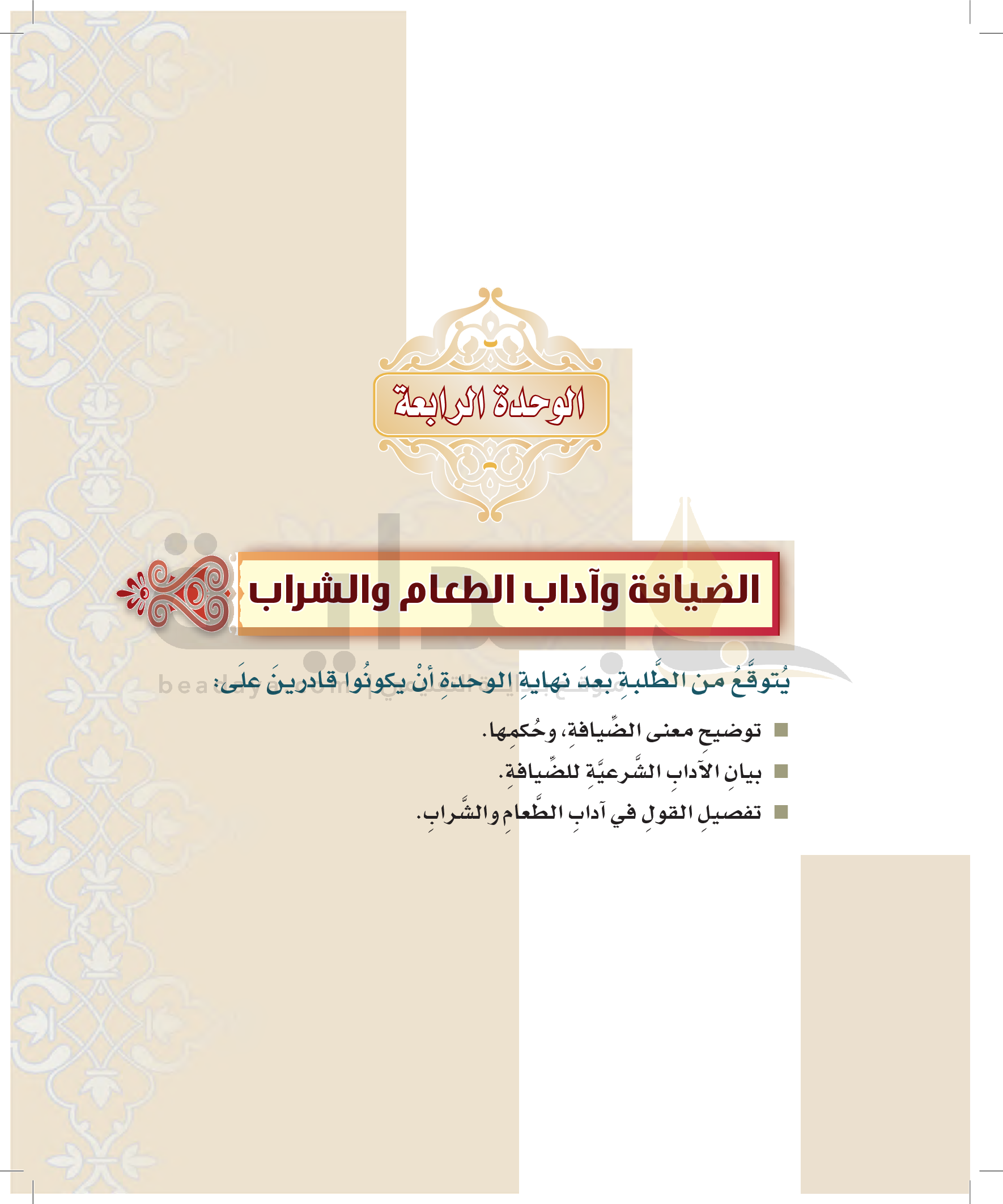 الفقه - الوحدة الرابعة: الضيافة وآداب الطعام والشراب
