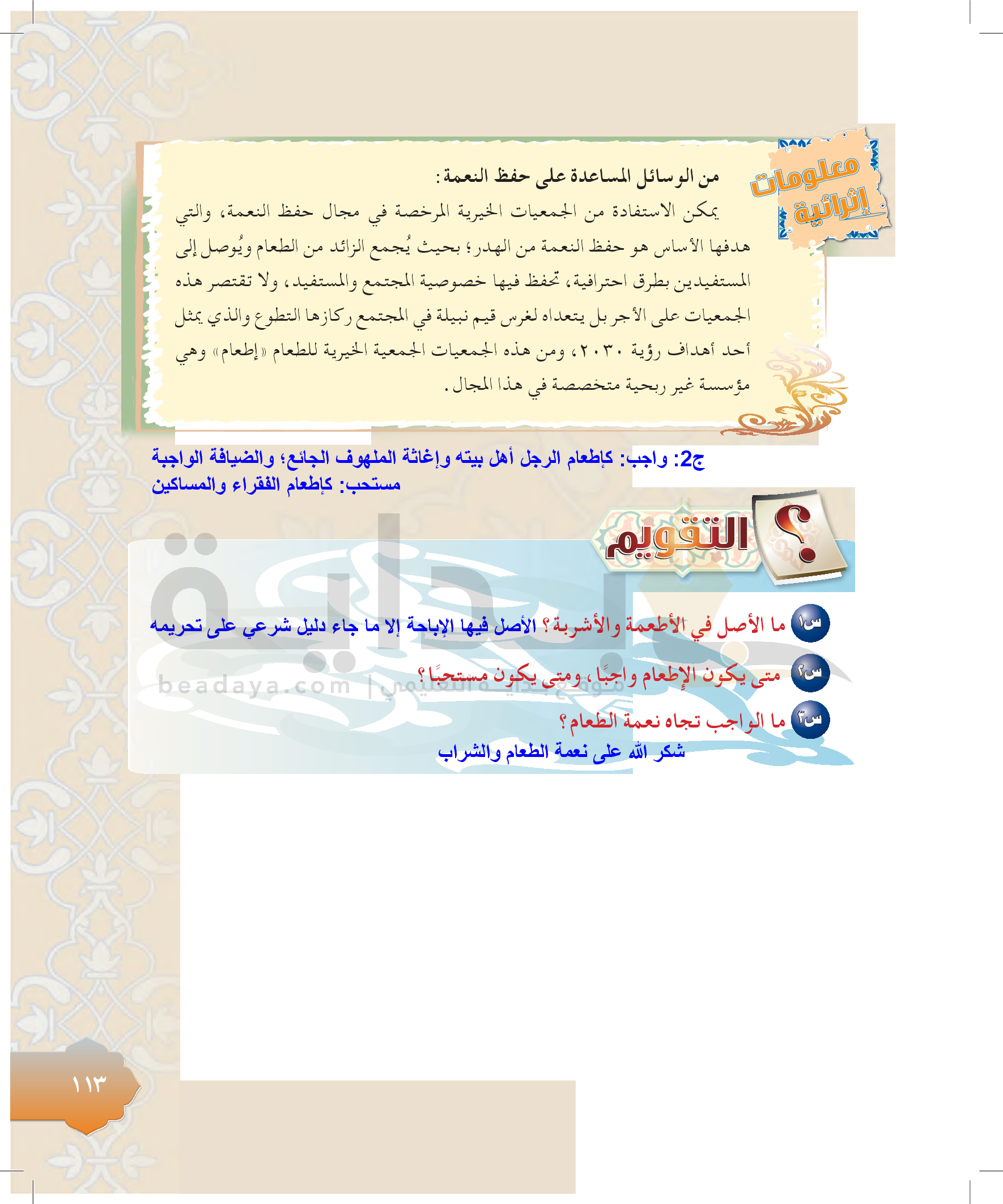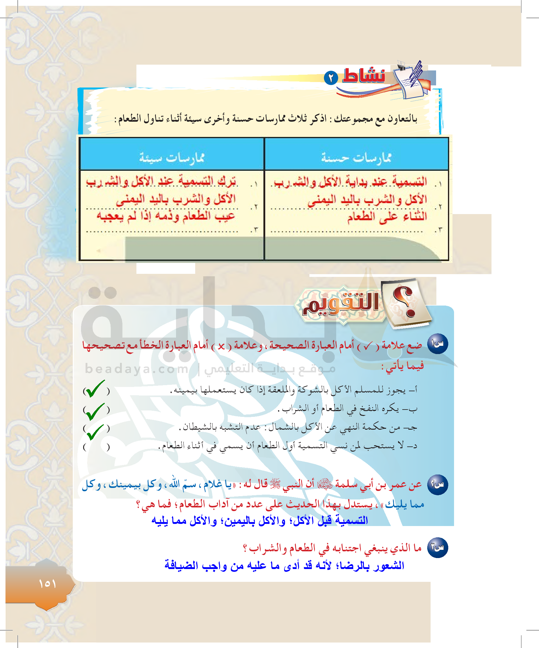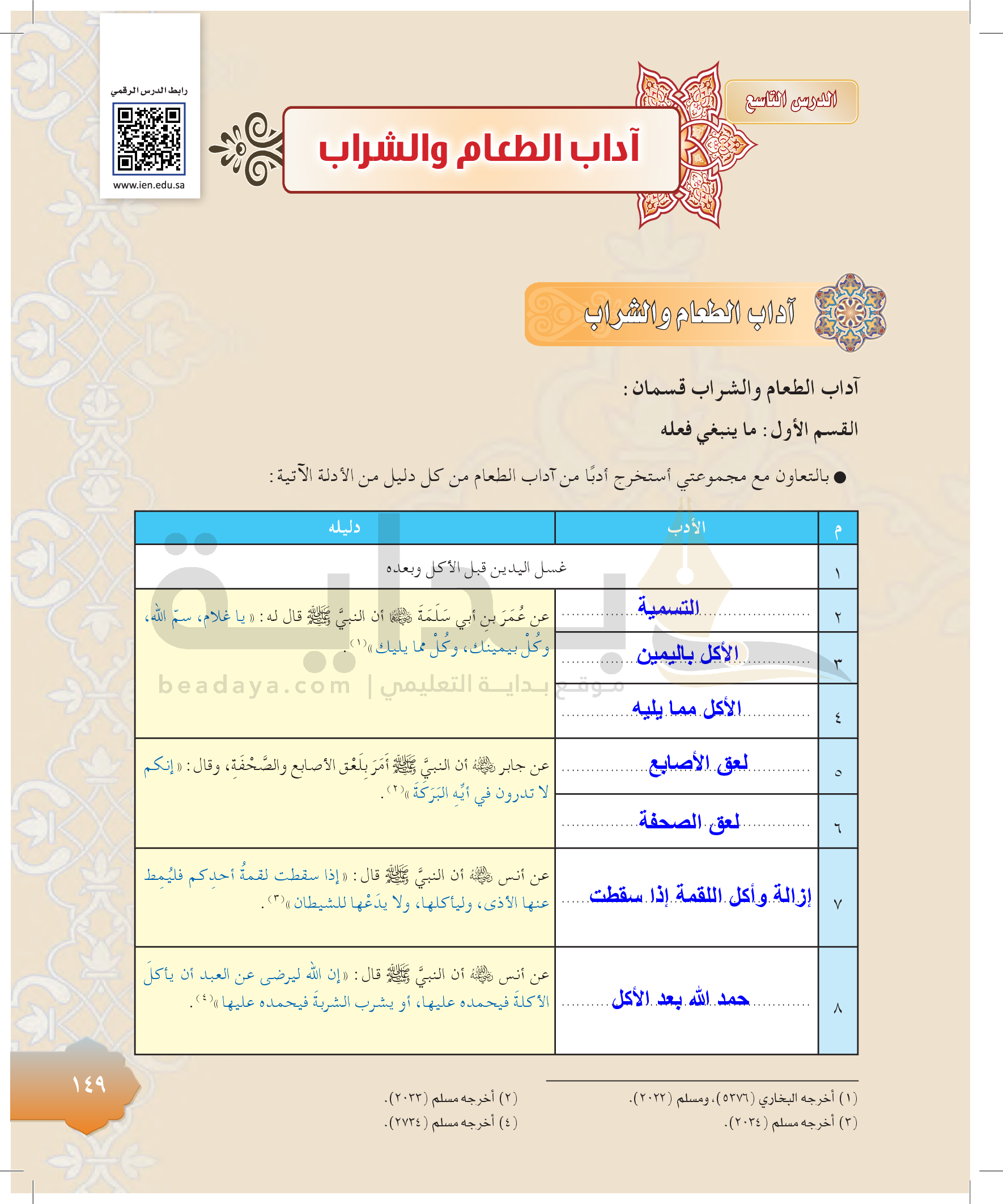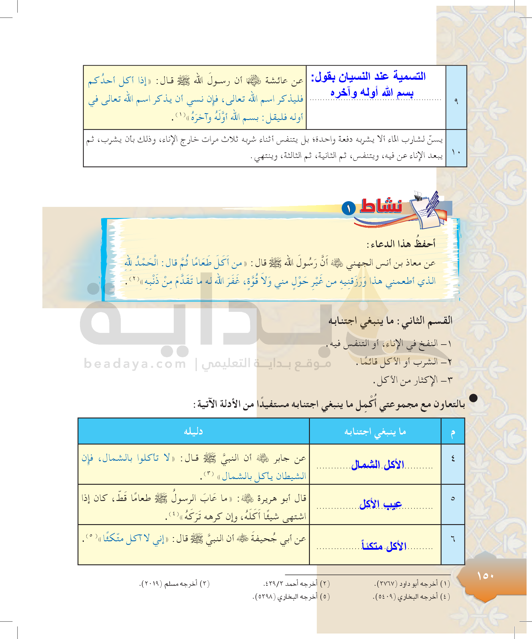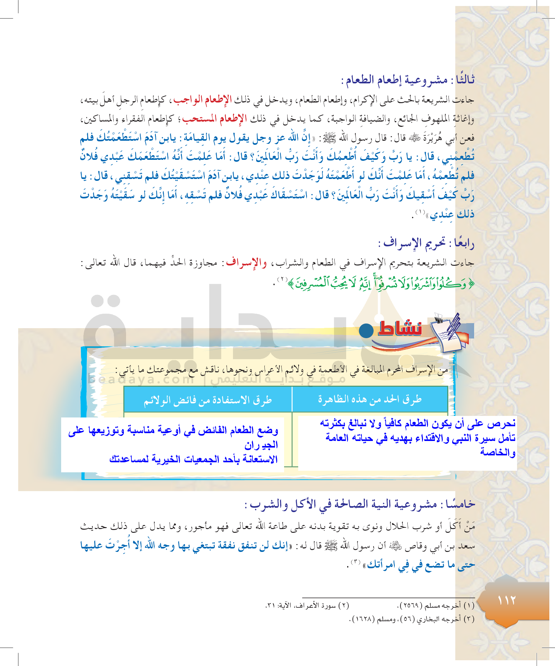 الفقه - الوحدة الرابعة: الضيافة وآداب الطعام والشراب