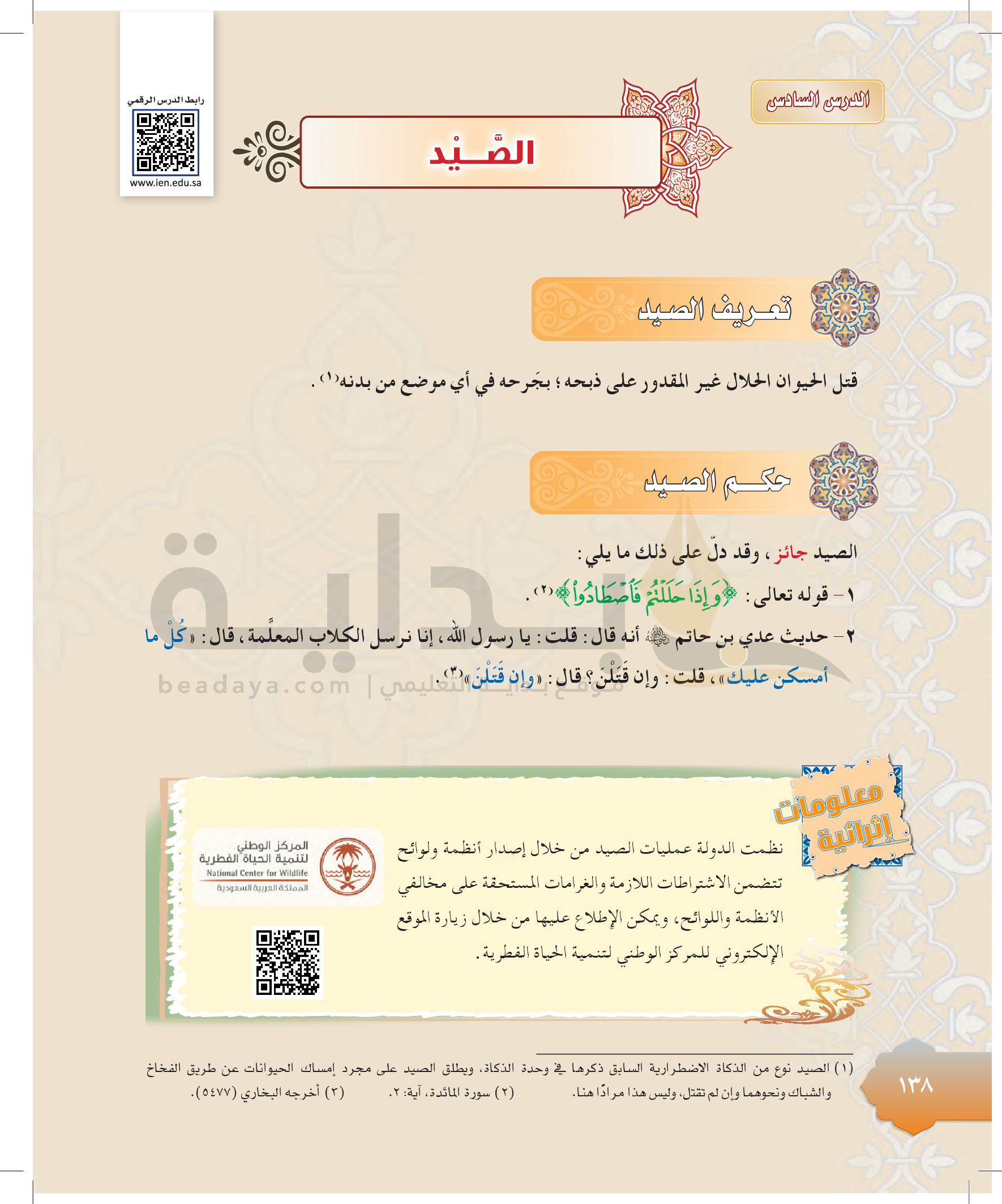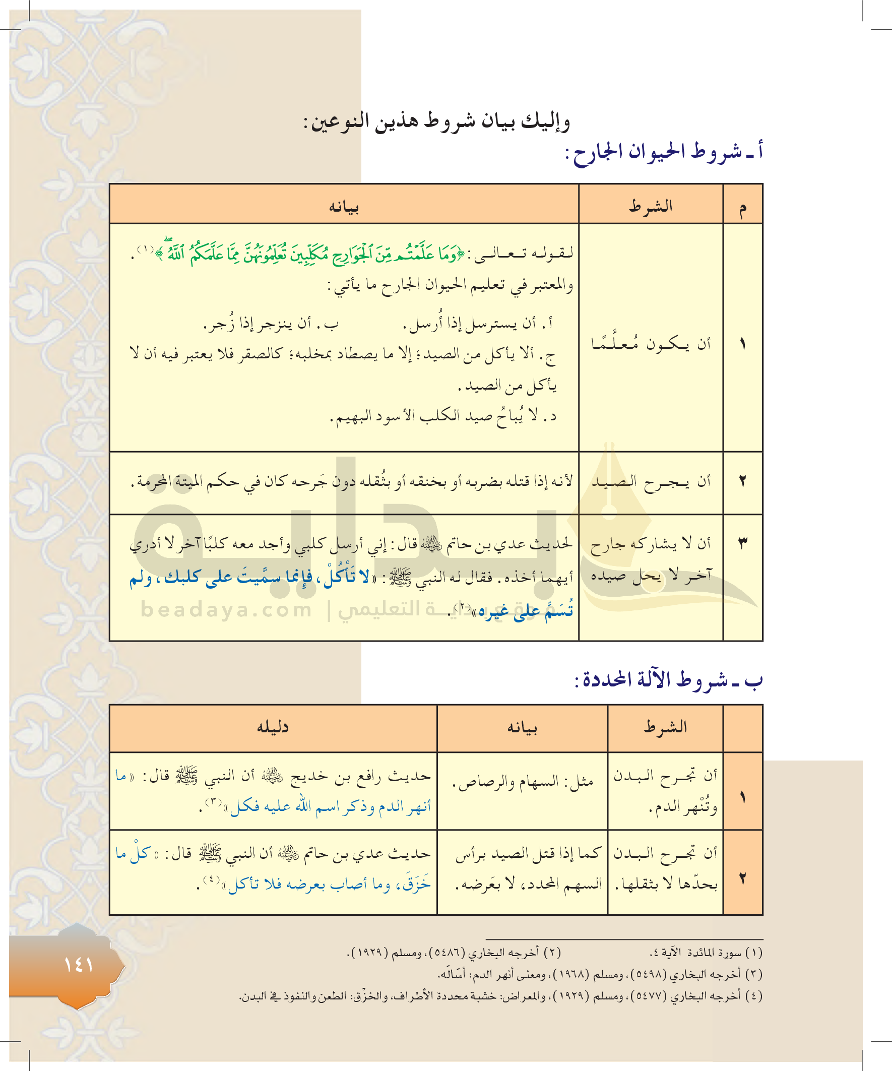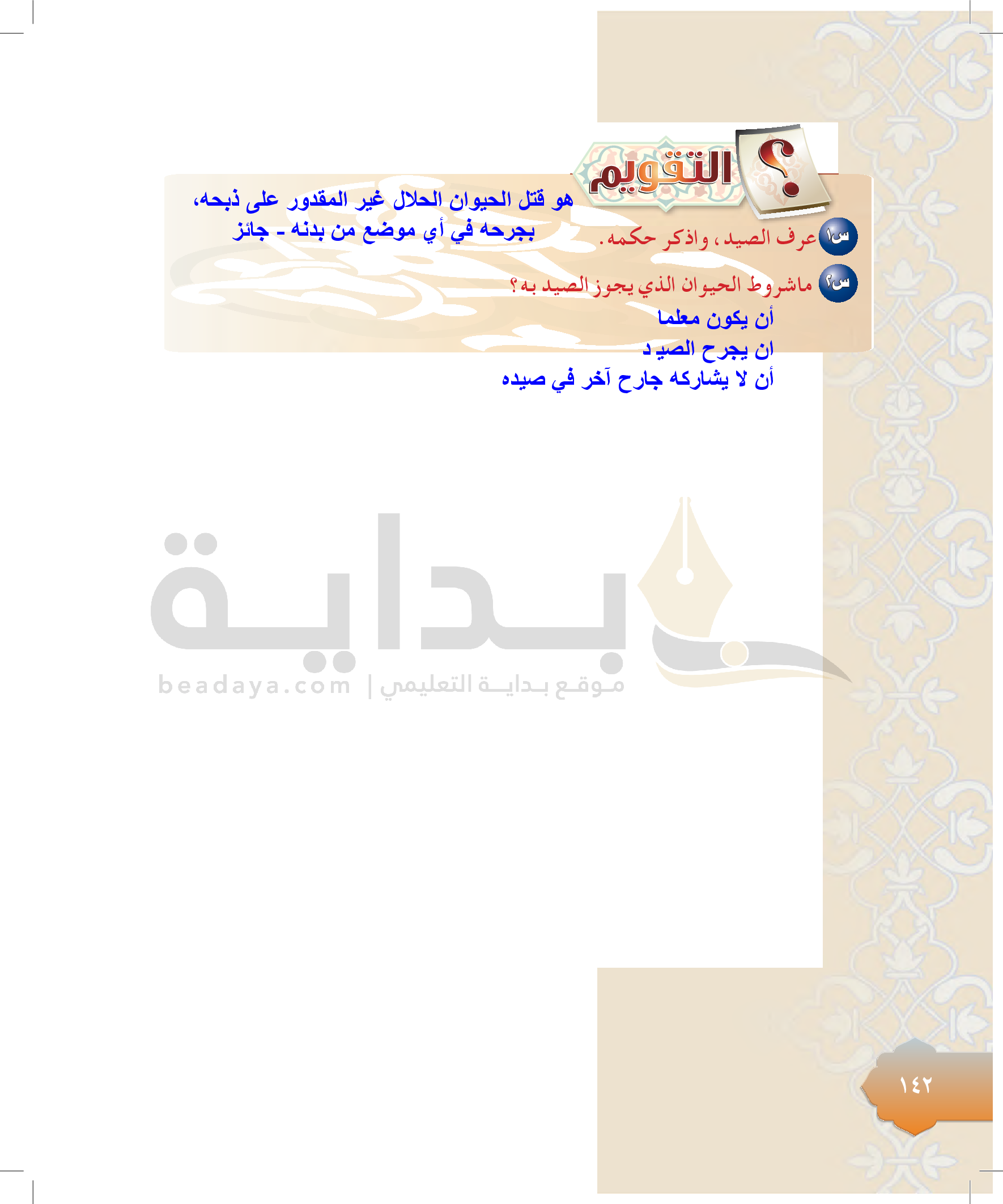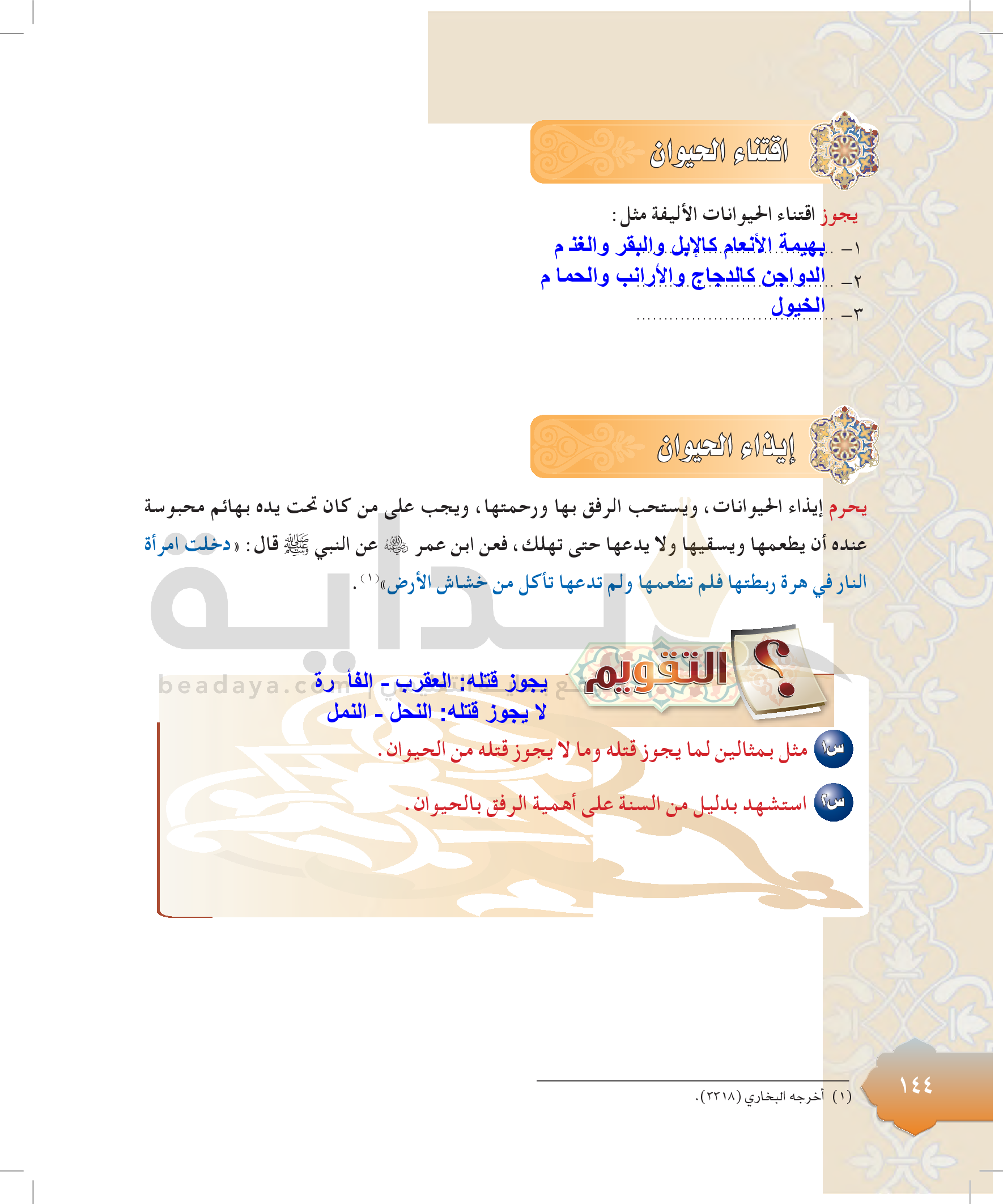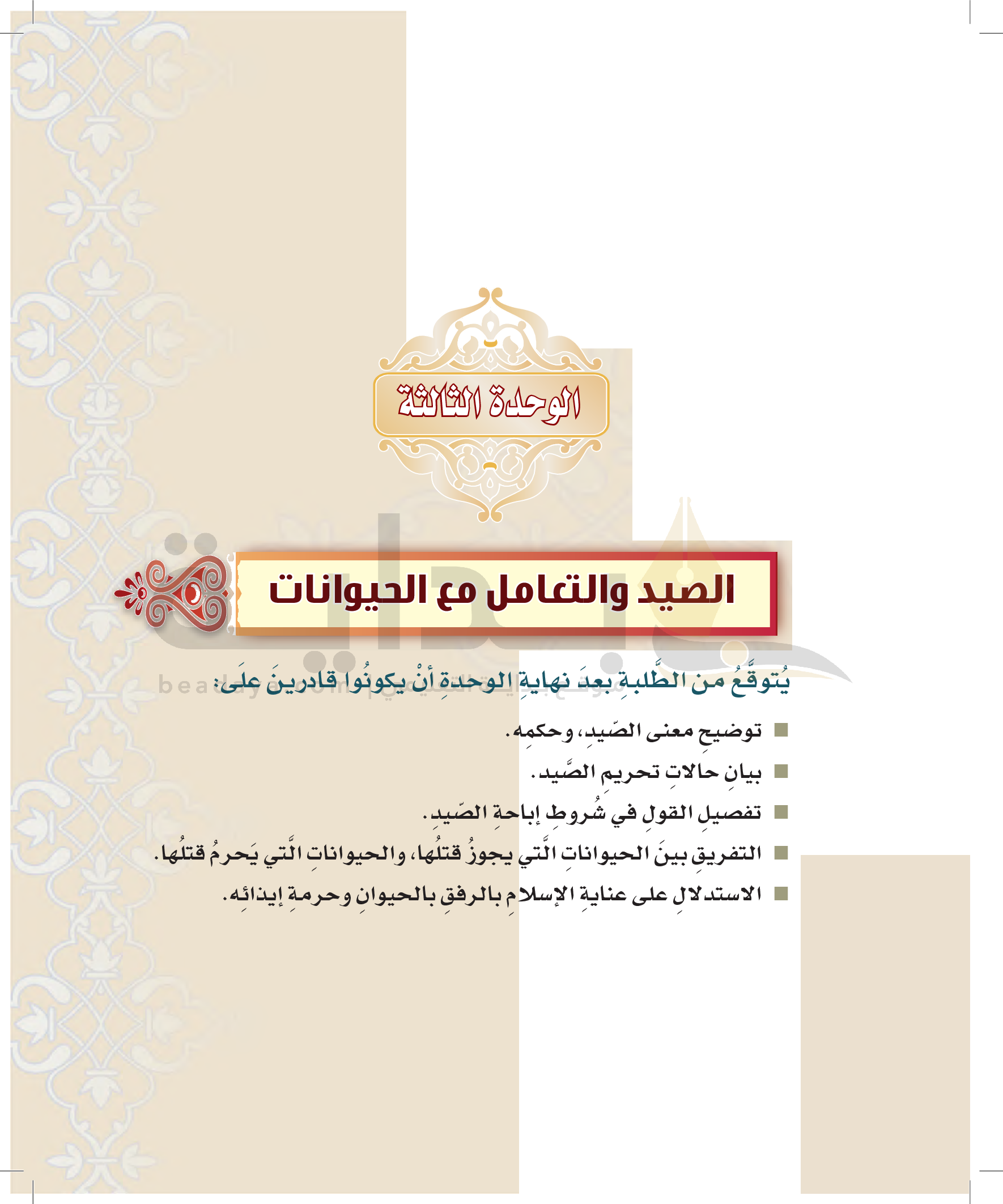 الفقه - الوحدة الثالثة: الصيد والتعامل مع الحيوانات