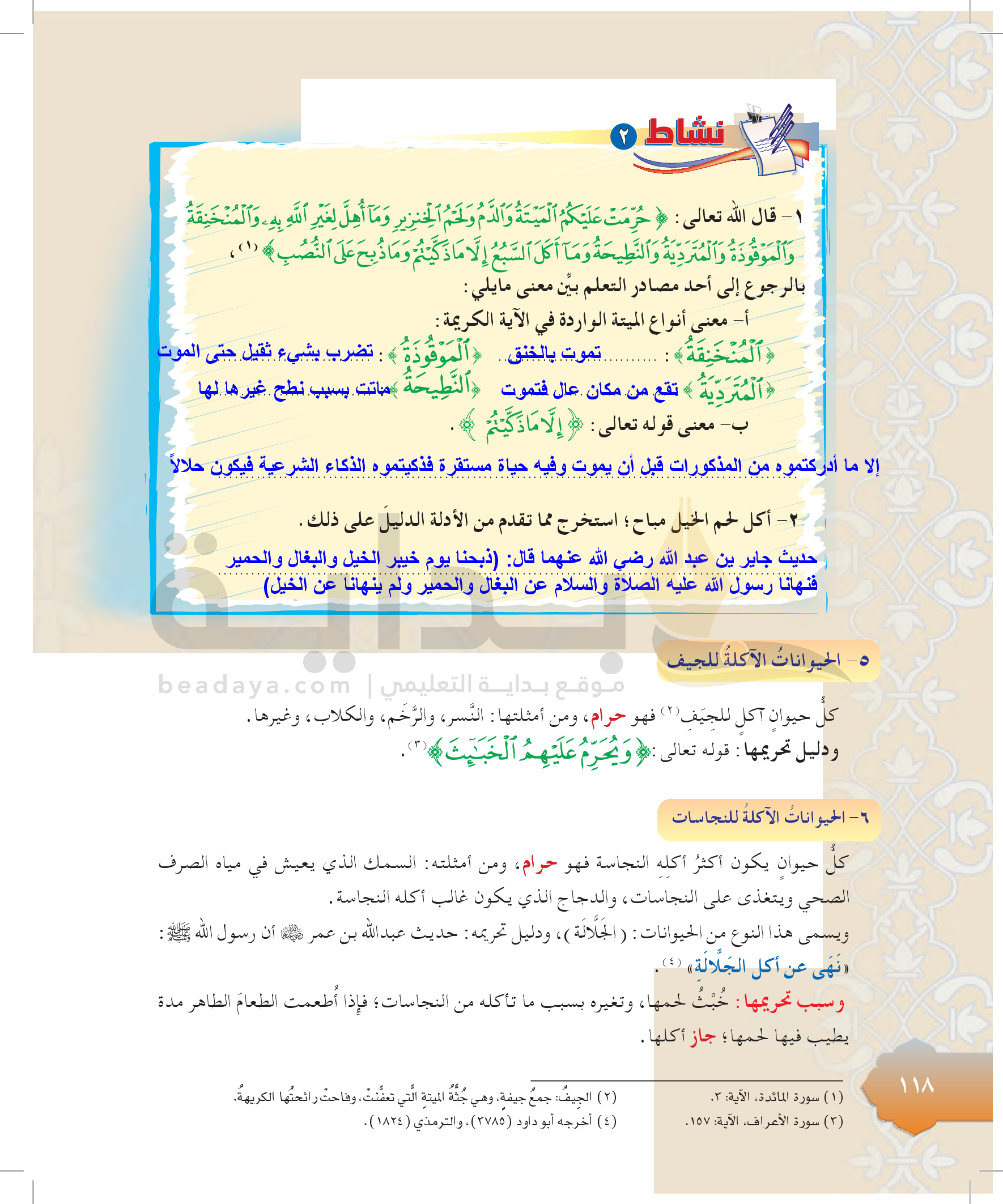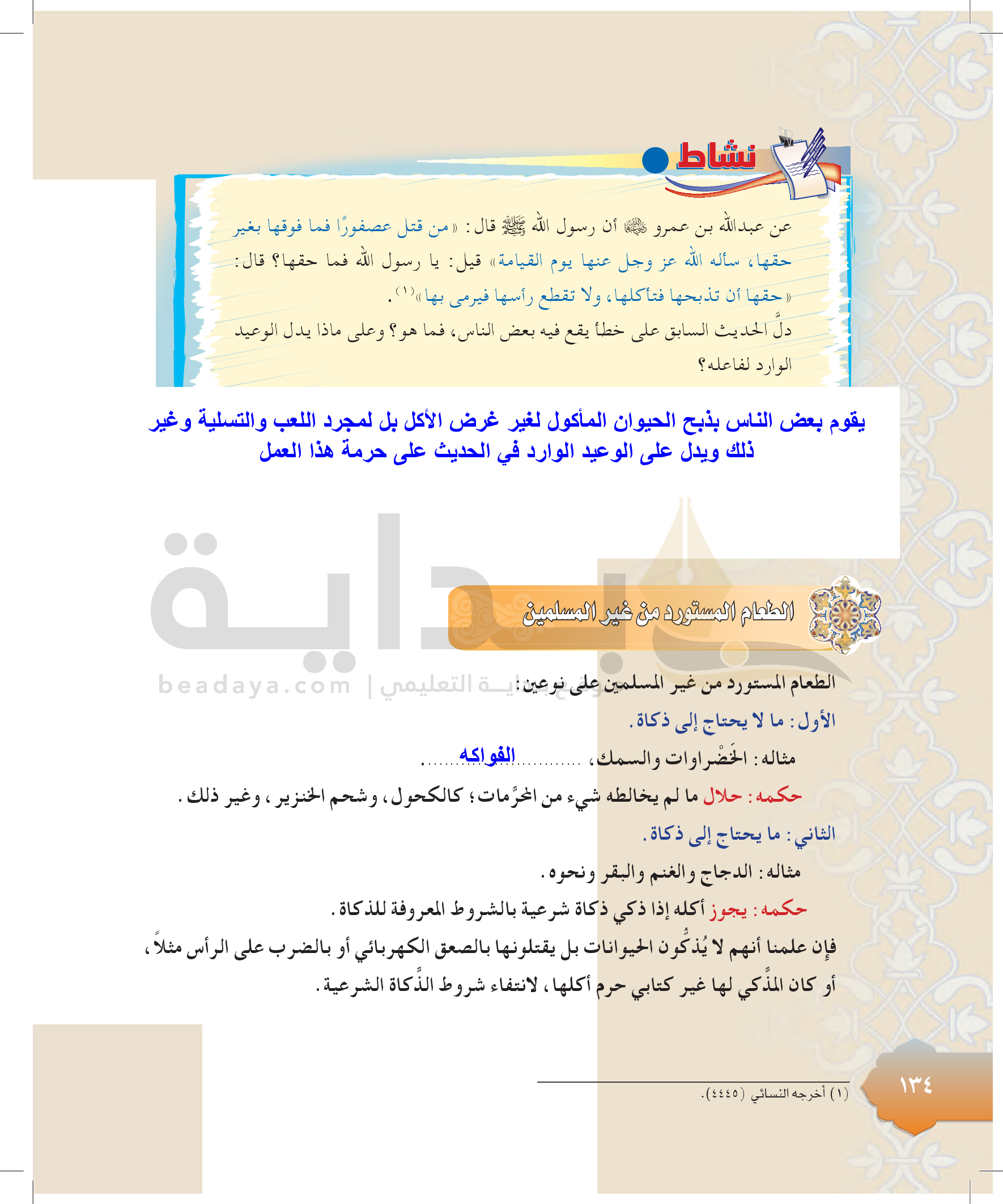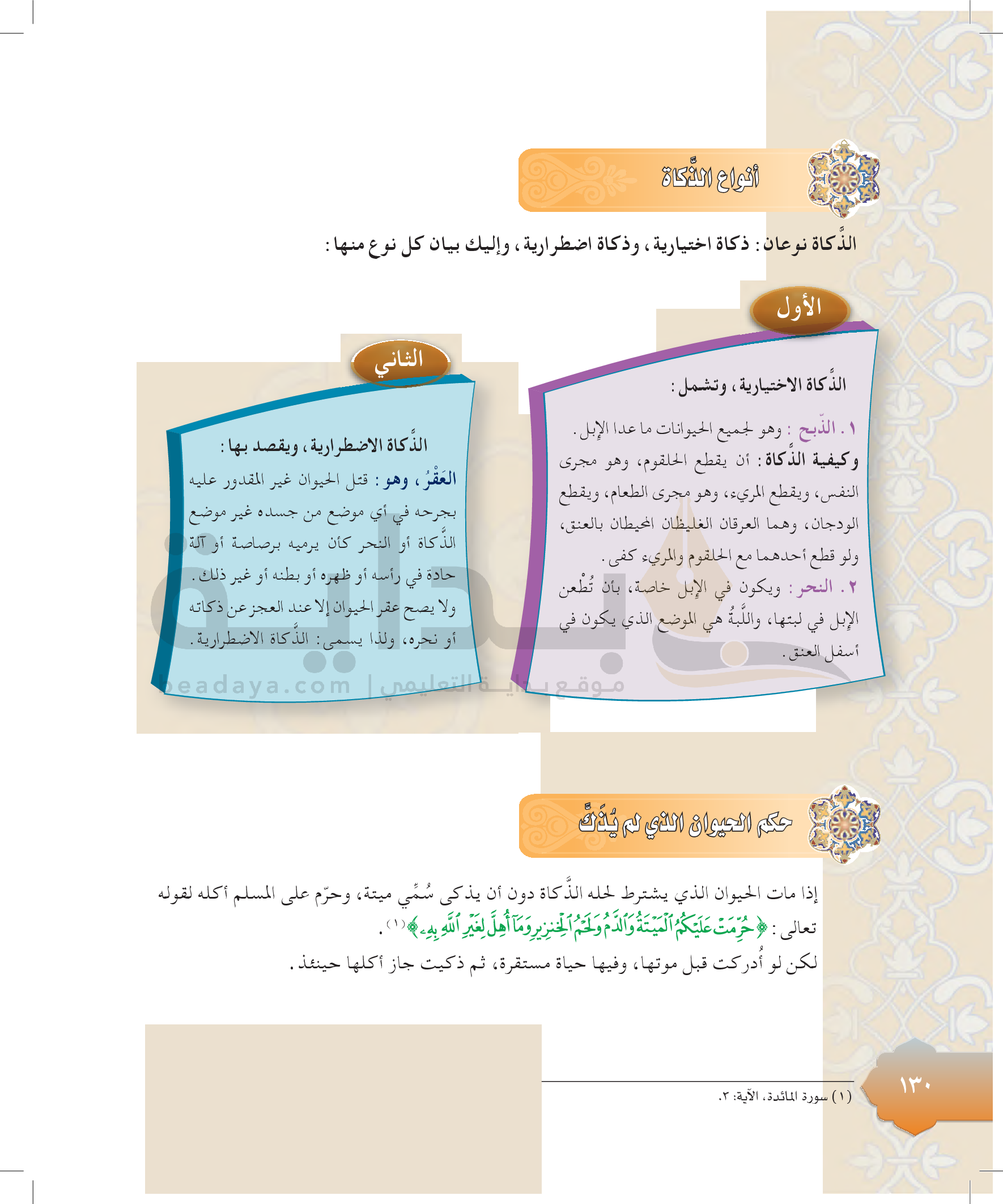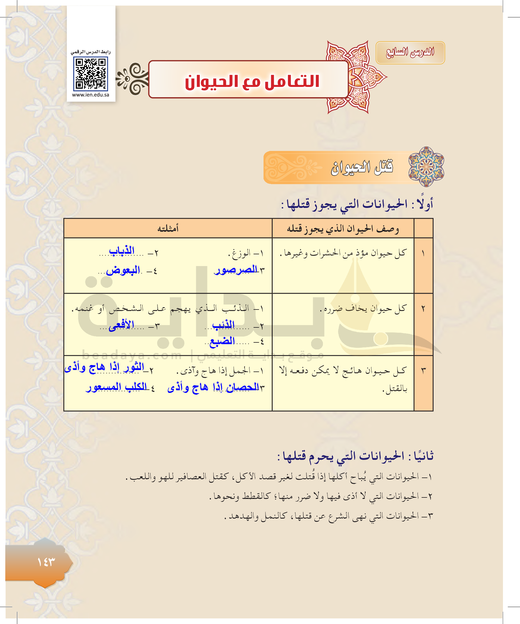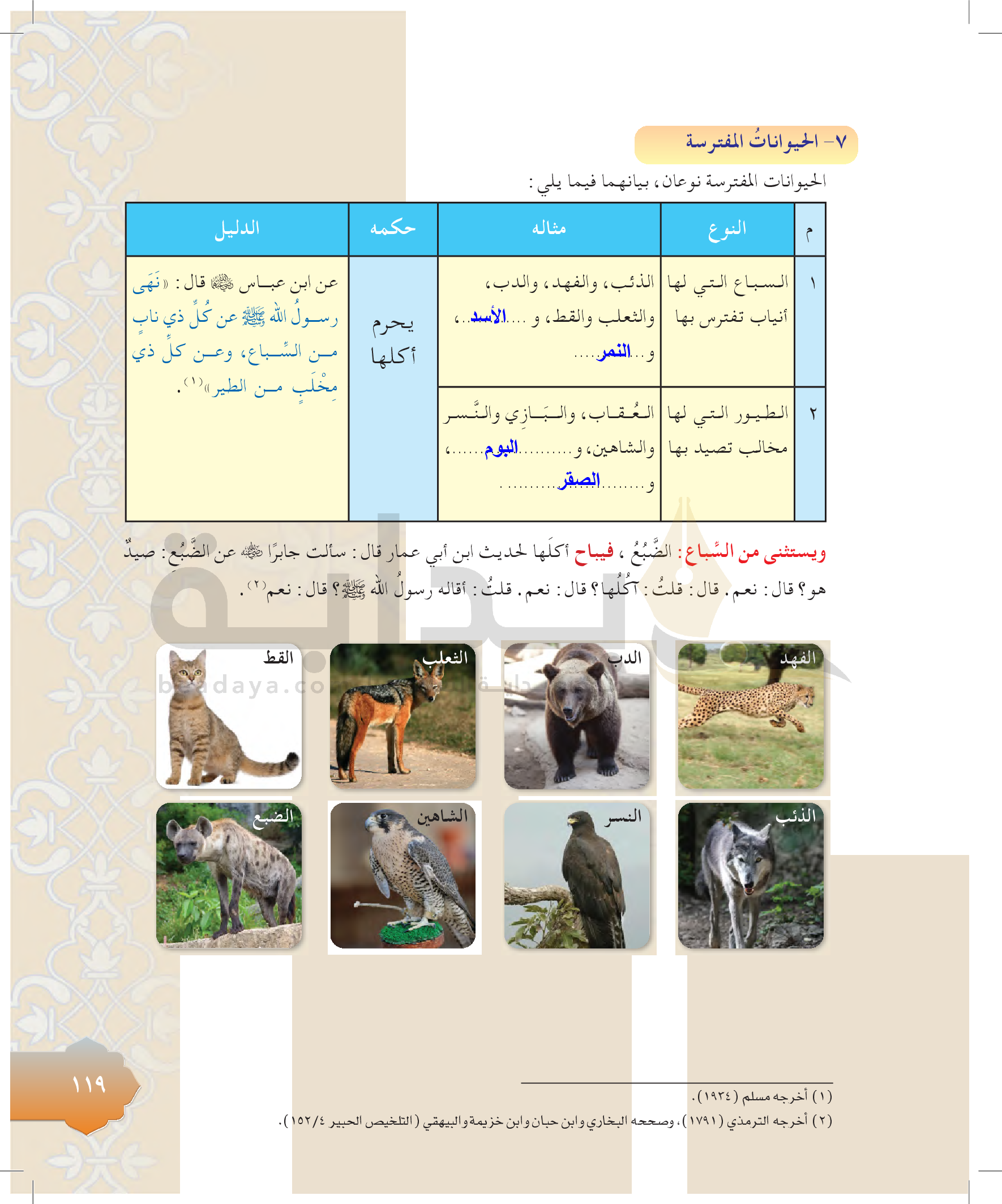 الفقه - الوحدة الثالثة: الصيد والتعامل مع الحيوانات