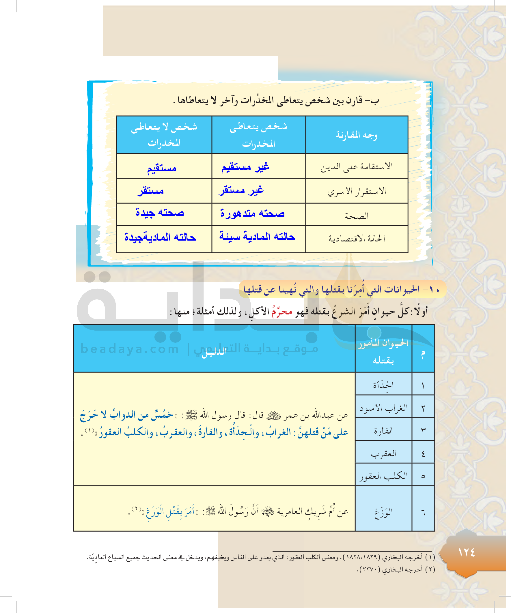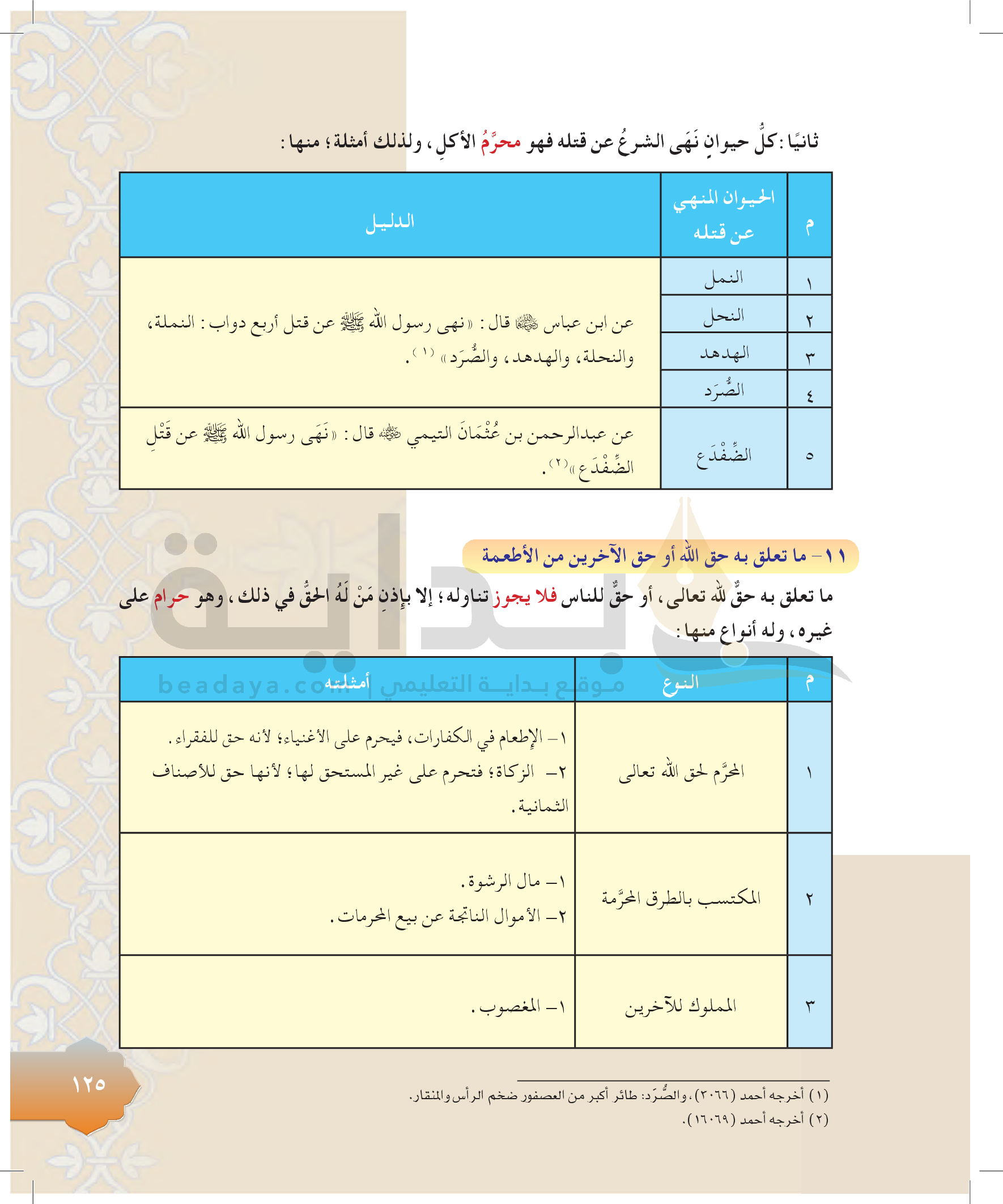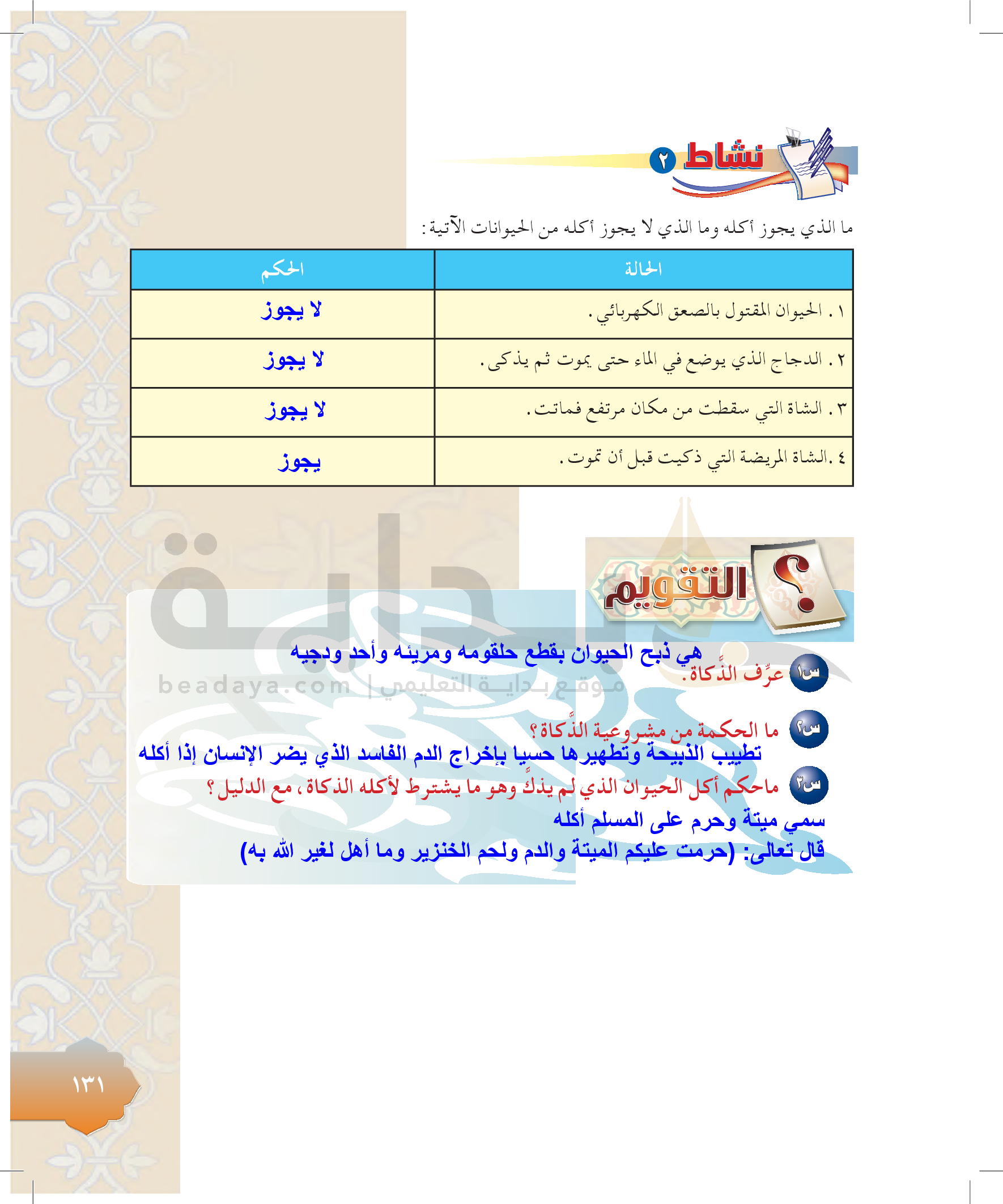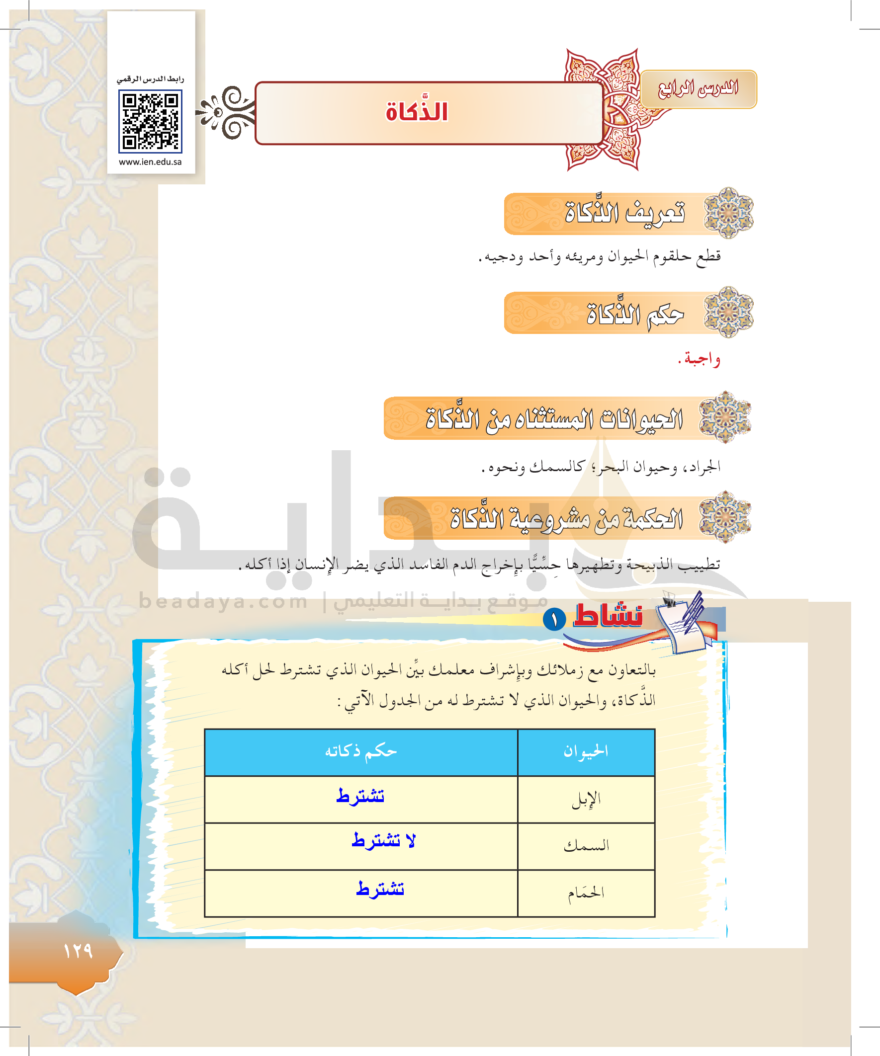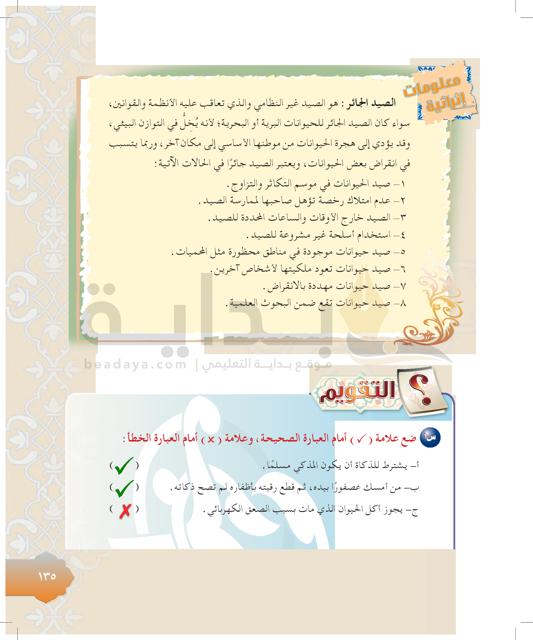 الفقه - الوحدة الثالثة: الصيد والتعامل مع الحيوانات