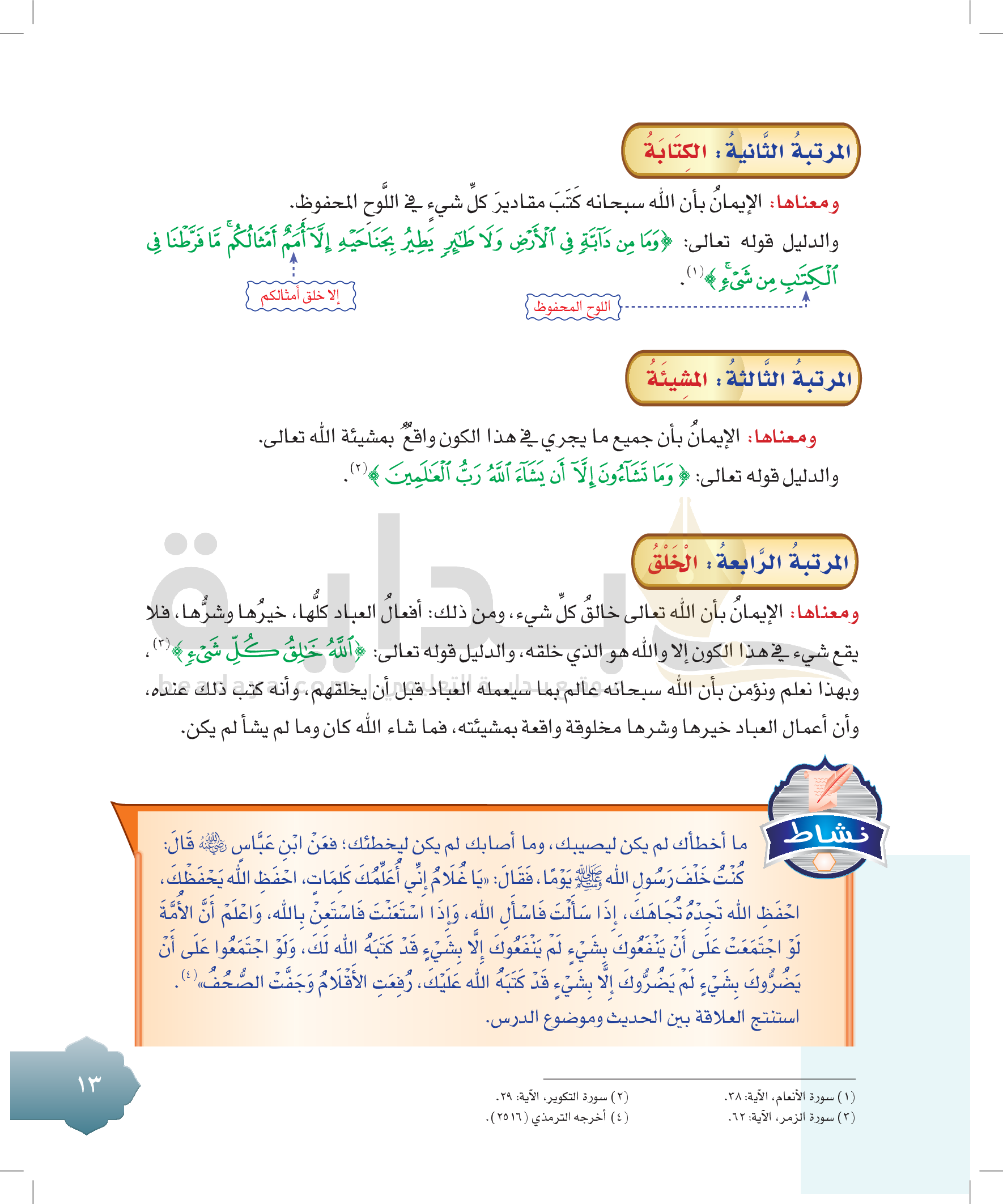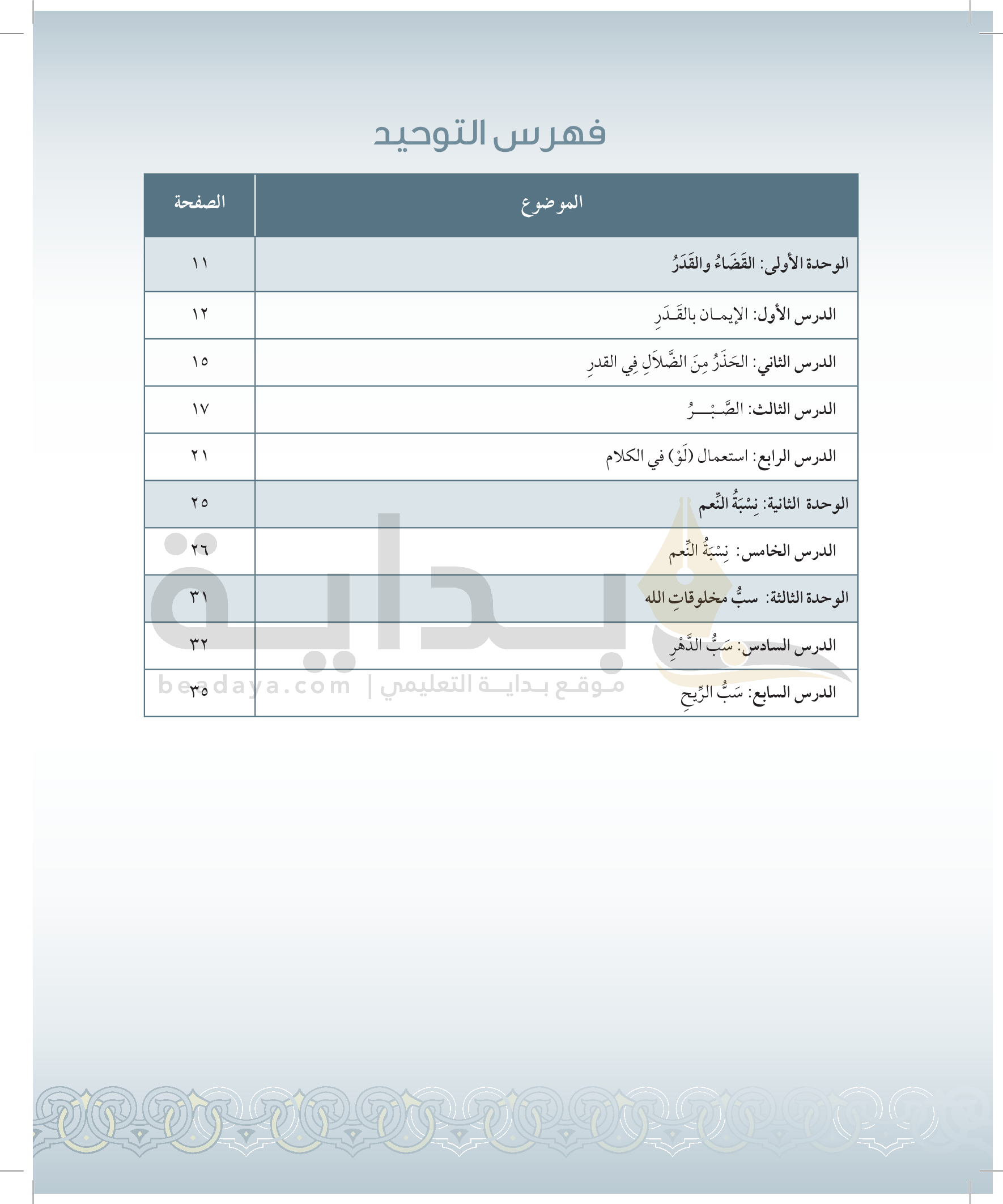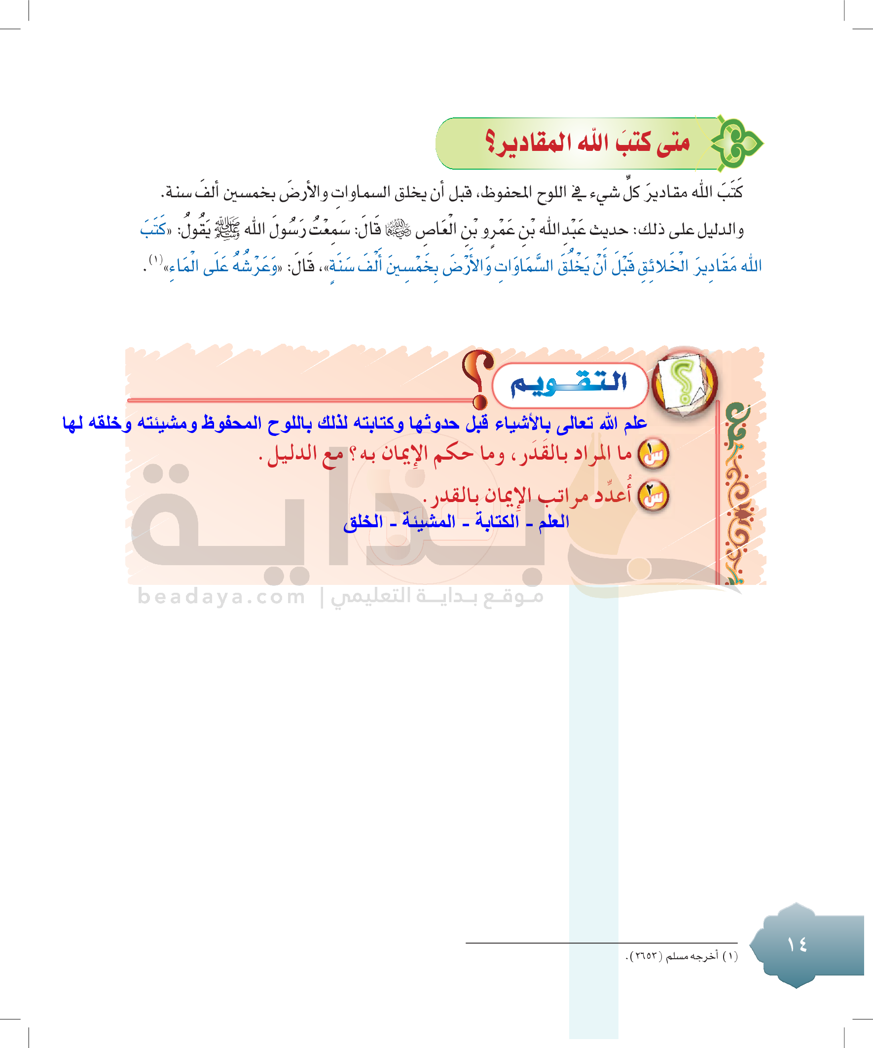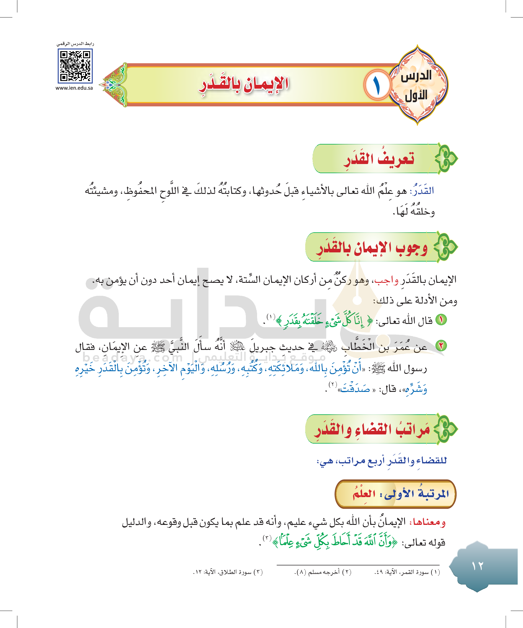 التوحيد - الوحدة الأولى: القضاء والقدر