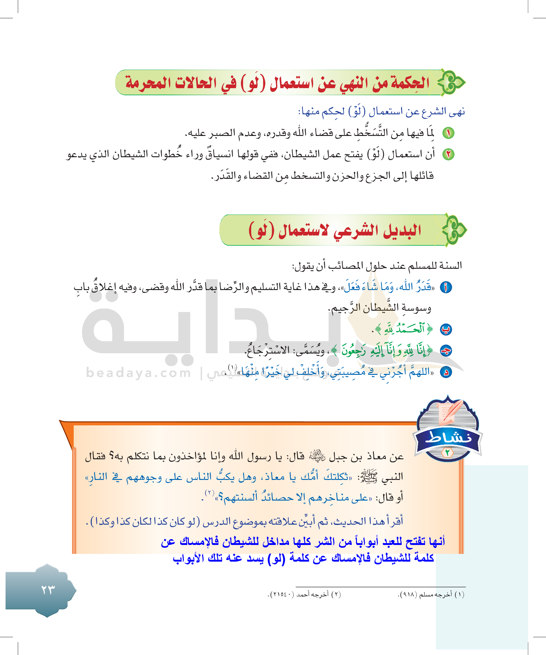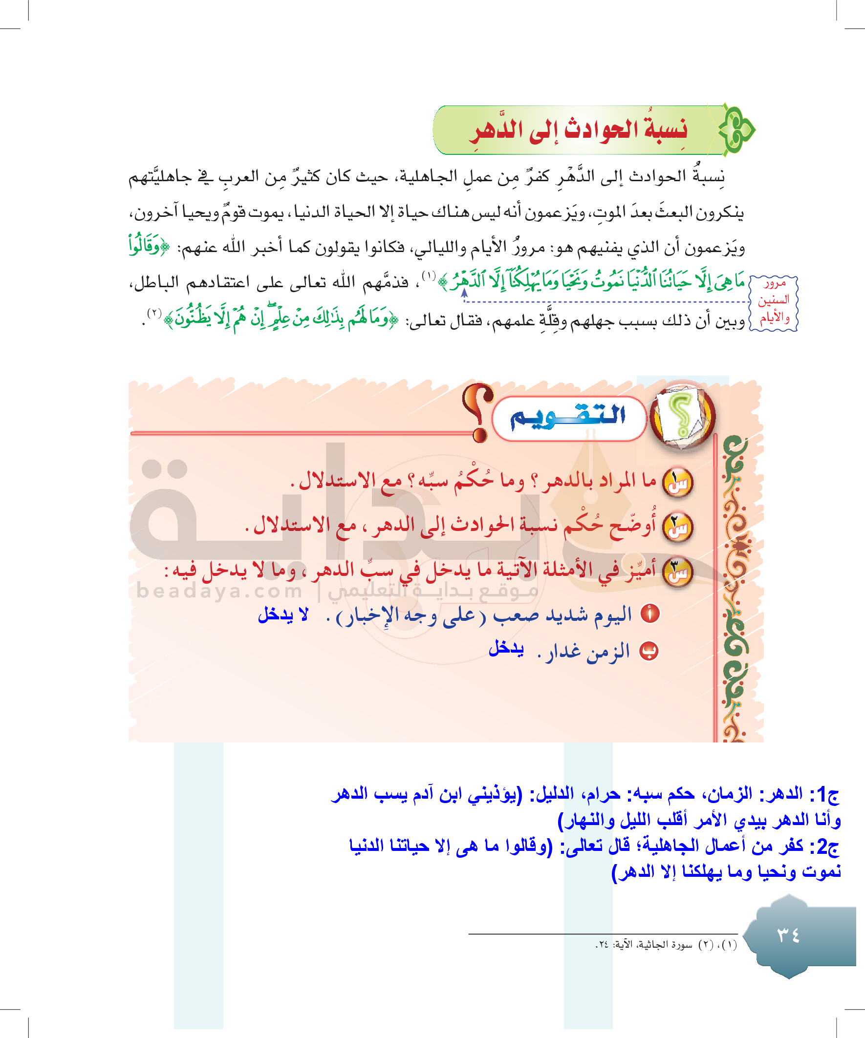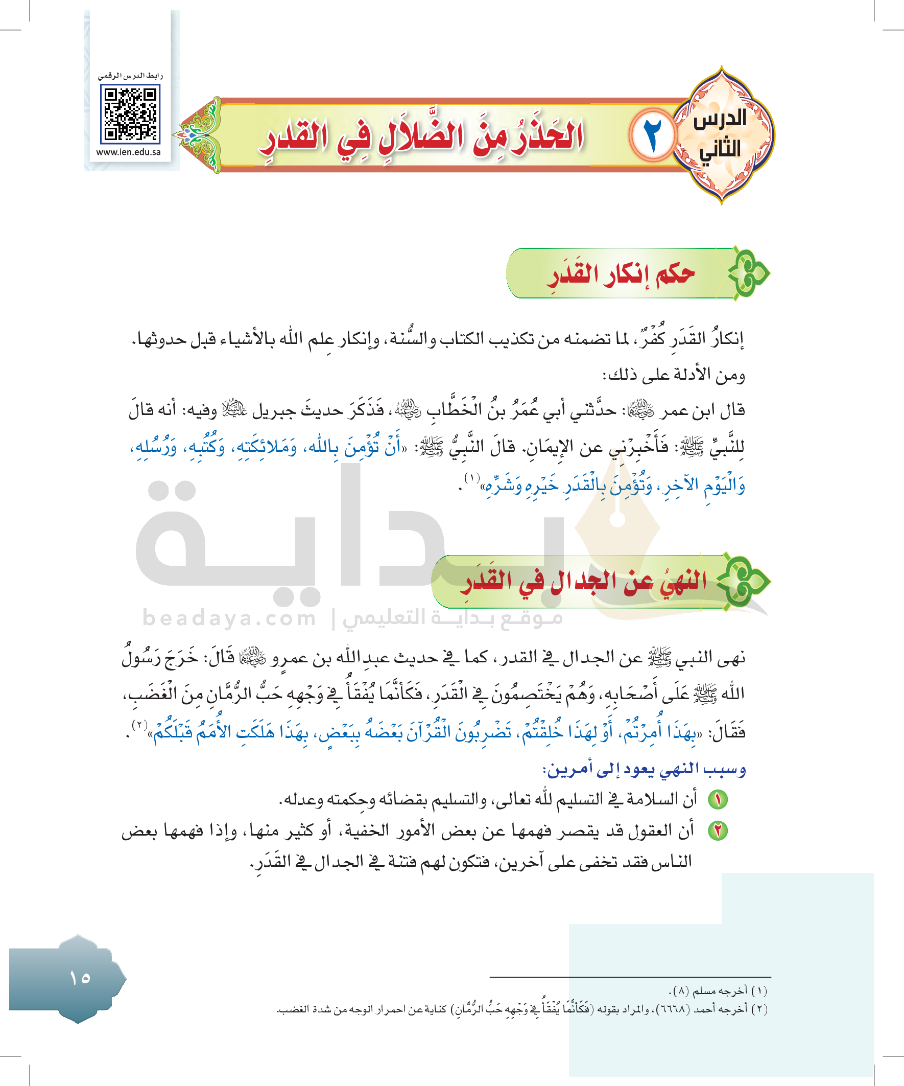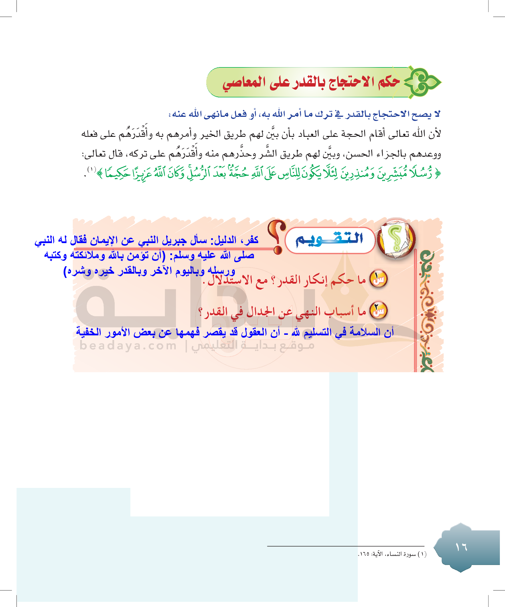 التوحيد - الوحدة الأولى: القضاء والقدر
